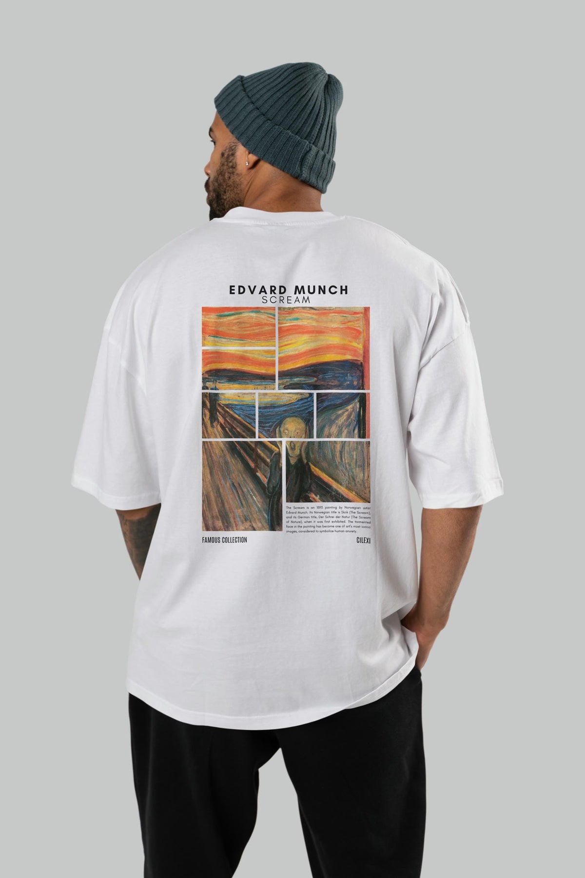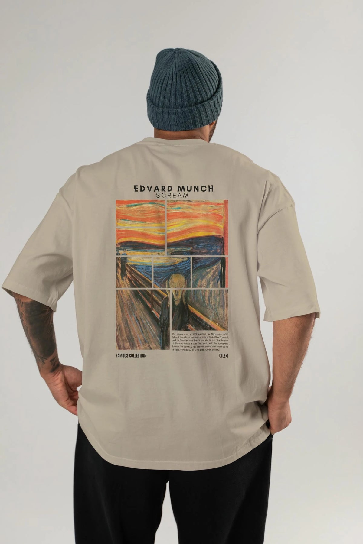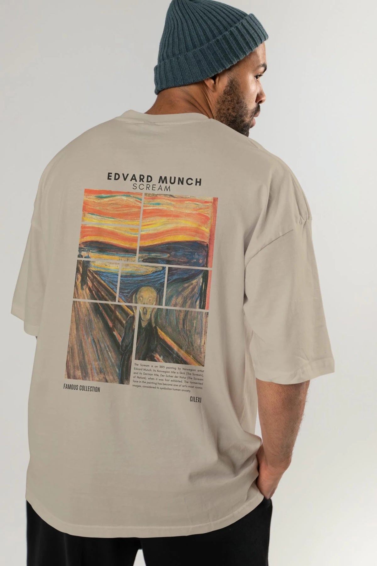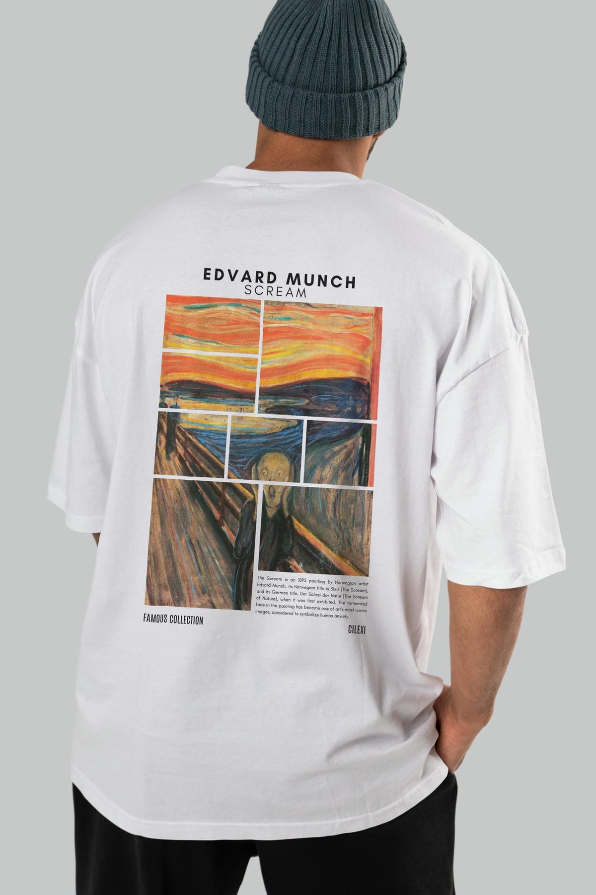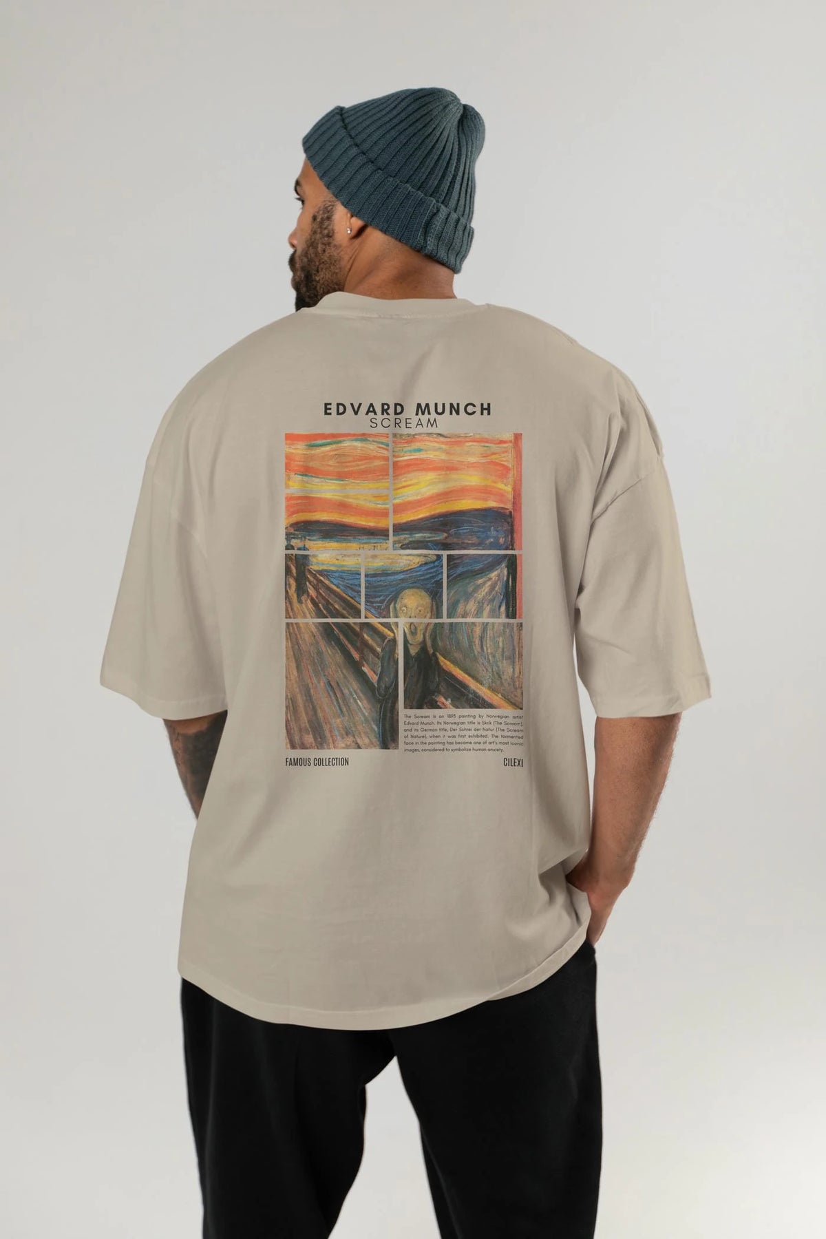 Edvard Munch Scream Arka Baskılı Oversize t-shirt Erkek Kadın Bisiklet Yaka Pamuk tişort