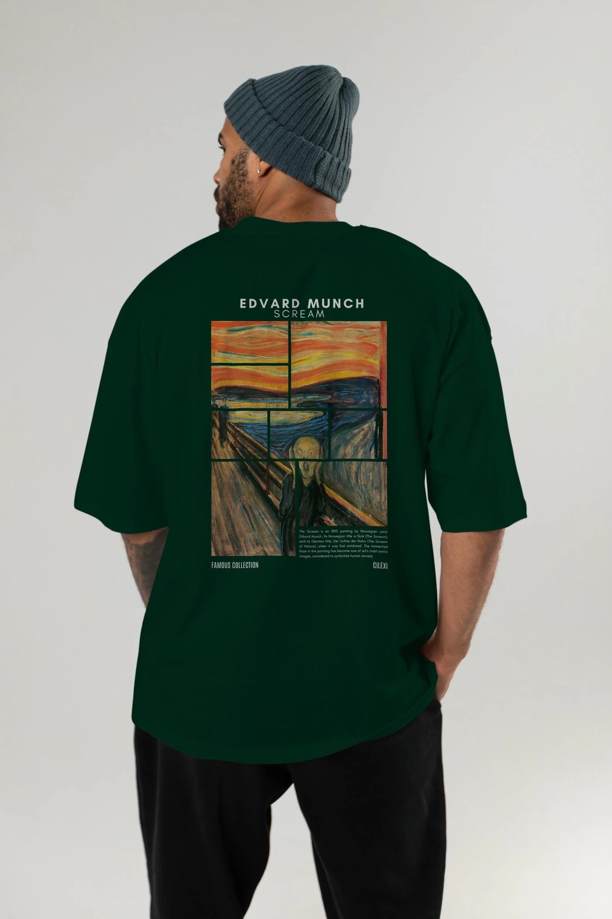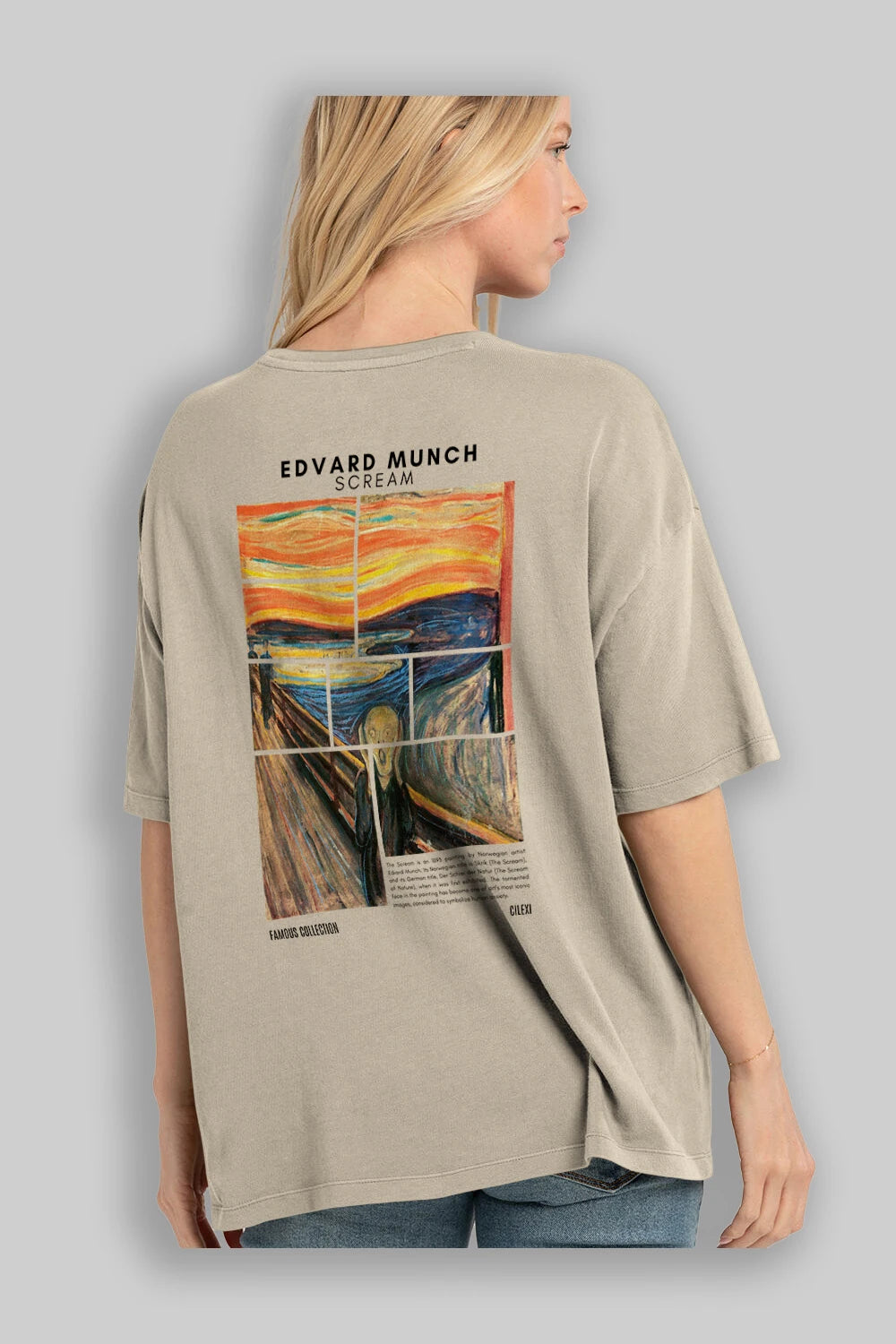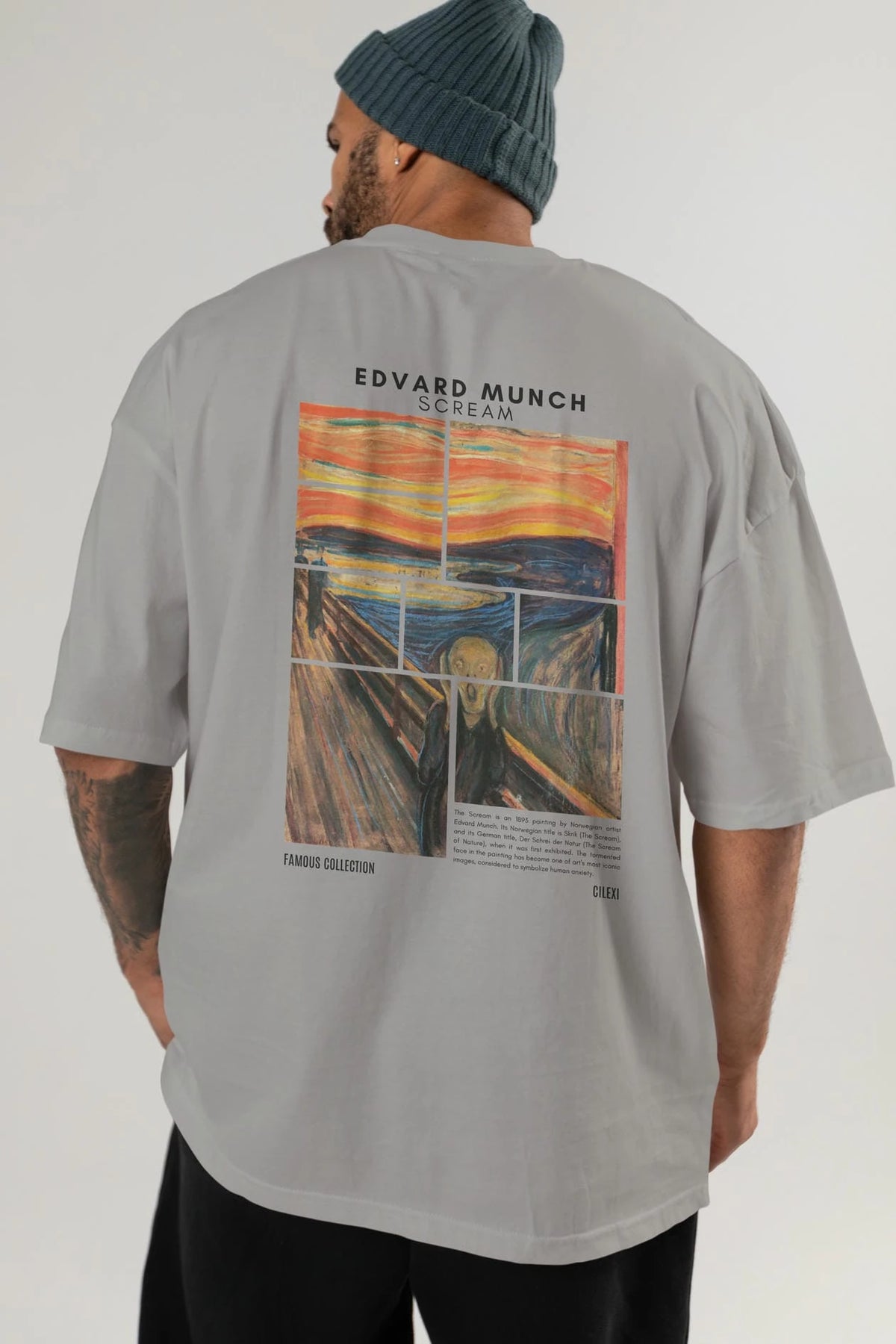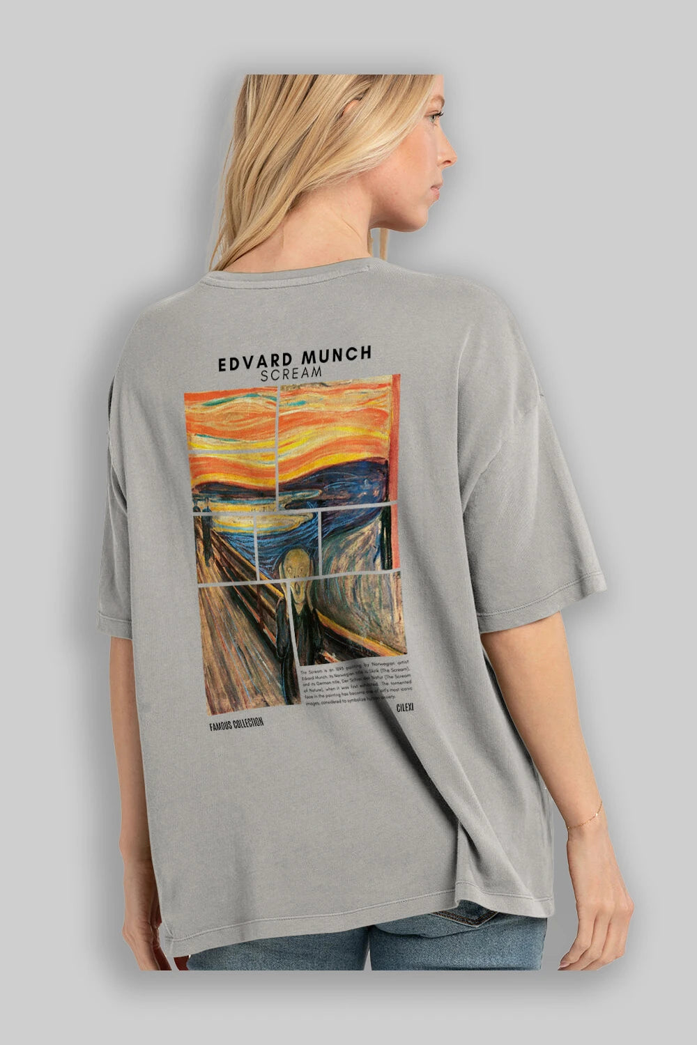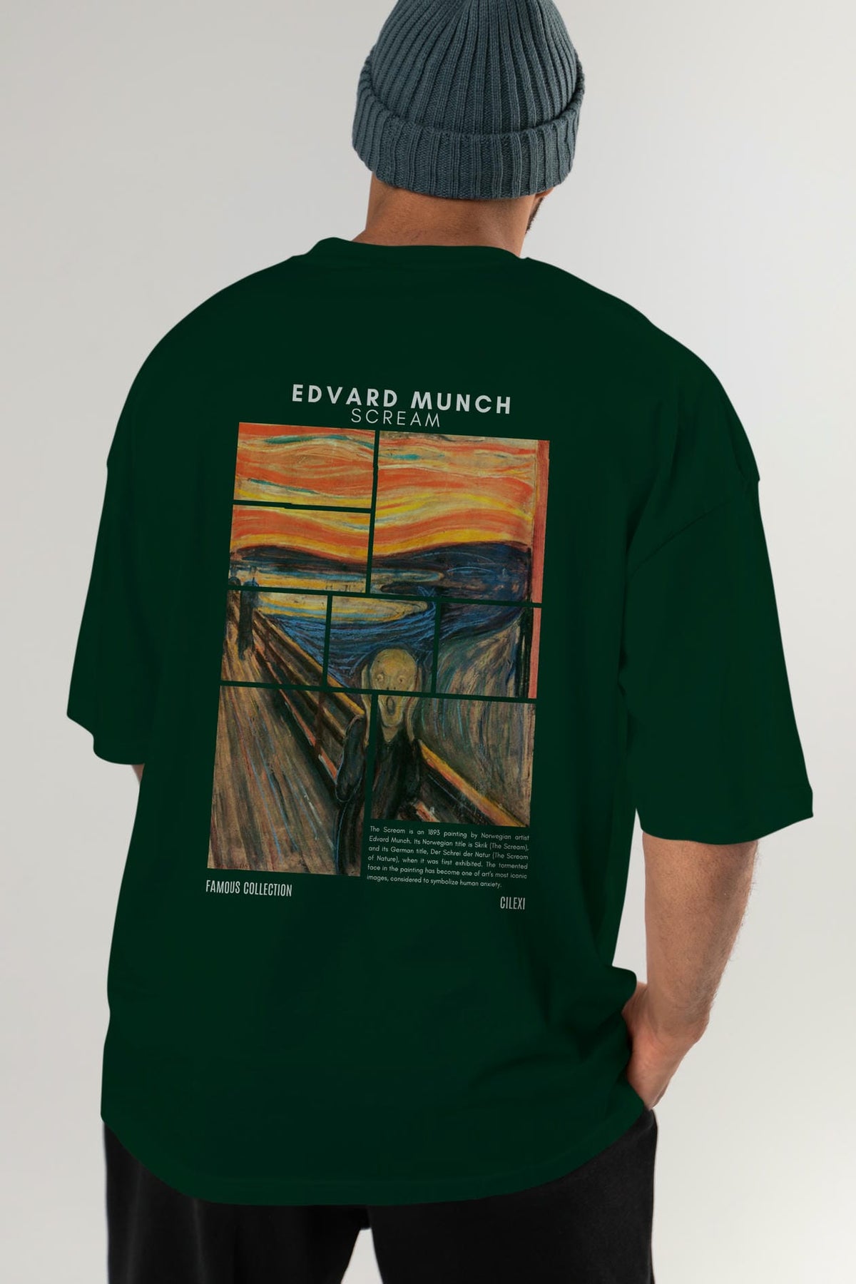 Edvard Munch Scream Arka Baskılı Oversize t-shirt Erkek Kadın Bisiklet Yaka Pamuk tişort