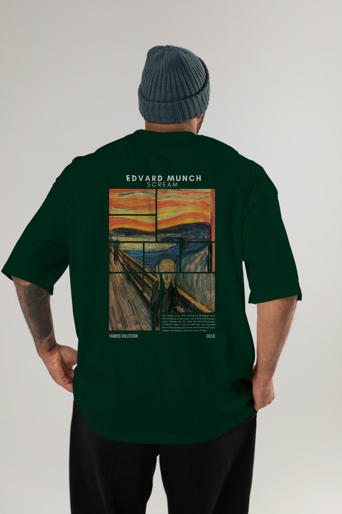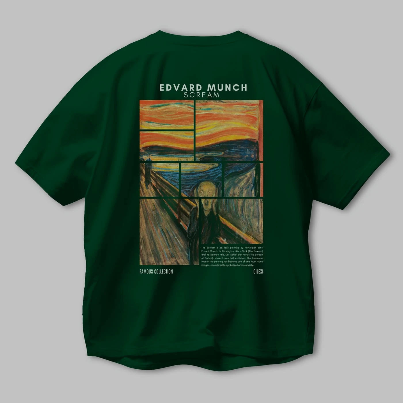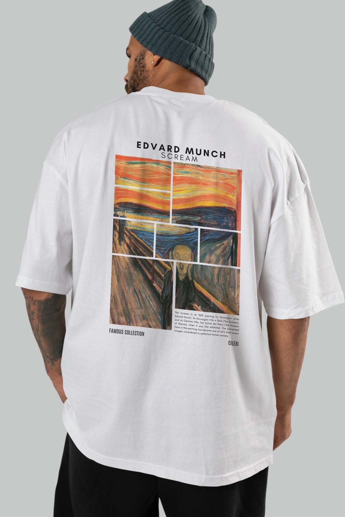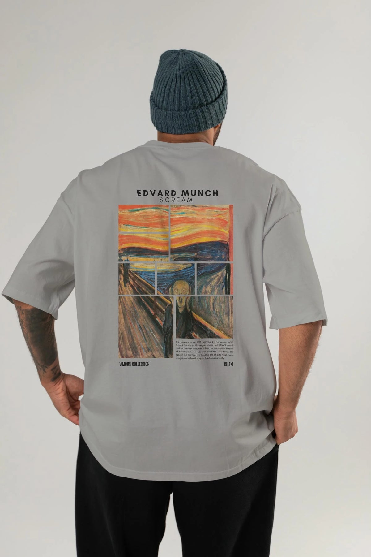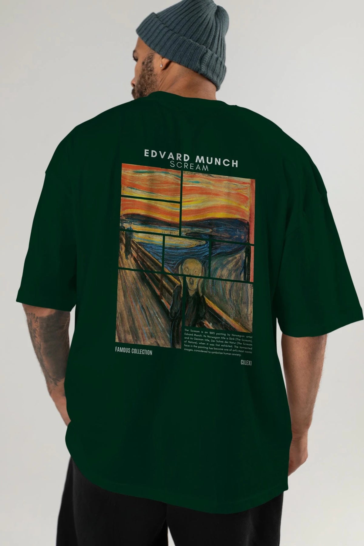 Edvard Munch Scream Arka Baskılı Oversize t-shirt Erkek Kadın Bisiklet Yaka Pamuk tişort