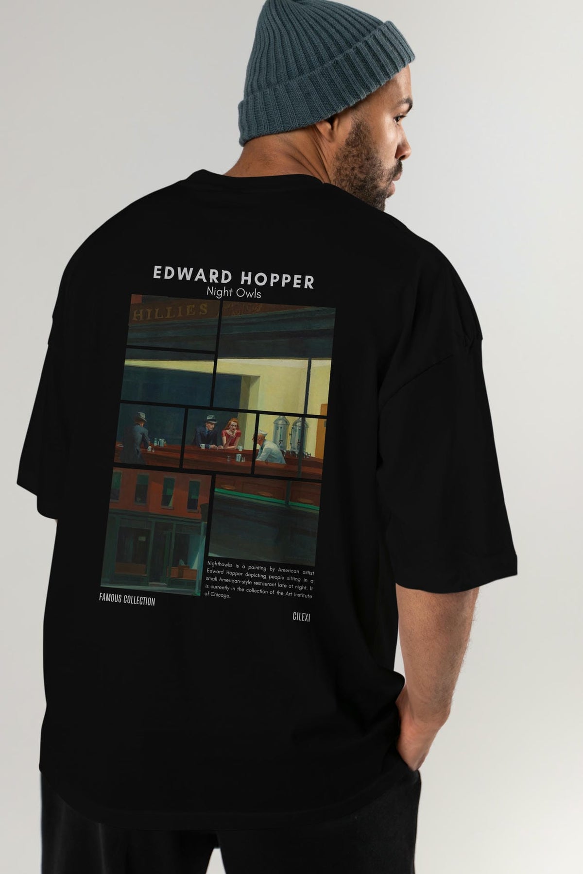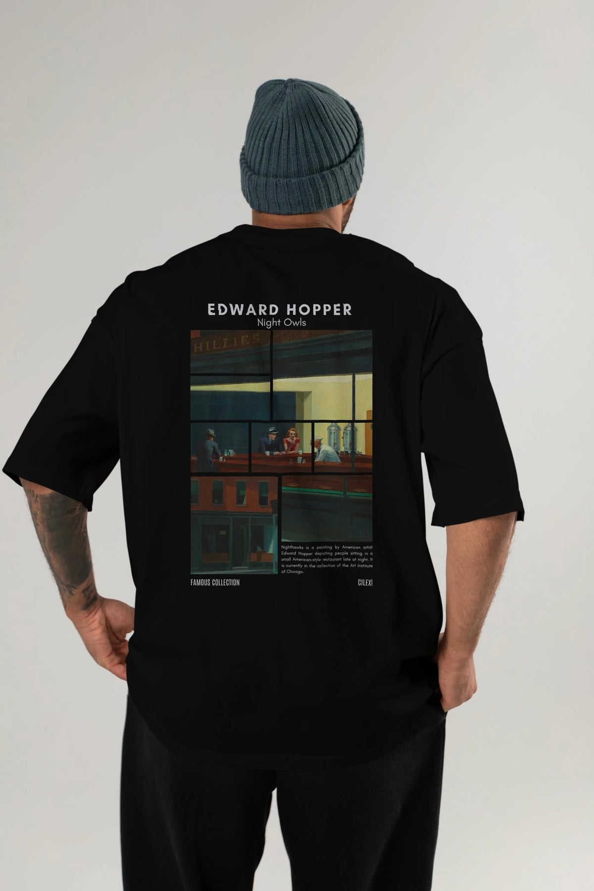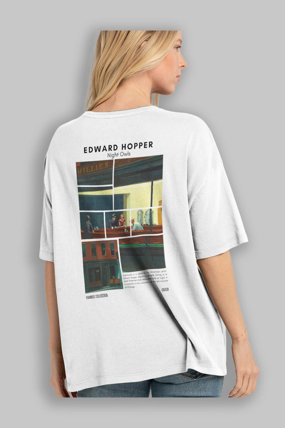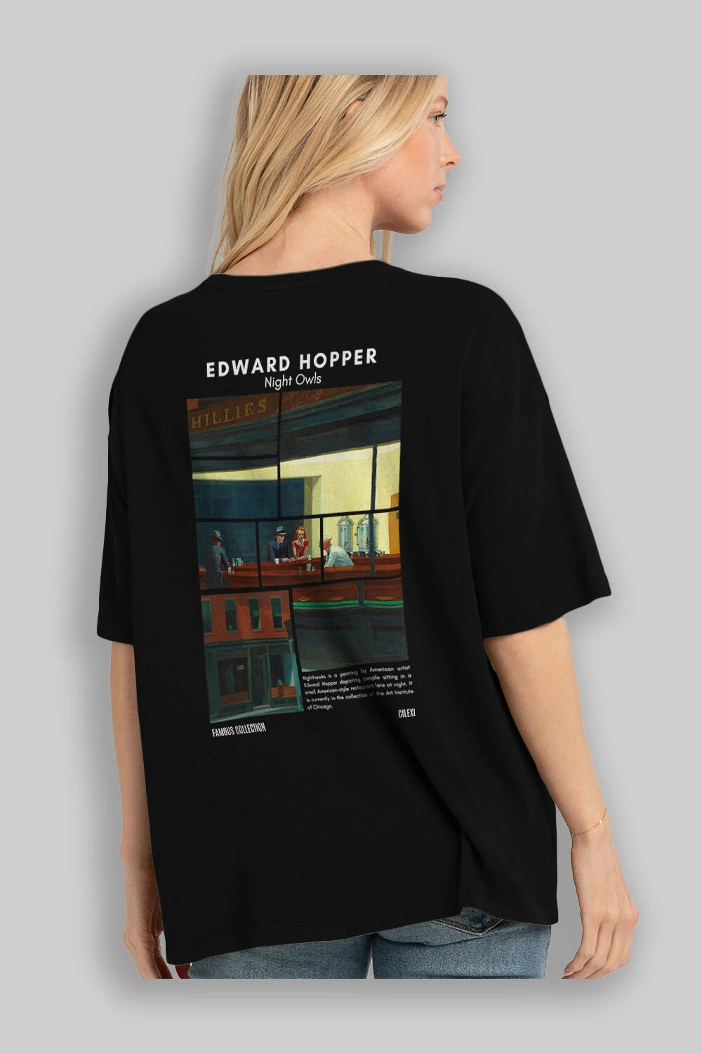 Edward Hopper Night Owls Arka Baskılı Oversize t-shirt Erkek Kadın Bisiklet Yaka Pamuk tişort