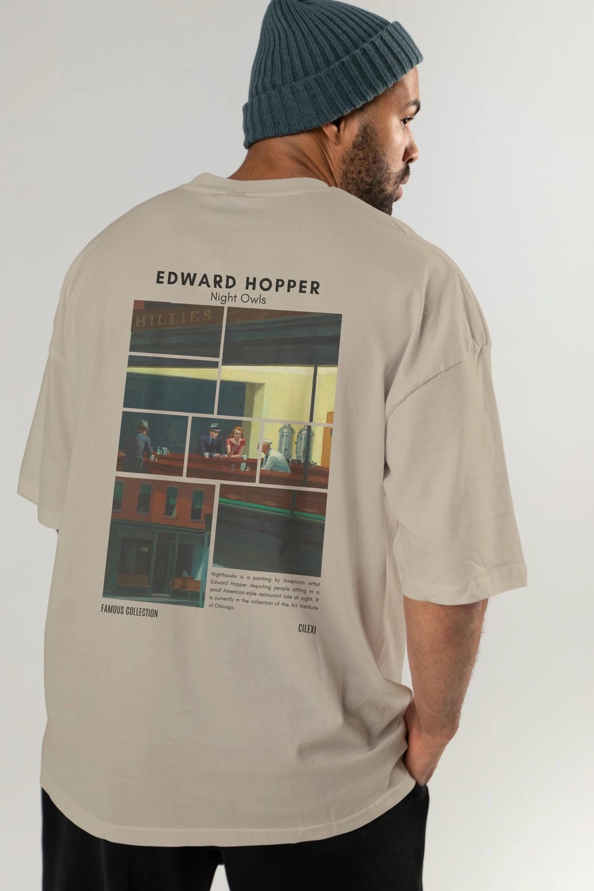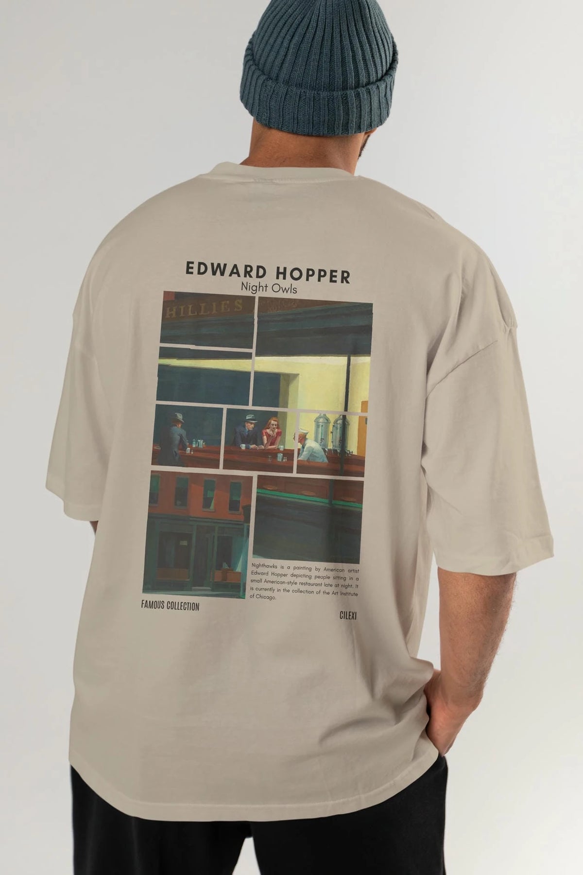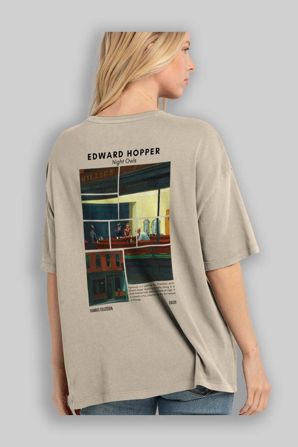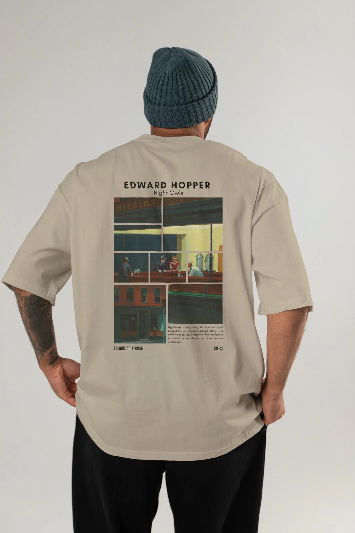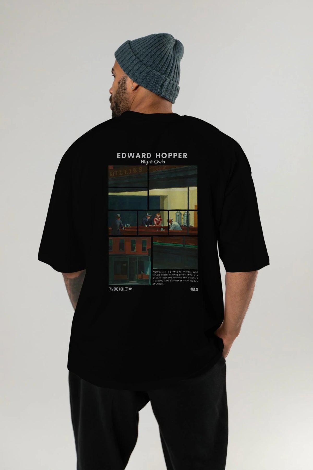 Edward Hopper Night Owls Arka Baskılı Oversize t-shirt Erkek Kadın Bisiklet Yaka Pamuk tişort