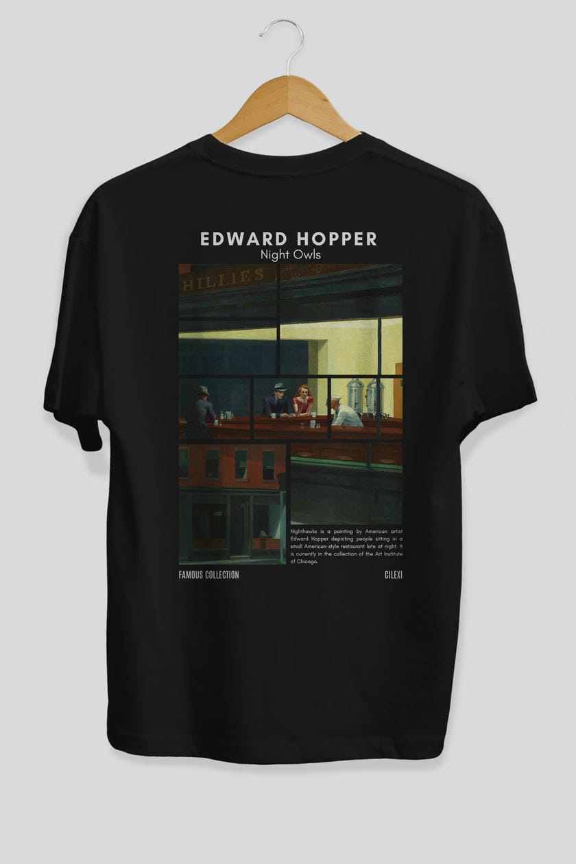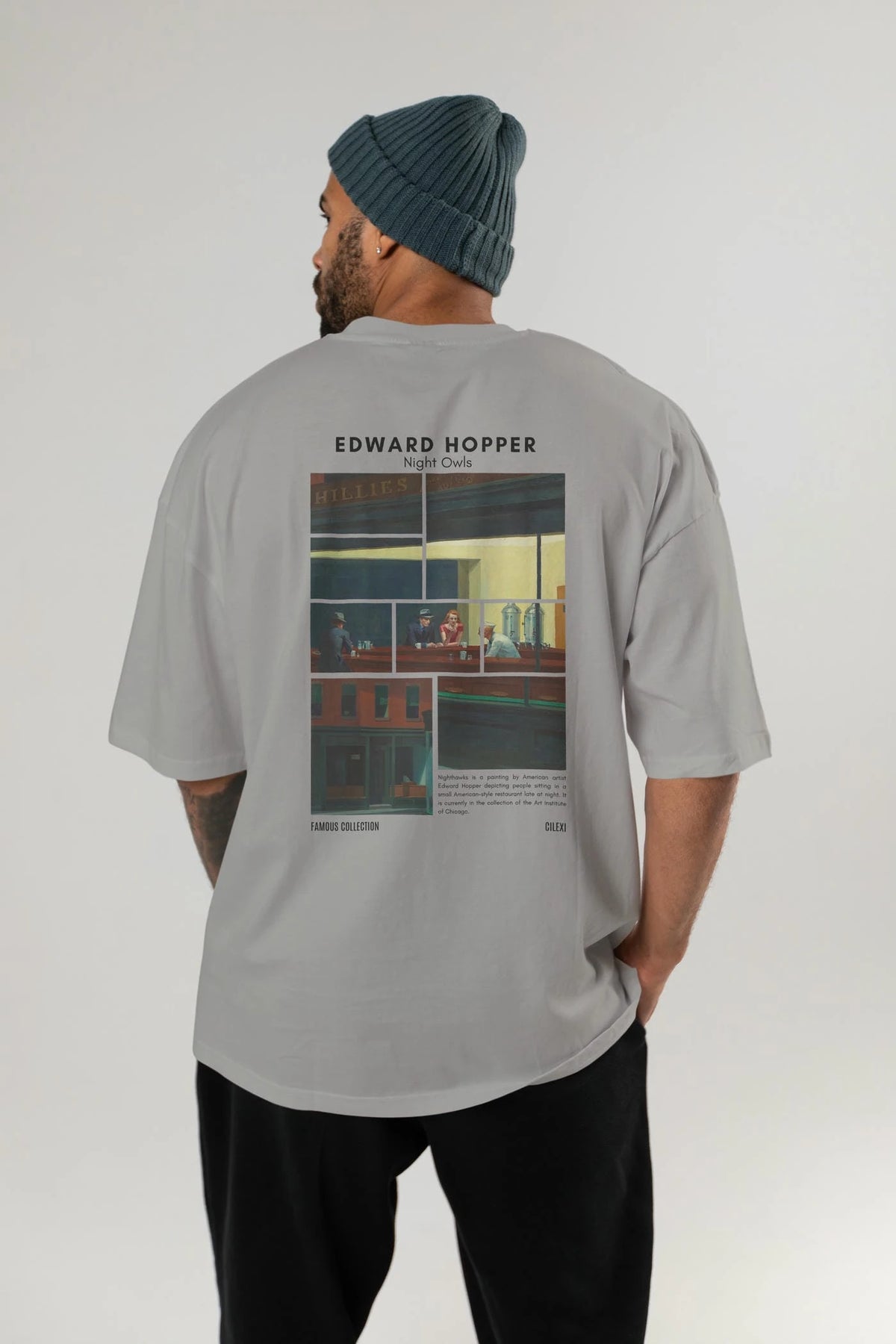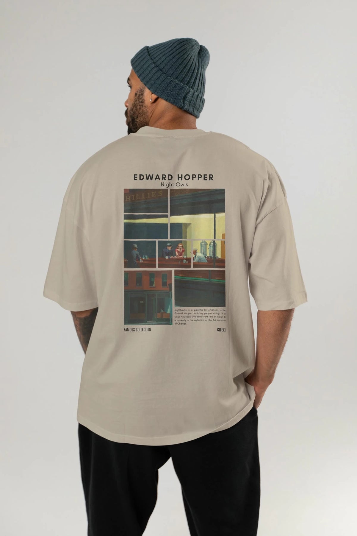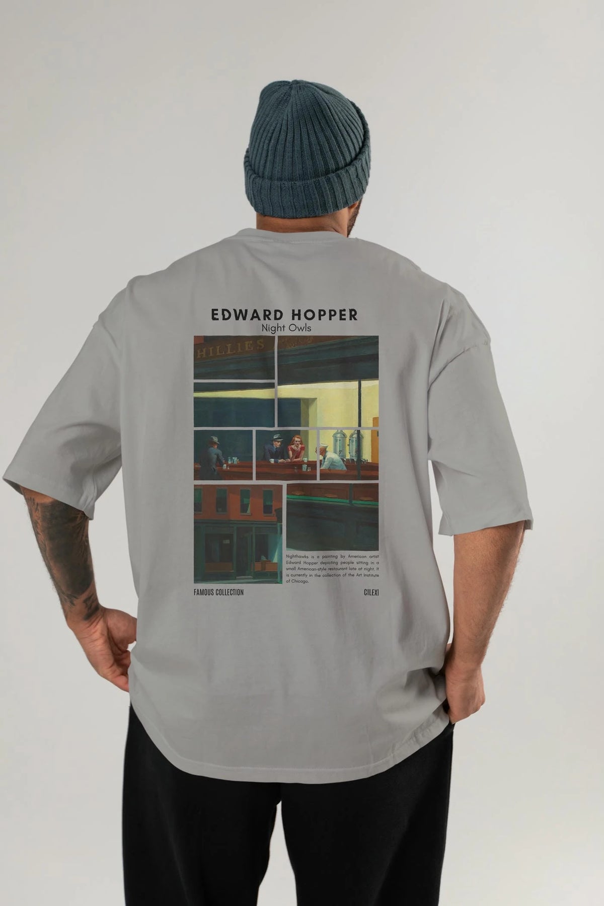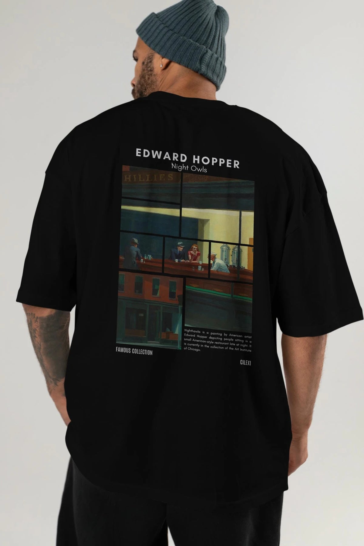 Edward Hopper Night Owls Arka Baskılı Oversize t-shirt Erkek Kadın Bisiklet Yaka Pamuk tişort