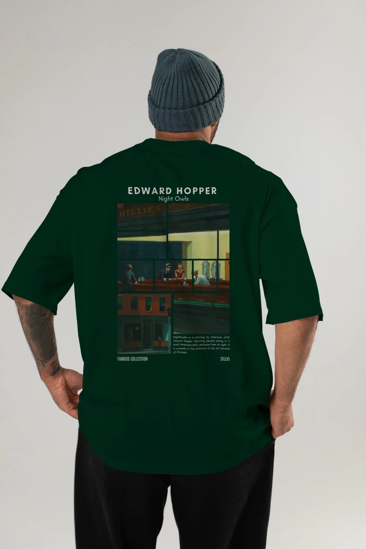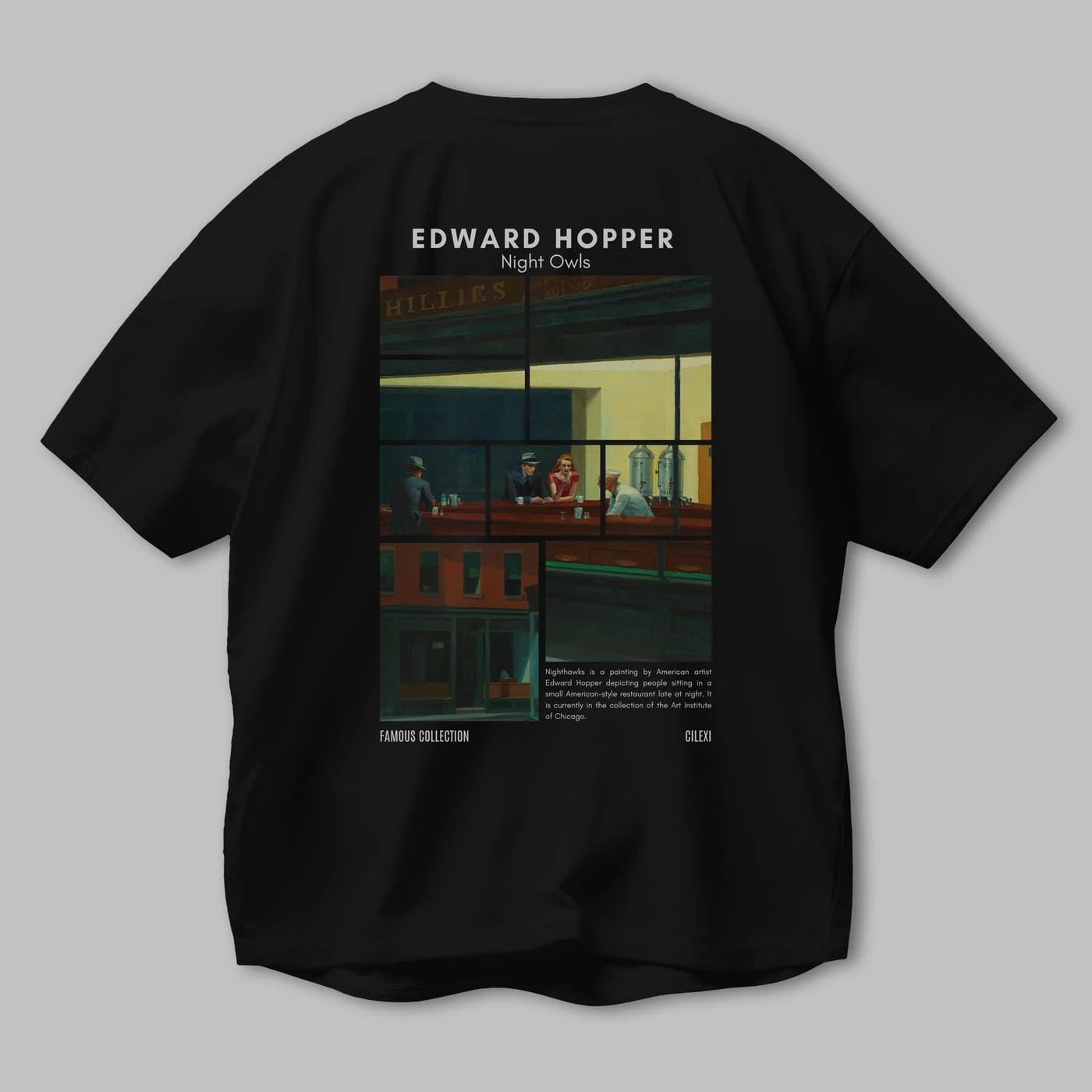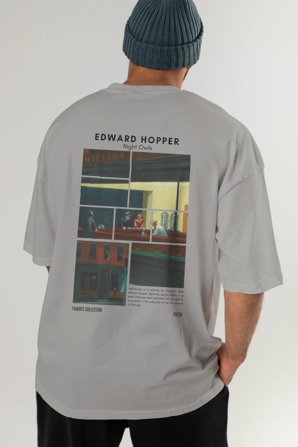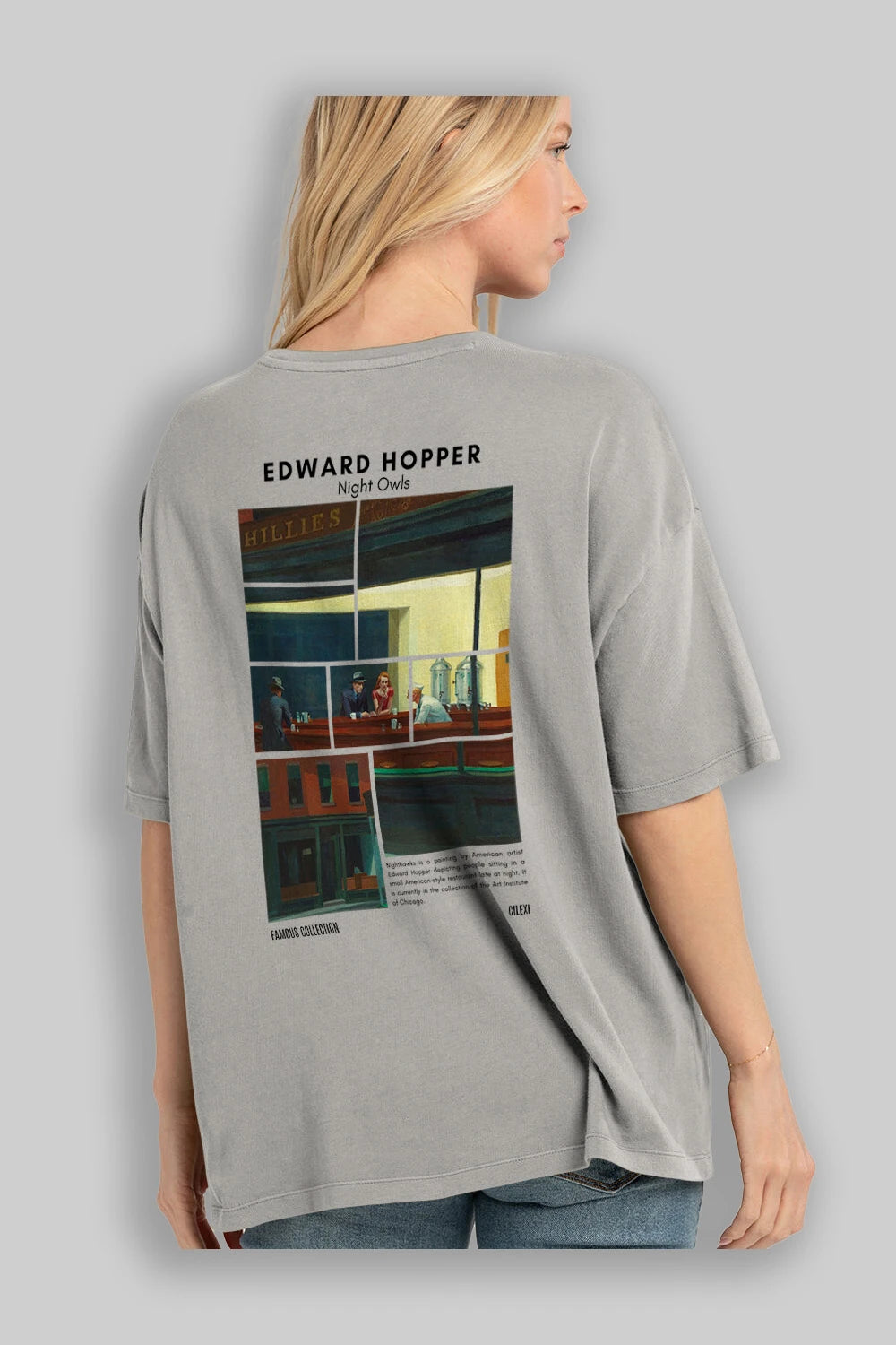 Edward Hopper Night Owls Arka Baskılı Oversize t-shirt Erkek Kadın Bisiklet Yaka Pamuk tişort