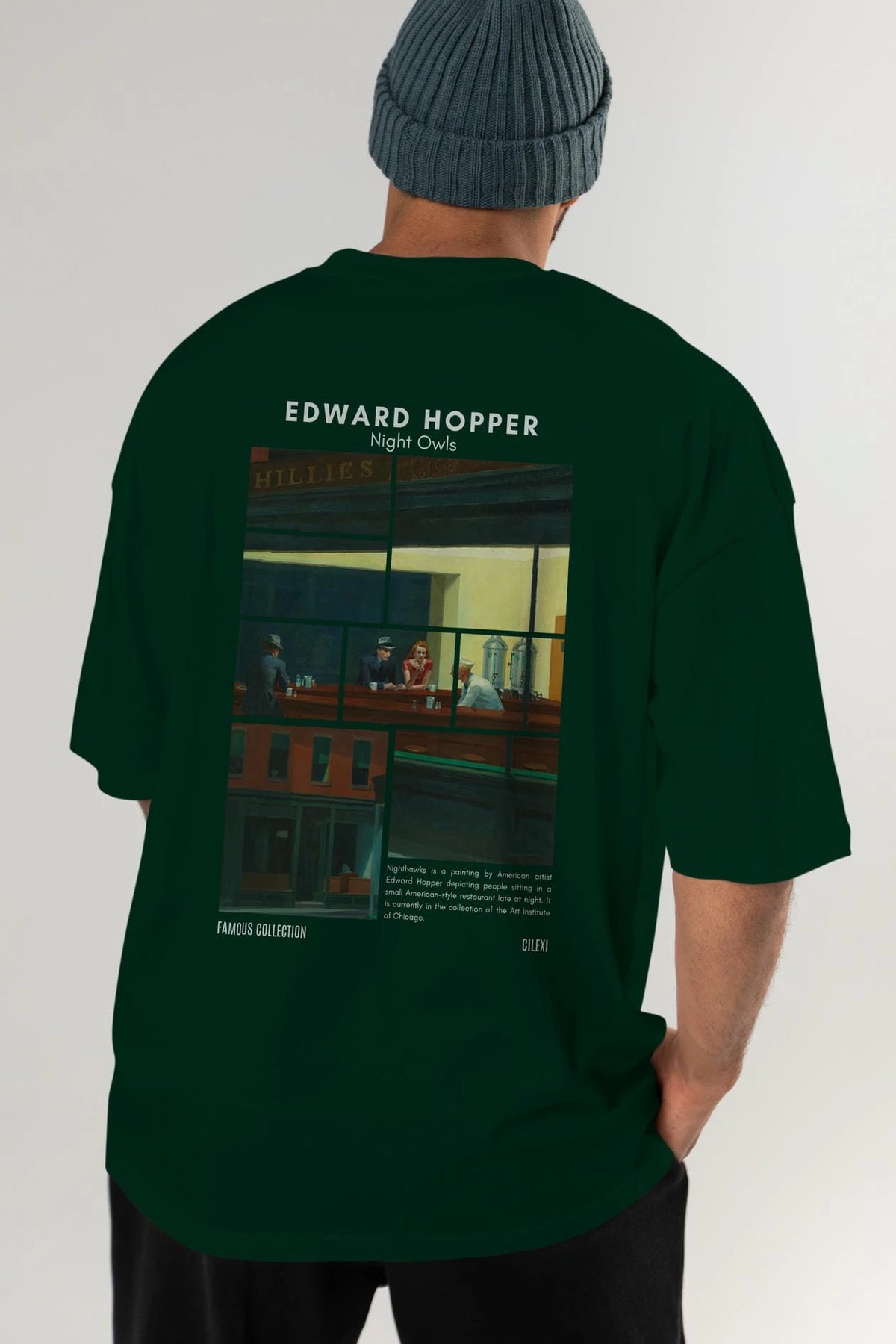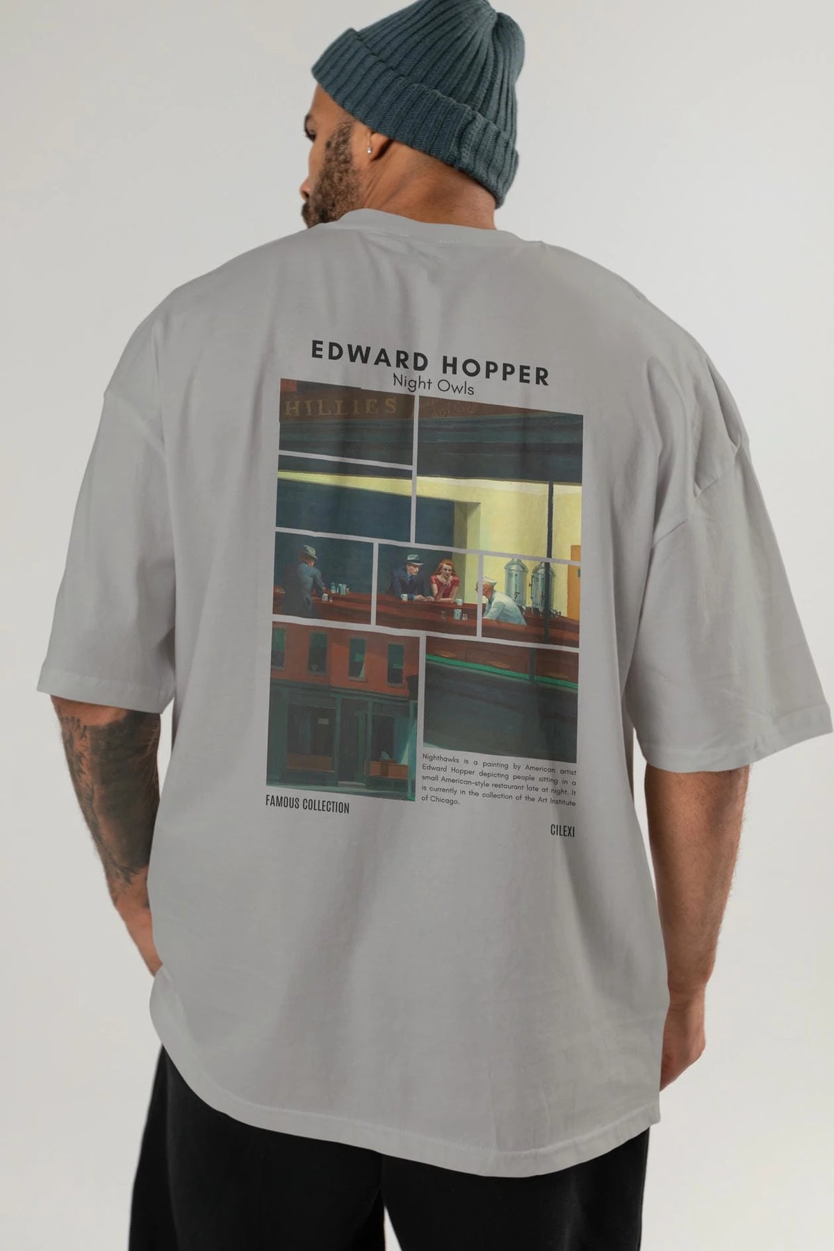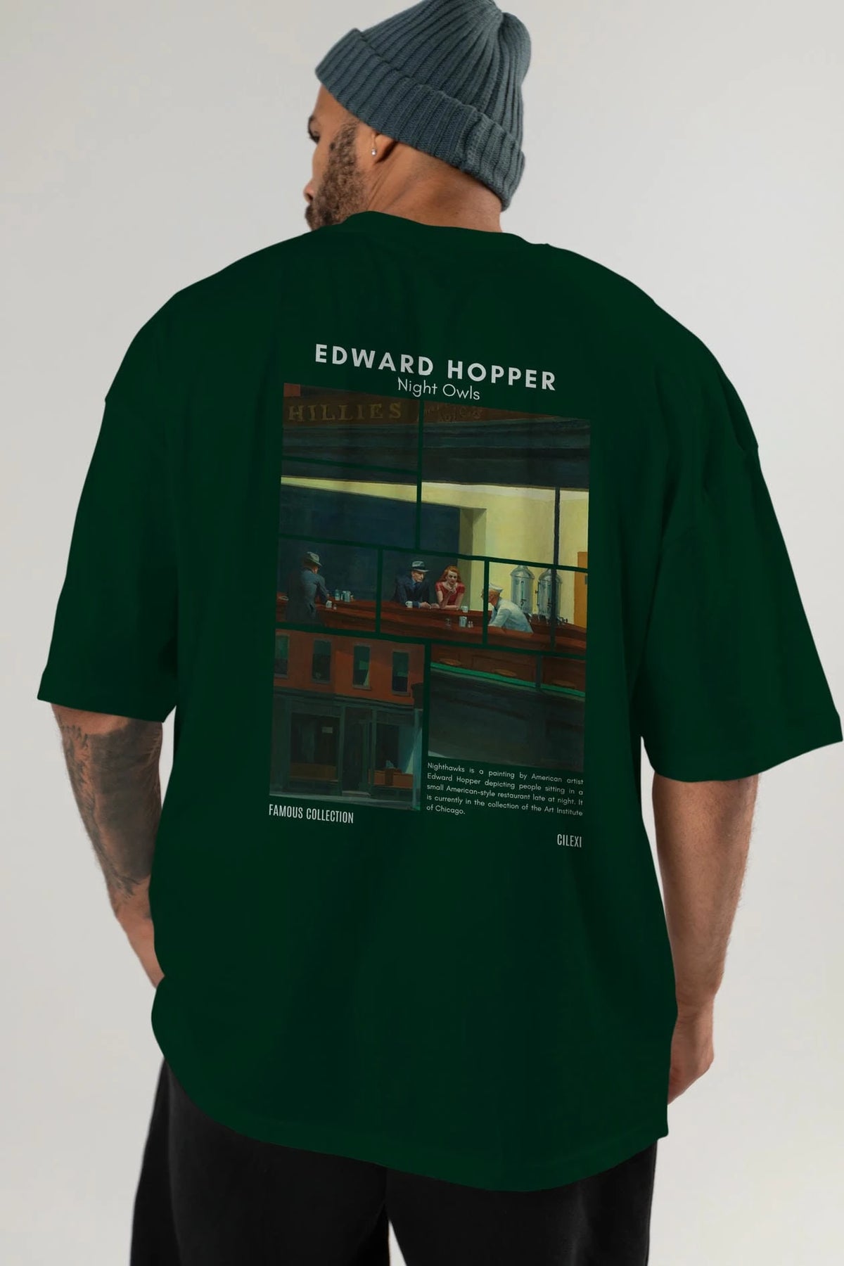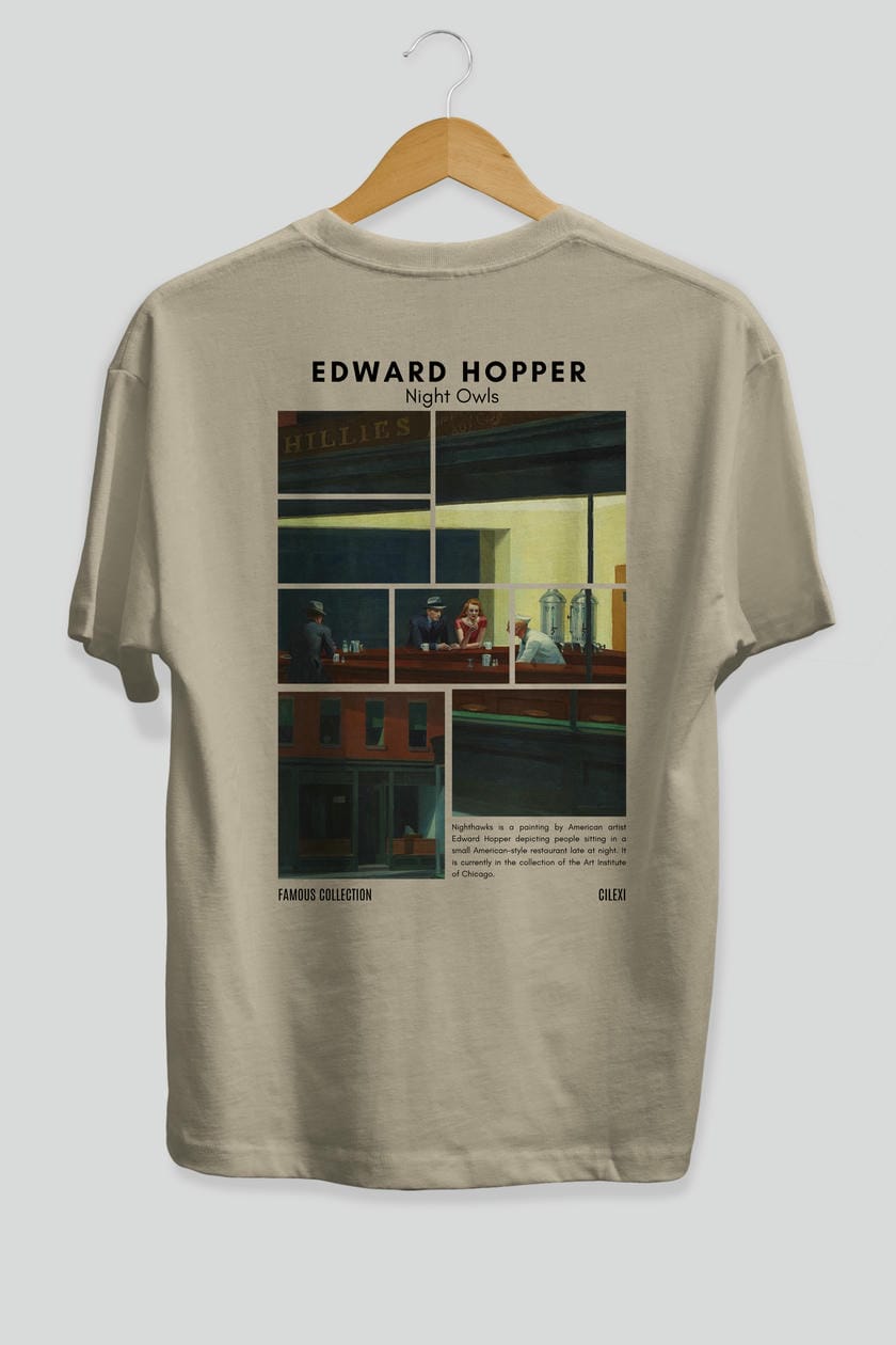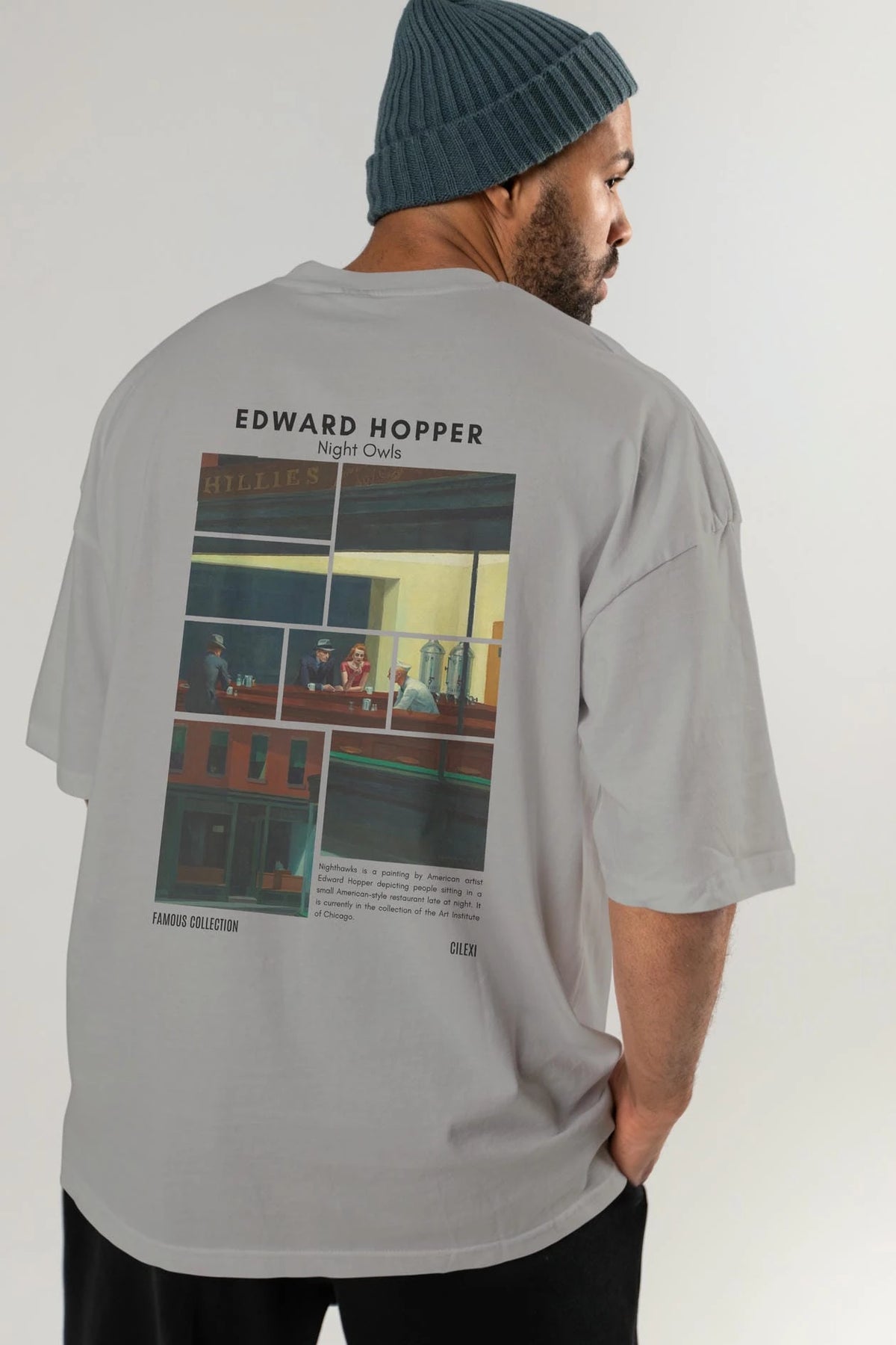 Edward Hopper Night Owls Arka Baskılı Oversize t-shirt Erkek Kadın Bisiklet Yaka Pamuk tişort