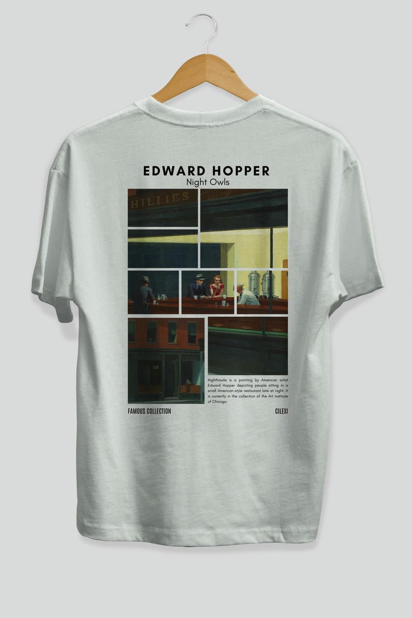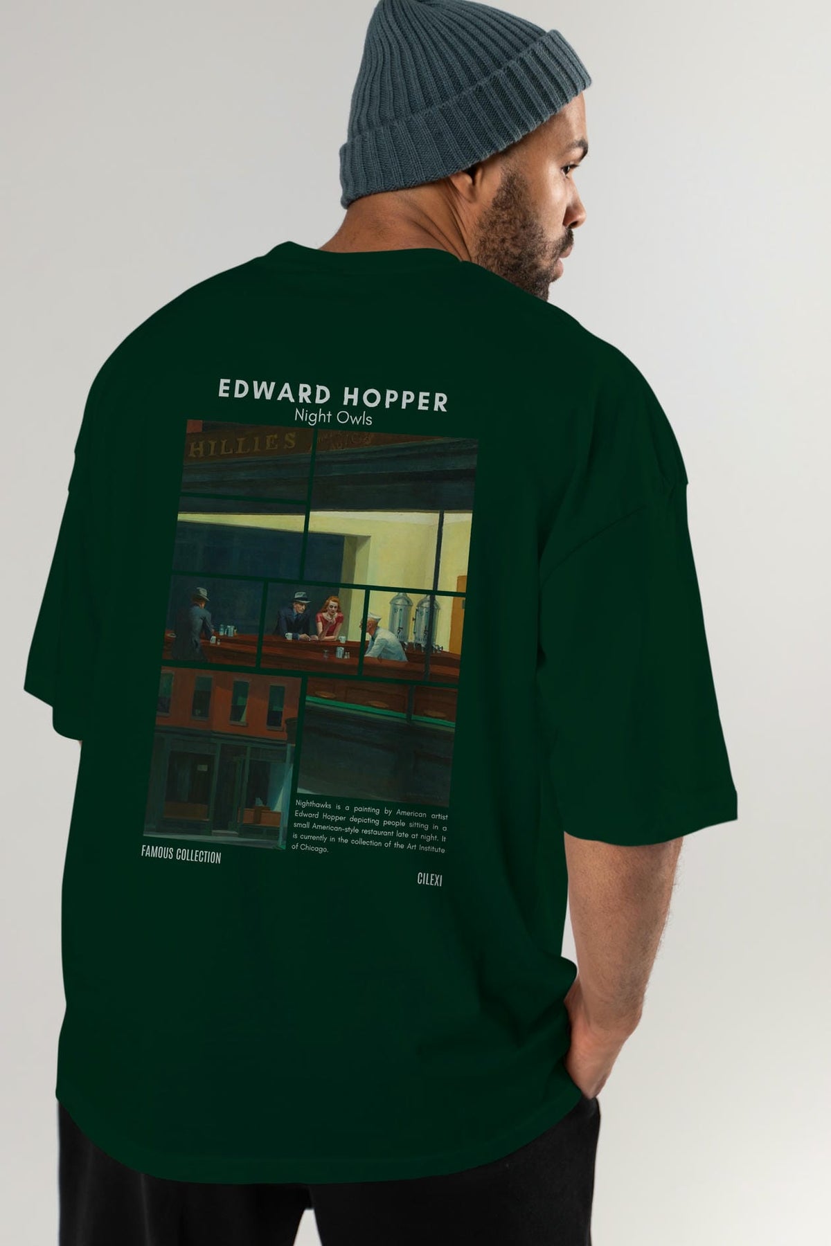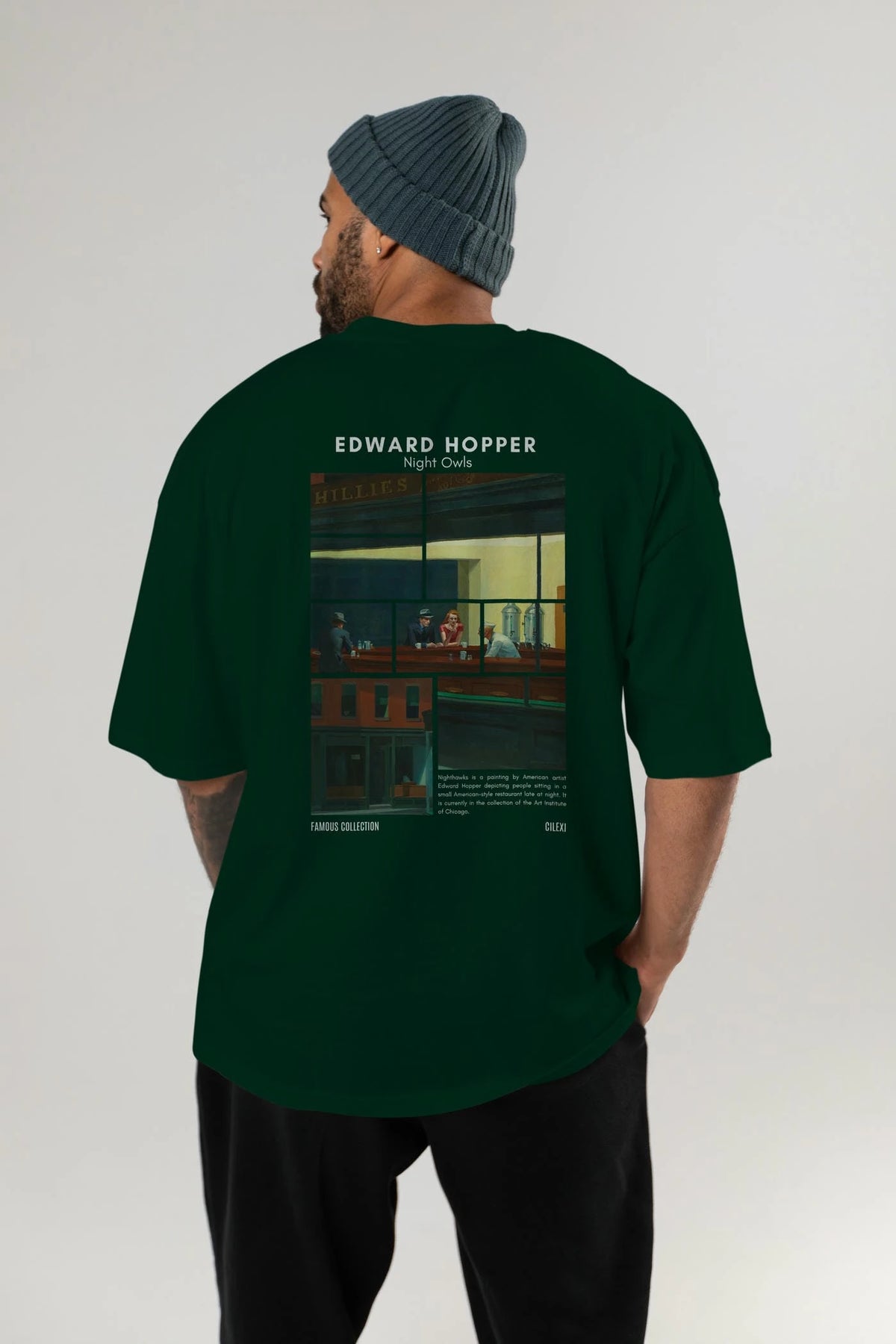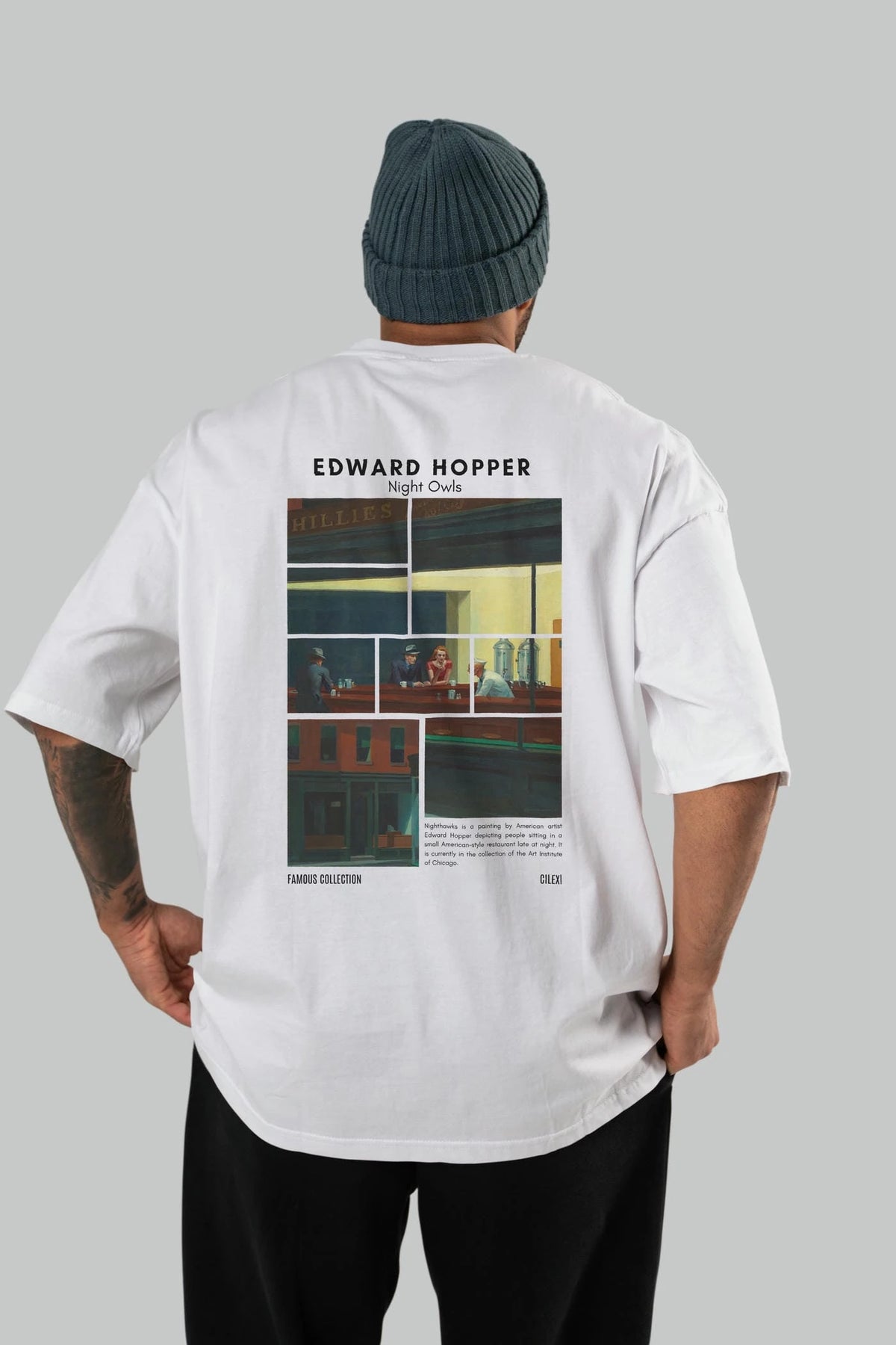 Edward Hopper Night Owls Arka Baskılı Oversize t-shirt Erkek Kadın Bisiklet Yaka Pamuk tişort