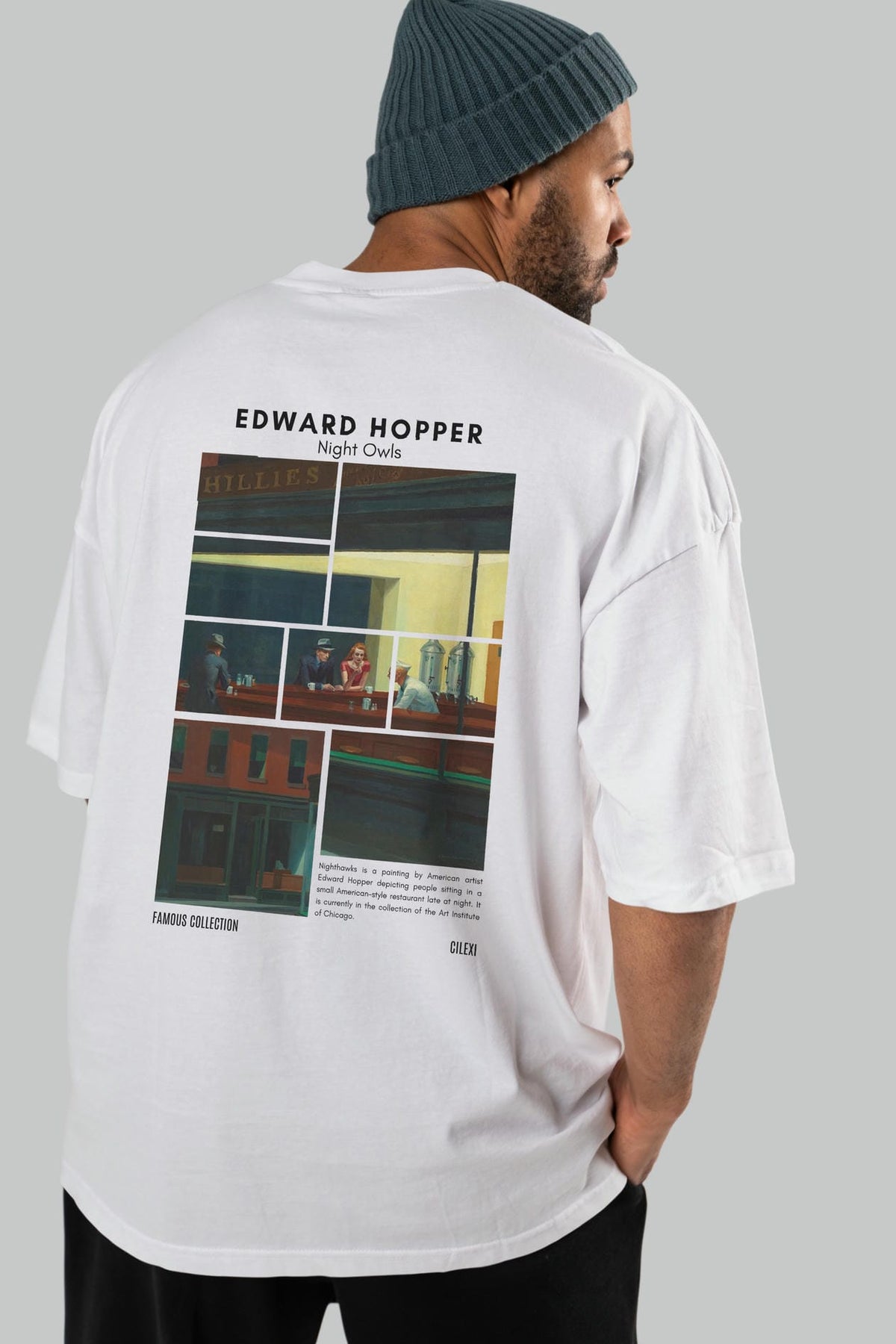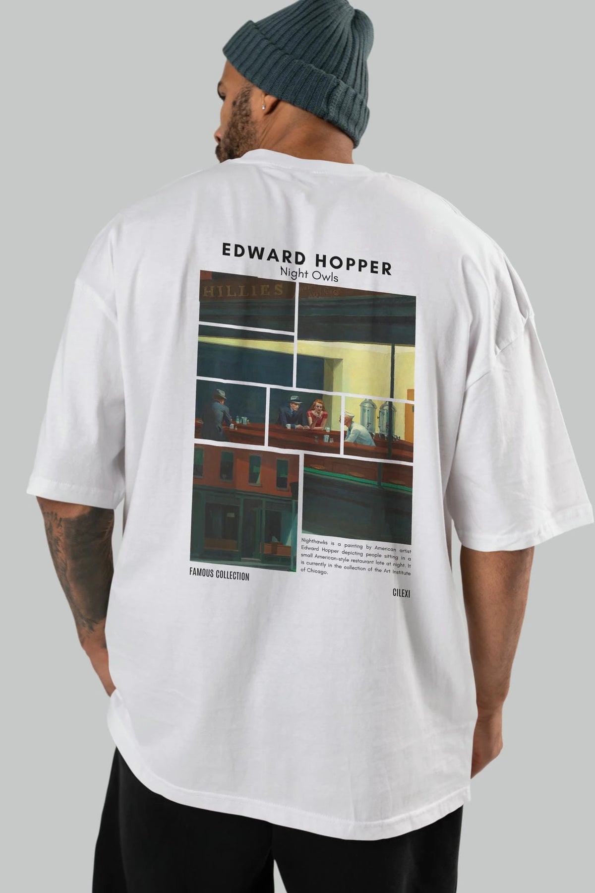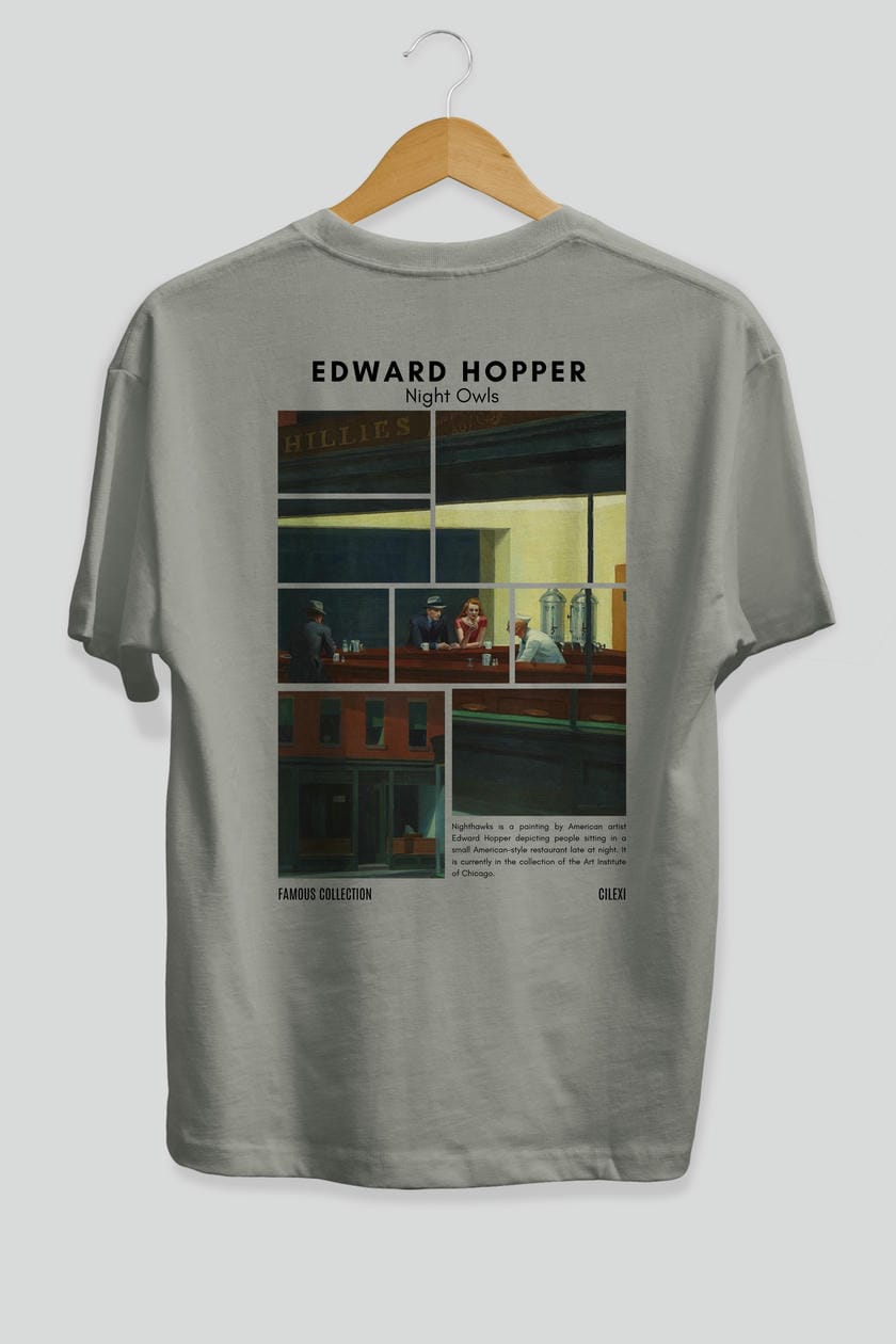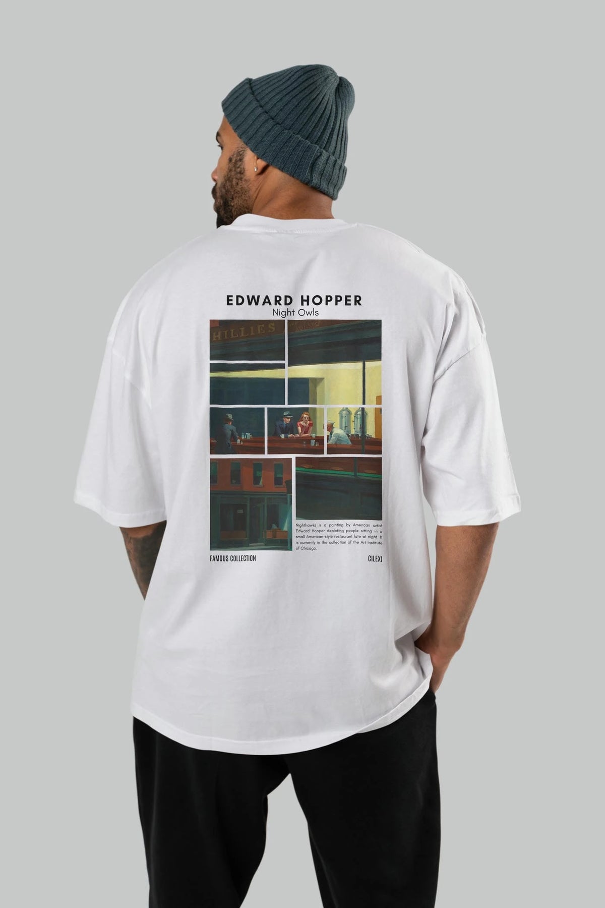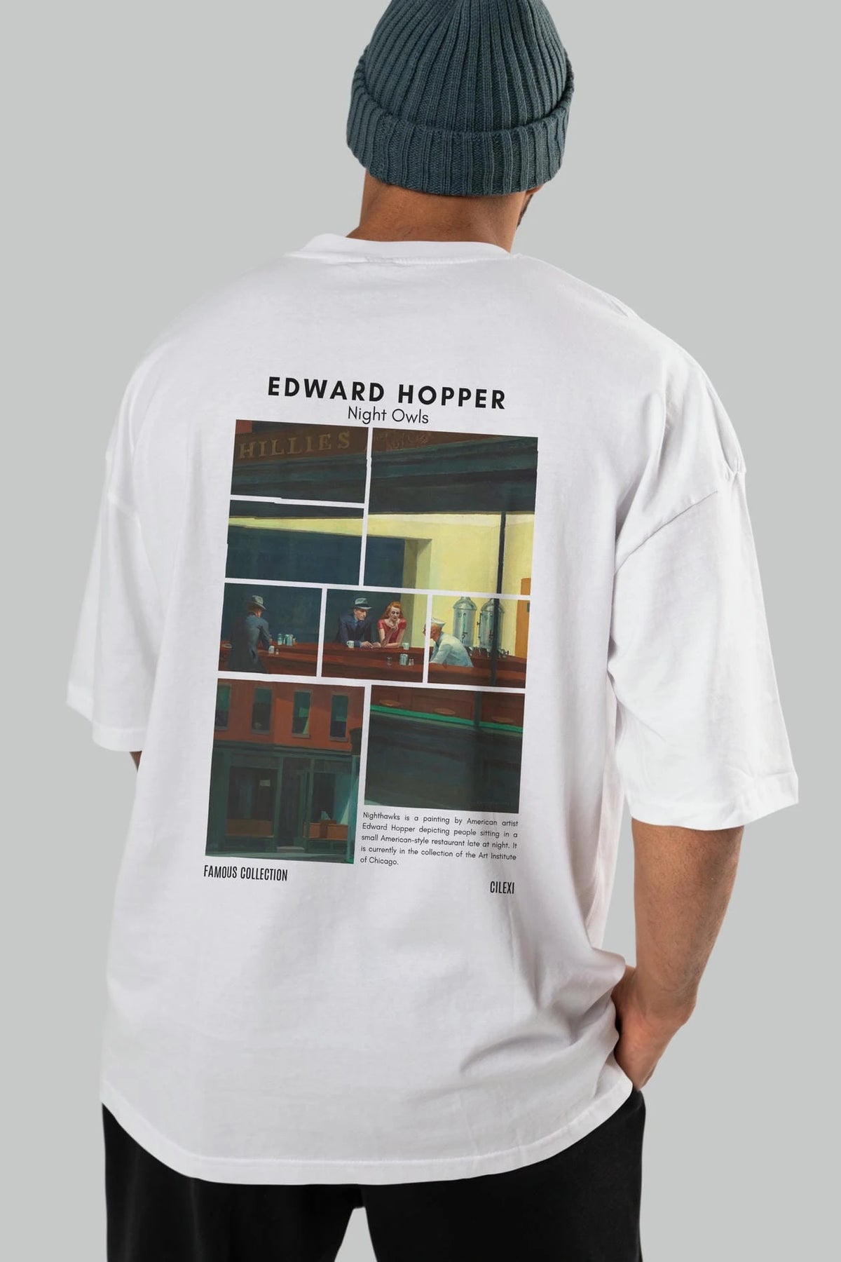 Edward Hopper Night Owls Arka Baskılı Oversize t-shirt Erkek Kadın Bisiklet Yaka Pamuk tişort