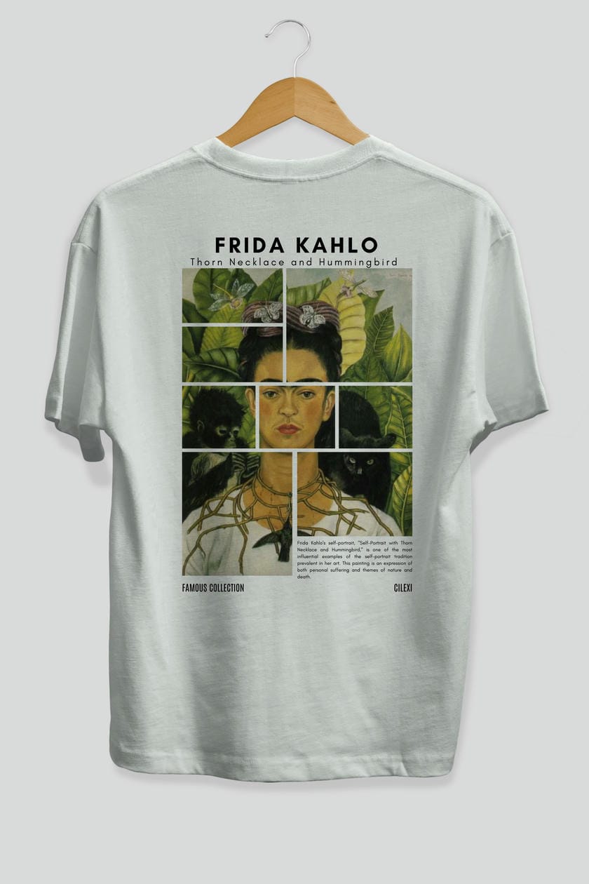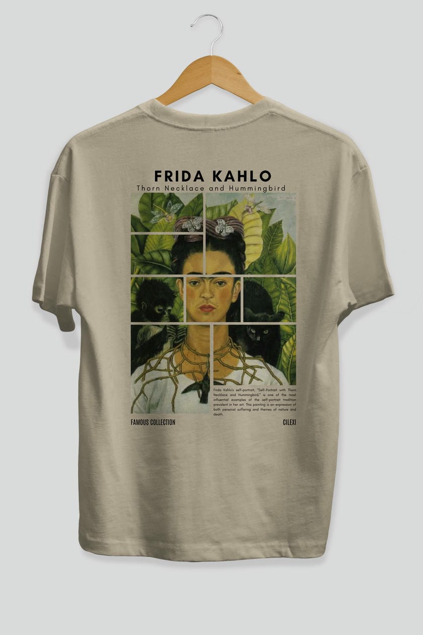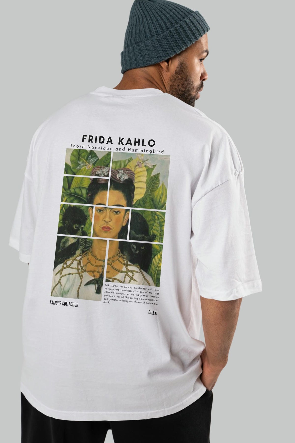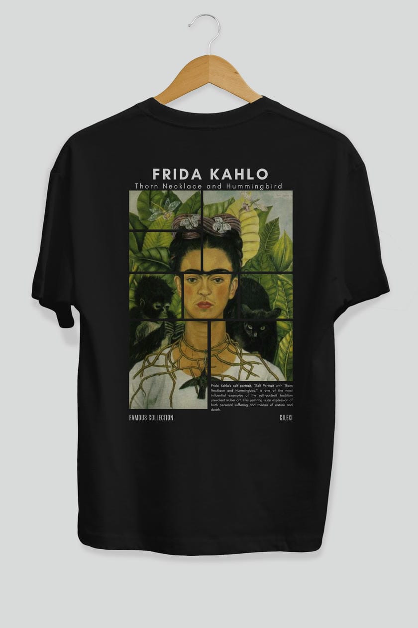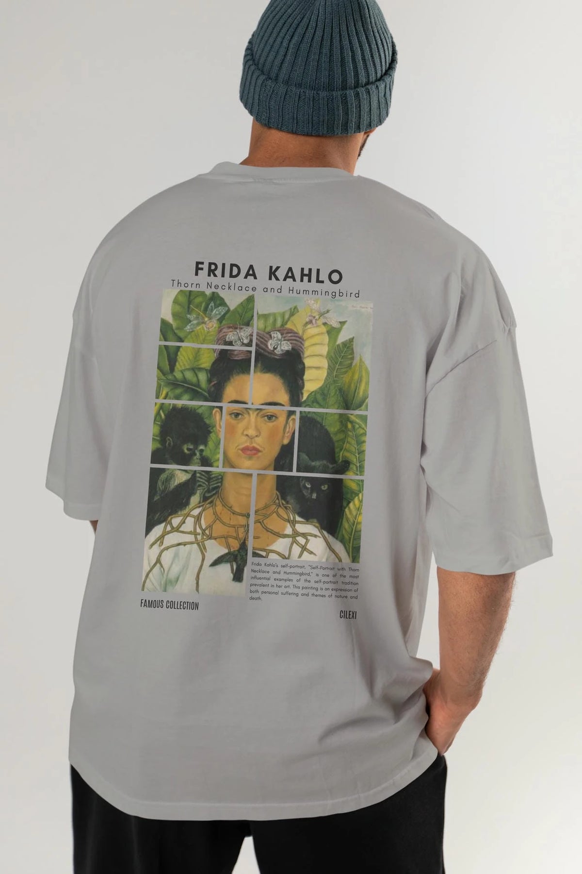 Frida Kahlo Arka Baskılı Oversize t-shirt Erkek Kadın Bisiklet Yaka Pamuk tişort