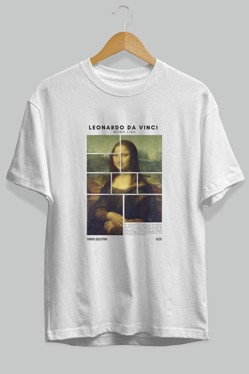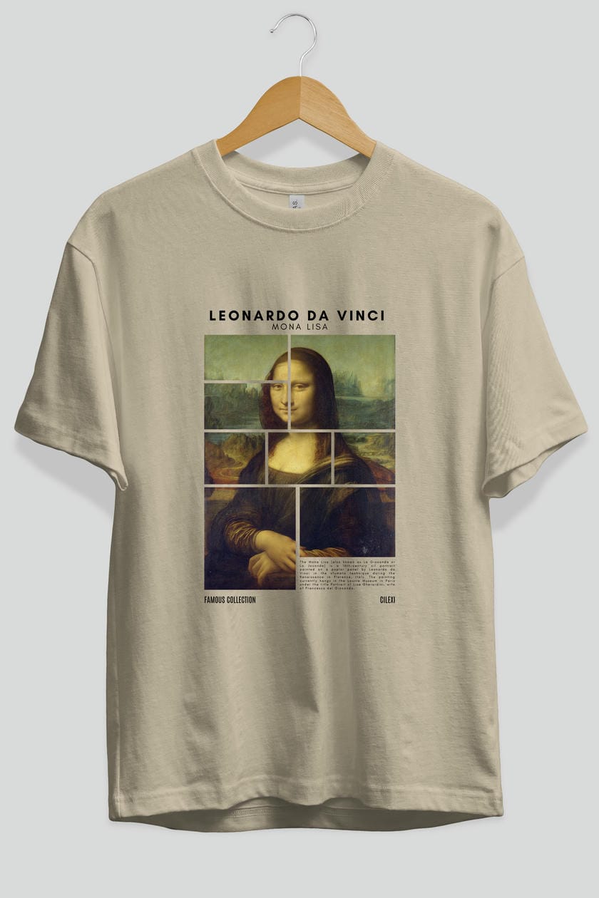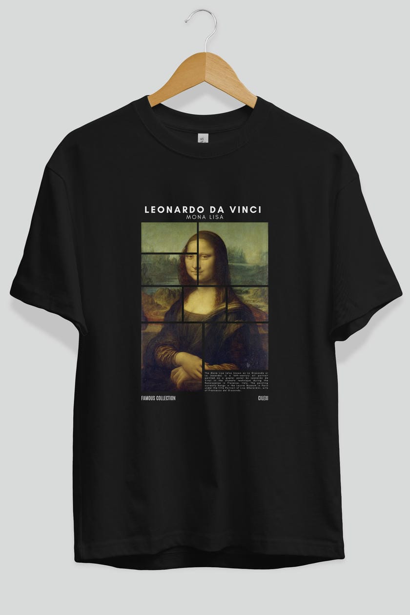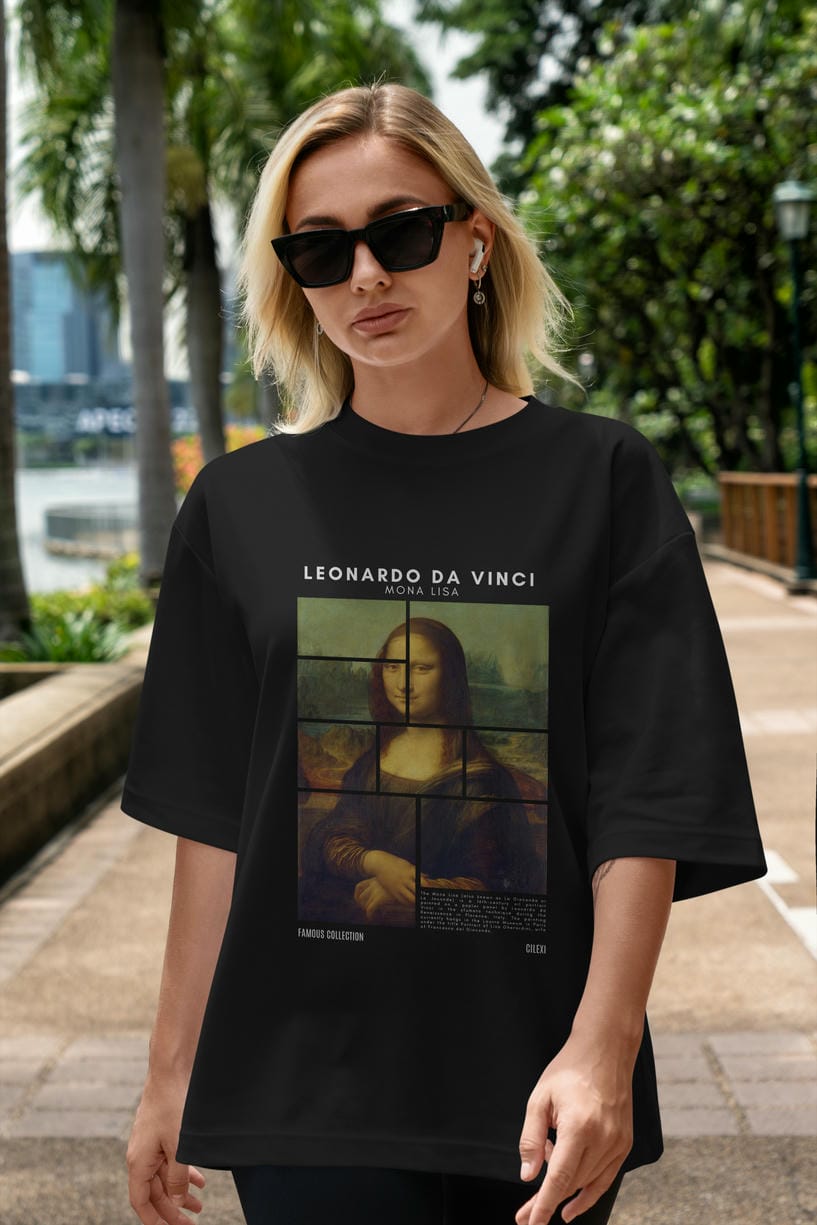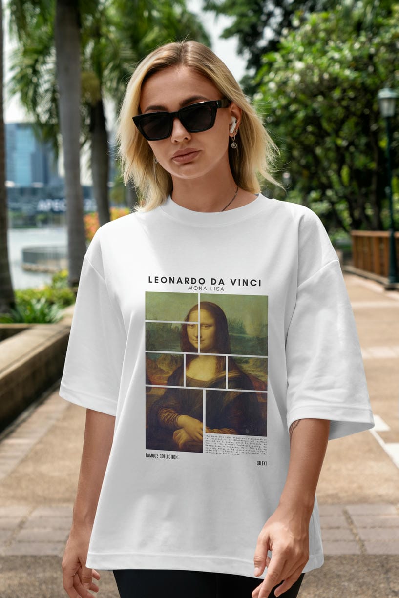 Leonardo Da Vinci Mona Lisa ön Baskılı Oversize t-shirt Erkek Kadın Bisiklet Yaka Pamuk tişort