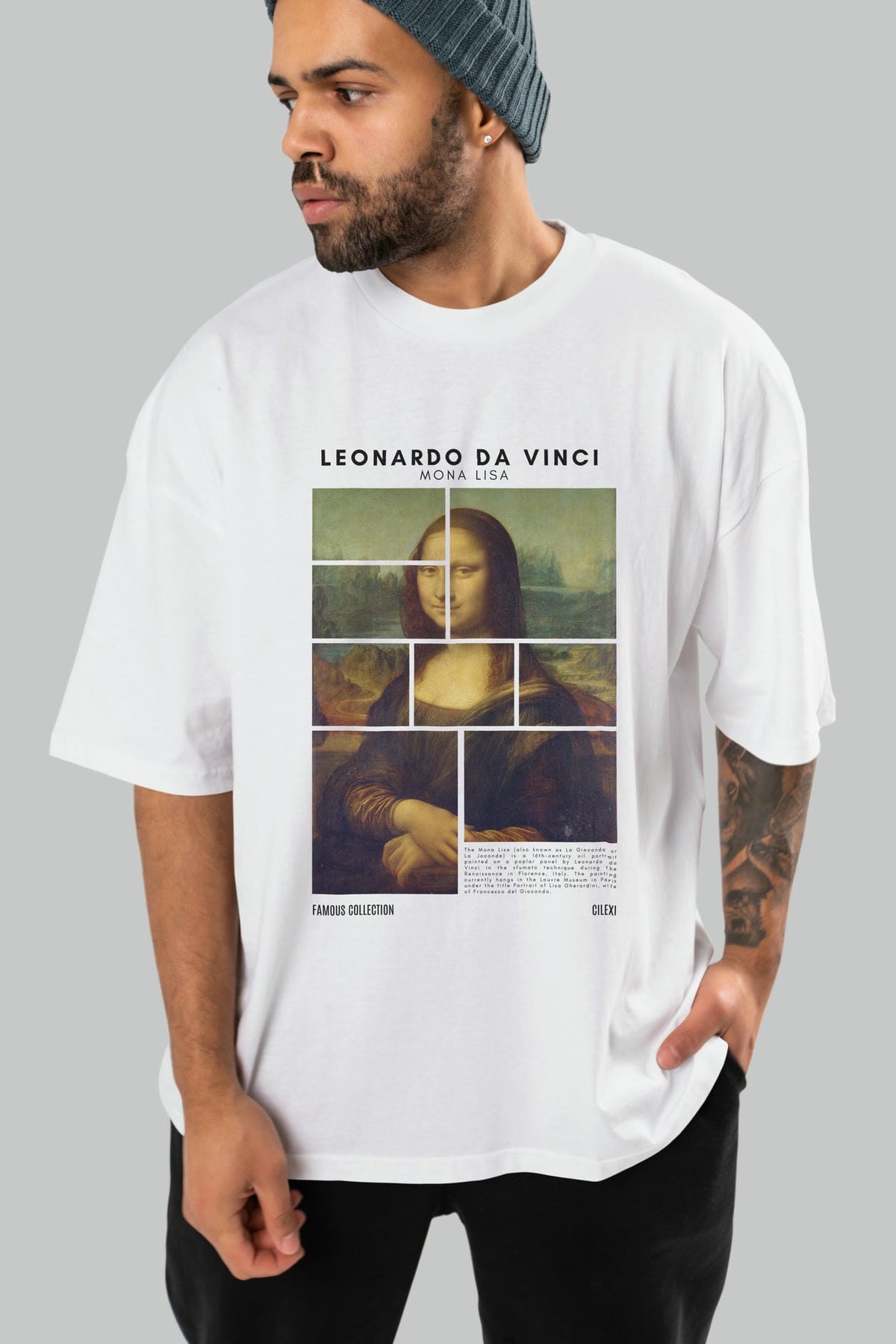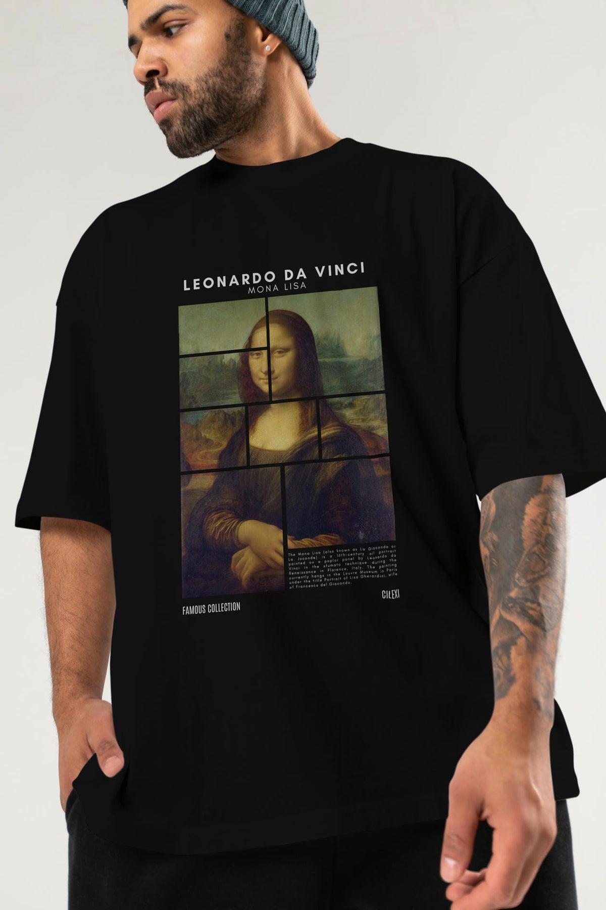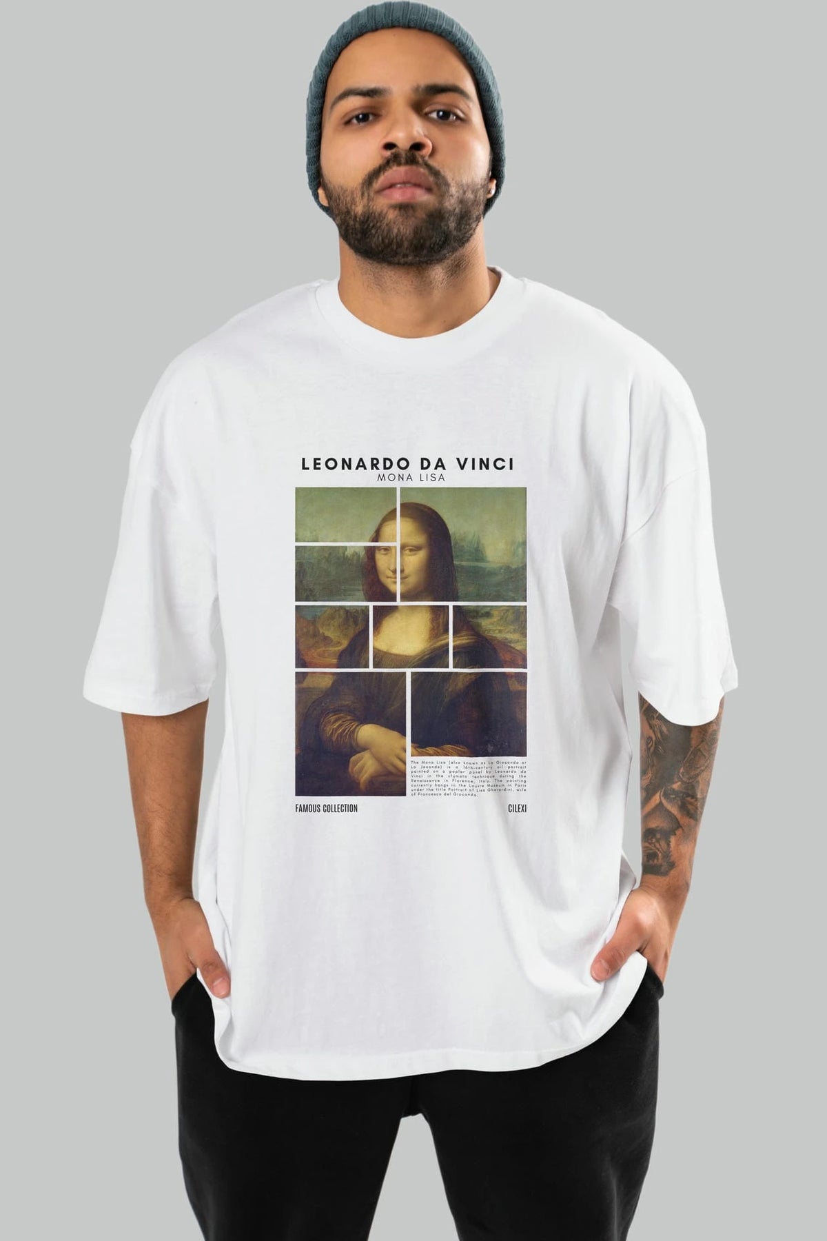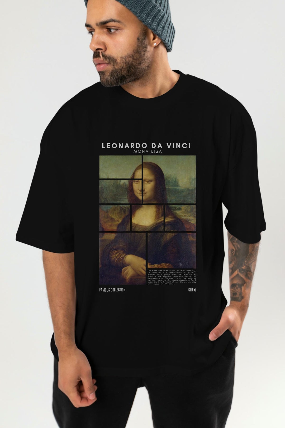 Leonardo Da Vinci Mona Lisa ön Baskılı Oversize t-shirt Erkek Kadın Bisiklet Yaka Pamuk tişort