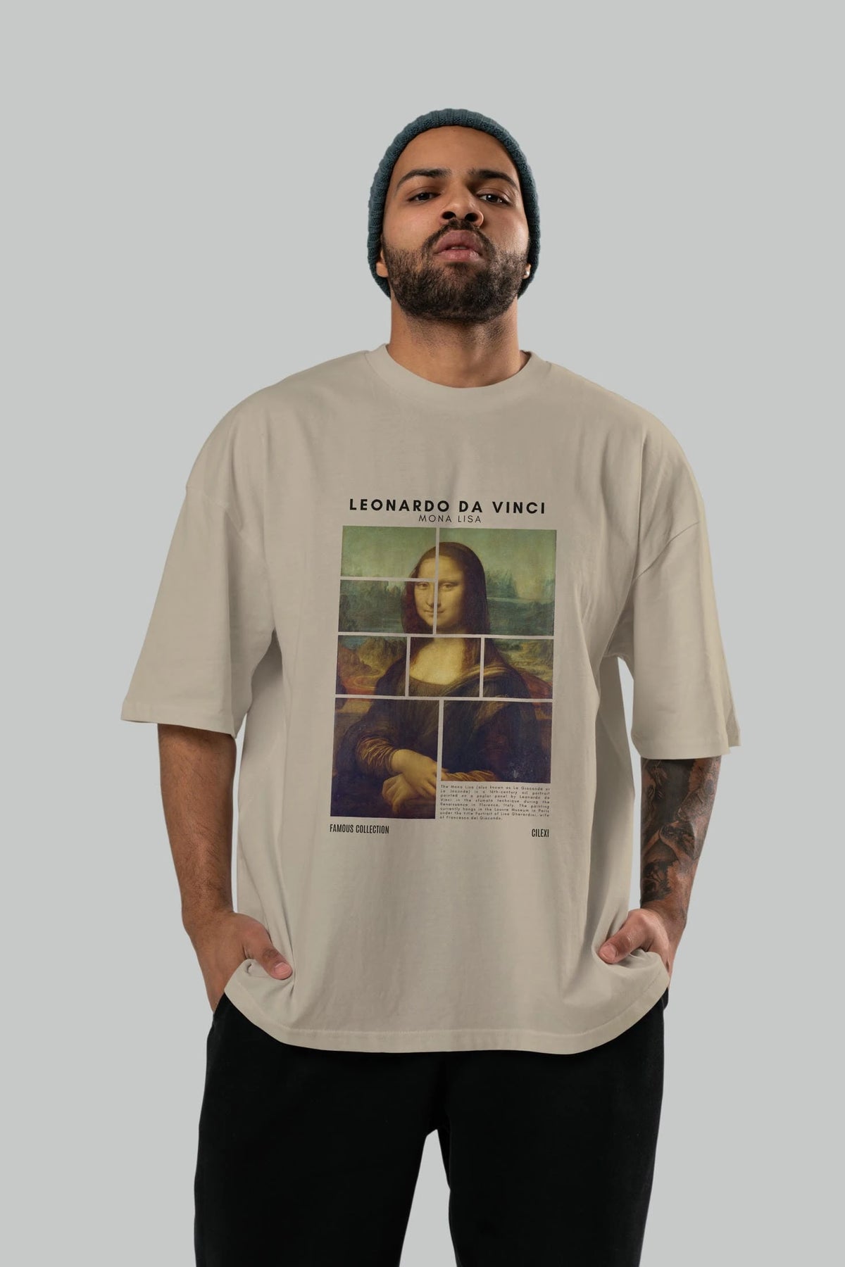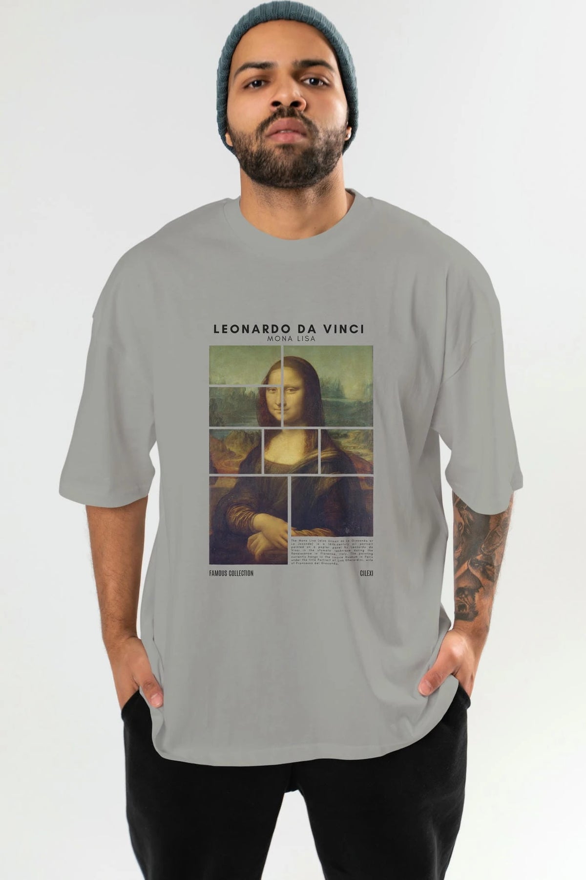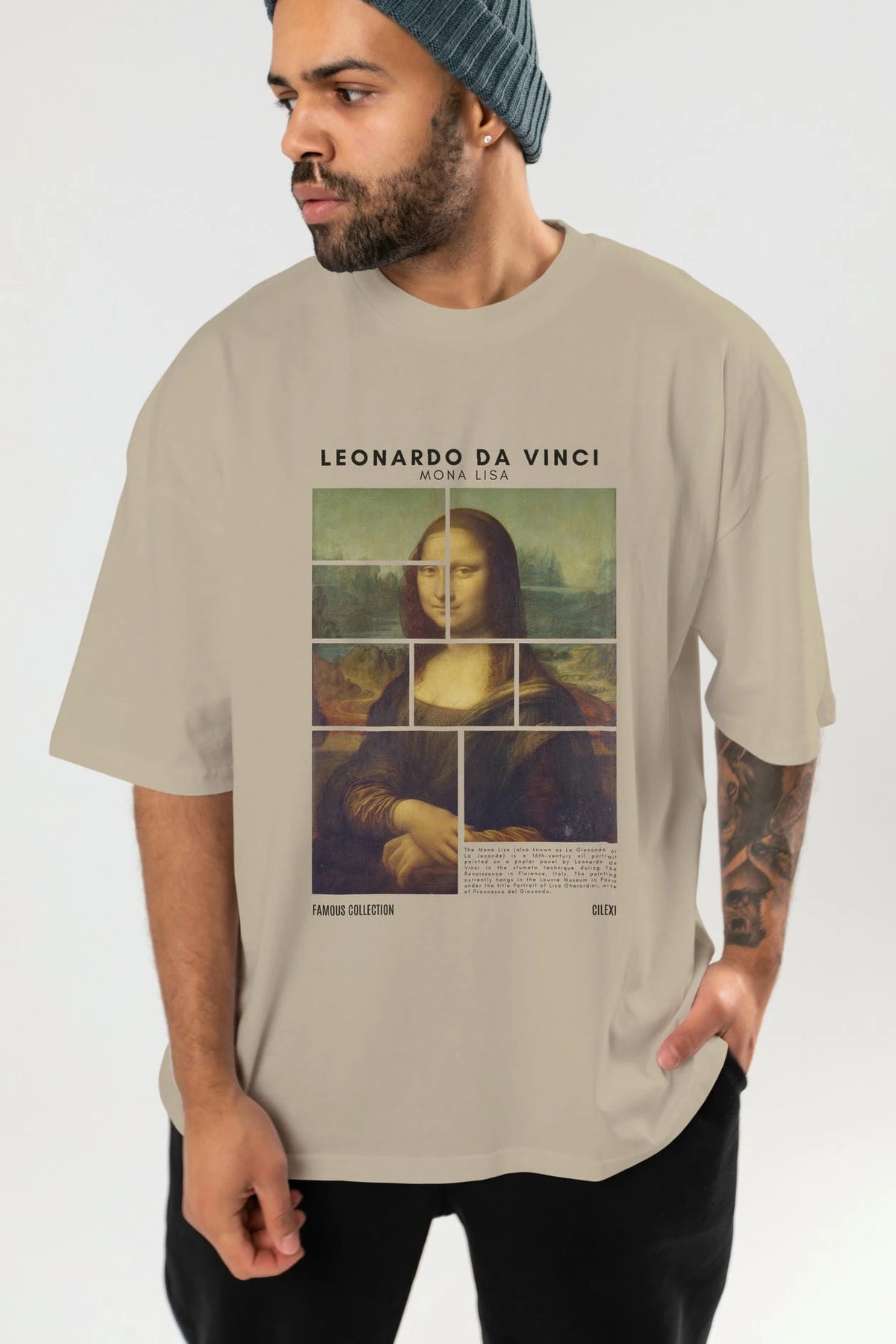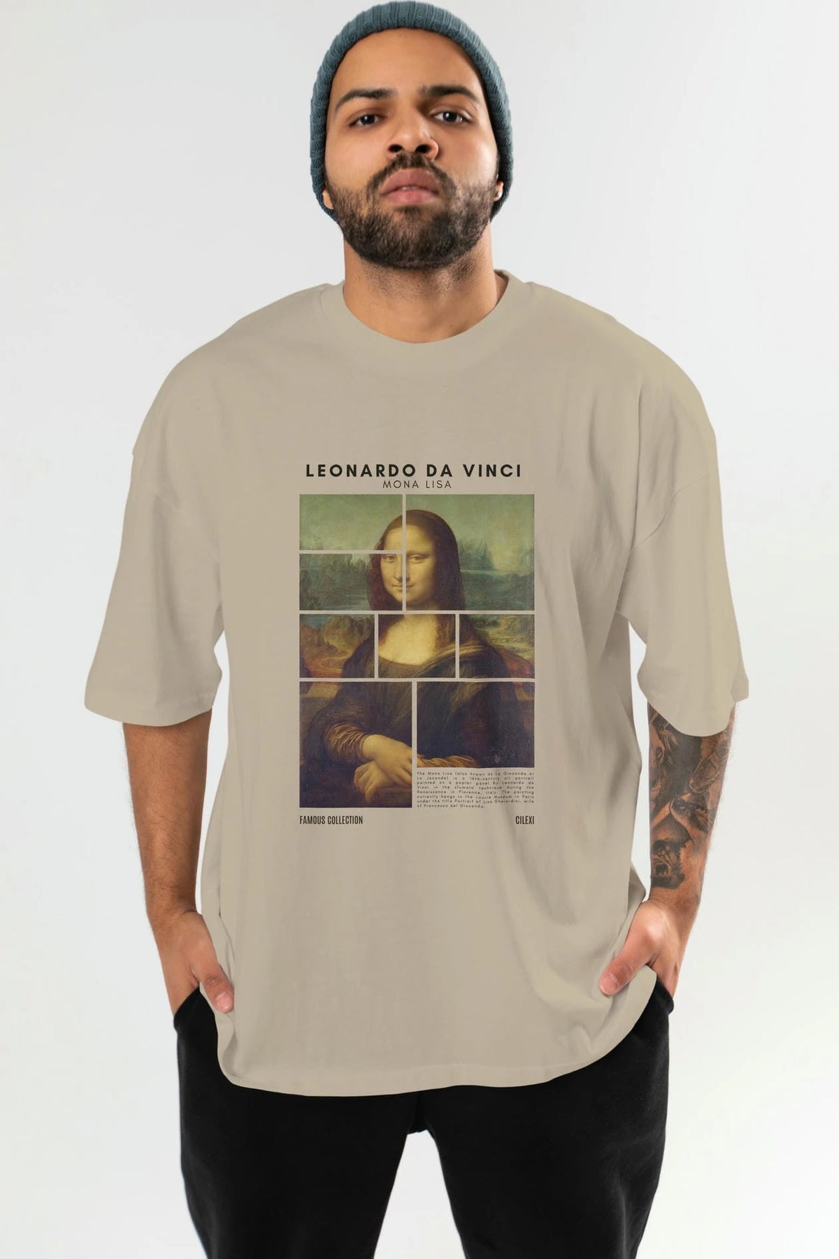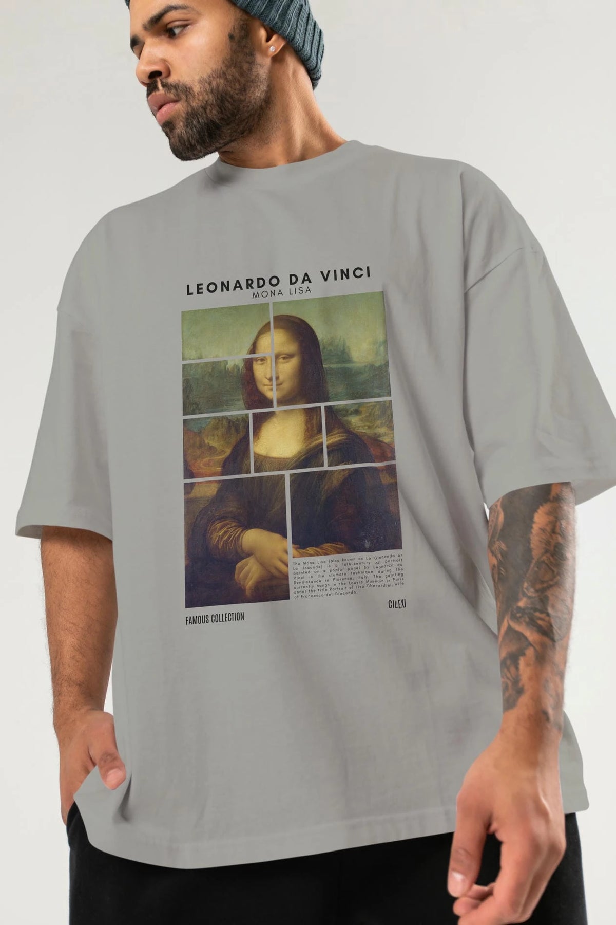 Leonardo Da Vinci Mona Lisa ön Baskılı Oversize t-shirt Erkek Kadın Bisiklet Yaka Pamuk tişort