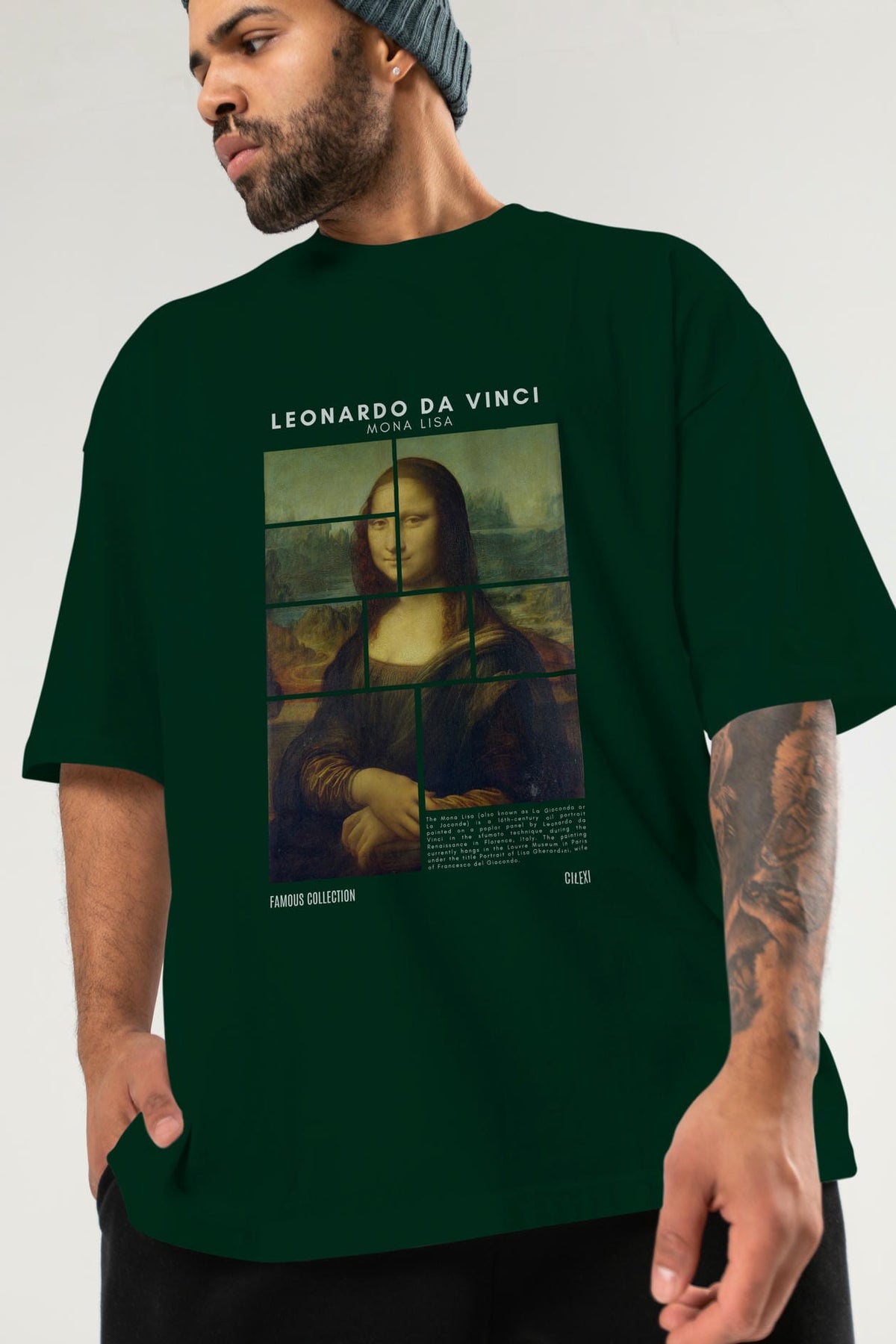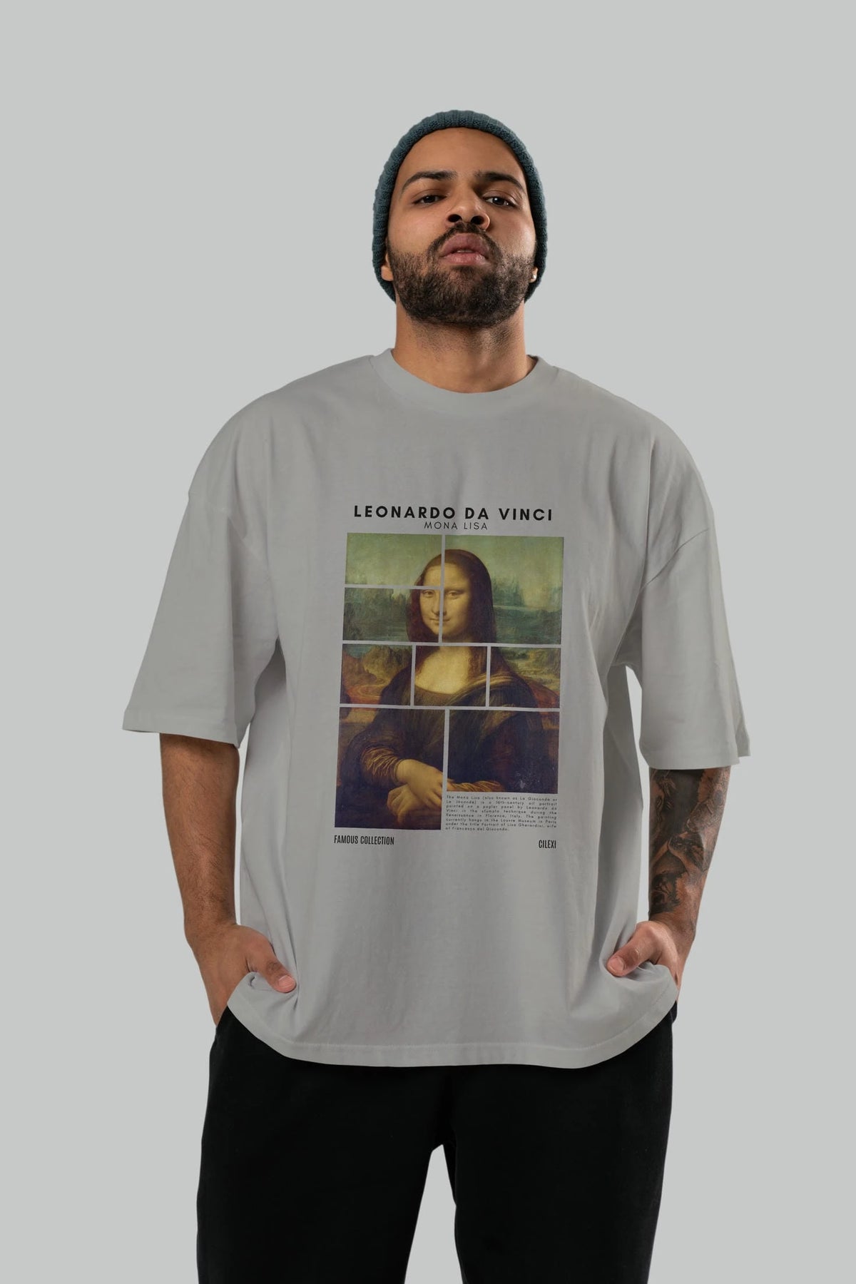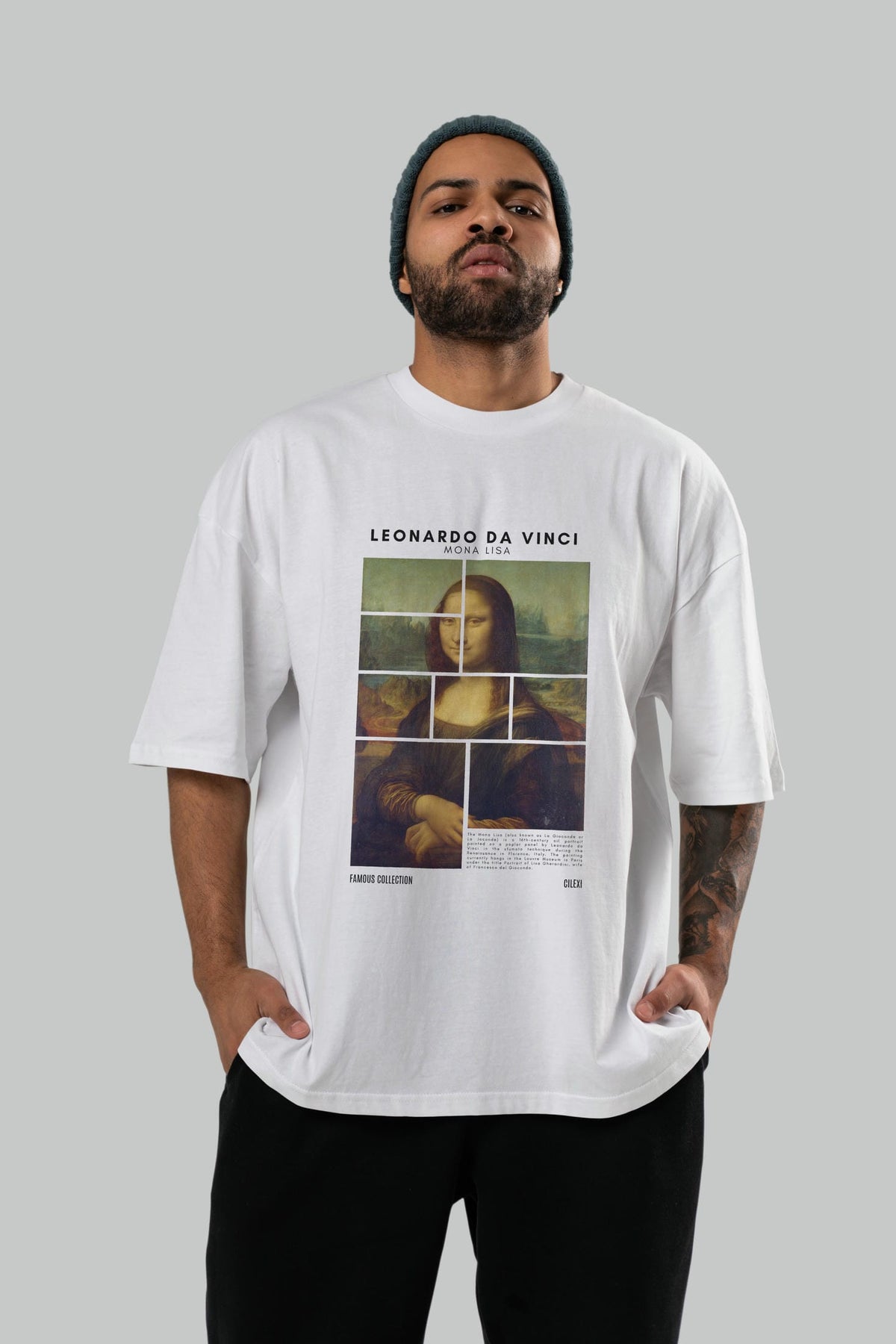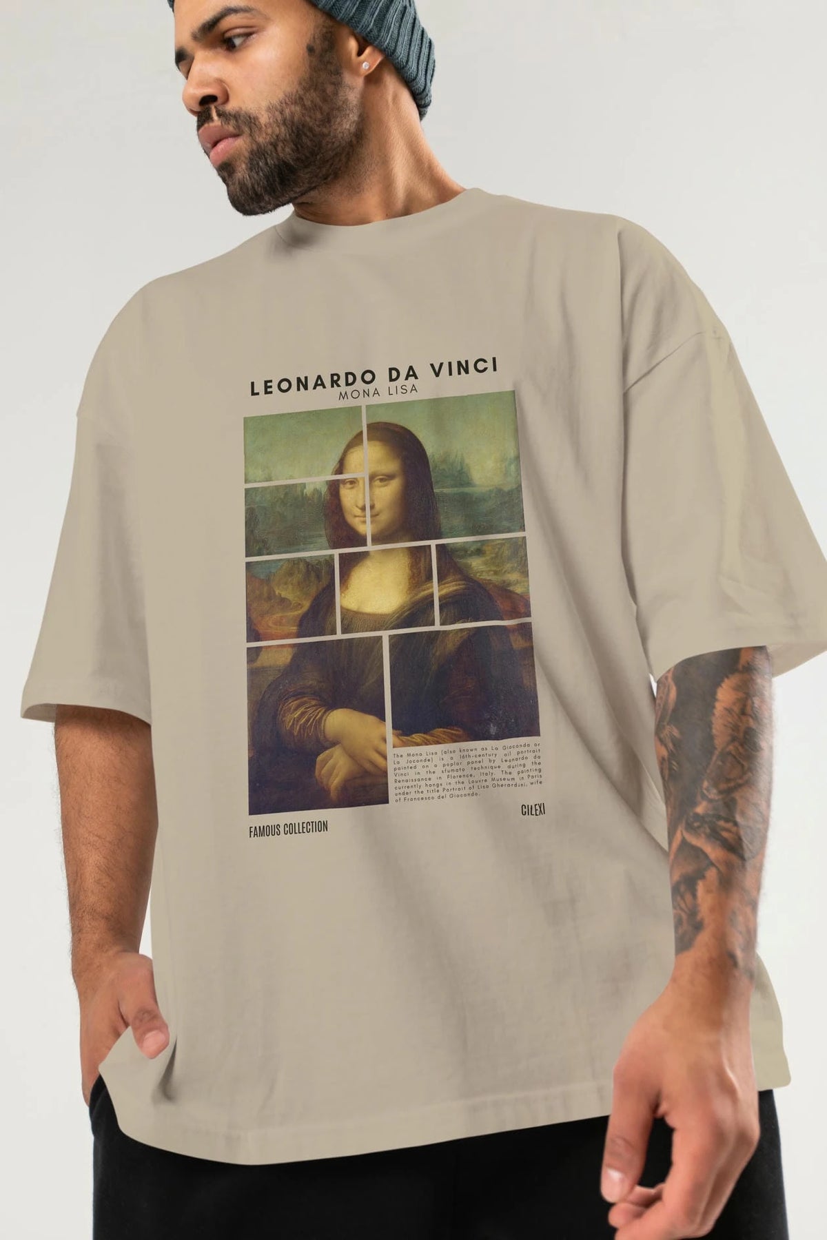 Leonardo Da Vinci Mona Lisa ön Baskılı Oversize t-shirt Erkek Kadın Bisiklet Yaka Pamuk tişort