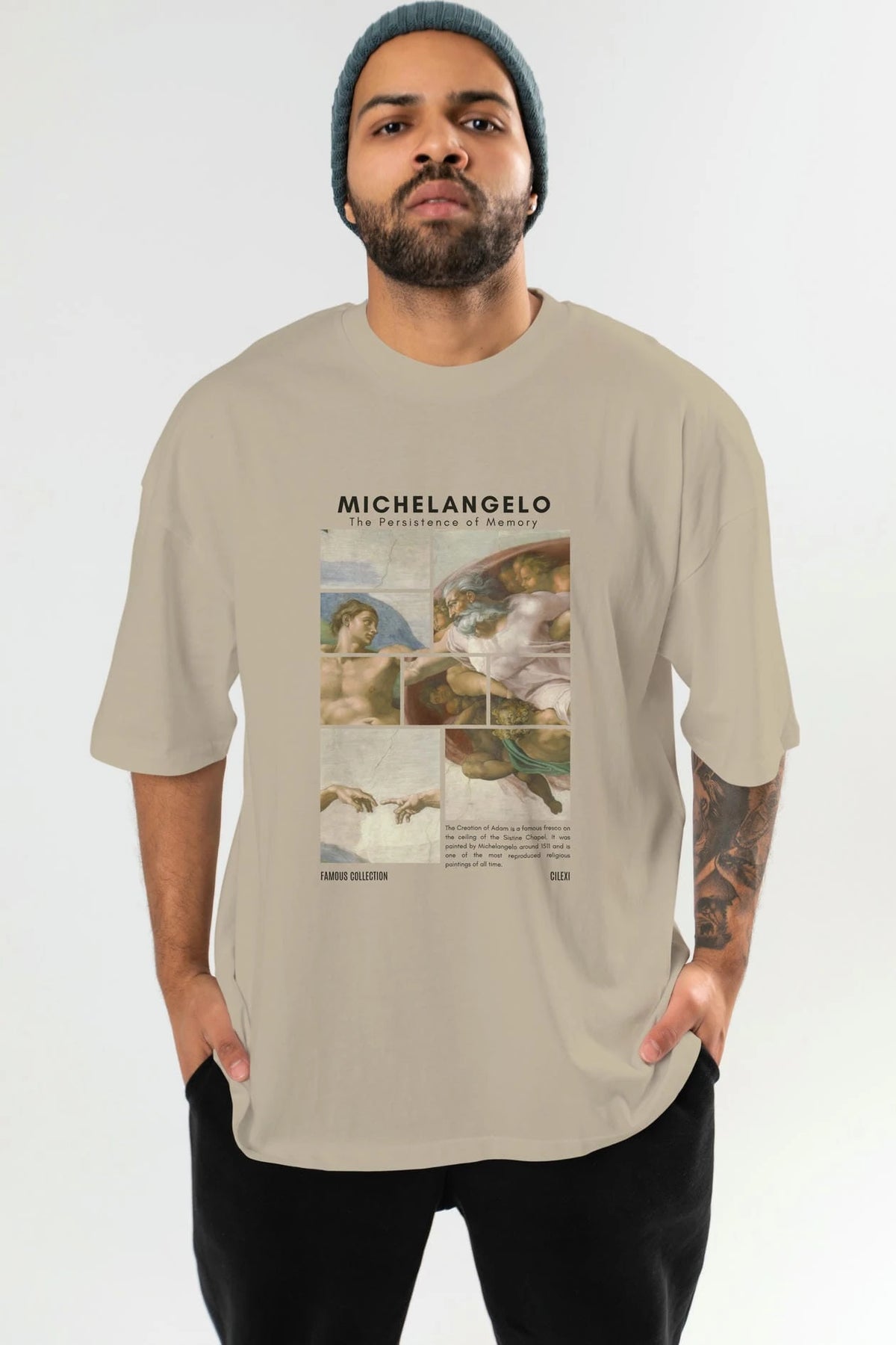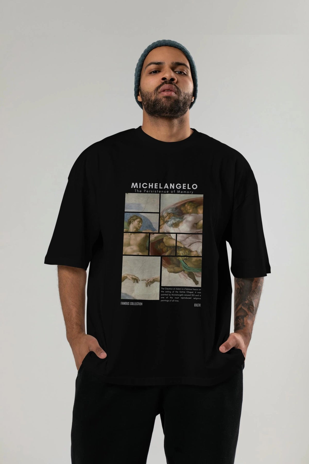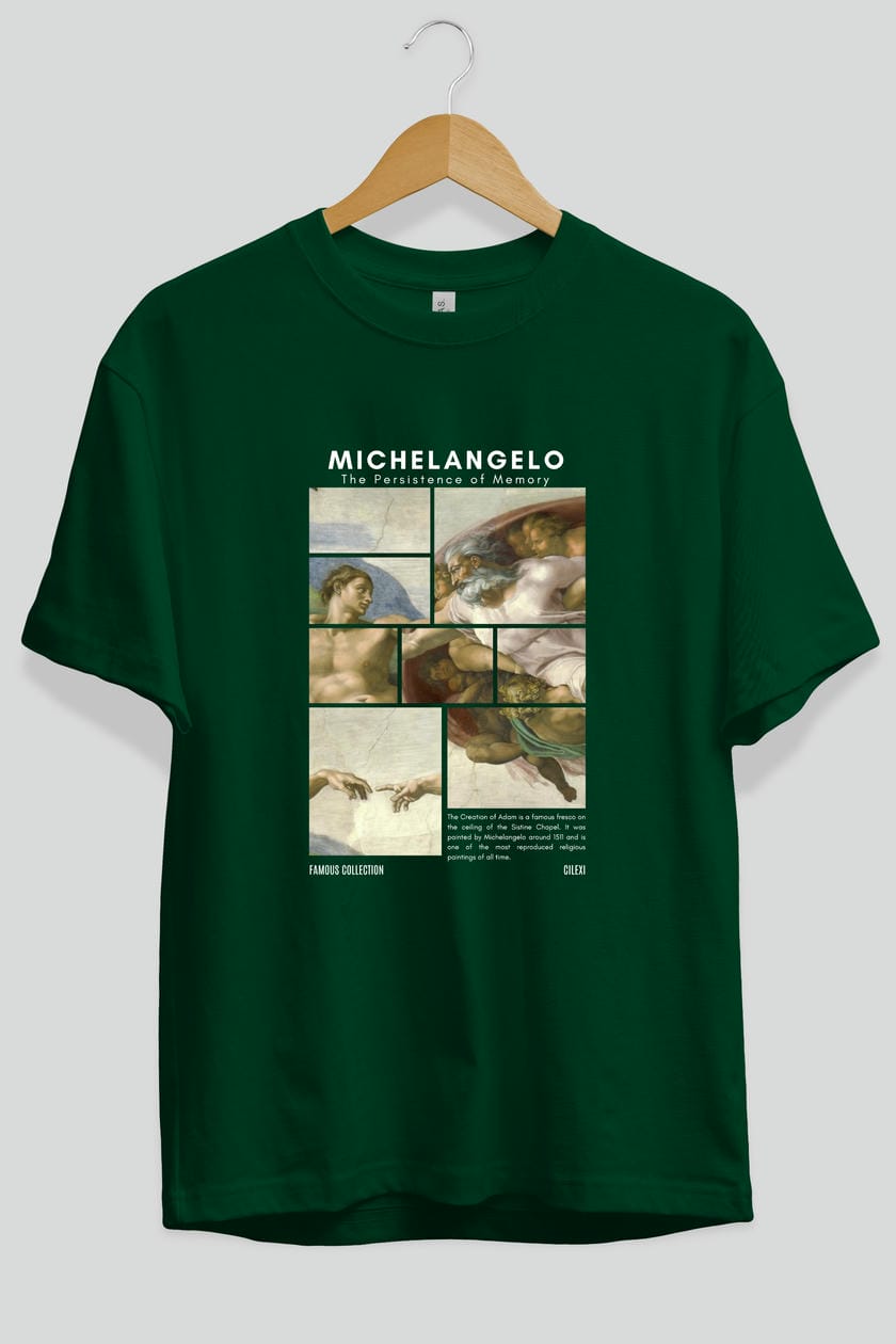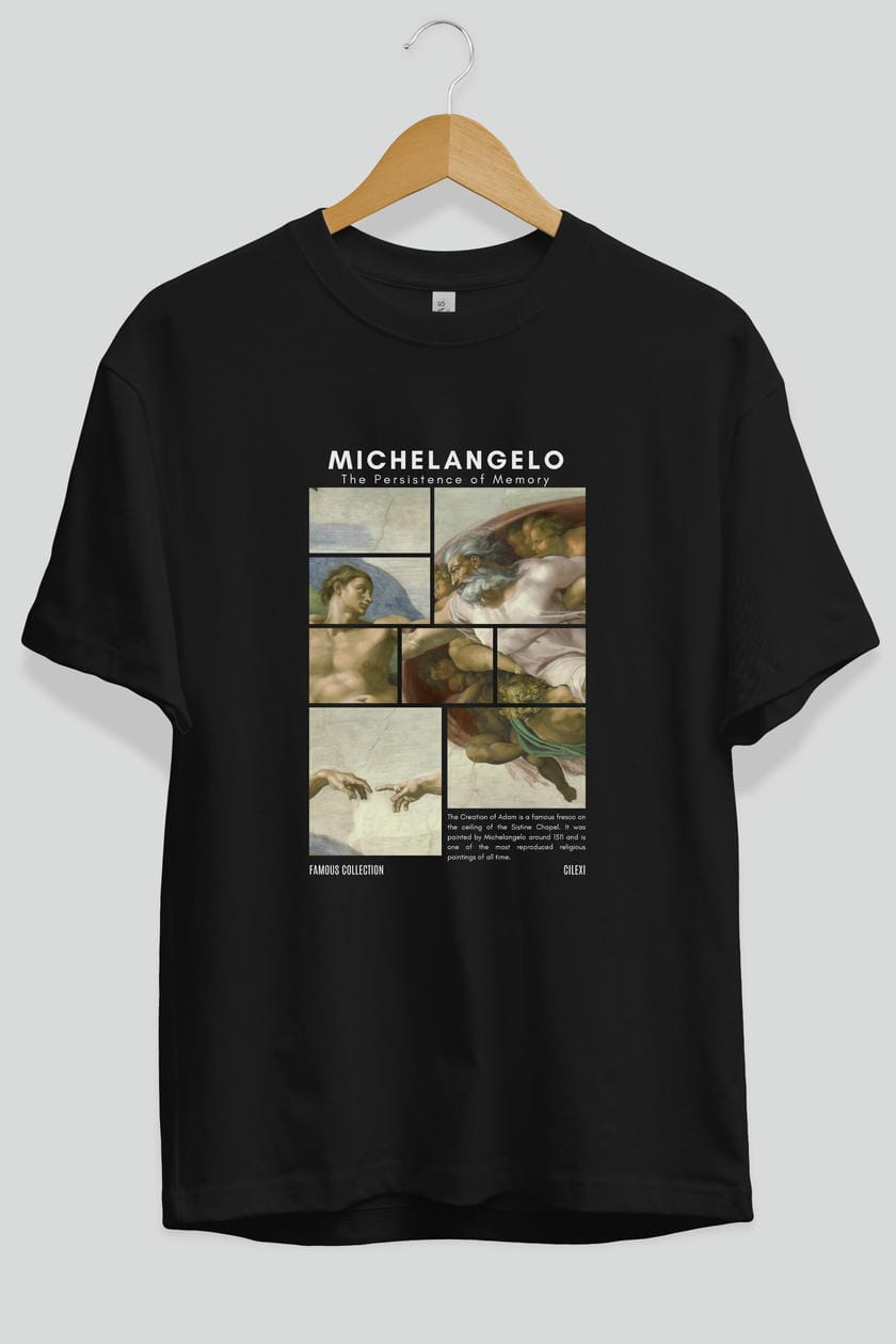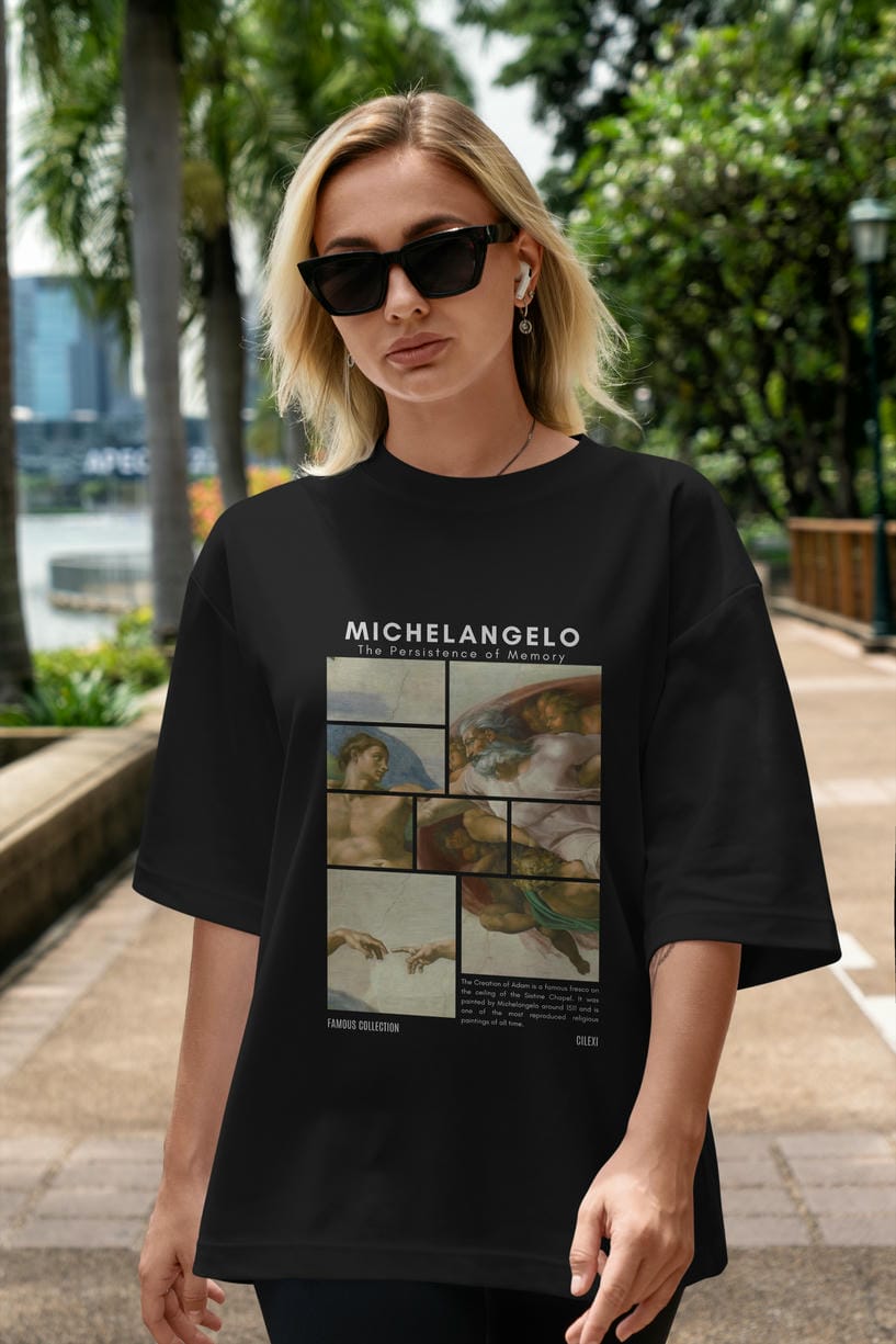 Michelangelo ön Baskılı Oversize t-shirt Erkek Kadın Bisiklet Yaka Pamuk tişort