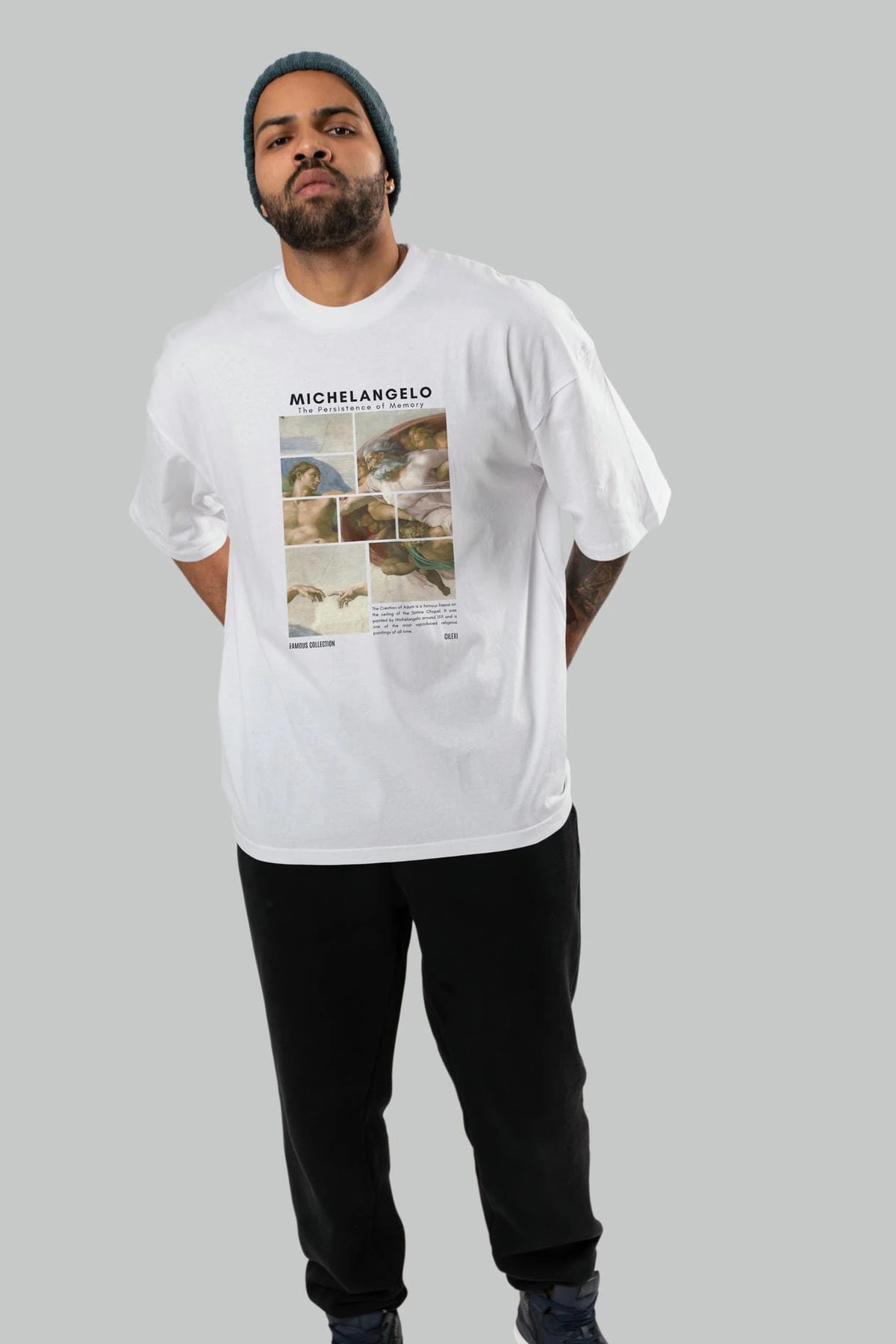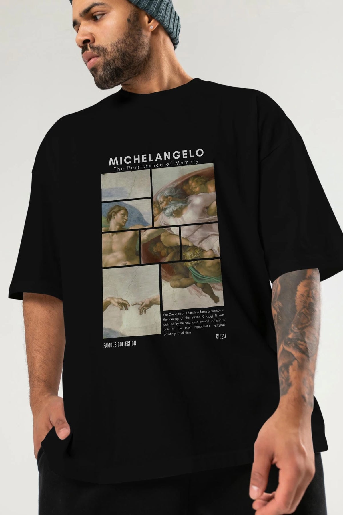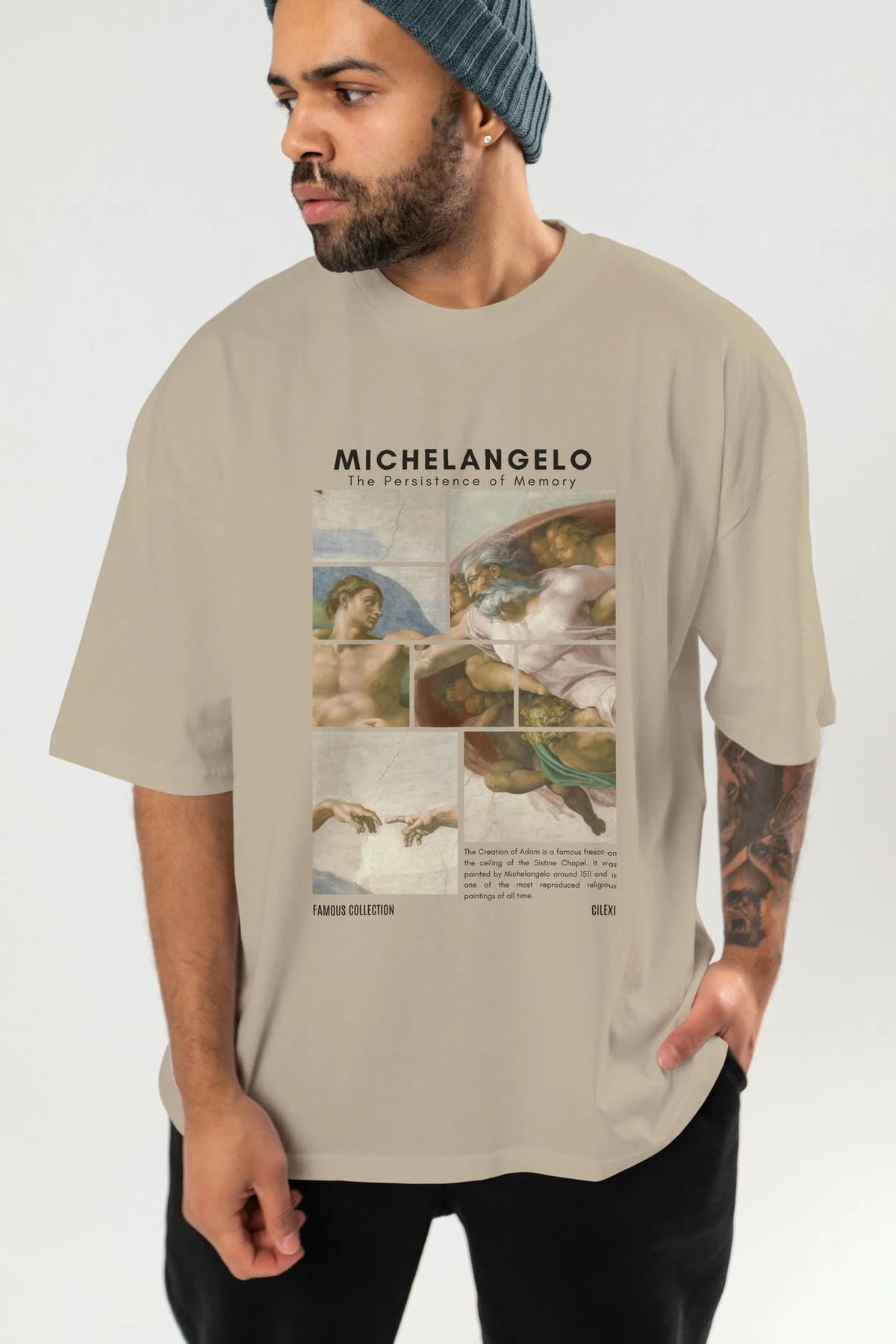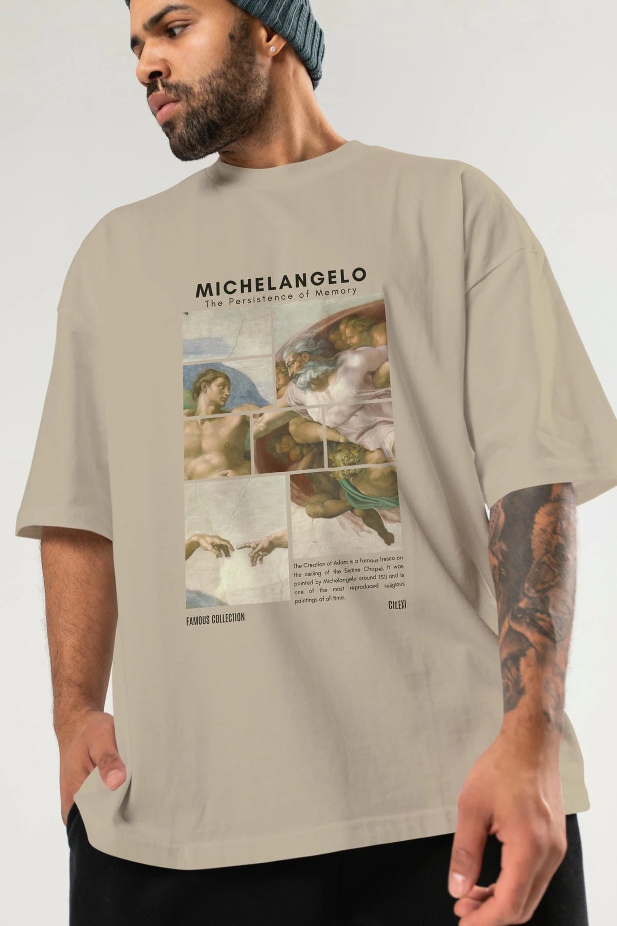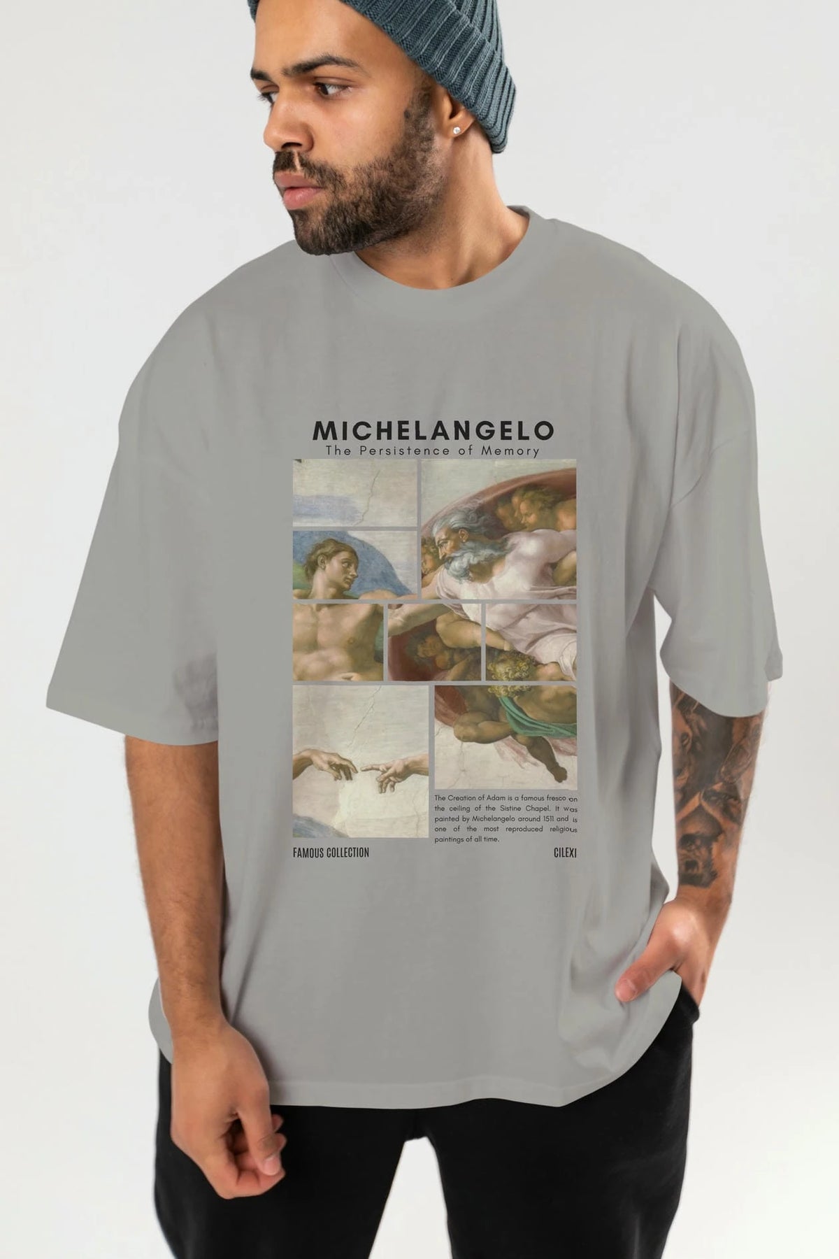 Michelangelo ön Baskılı Oversize t-shirt Erkek Kadın Bisiklet Yaka Pamuk tişort