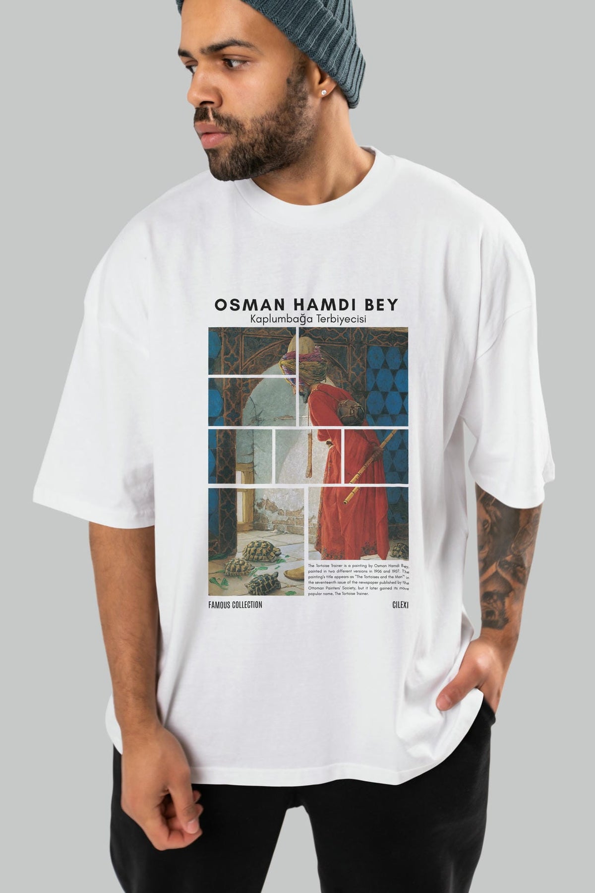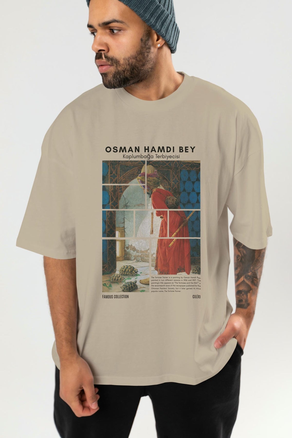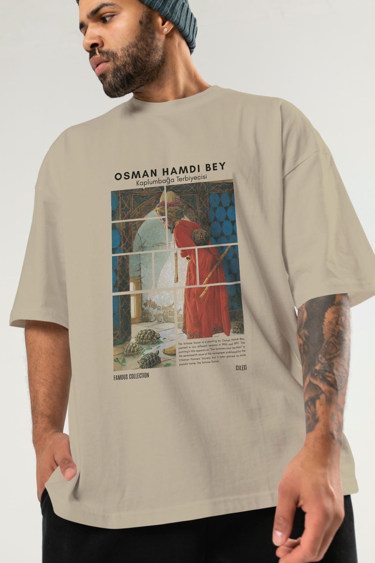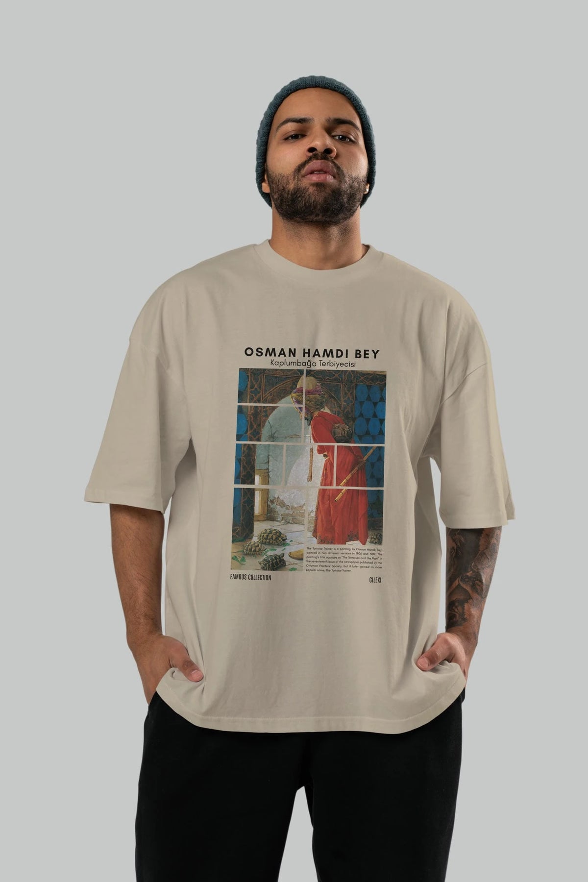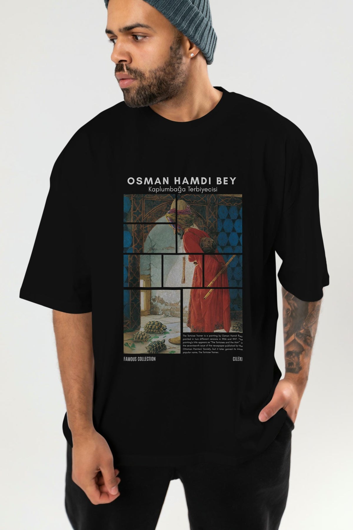 Osman Hamdi Bey ön Baskılı Oversize t-shirt Erkek Kadın Bisiklet Yaka Pamuk tişort