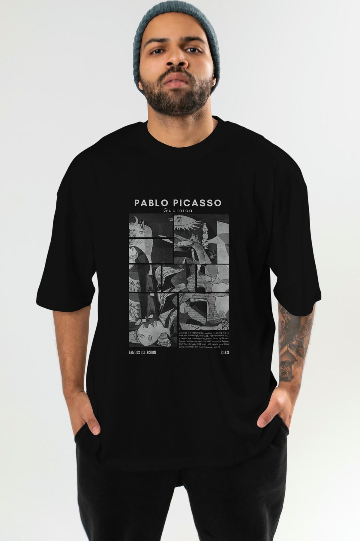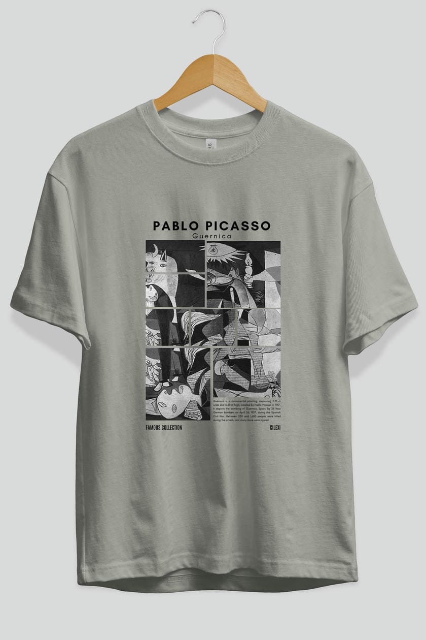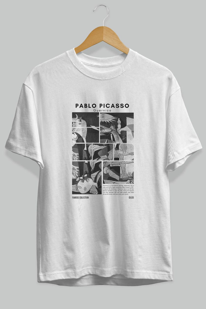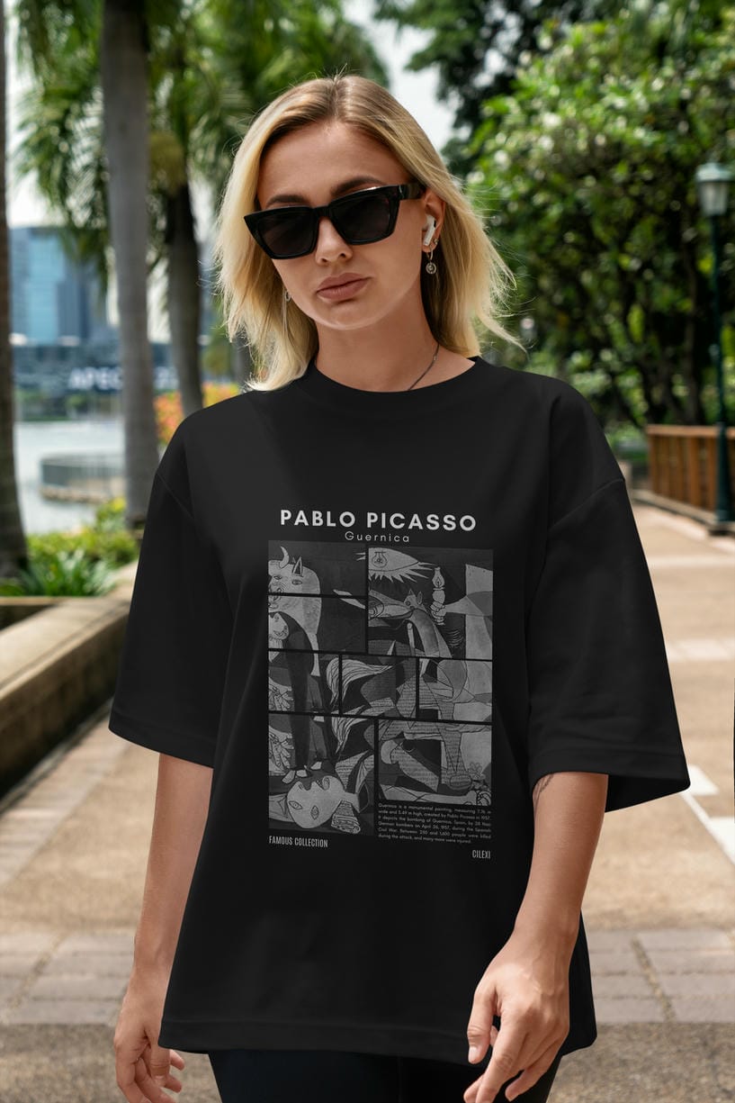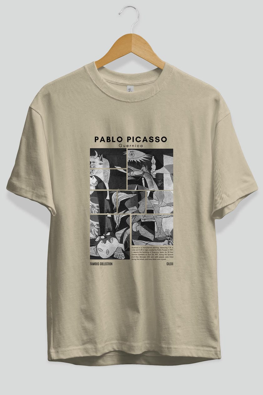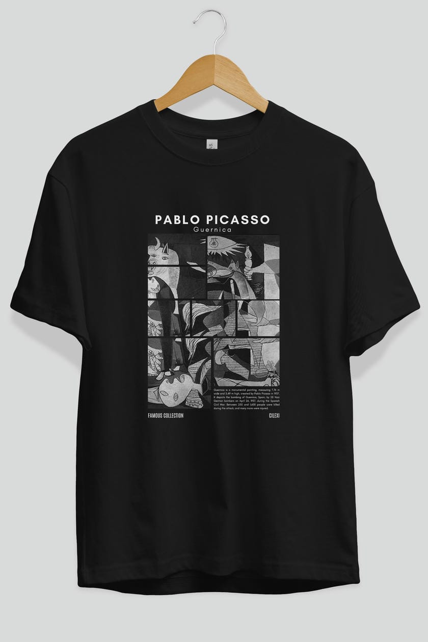 Pablo Picasso Guernica ön Baskılı Oversize t-shirt Erkek Kadın Bisiklet Yaka Pamuk tişort