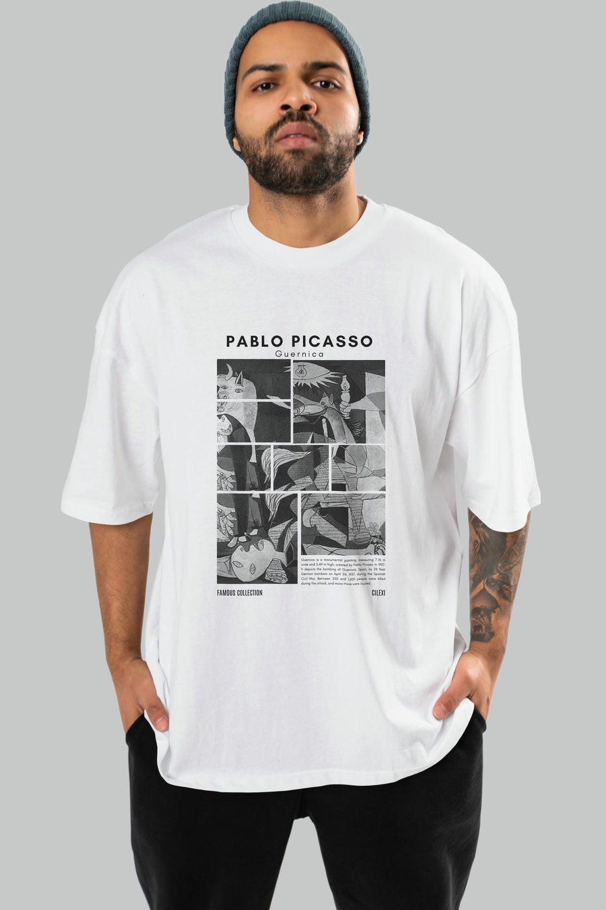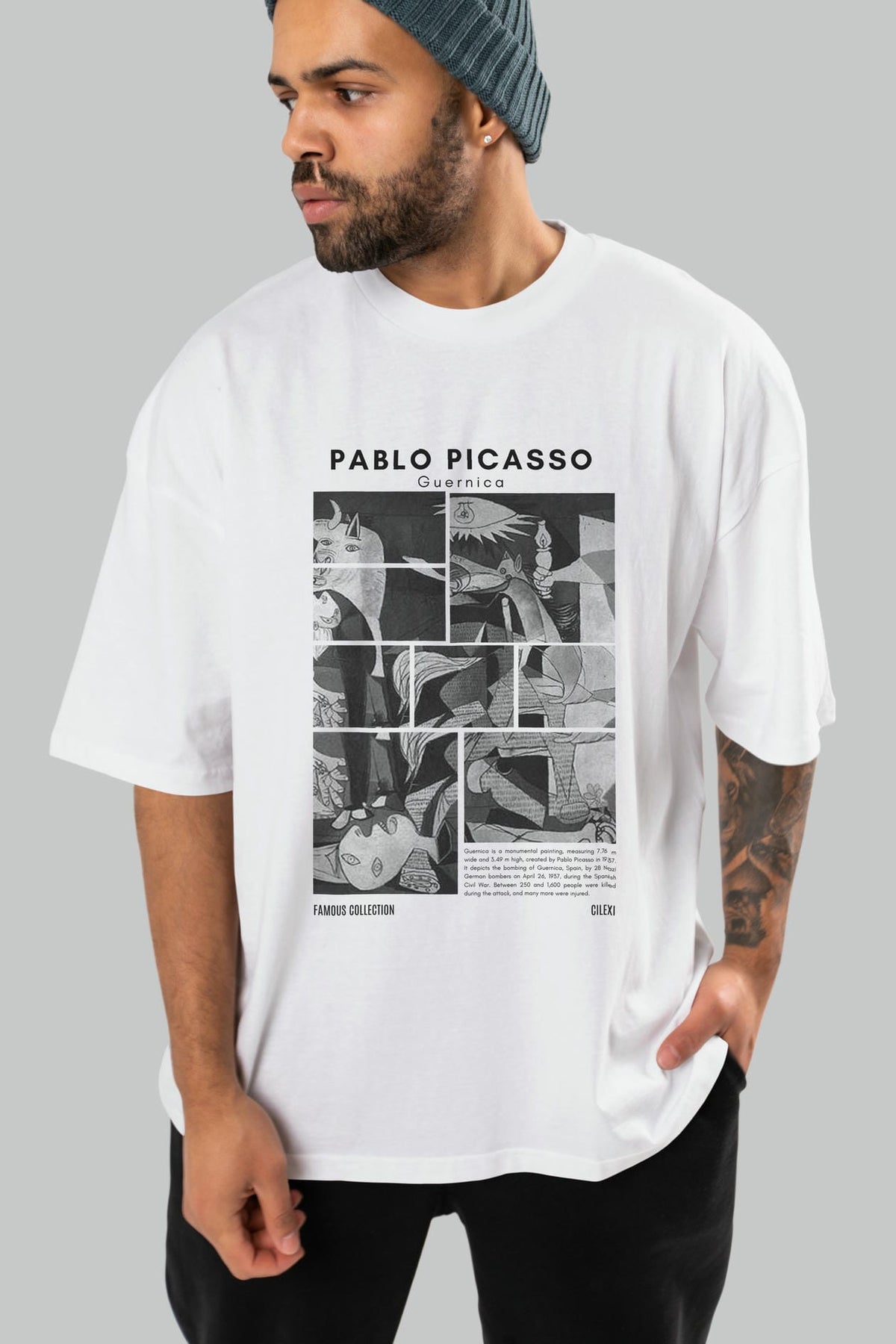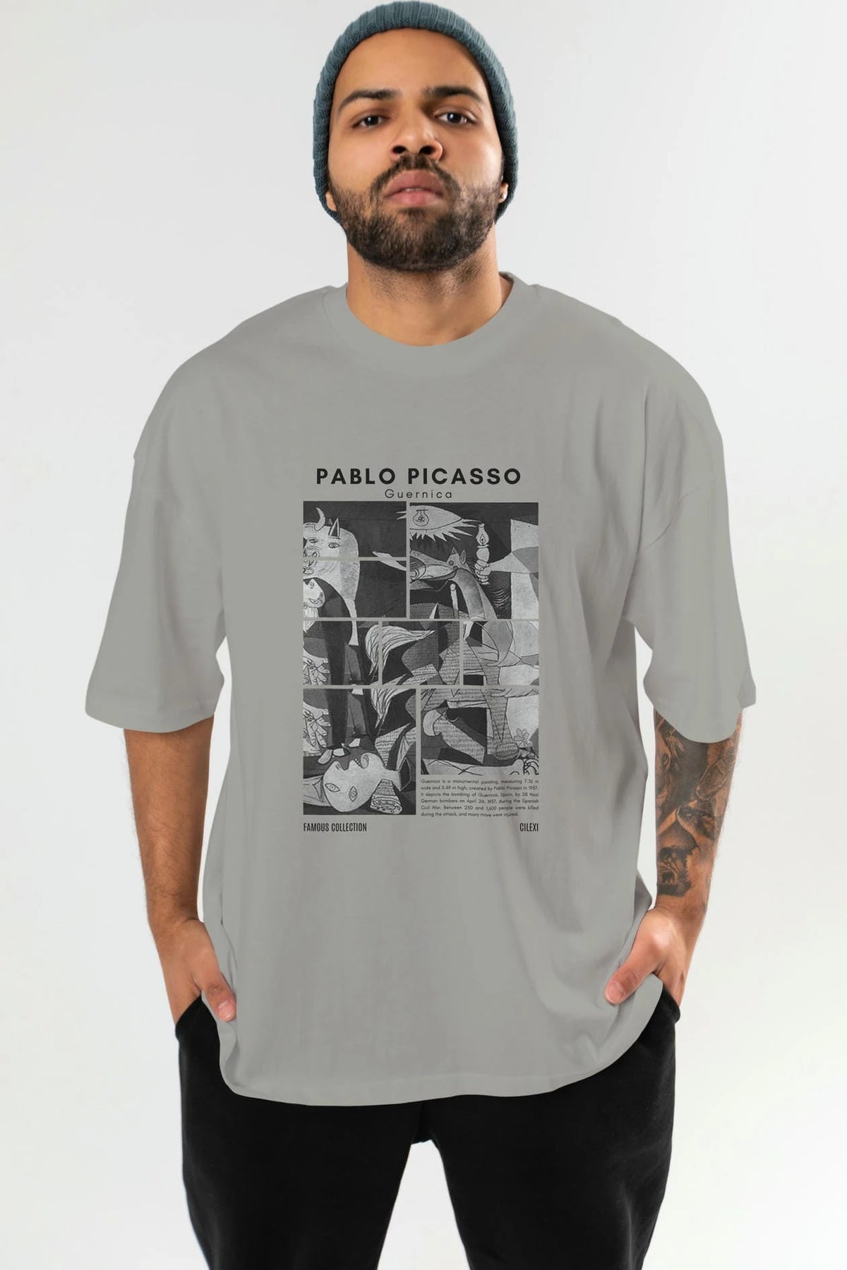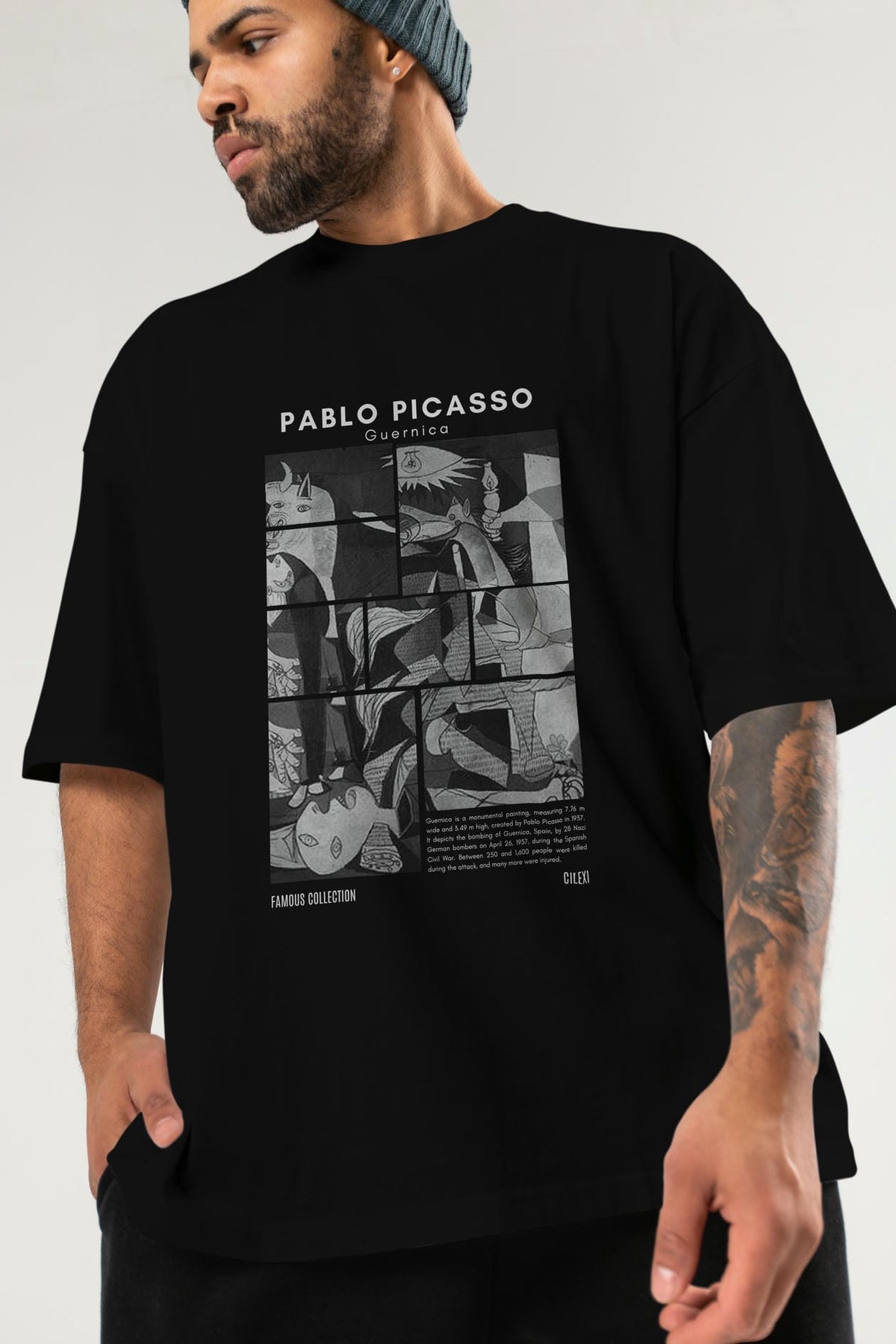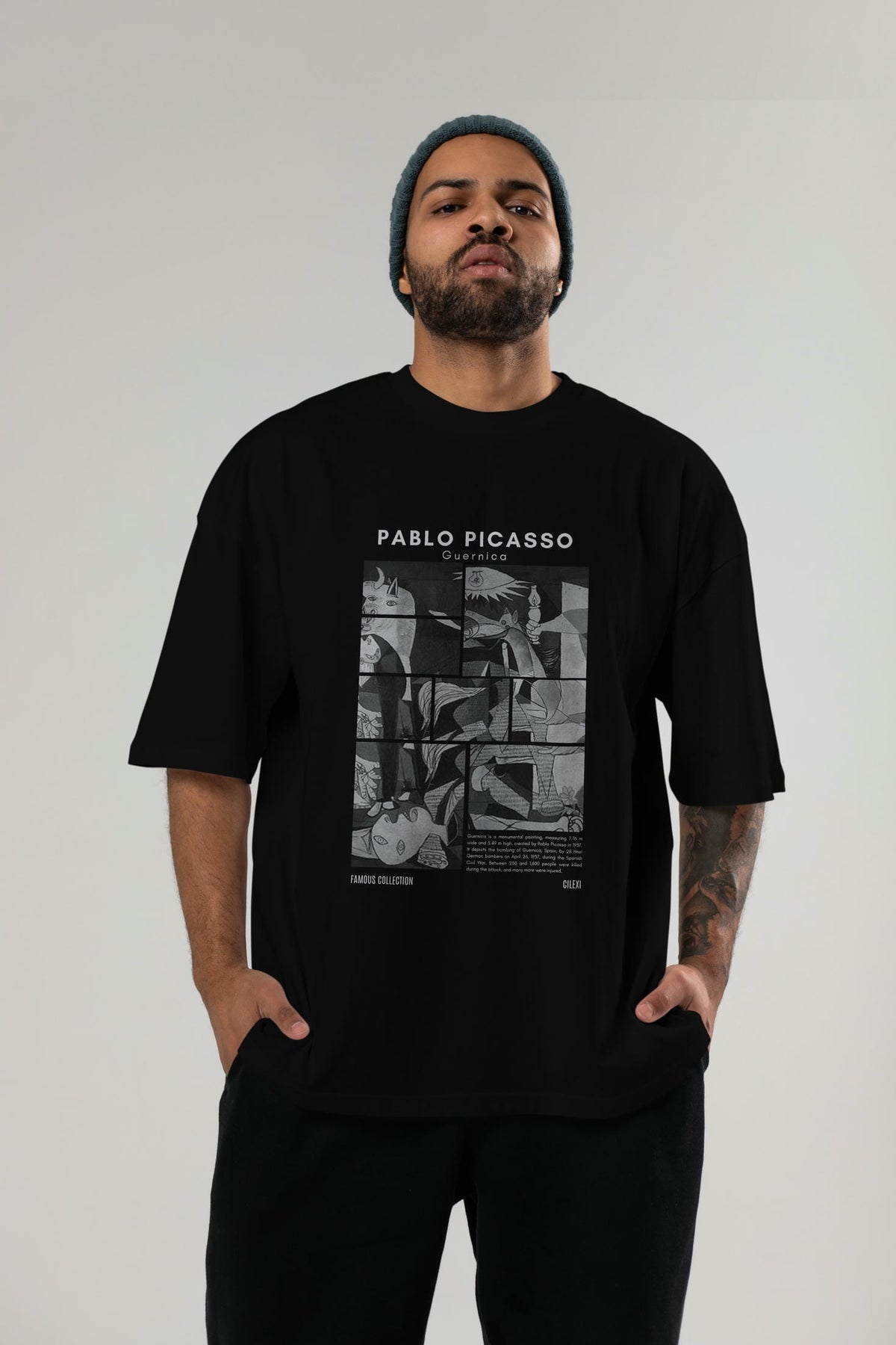 Pablo Picasso Guernica ön Baskılı Oversize t-shirt Erkek Kadın Bisiklet Yaka Pamuk tişort