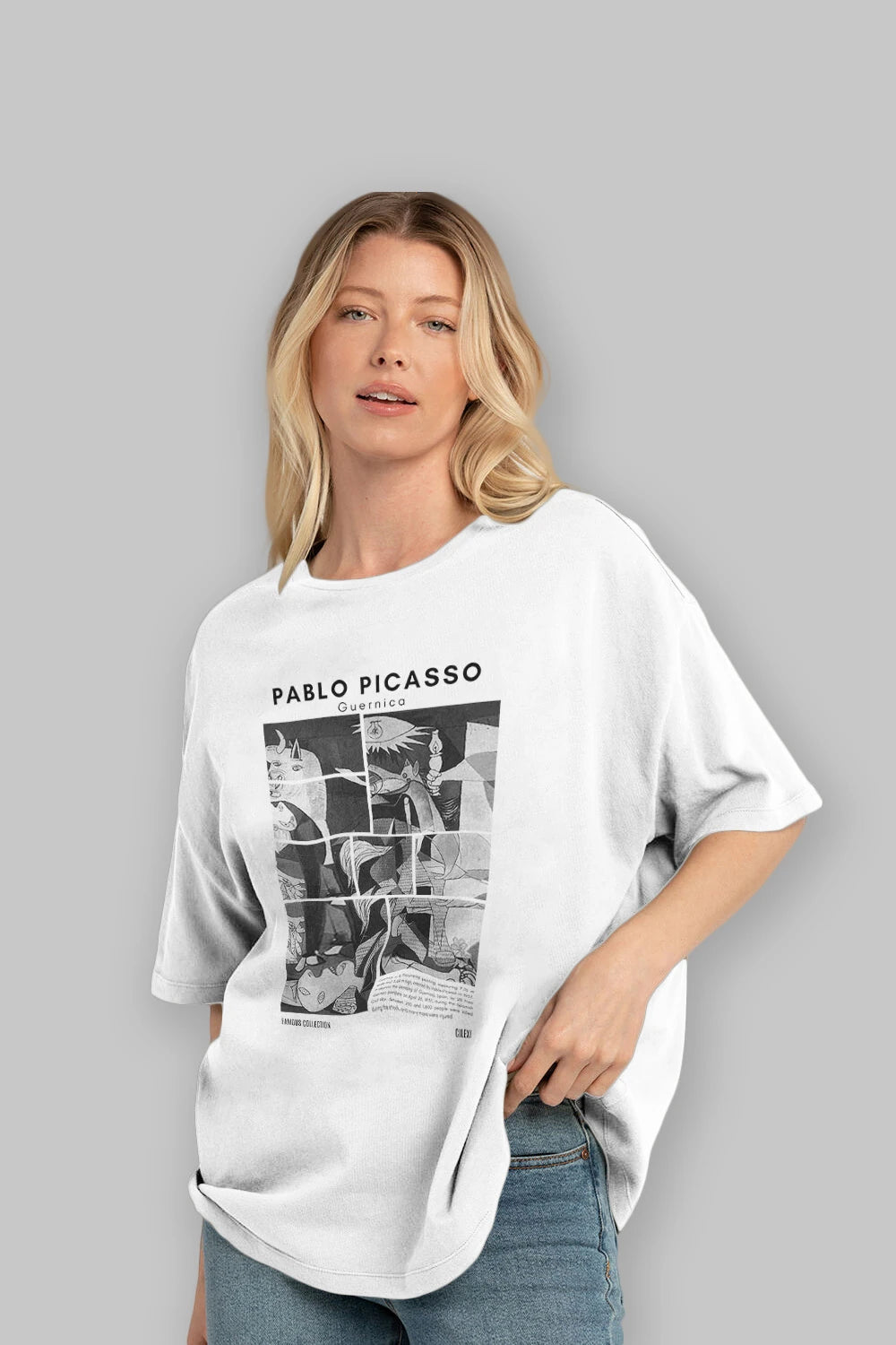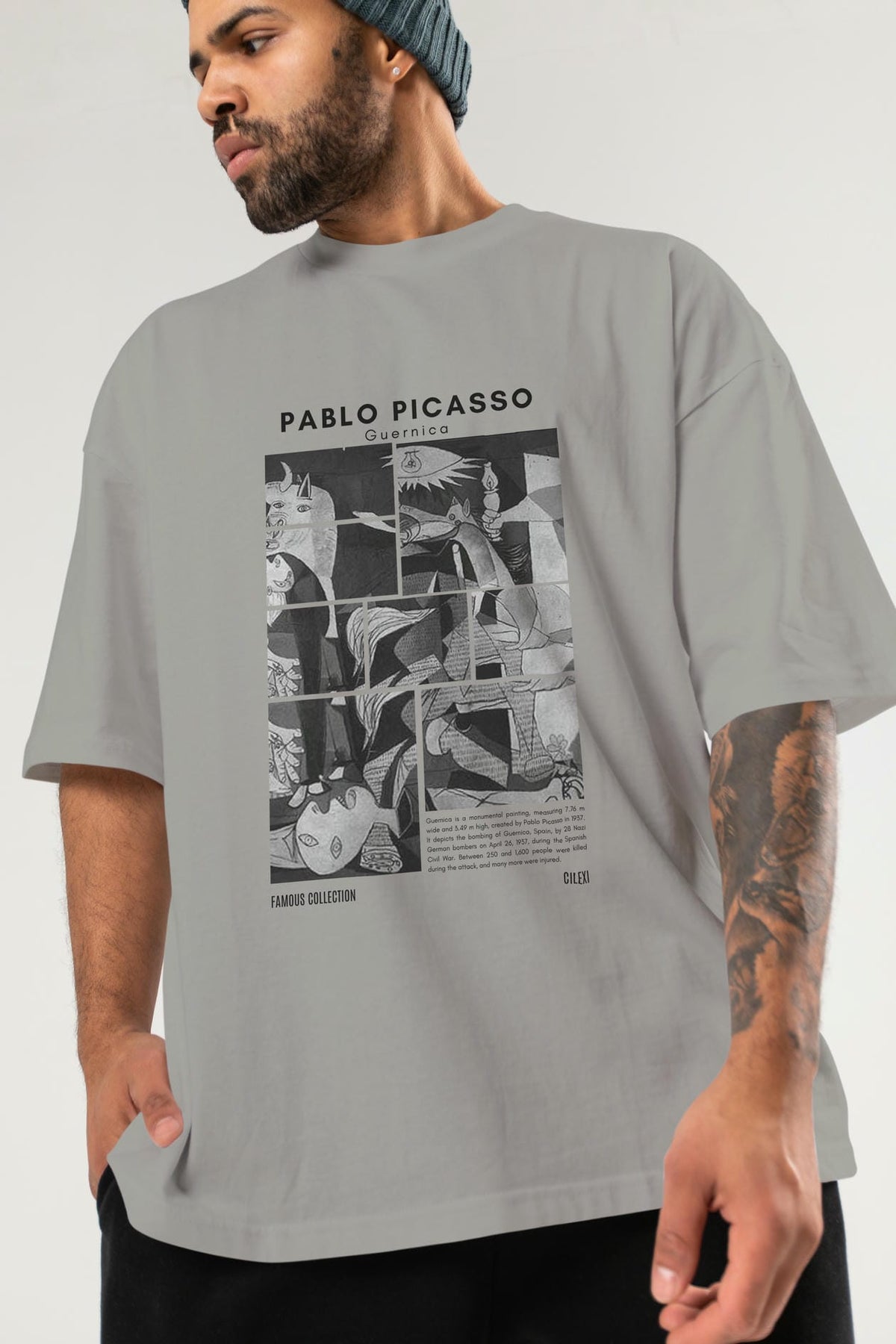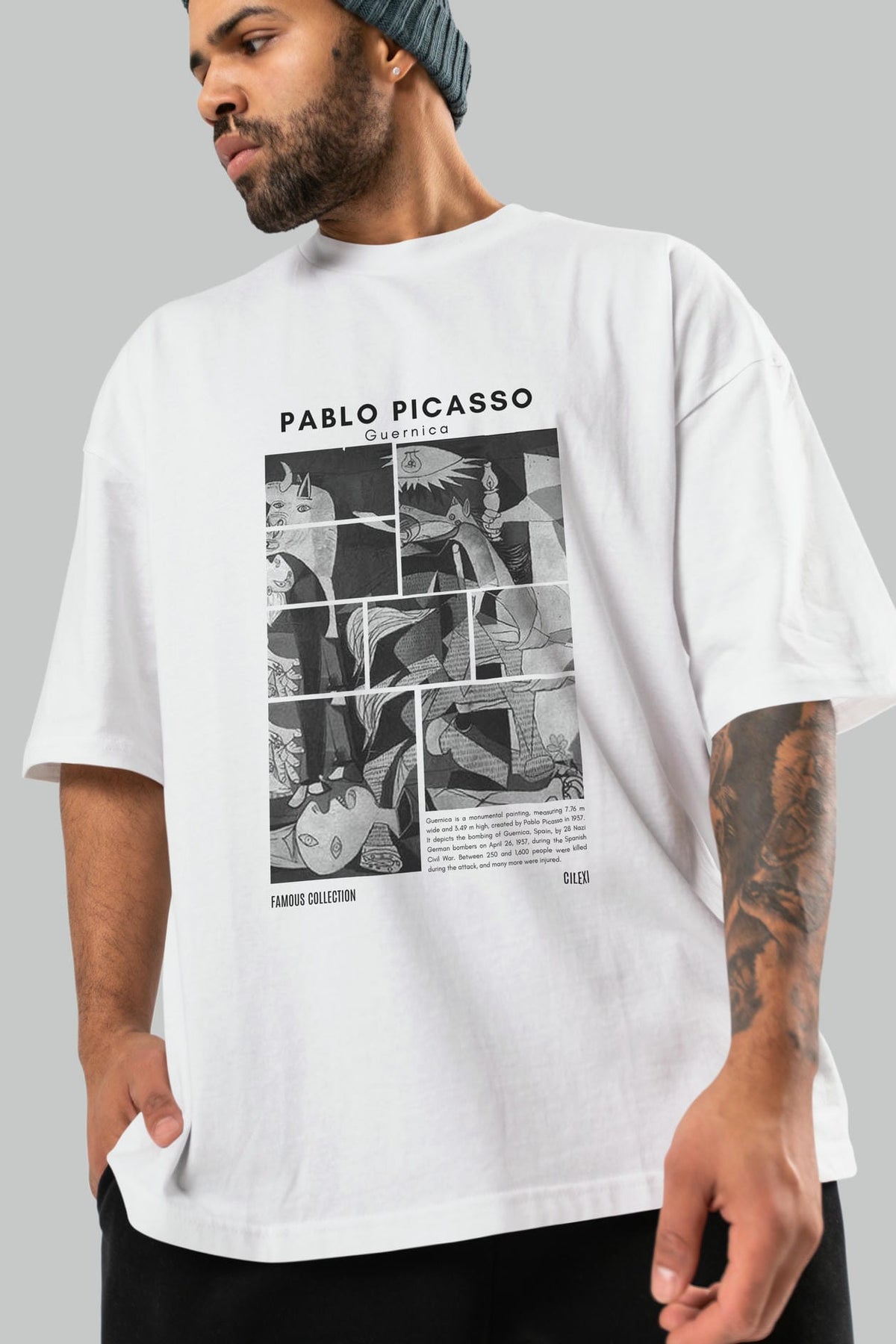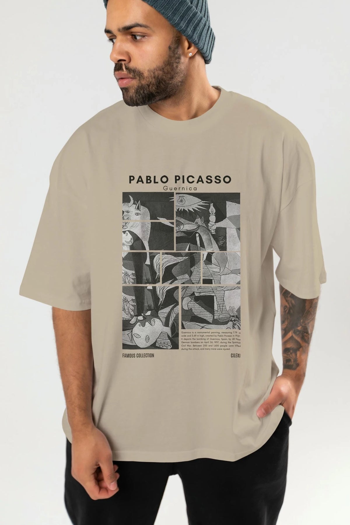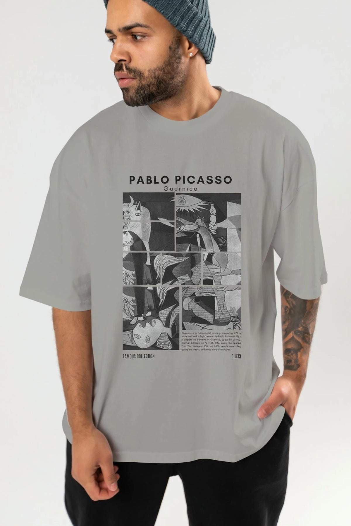 Pablo Picasso Guernica ön Baskılı Oversize t-shirt Erkek Kadın Bisiklet Yaka Pamuk tişort
