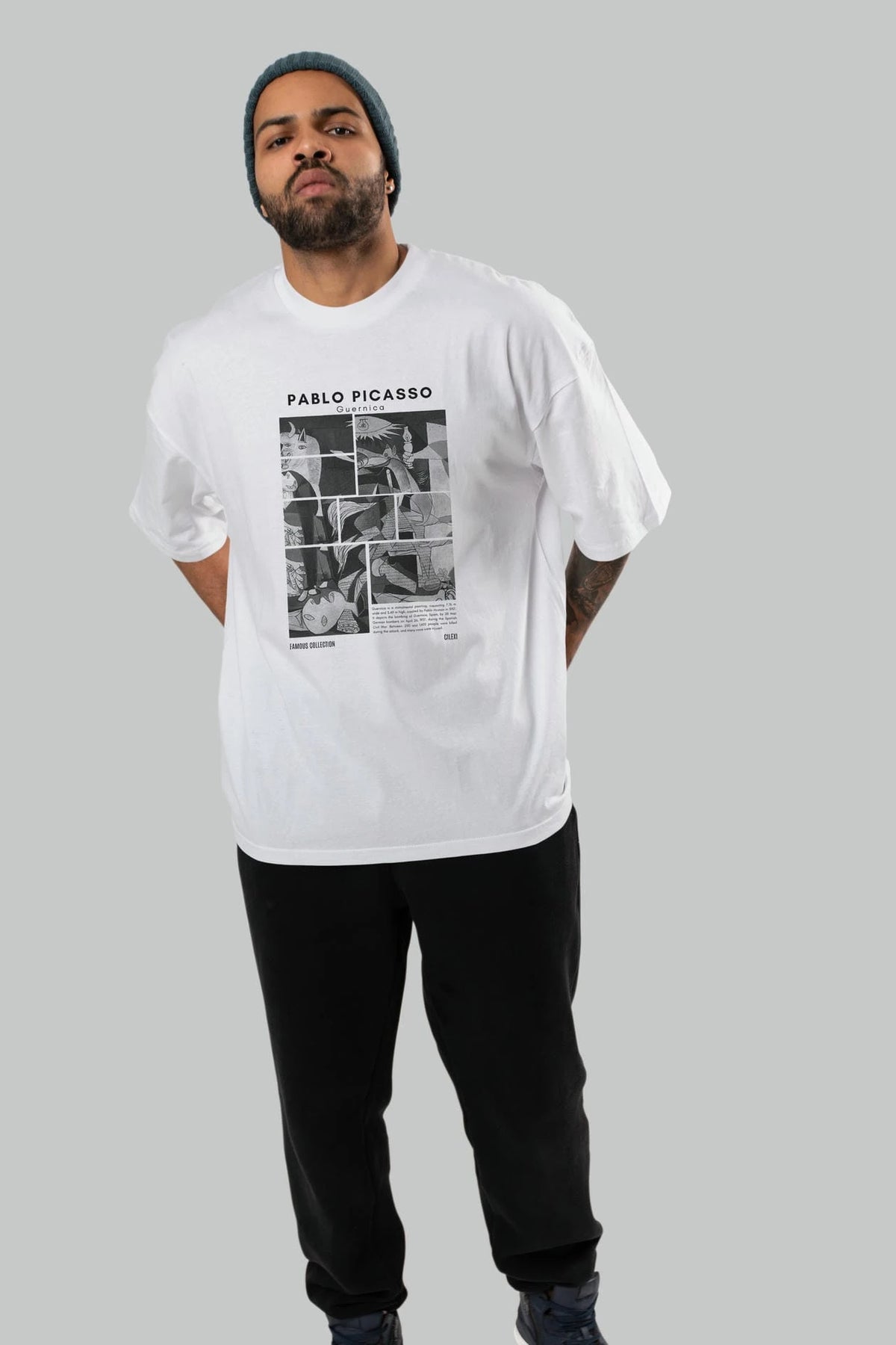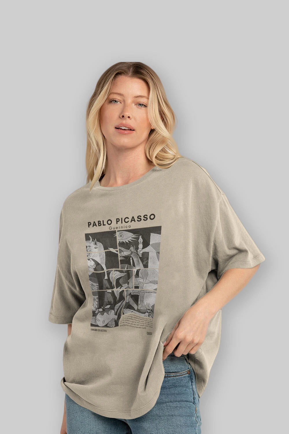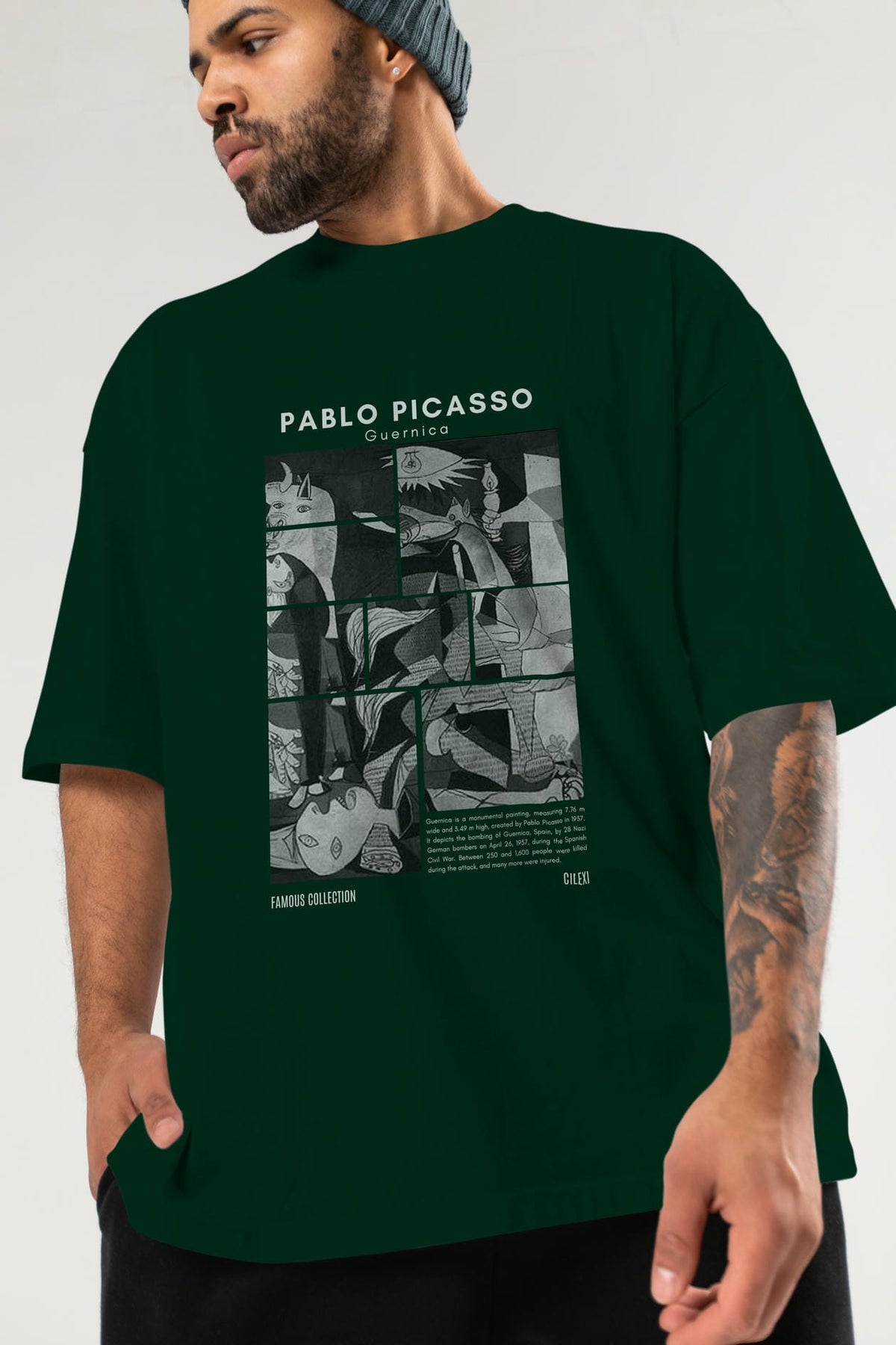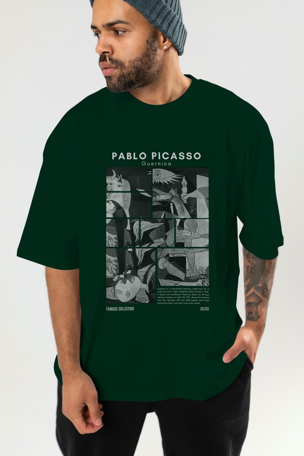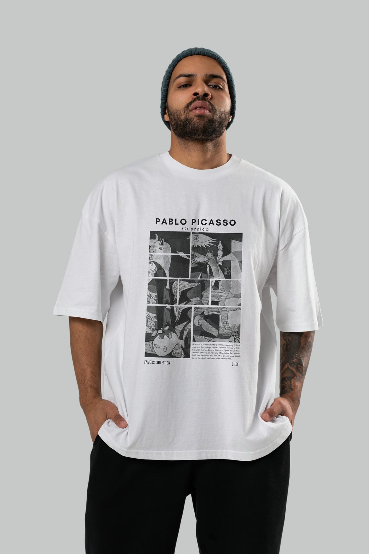 Pablo Picasso Guernica ön Baskılı Oversize t-shirt Erkek Kadın Bisiklet Yaka Pamuk tişort