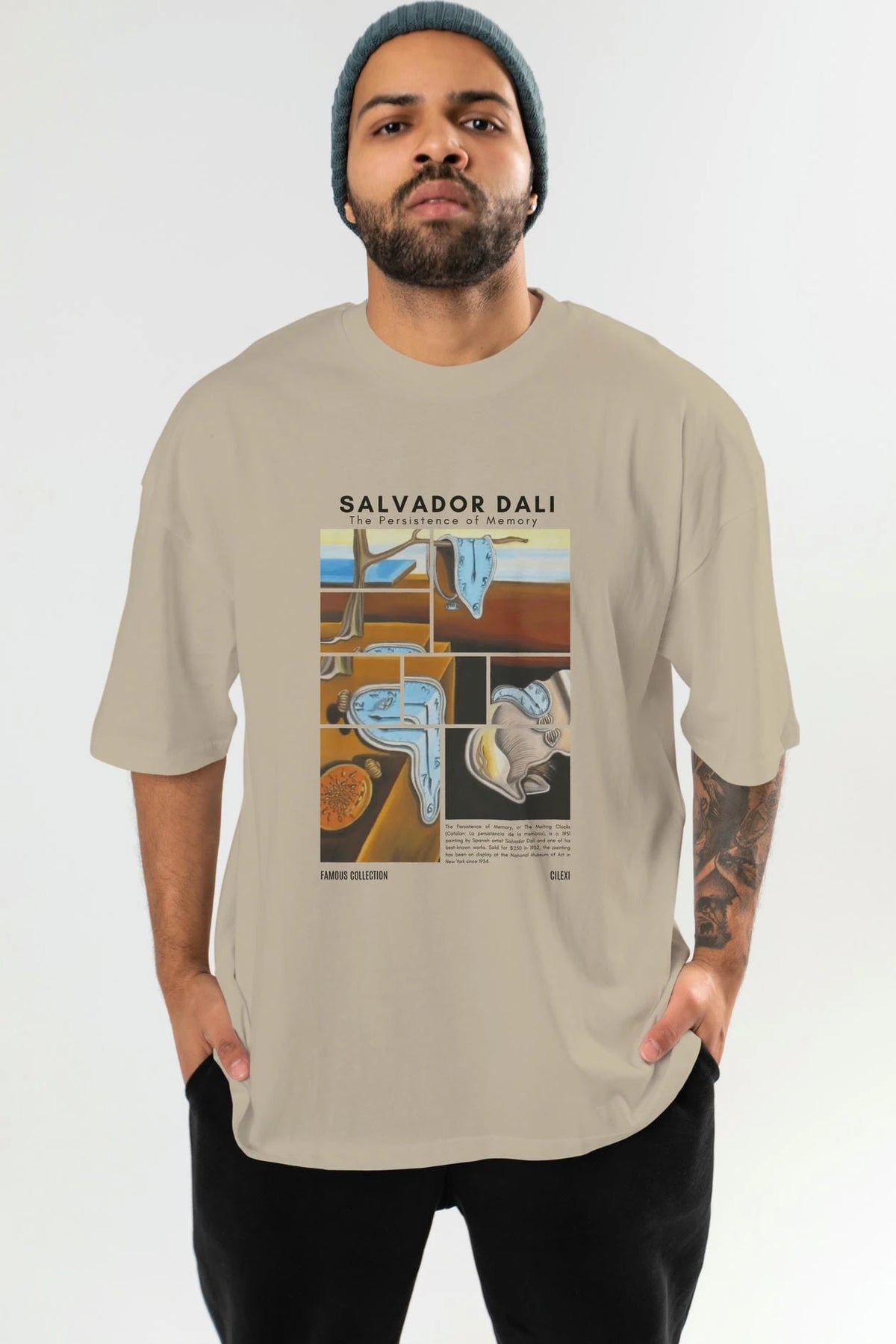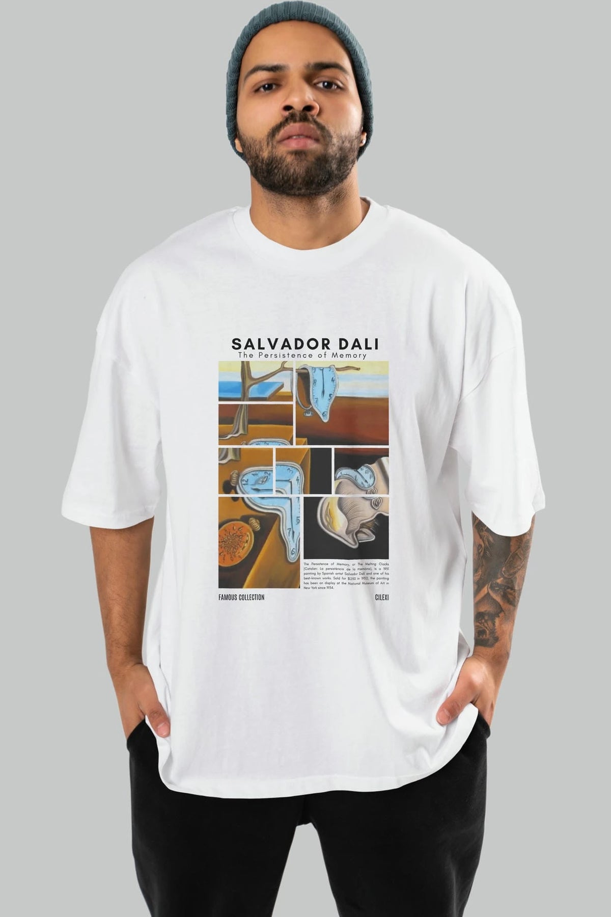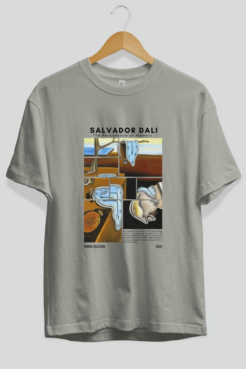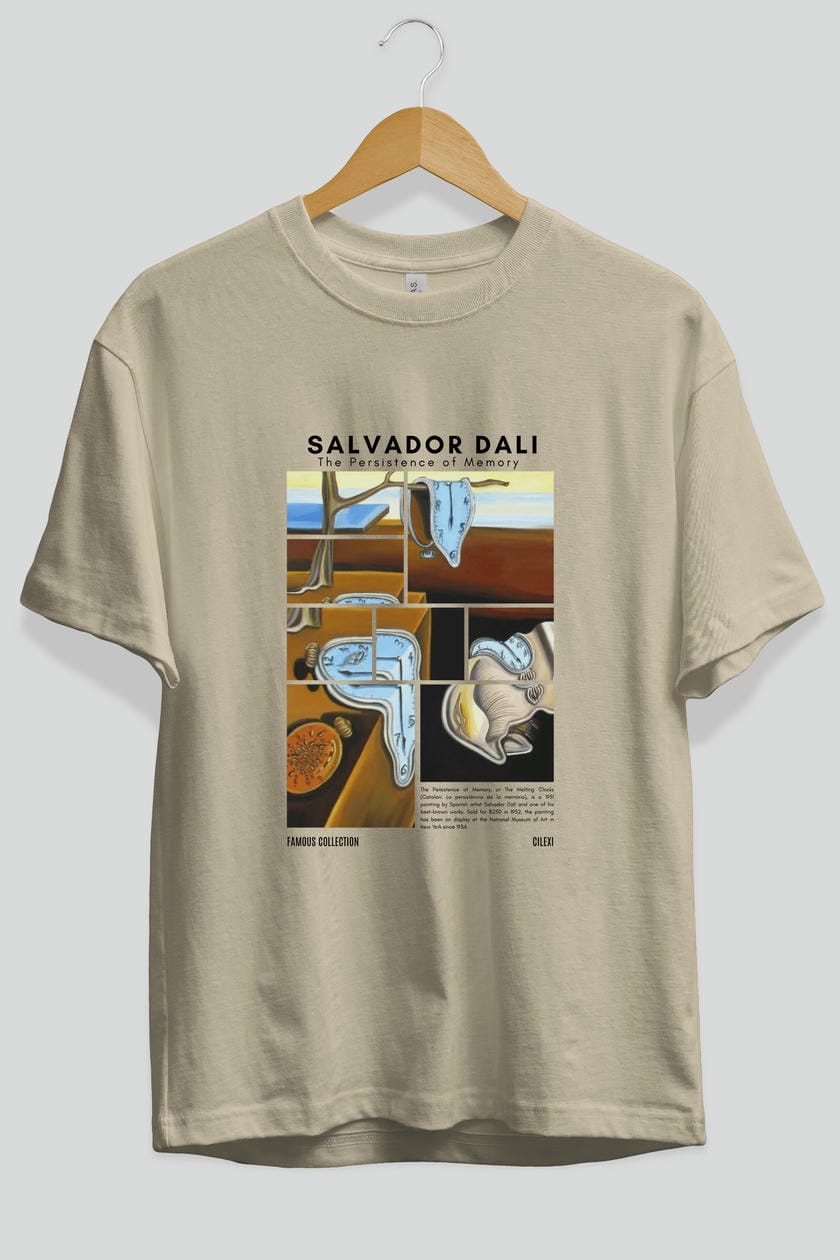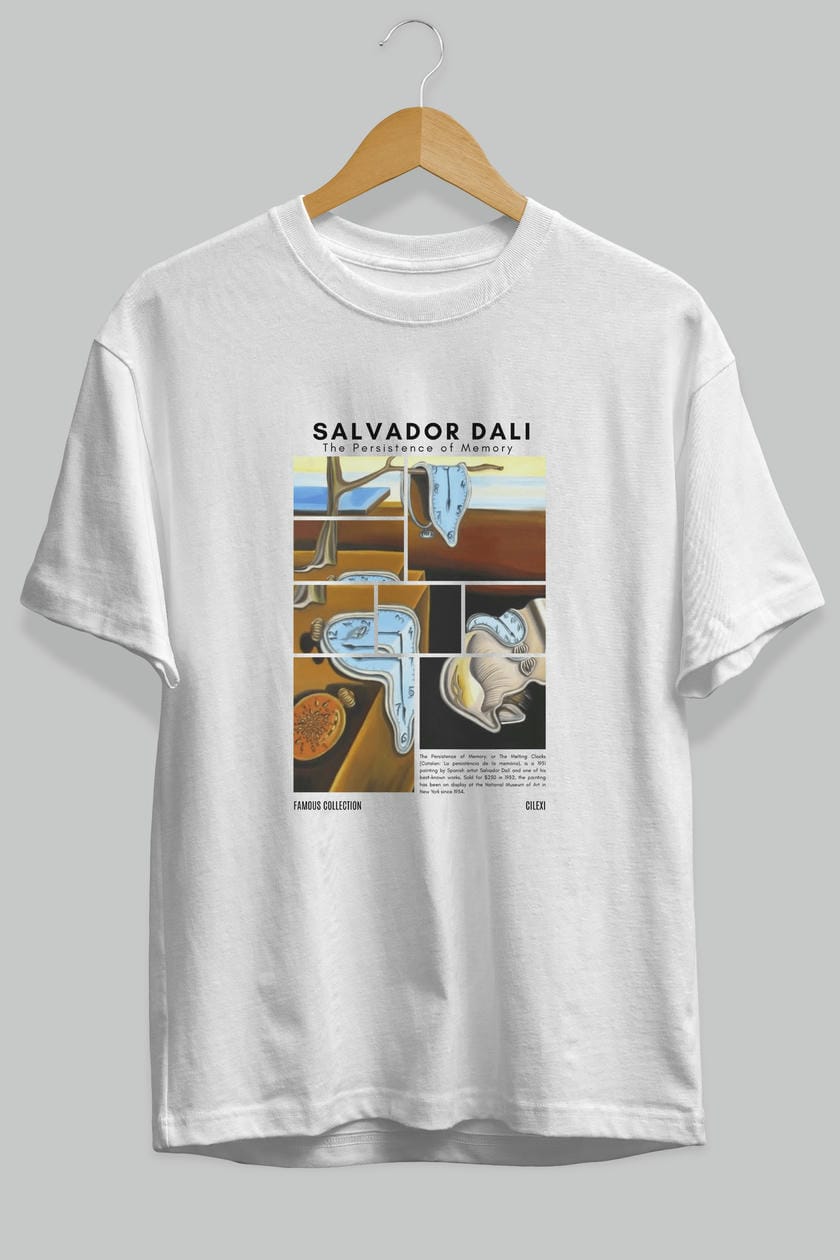 Salvador Dali ön Baskılı Oversize t-shirt Erkek Kadın Bisiklet Yaka Pamuk tişort