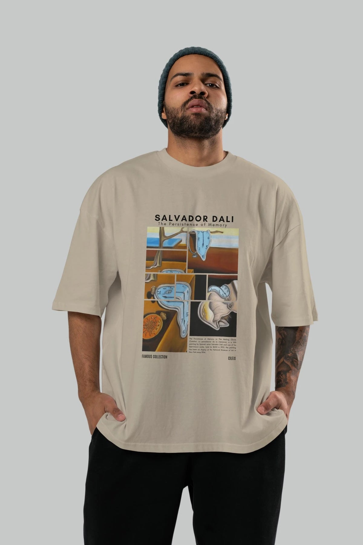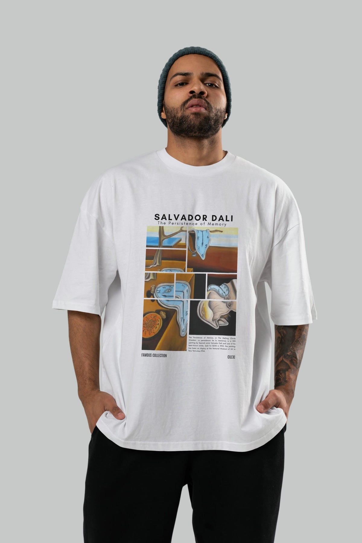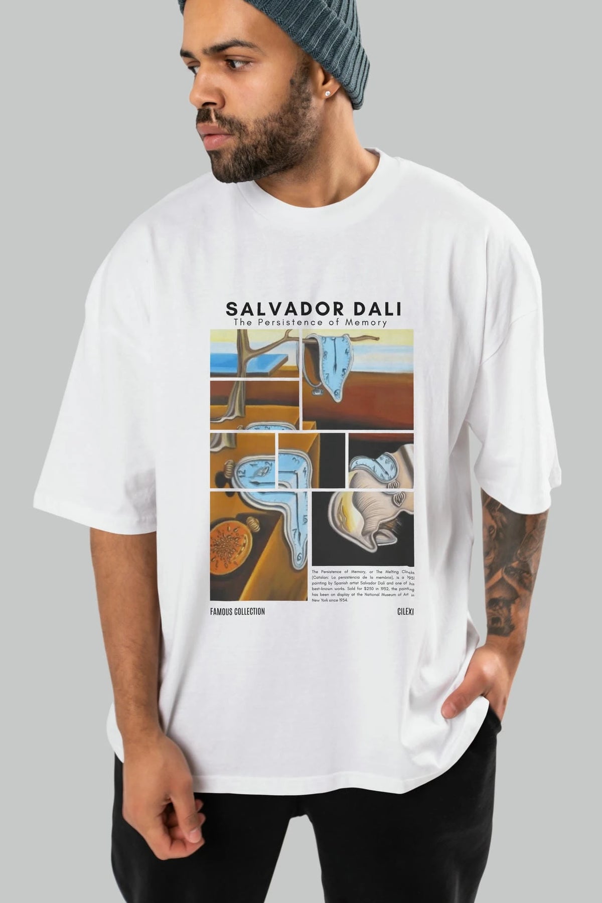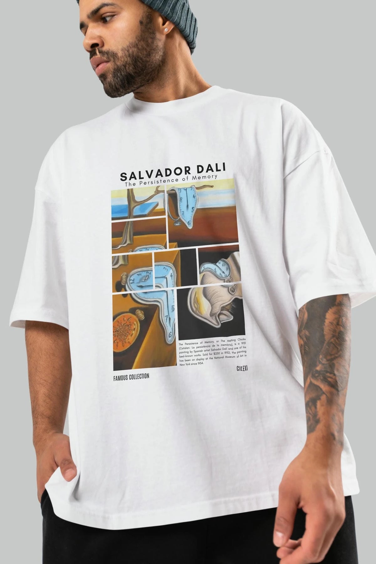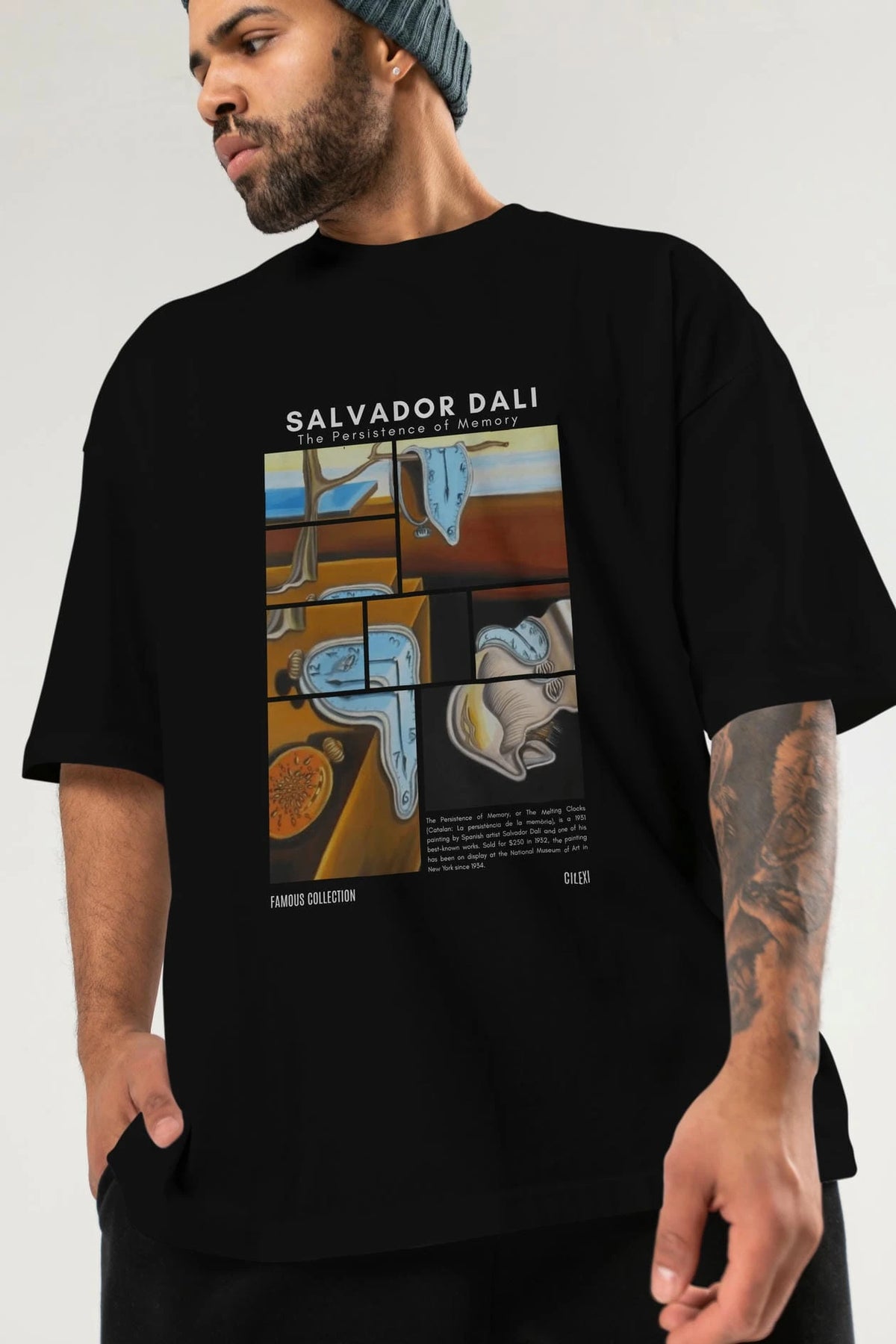 Salvador Dali ön Baskılı Oversize t-shirt Erkek Kadın Bisiklet Yaka Pamuk tişort