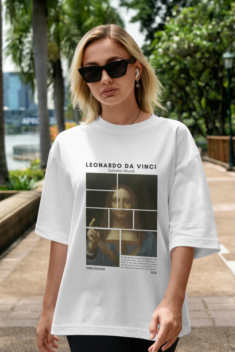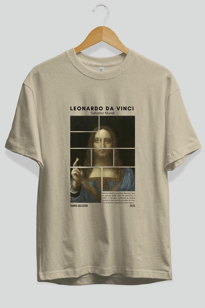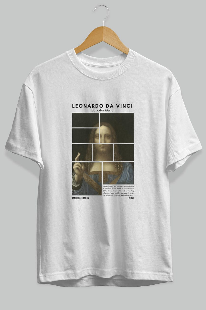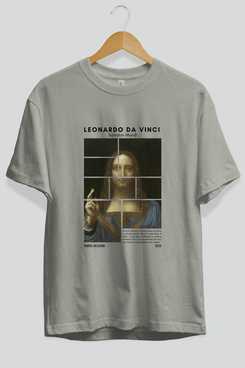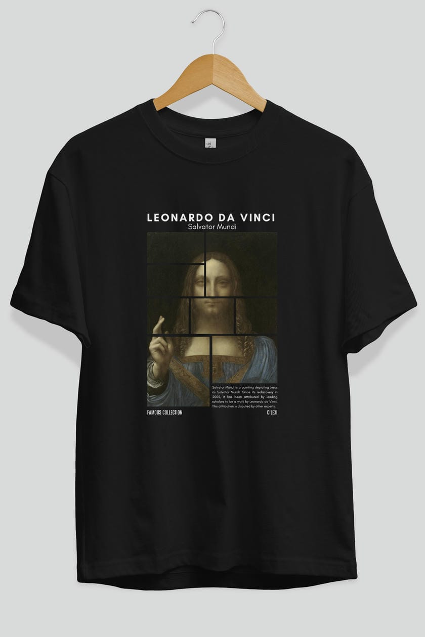 Salvador Mundi ön Baskılı Oversize t-shirt Erkek Kadın Bisiklet Yaka Pamuk tişort