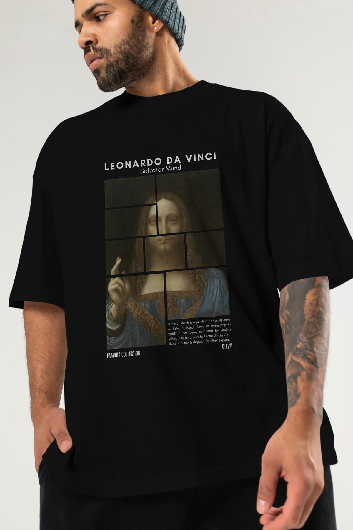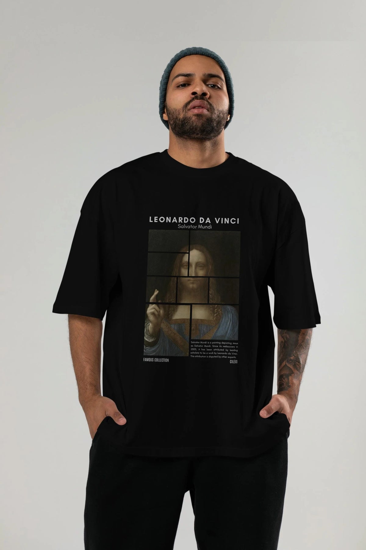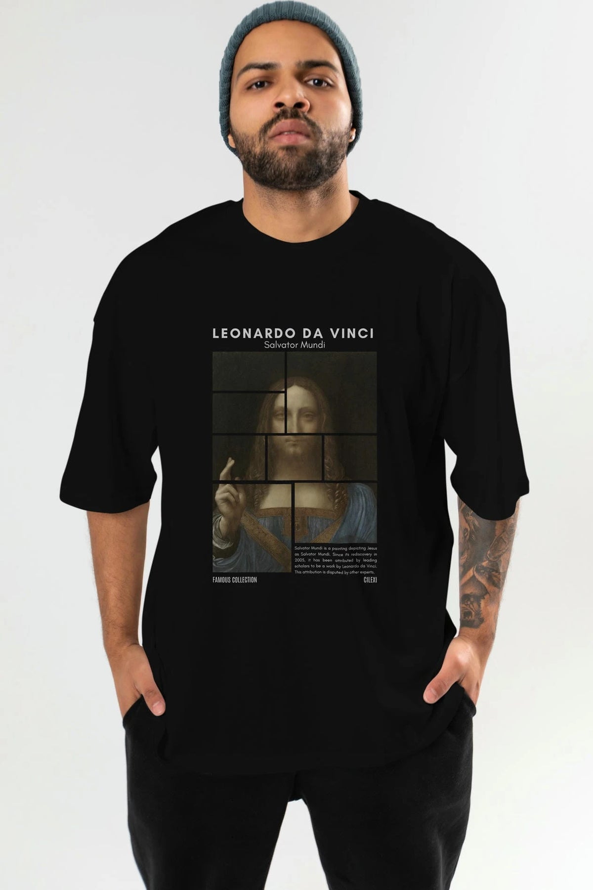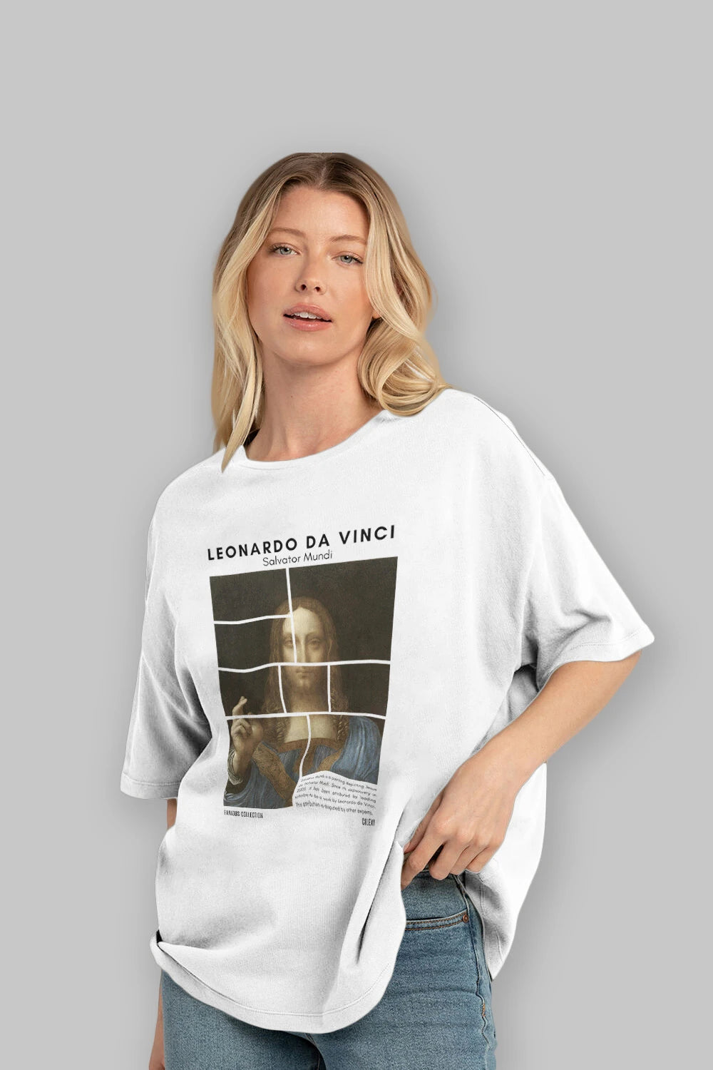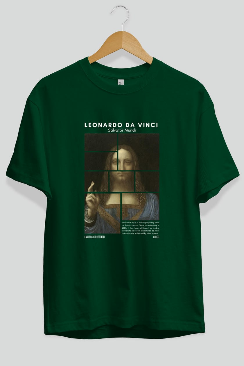 Salvador Mundi ön Baskılı Oversize t-shirt Erkek Kadın Bisiklet Yaka Pamuk tişort