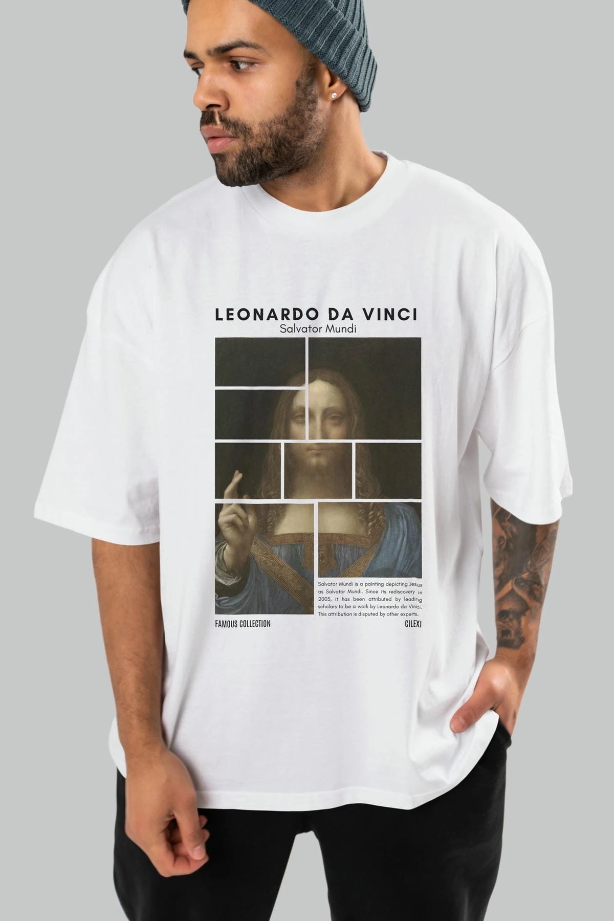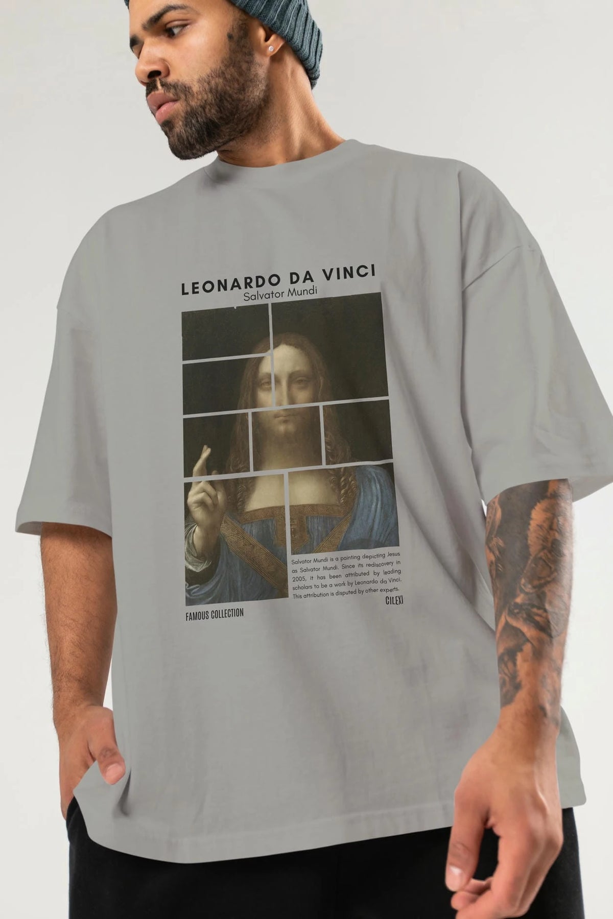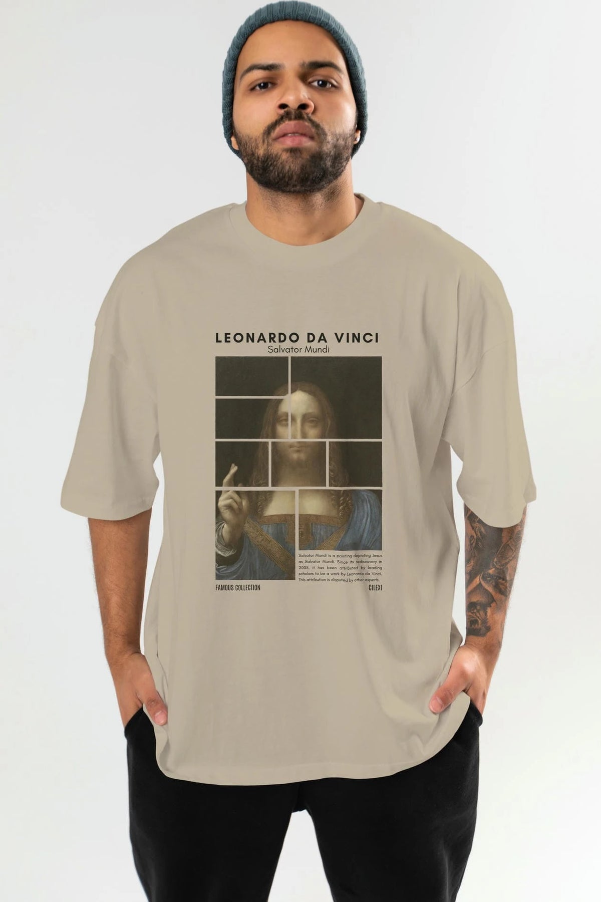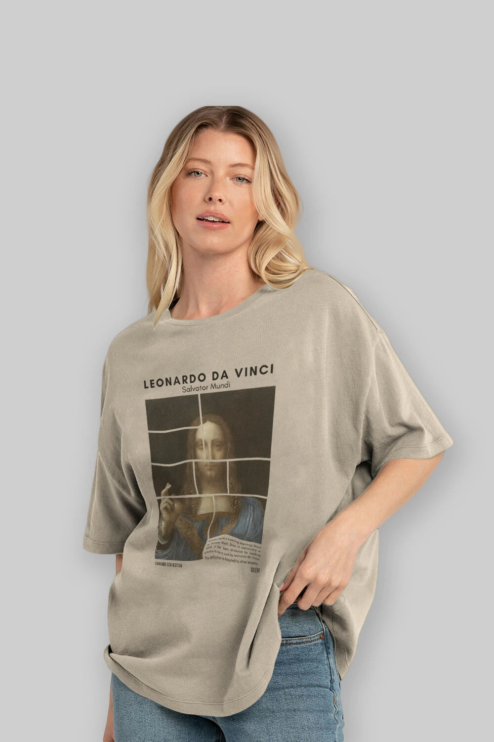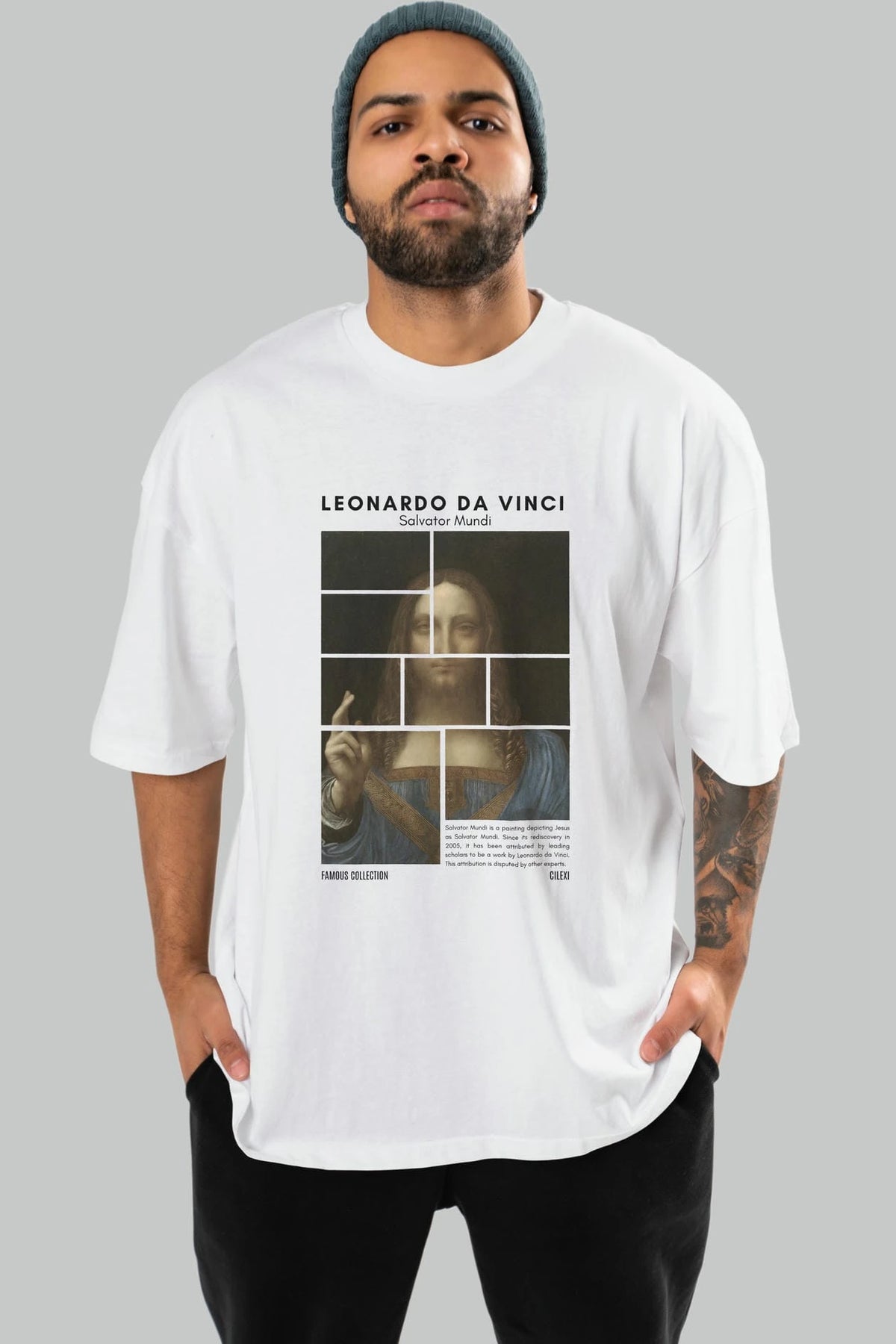 Salvador Mundi ön Baskılı Oversize t-shirt Erkek Kadın Bisiklet Yaka Pamuk tişort