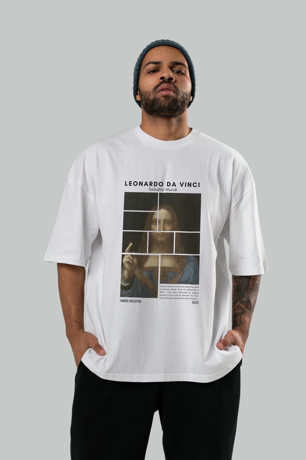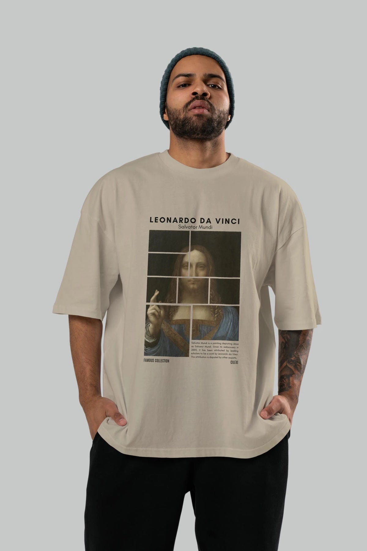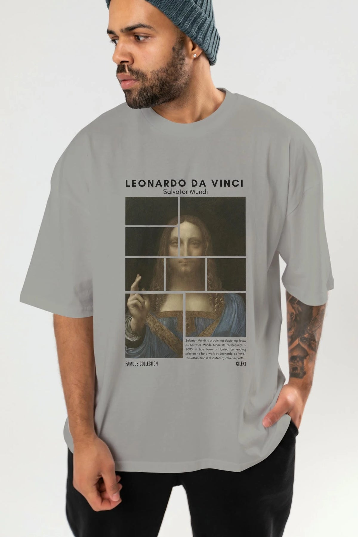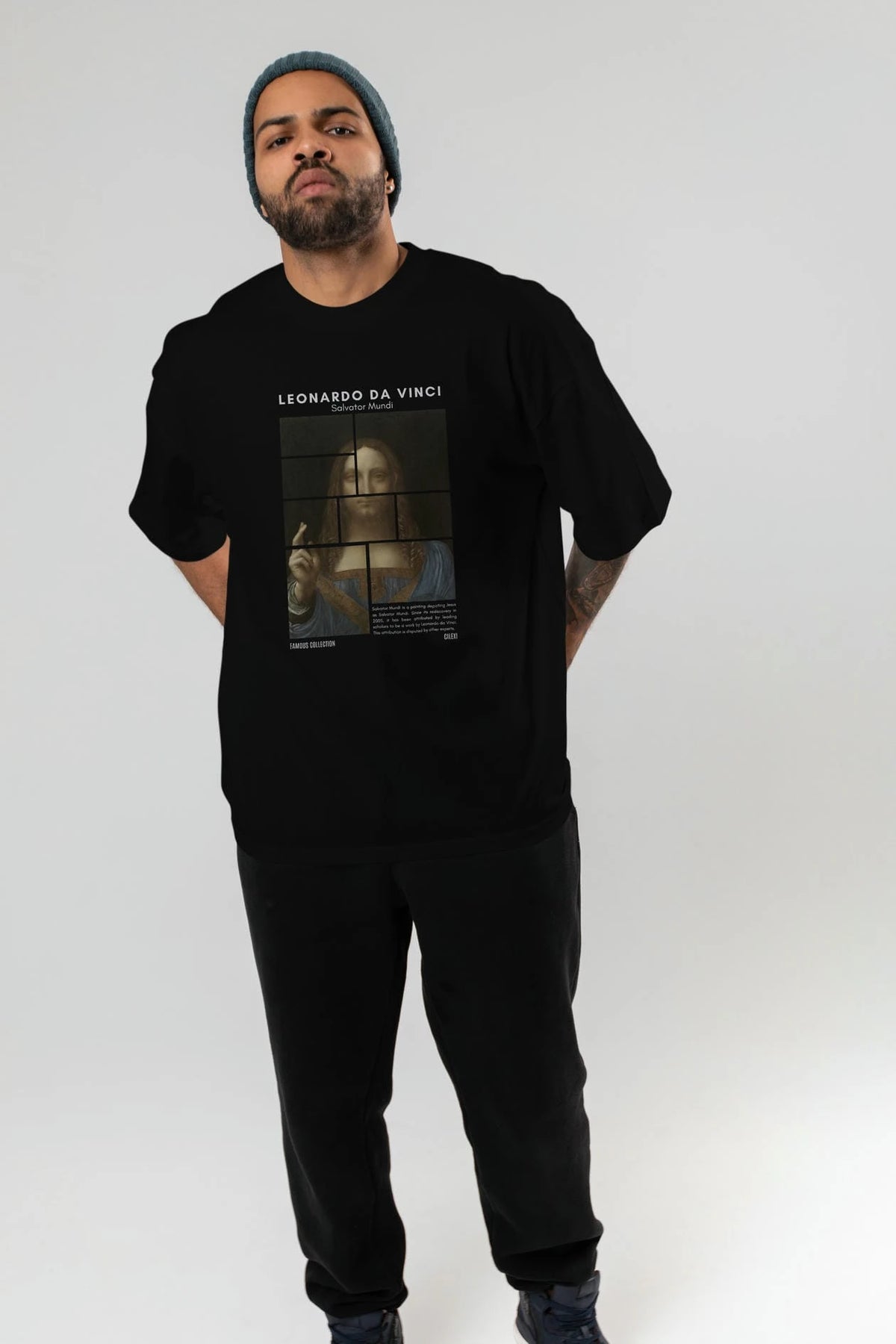 Salvador Mundi ön Baskılı Oversize t-shirt Erkek Kadın Bisiklet Yaka Pamuk tişort