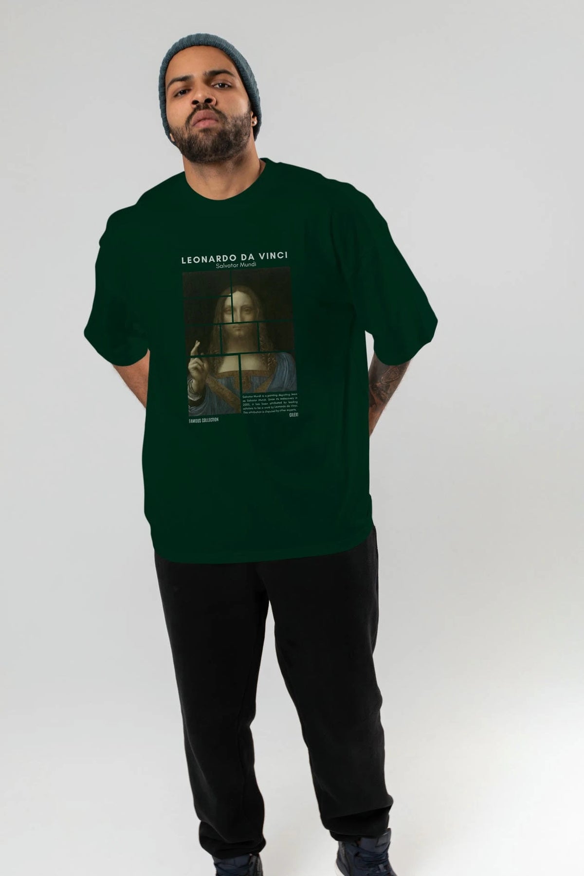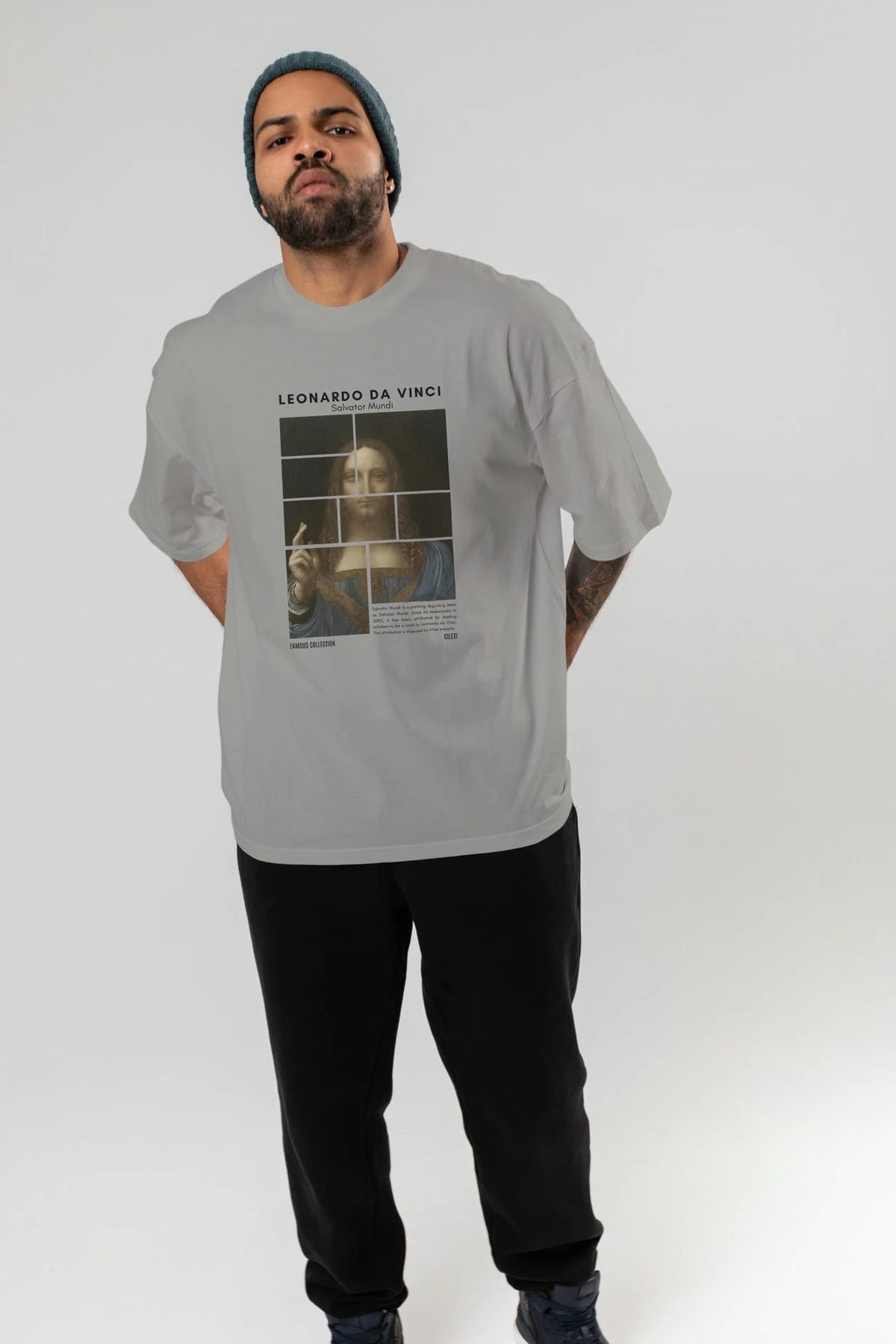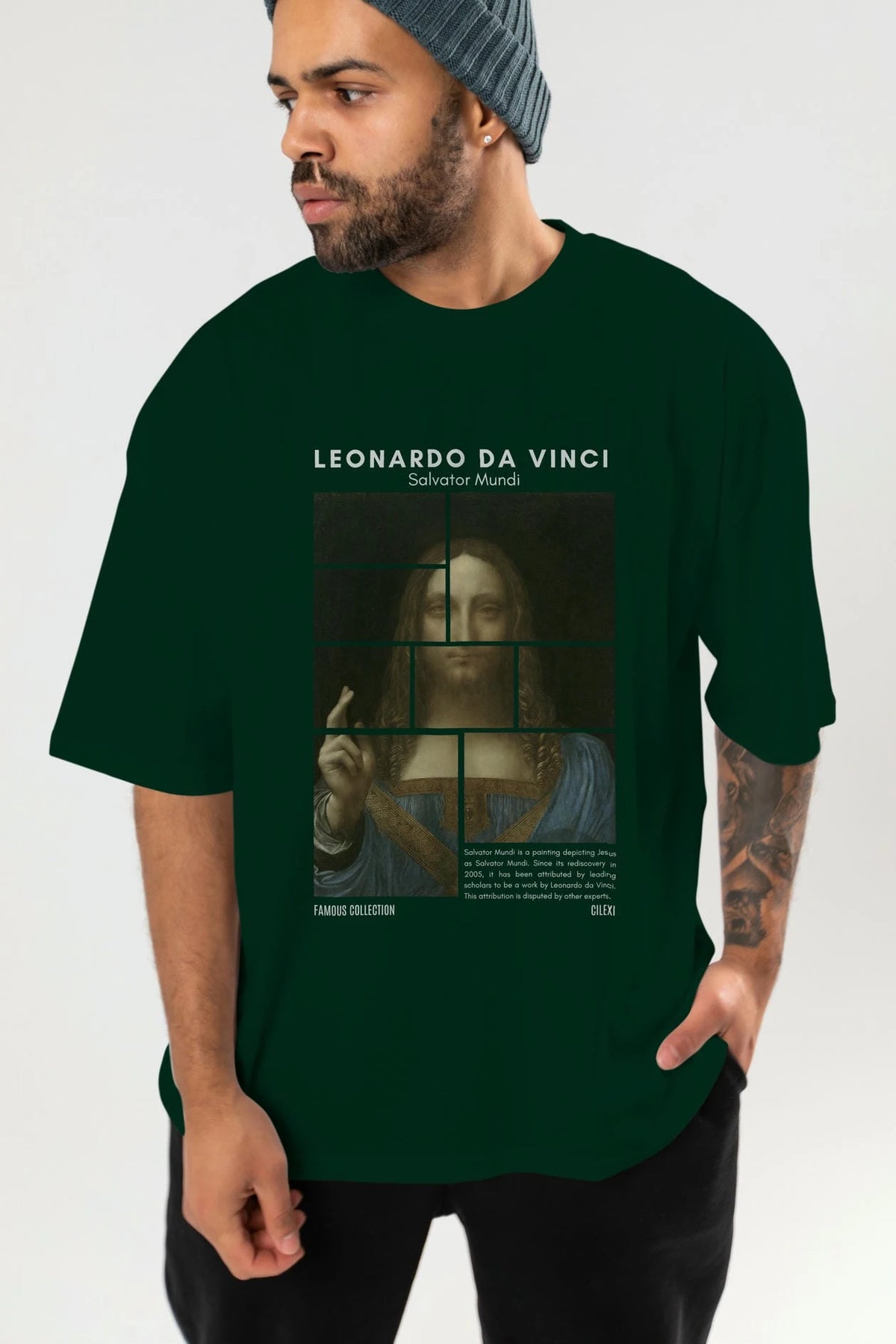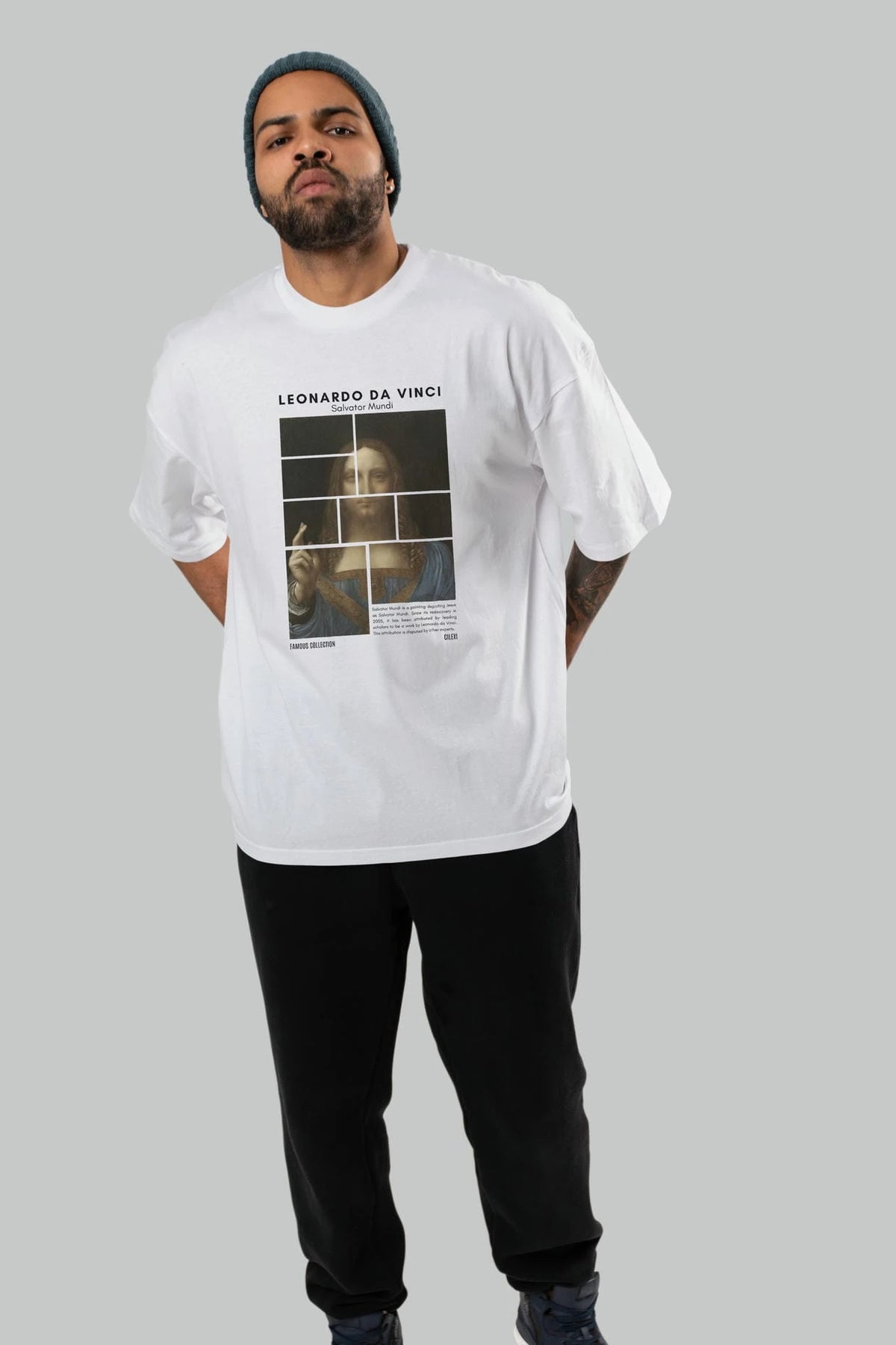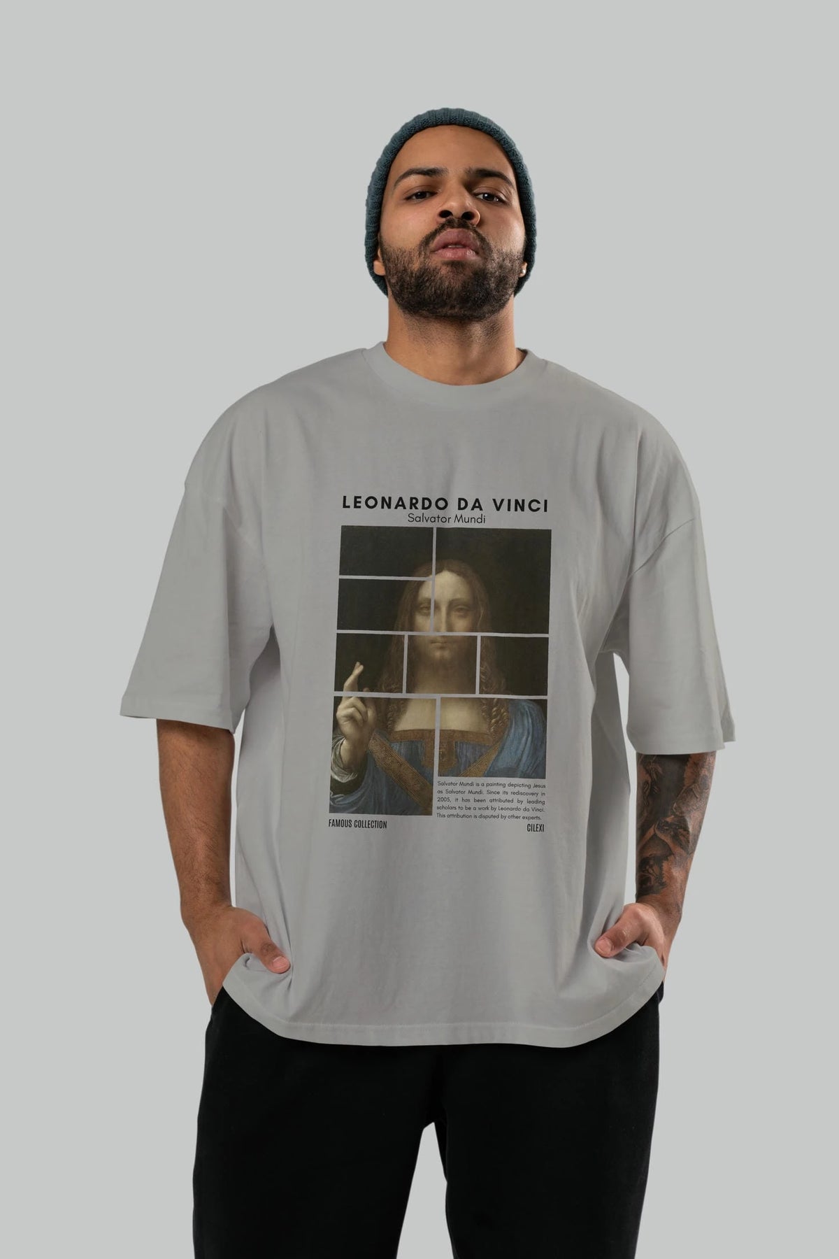Salvador Mundi ön Baskılı Oversize t-shirt Erkek Kadın Bisiklet Yaka Pamuk tişort