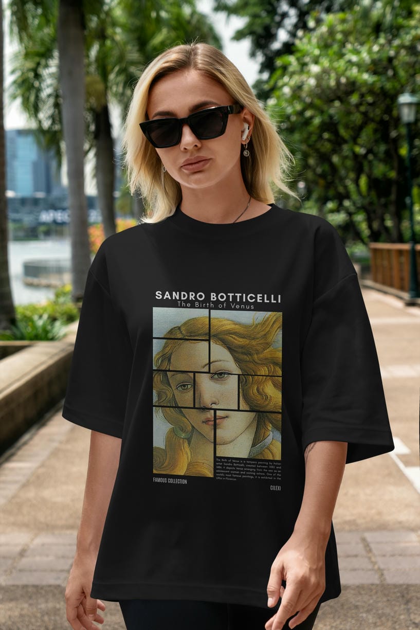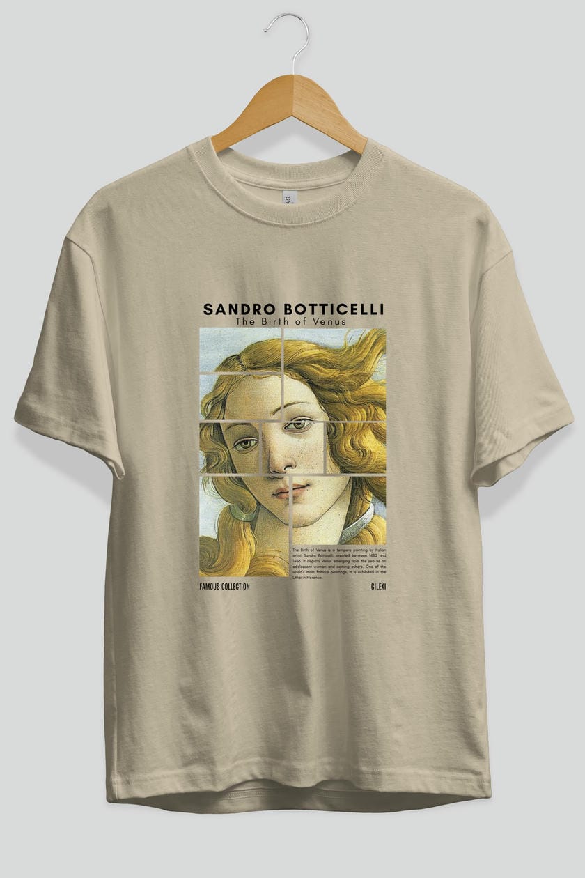 Sandro Botticelli ön Baskılı Oversize t-shirt Erkek Kadın Bisiklet Yaka Pamuk tişort