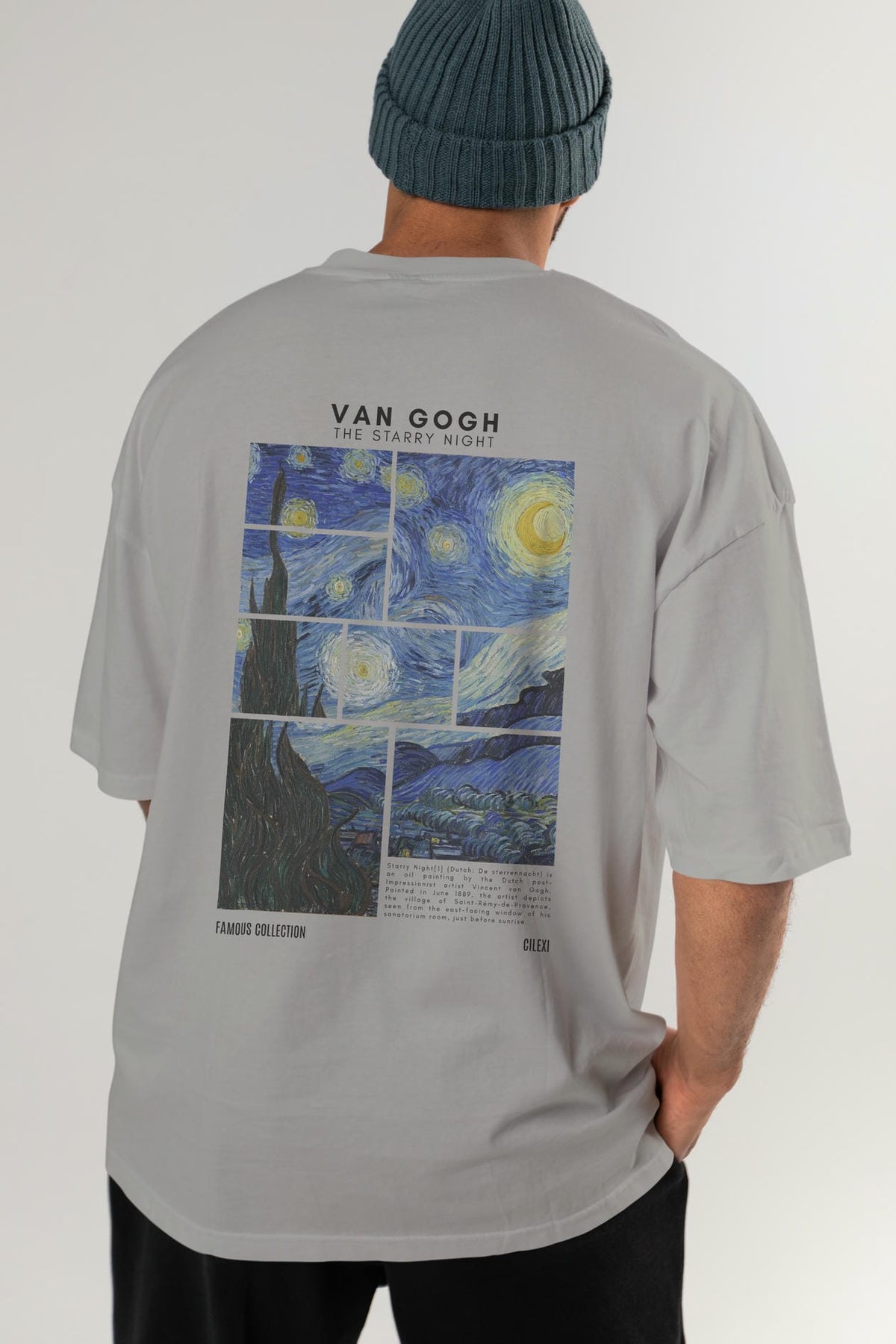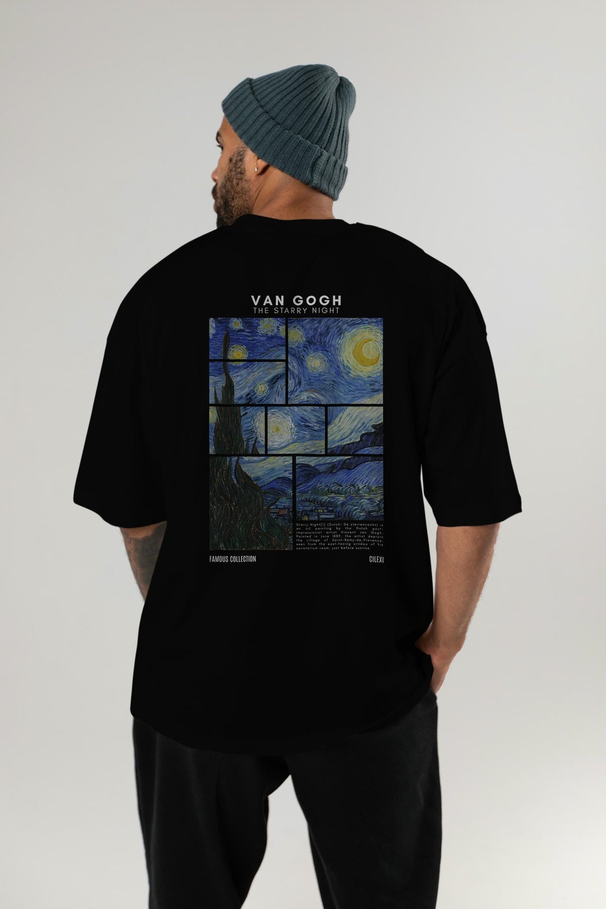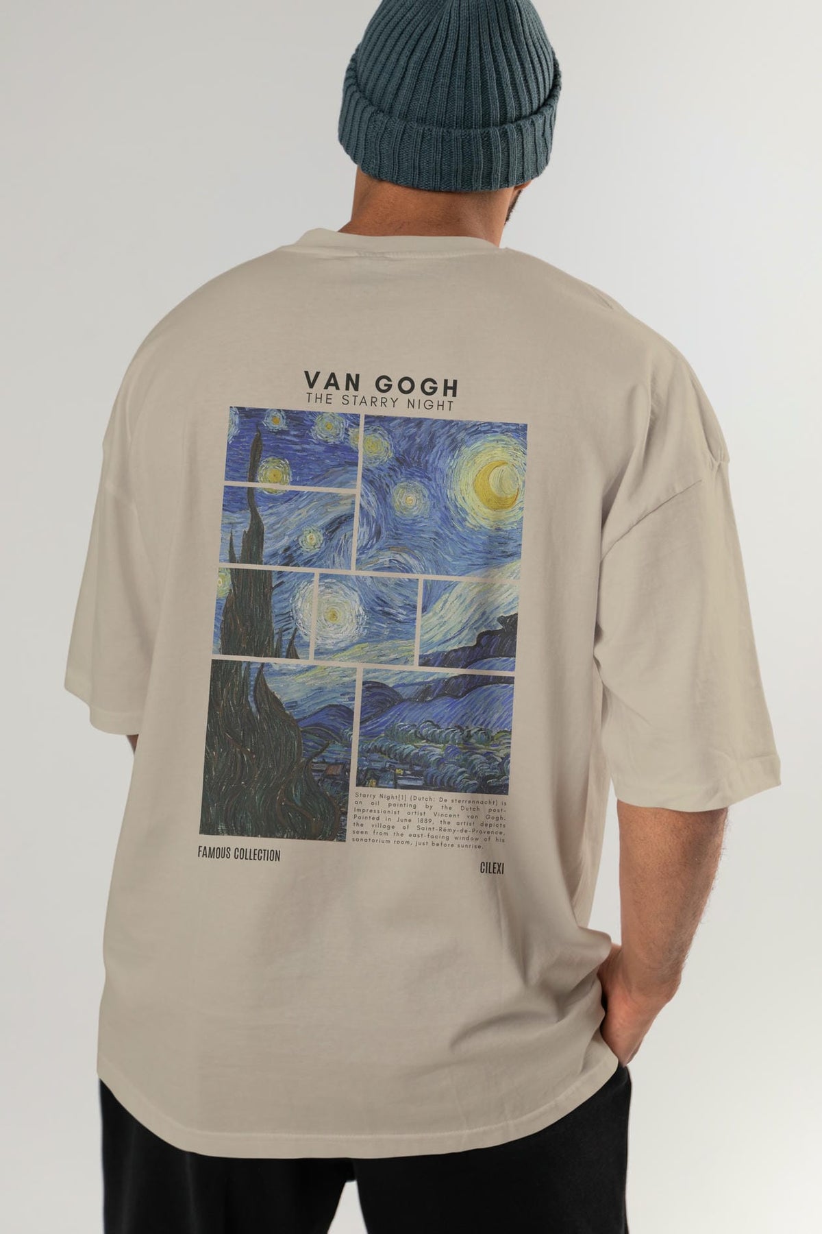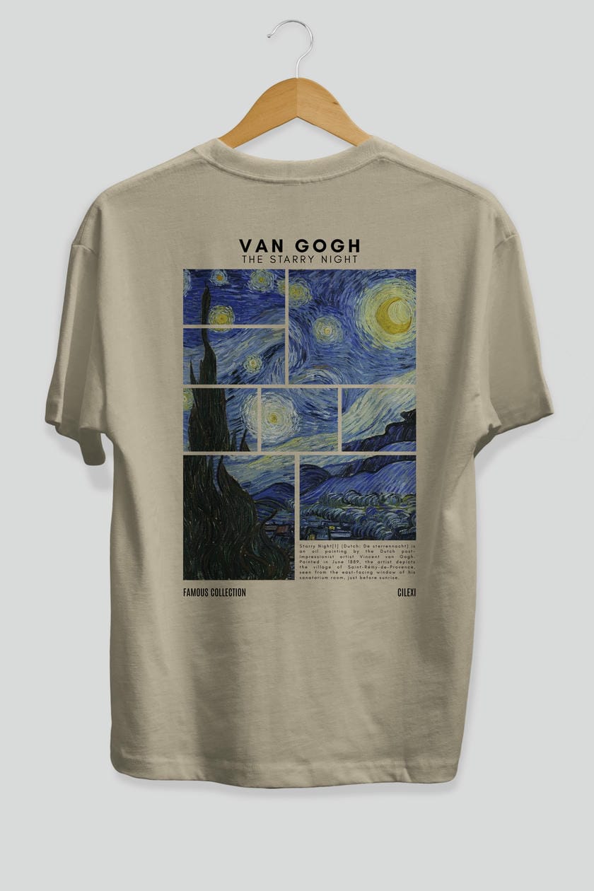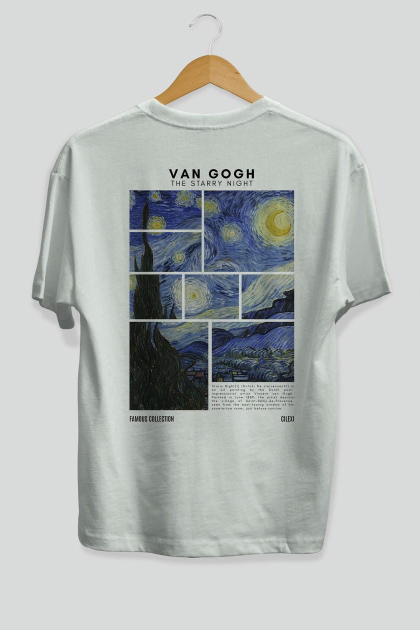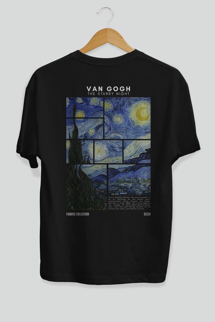 Van Gogh The Starry Night Arka Baskılı Oversize t-shirt Erkek Kadın Bisiklet Yaka Pamuk tişort