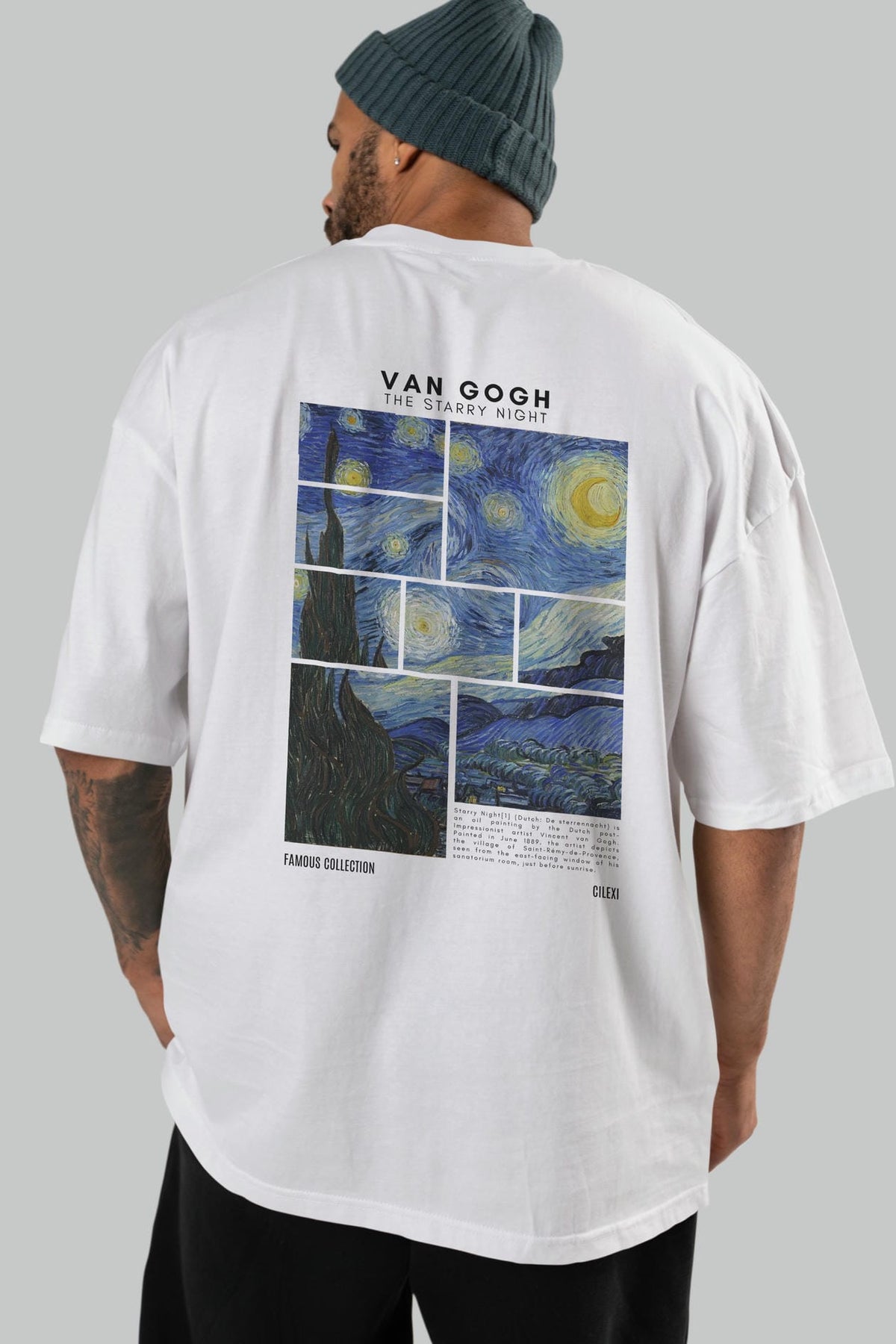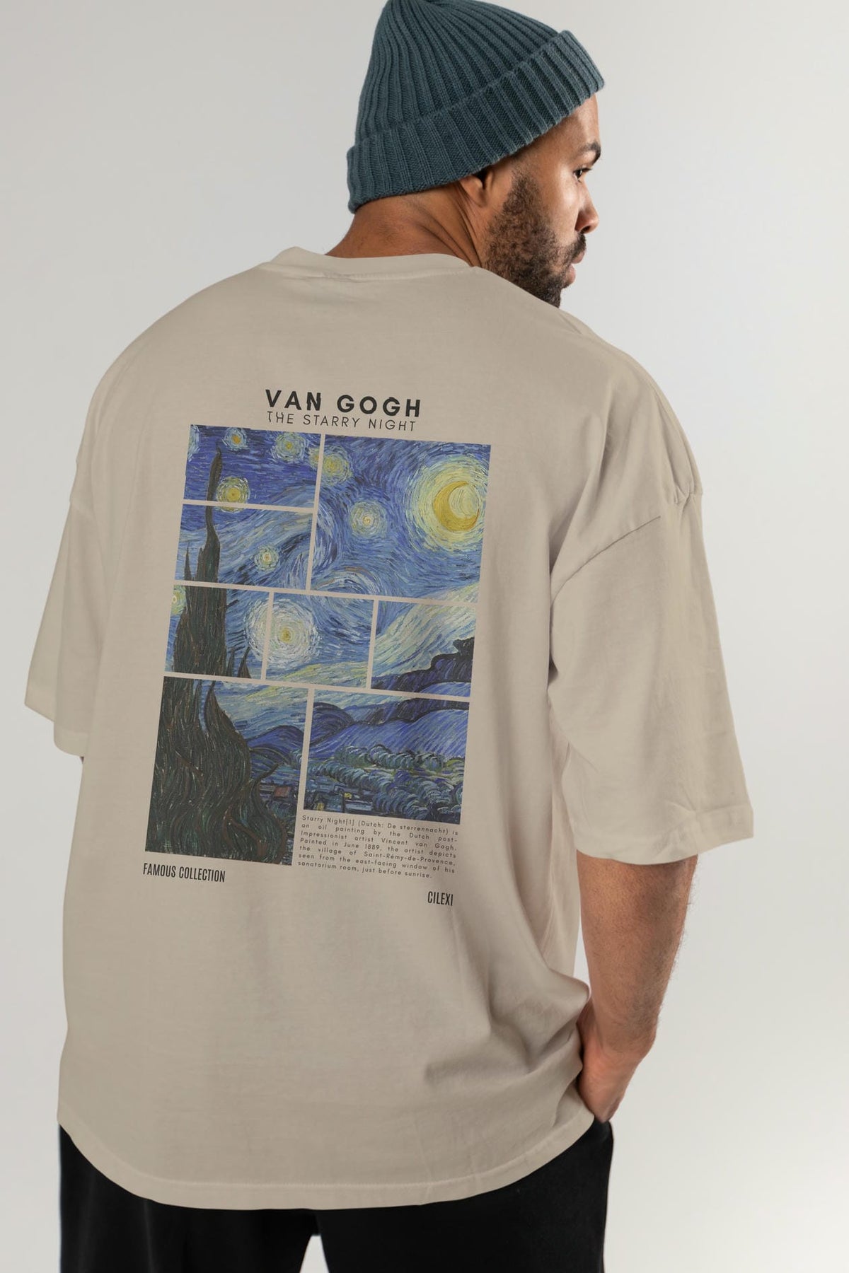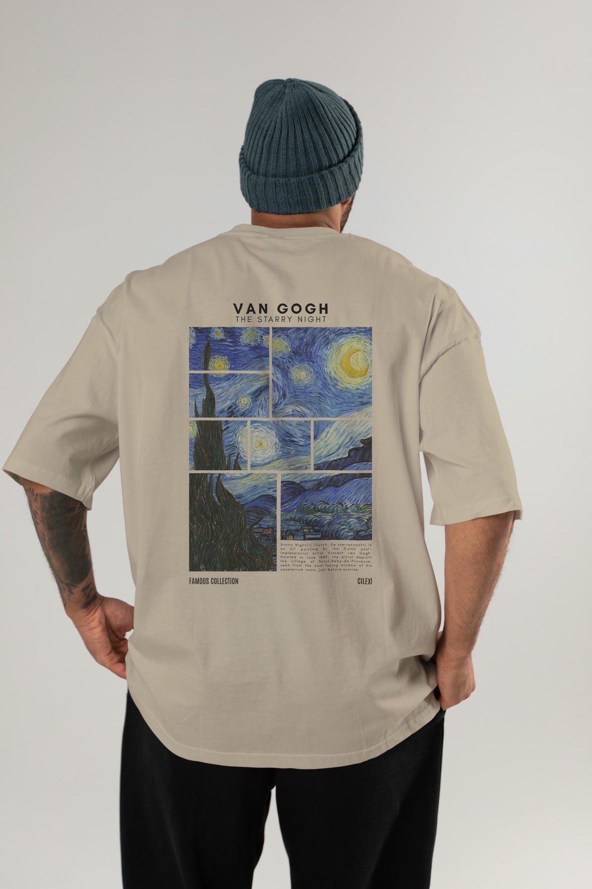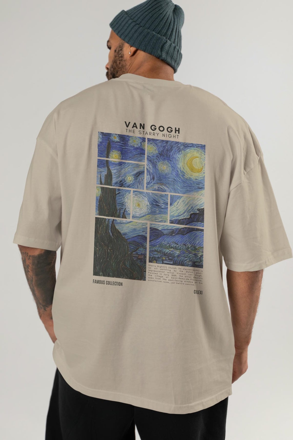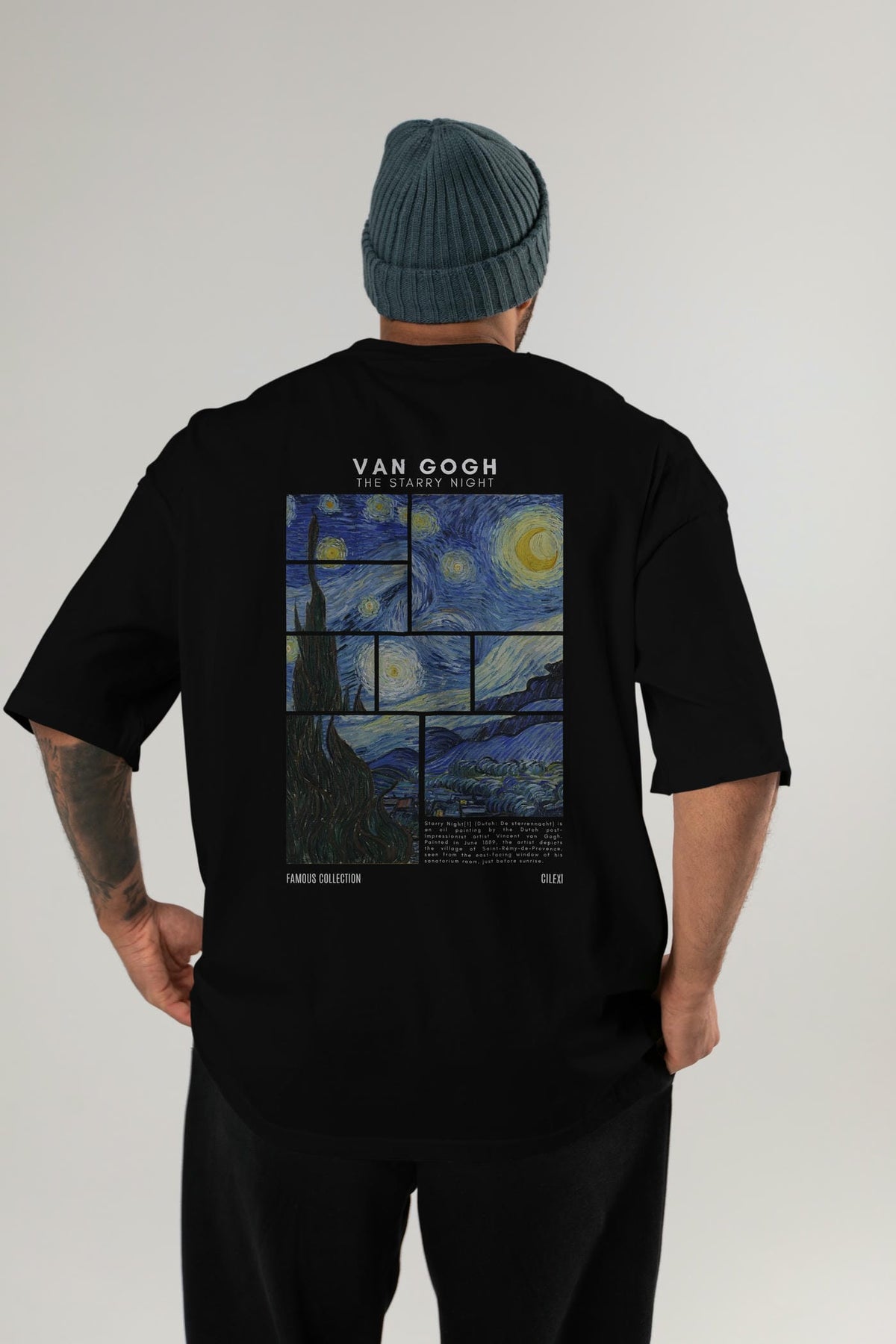 Van Gogh The Starry Night Arka Baskılı Oversize t-shirt Erkek Kadın Bisiklet Yaka Pamuk tişort