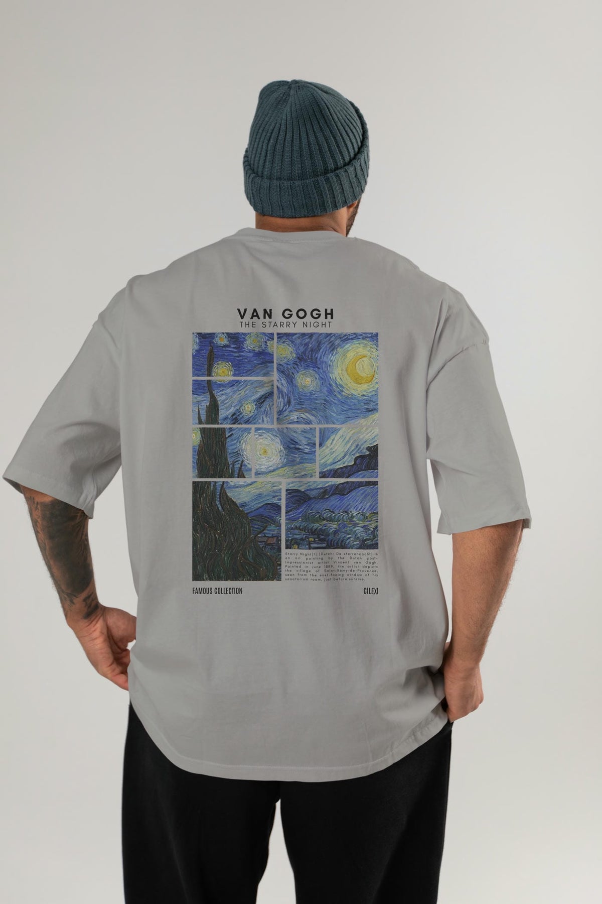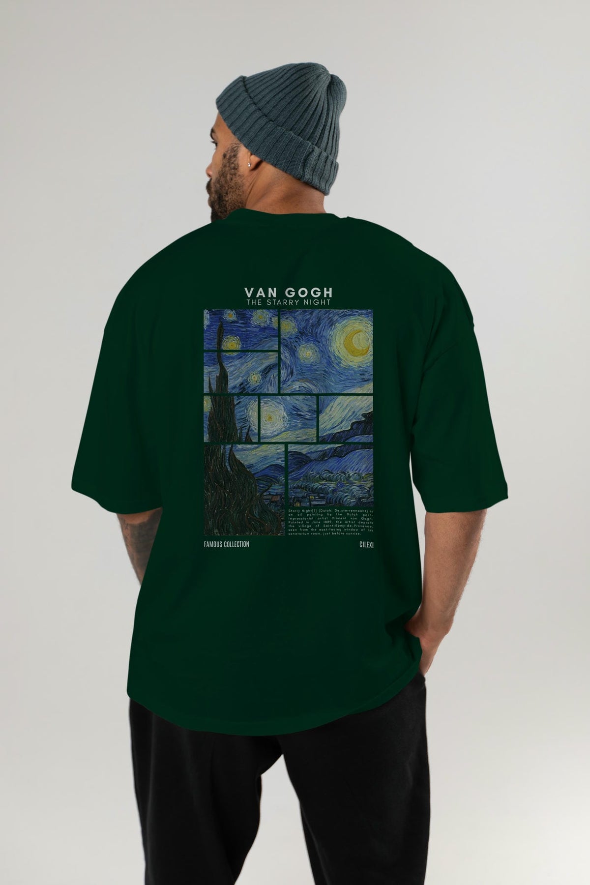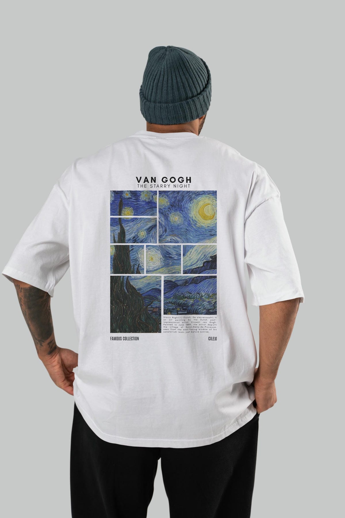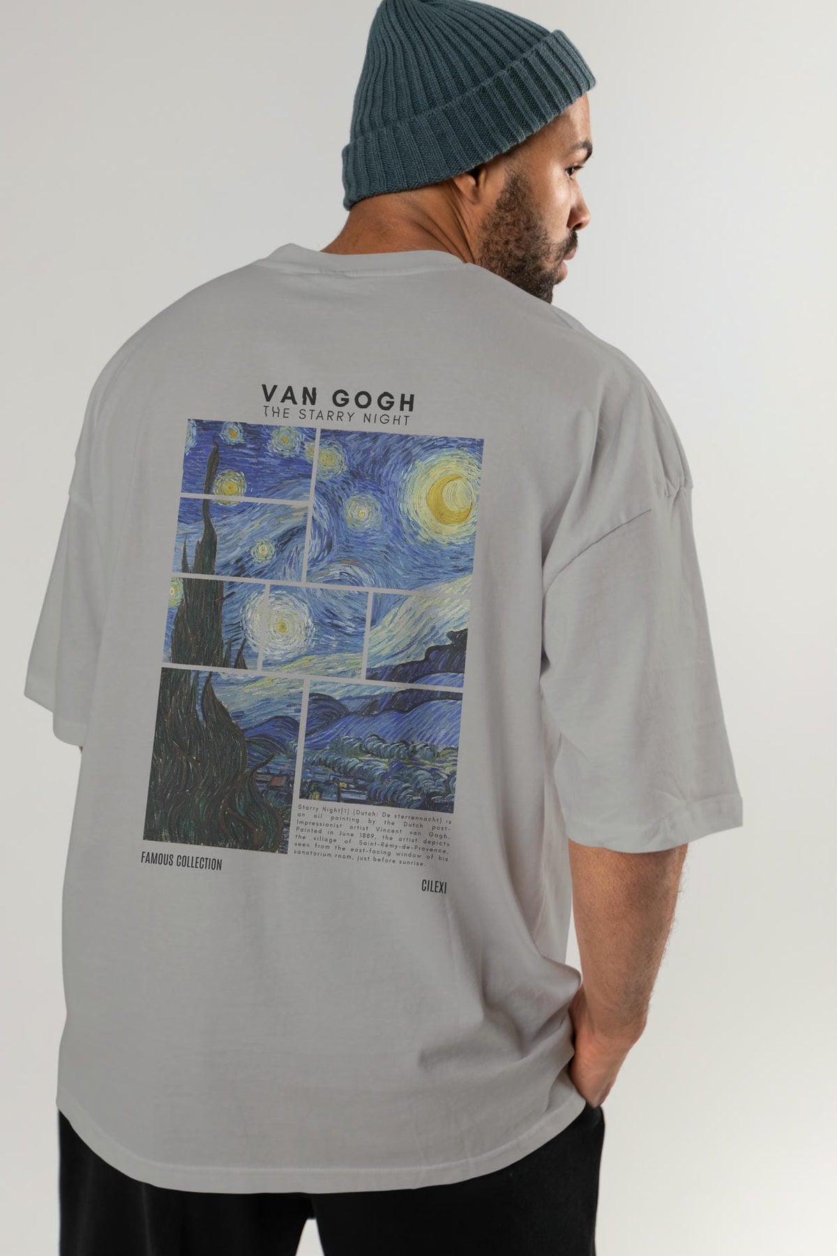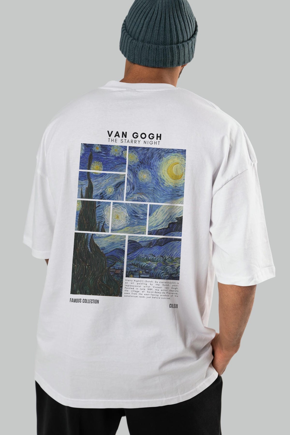 Van Gogh The Starry Night Arka Baskılı Oversize t-shirt Erkek Kadın Bisiklet Yaka Pamuk tişort