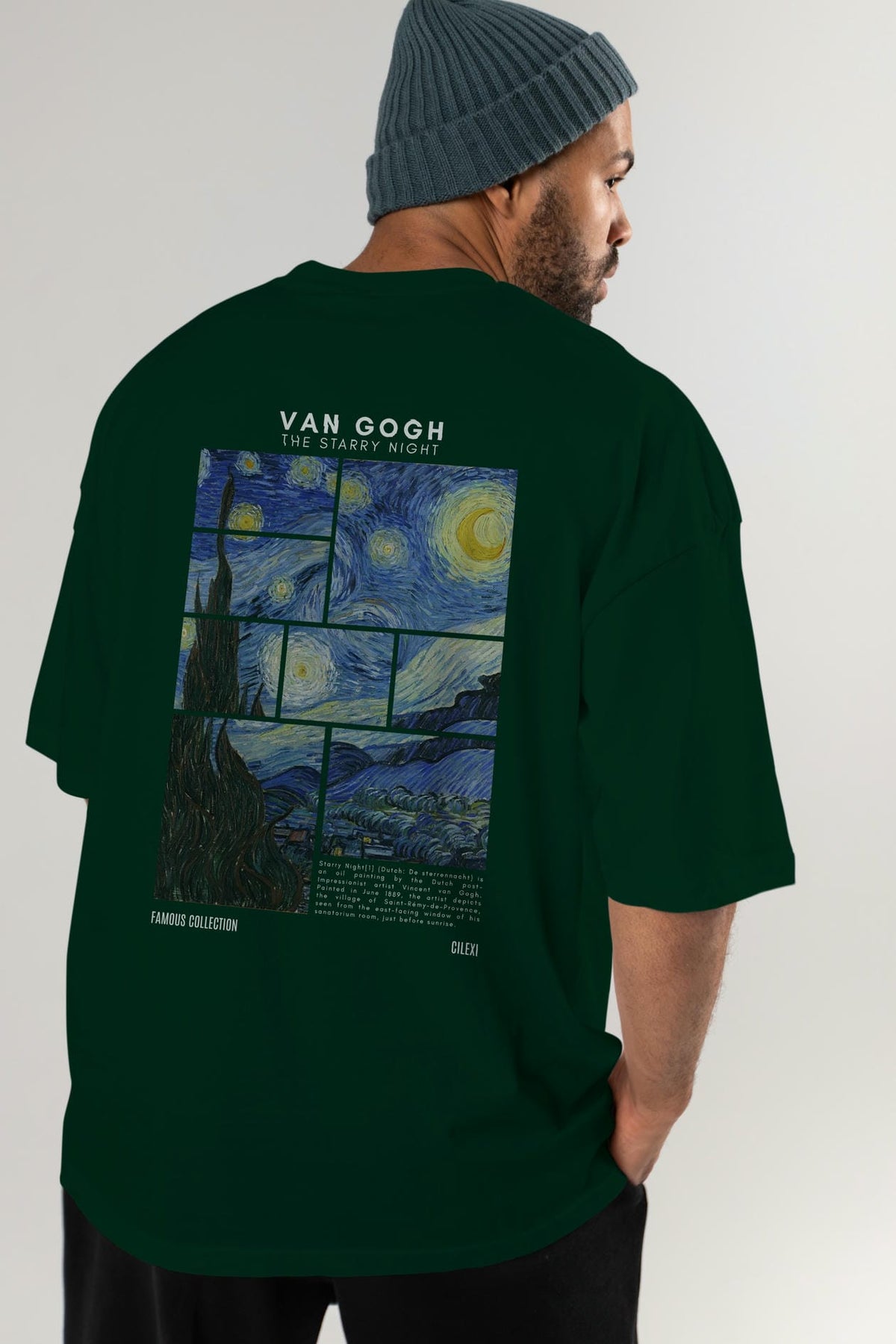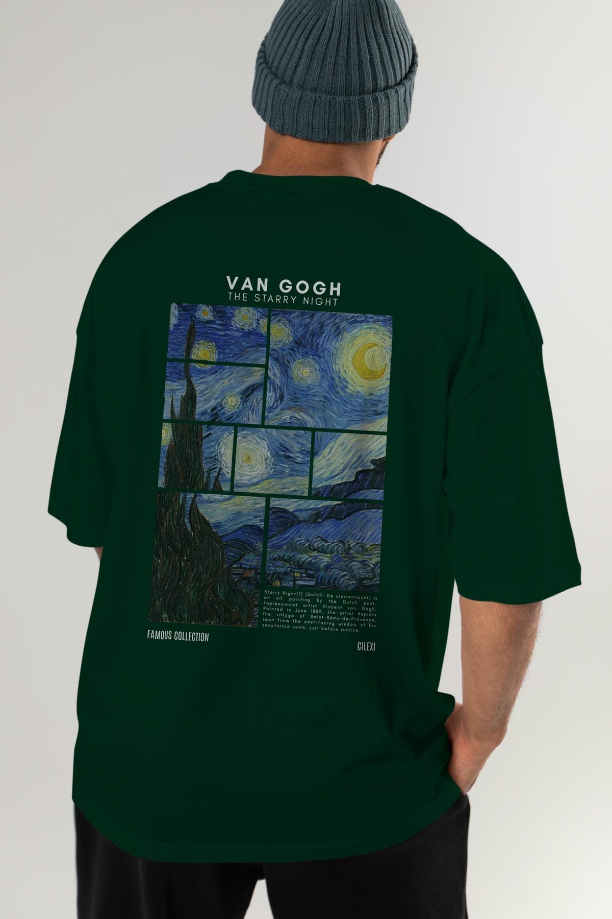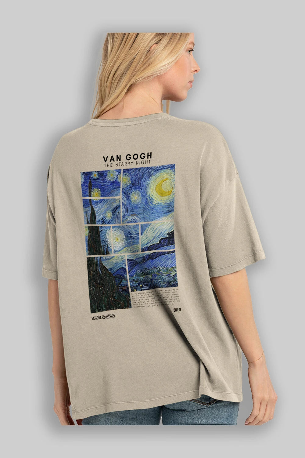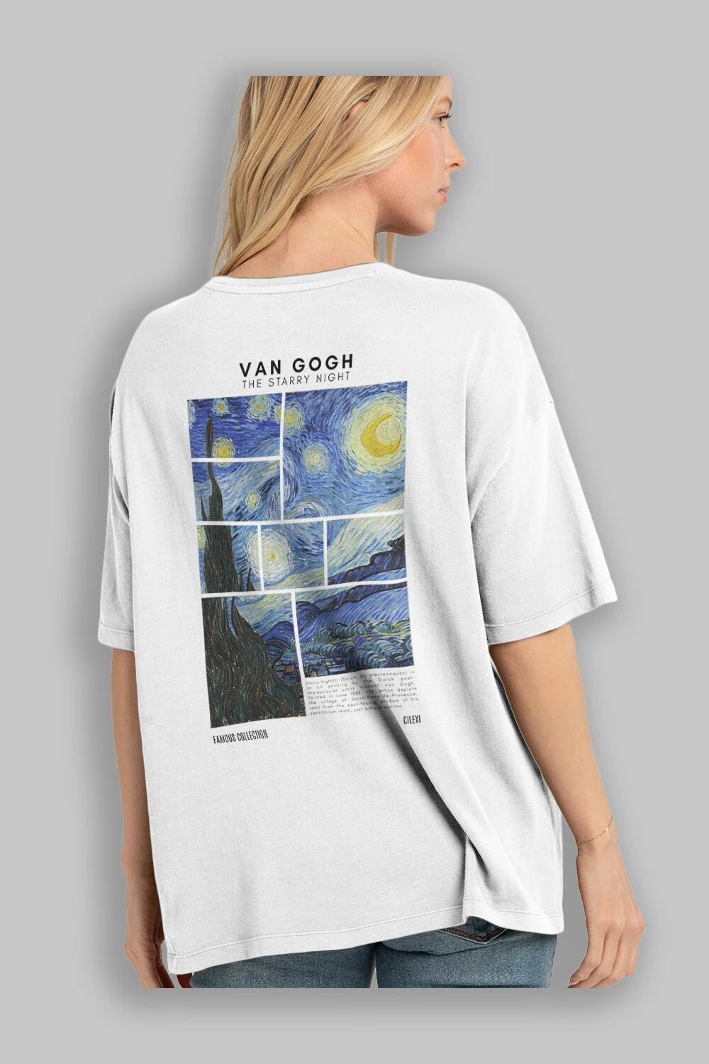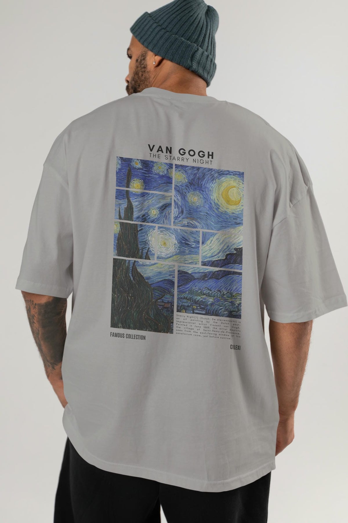 Van Gogh The Starry Night Arka Baskılı Oversize t-shirt Erkek Kadın Bisiklet Yaka Pamuk tişort