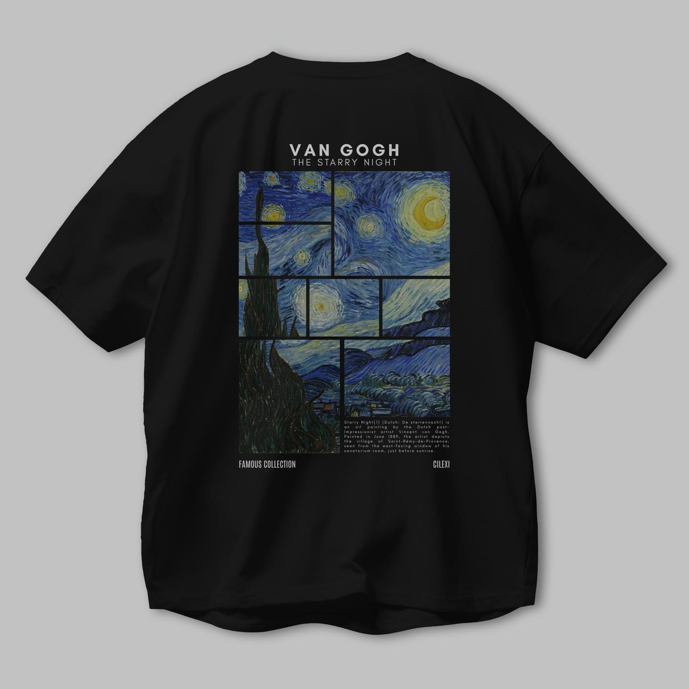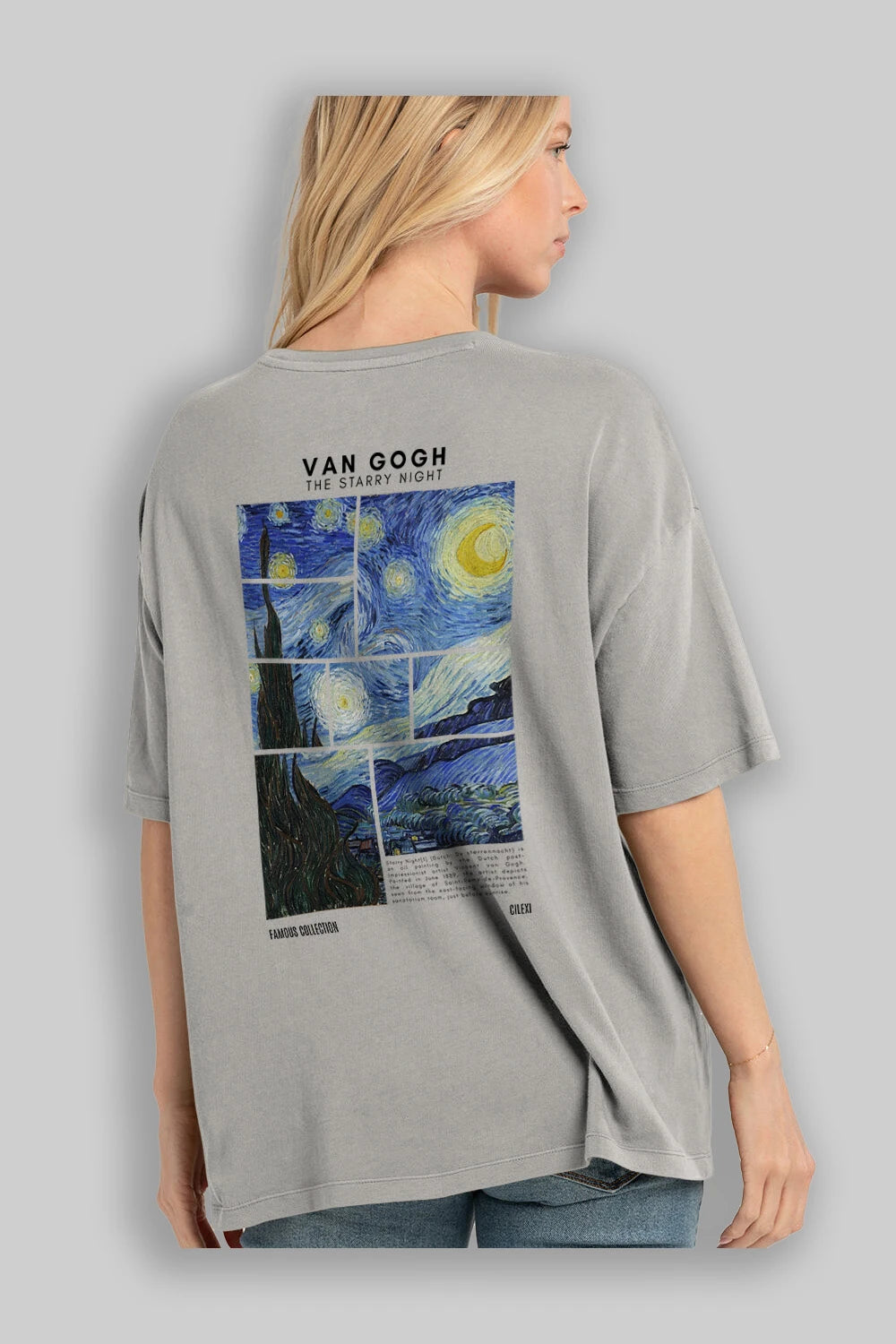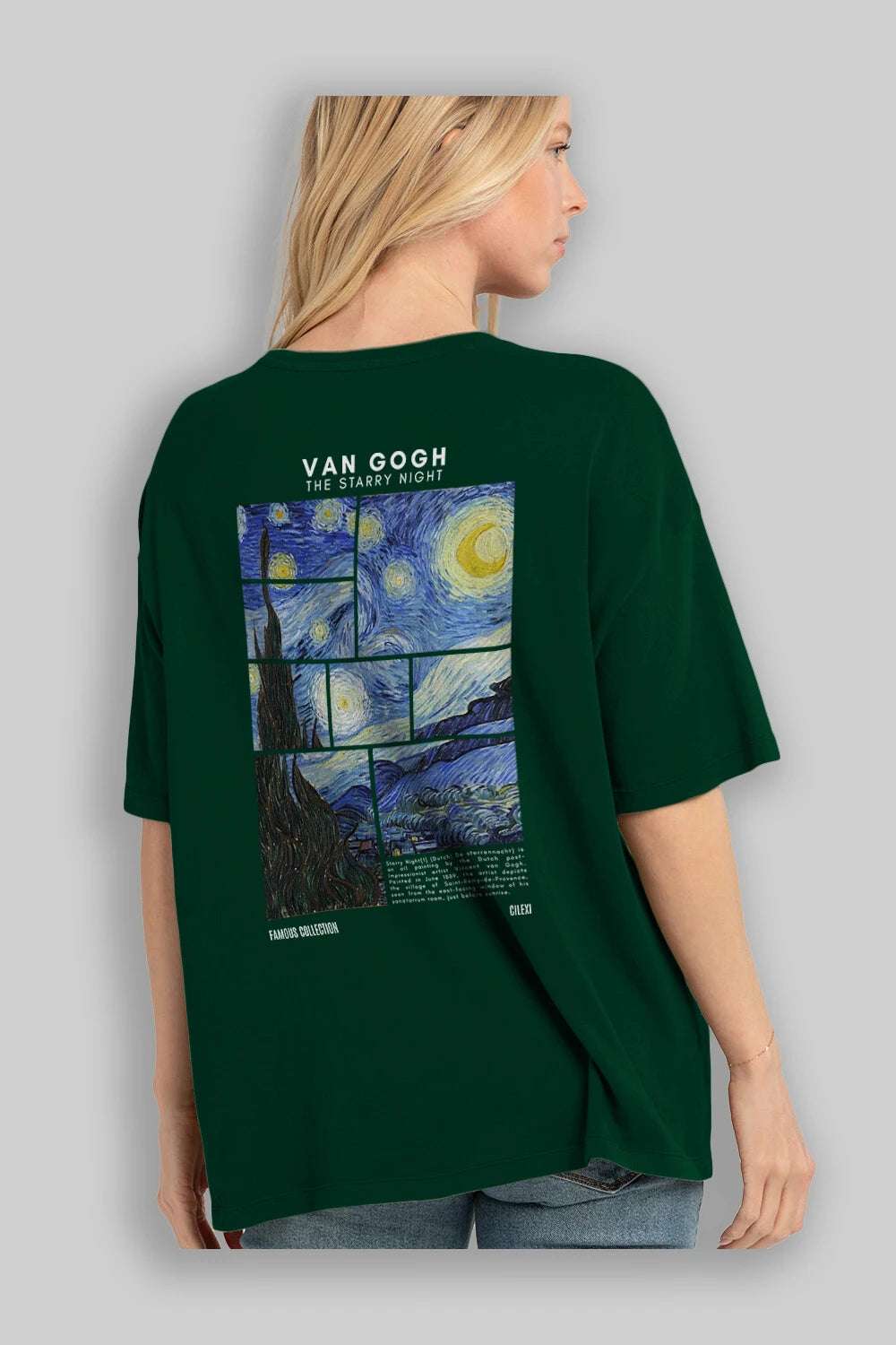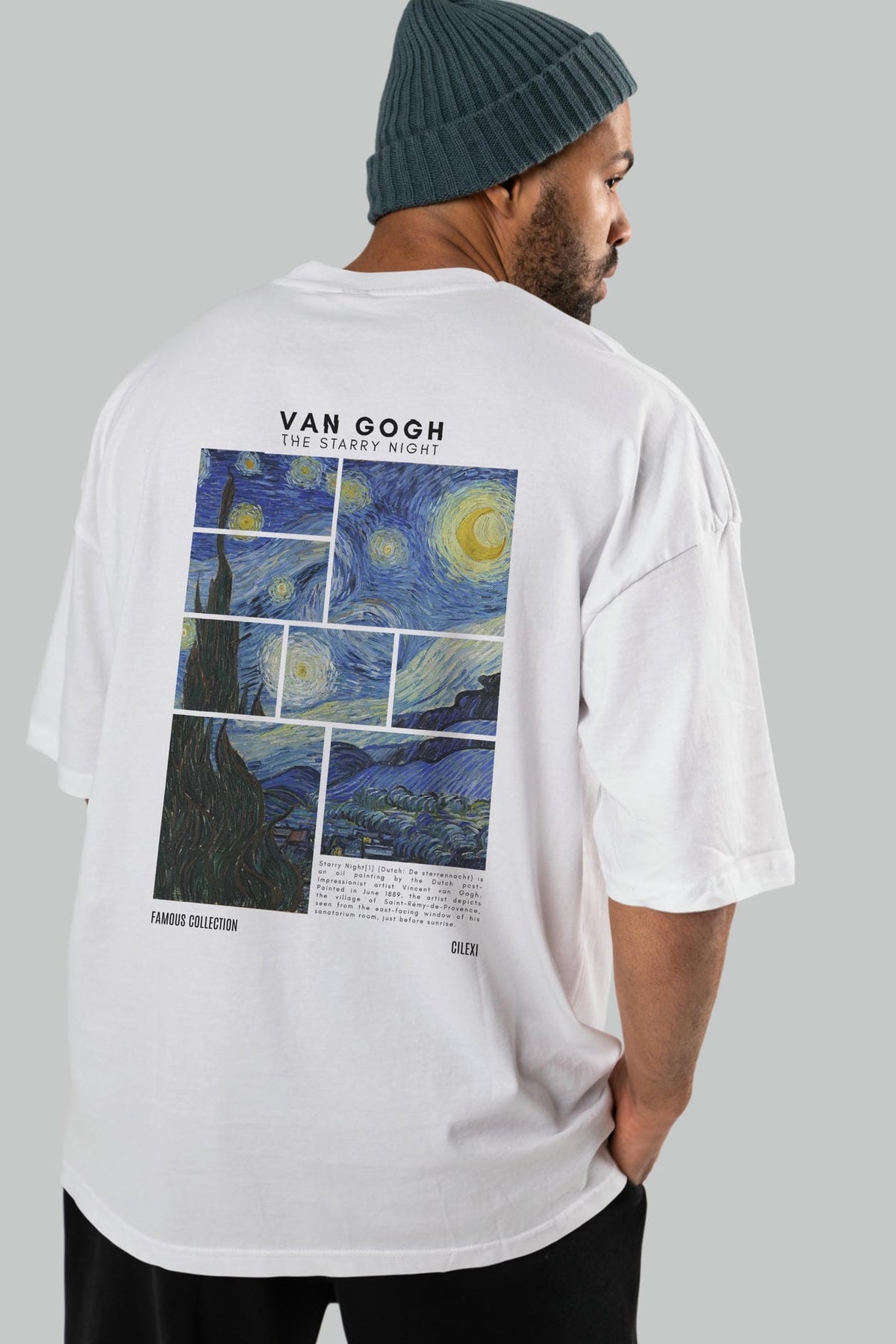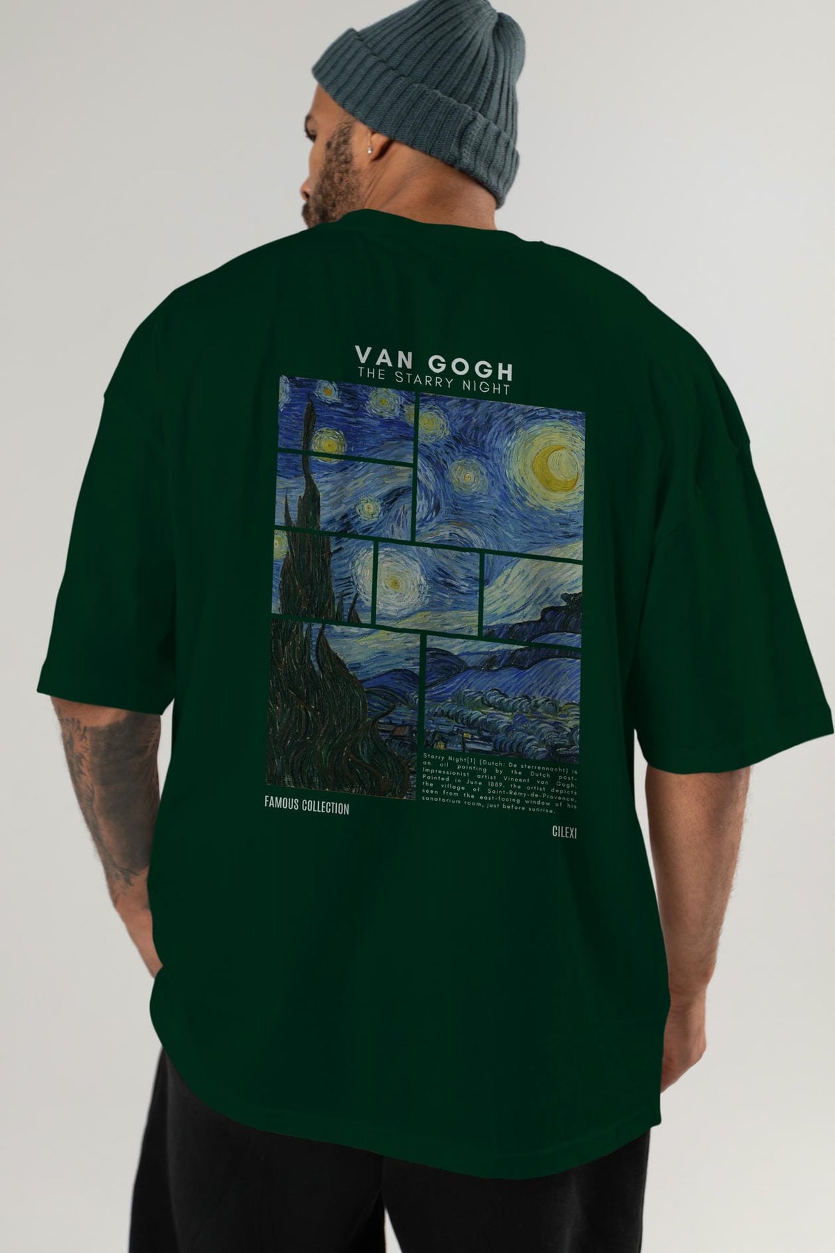Van Gogh The Starry Night Arka Baskılı Oversize t-shirt Erkek Kadın Bisiklet Yaka Pamuk tişort