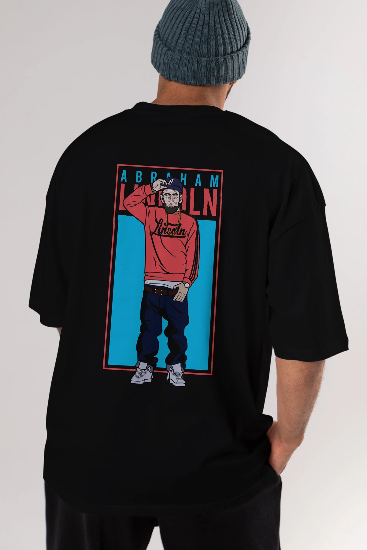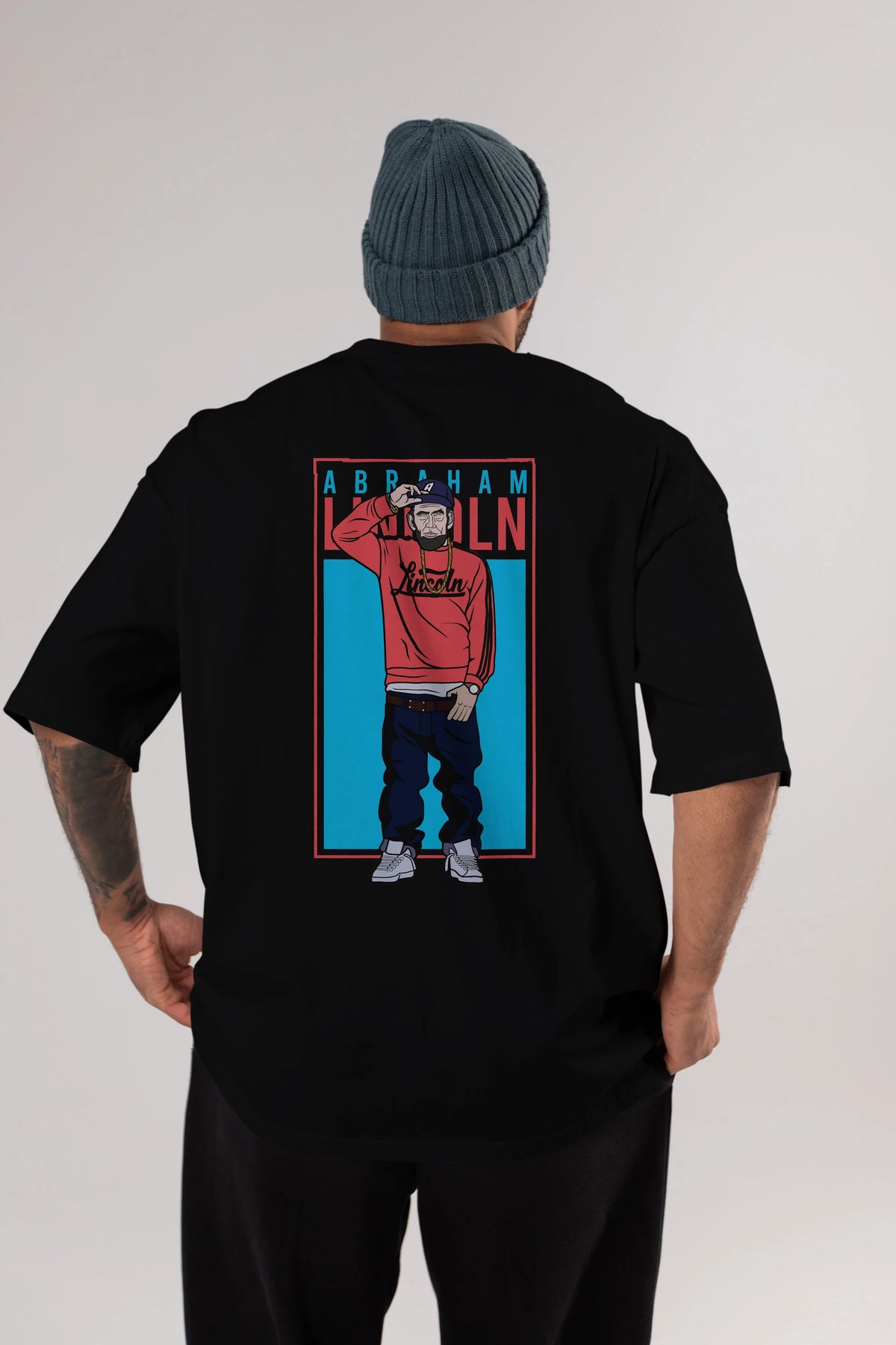 Abraham Lincoln Arka Baskılı Oversize t-shirt Erkek Kadın Unisex %100 Pamuk tişort