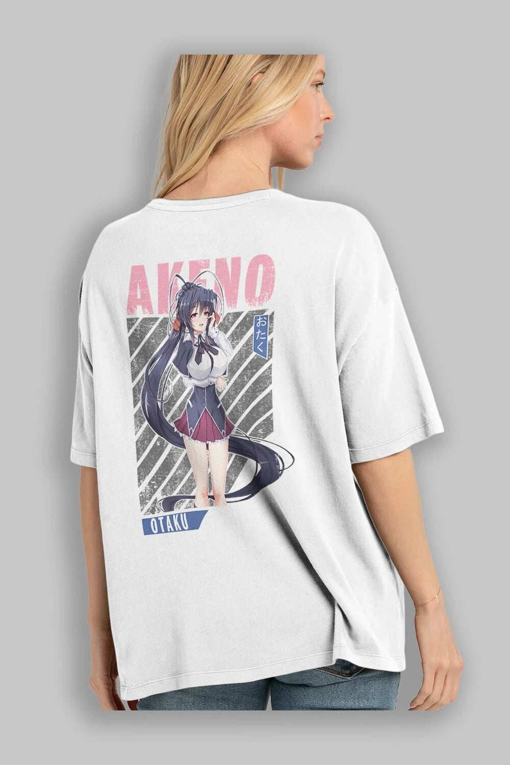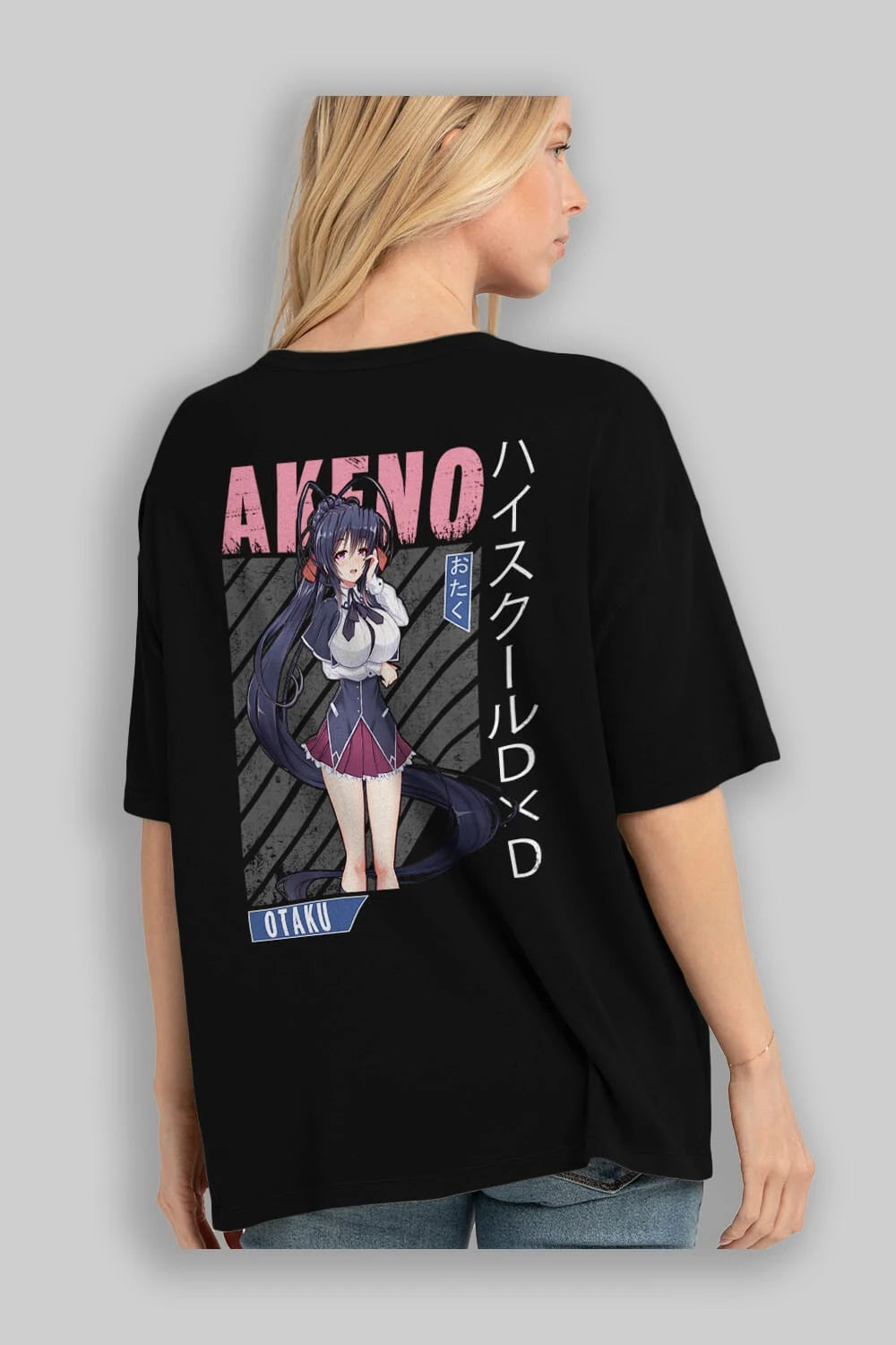 Akeno Himejima 4 Anime Arka Baskılı Oversize t-shirt Erkek Kadın Unisex