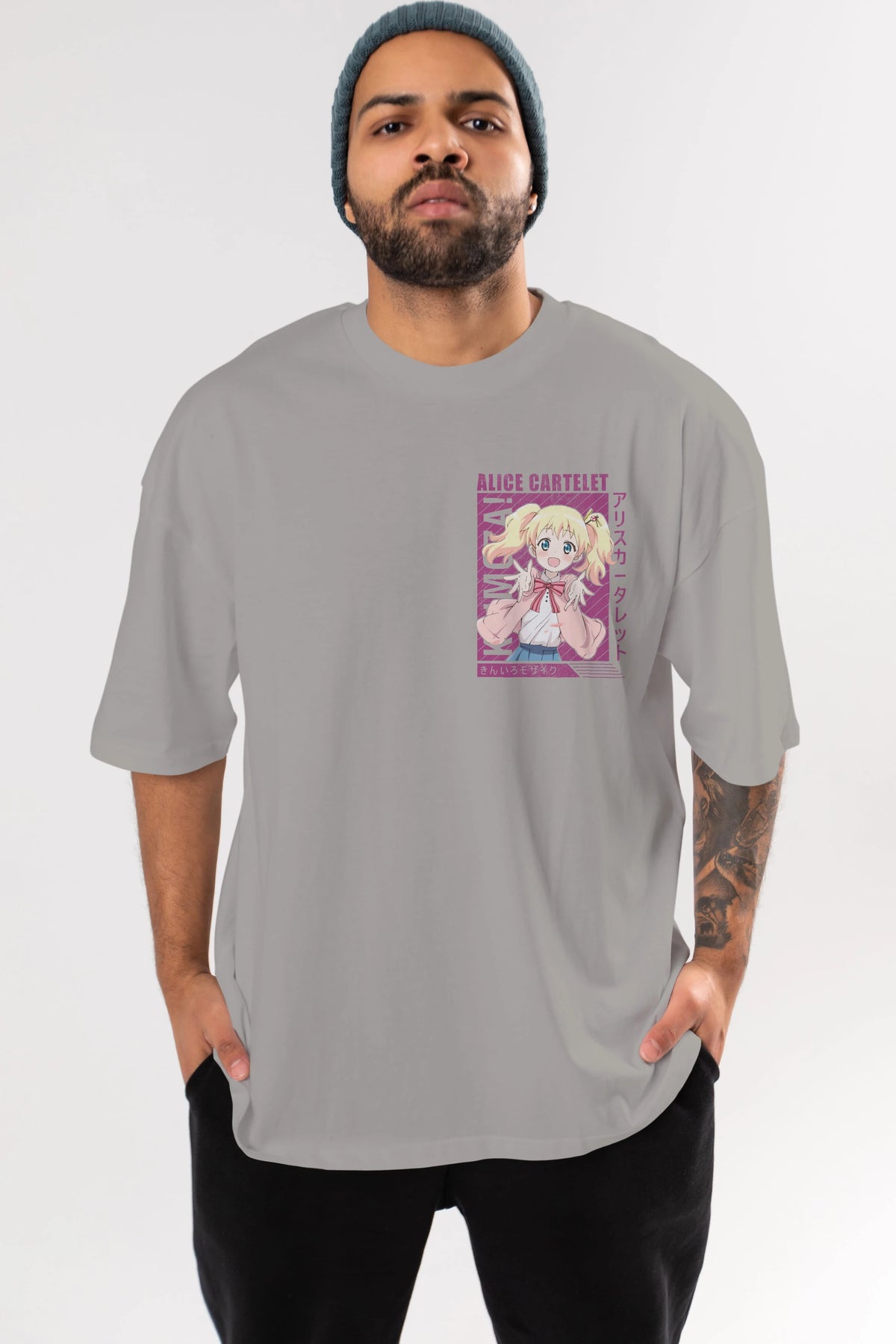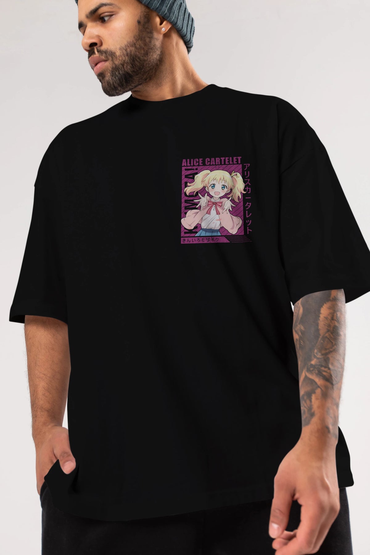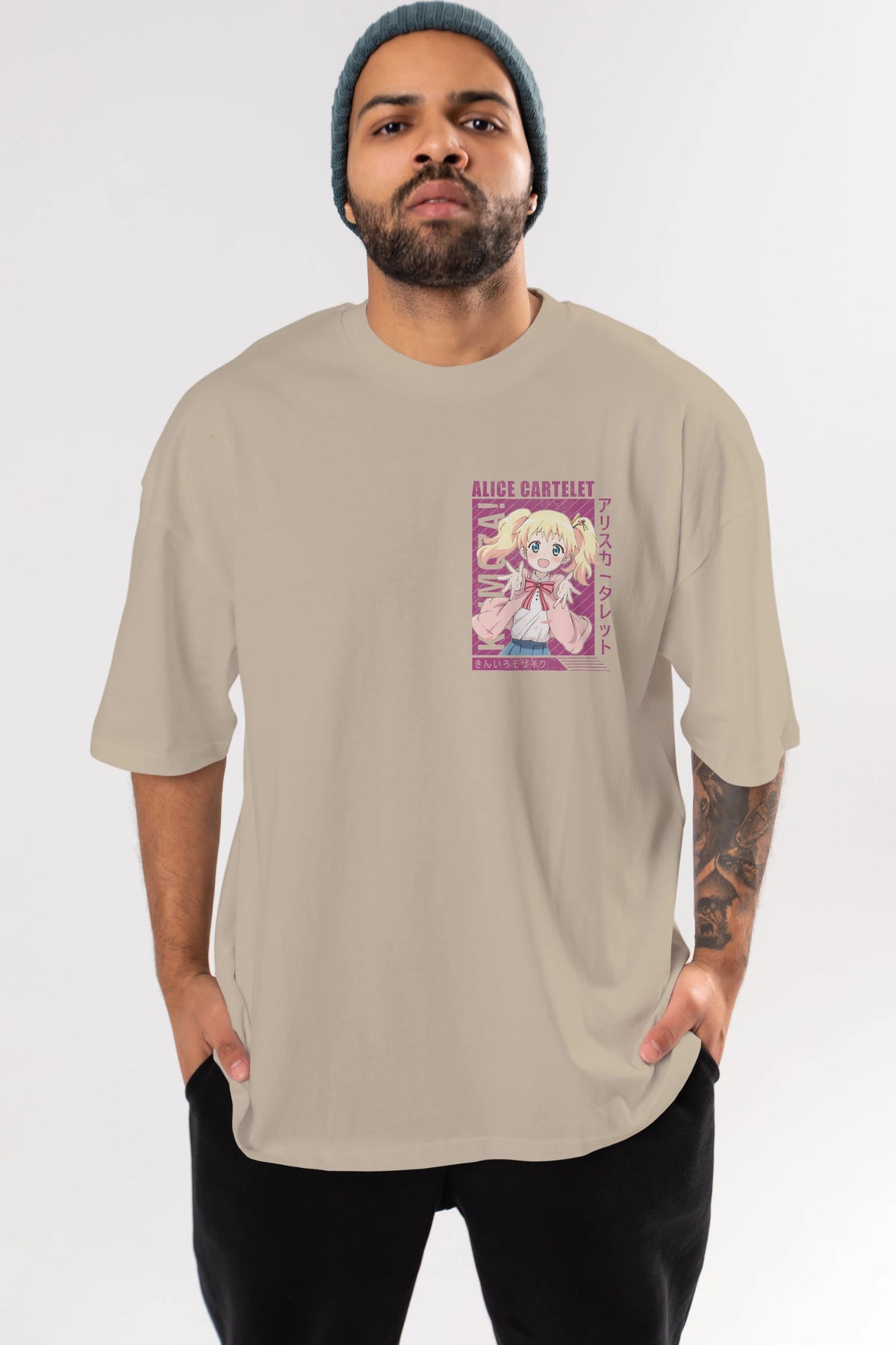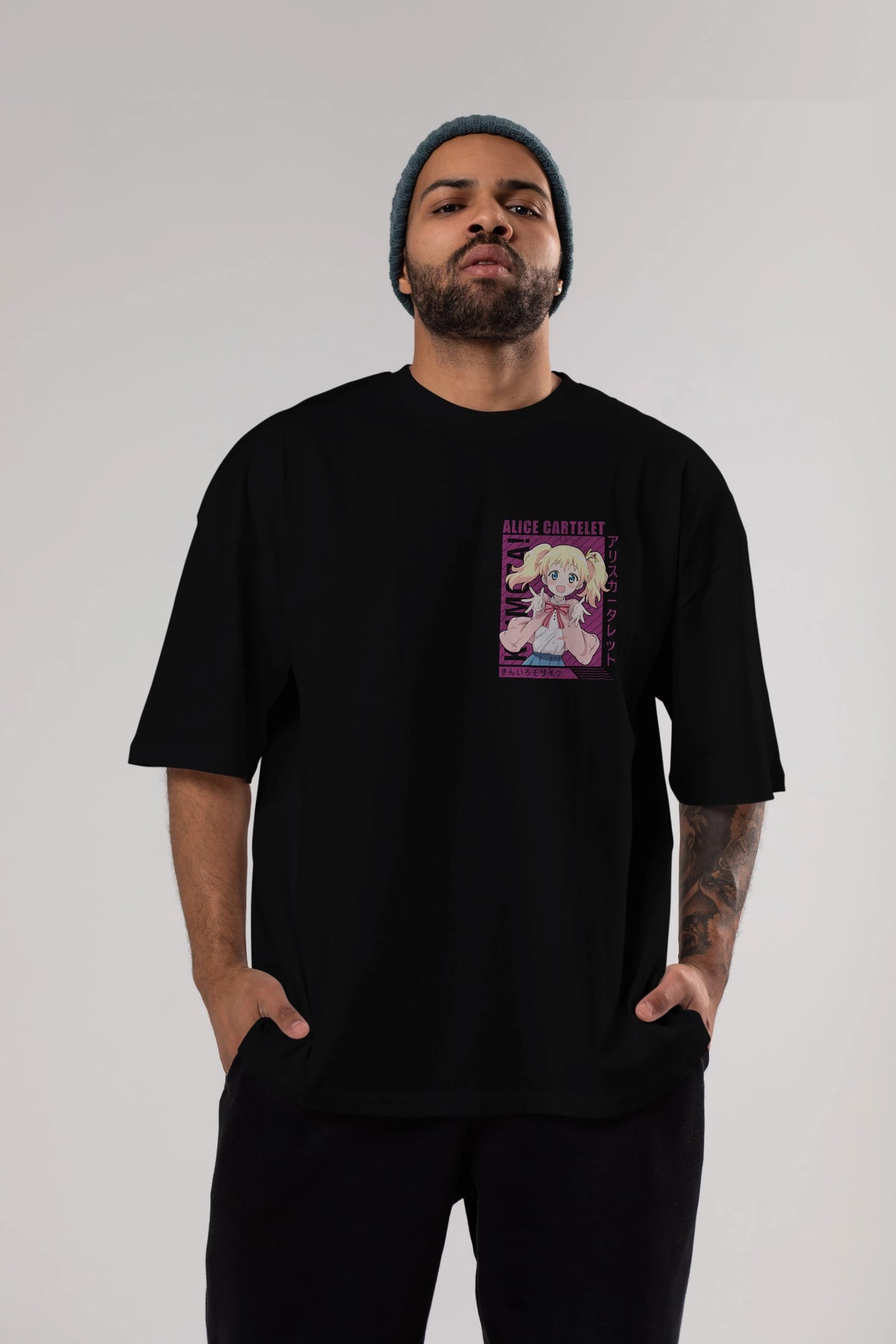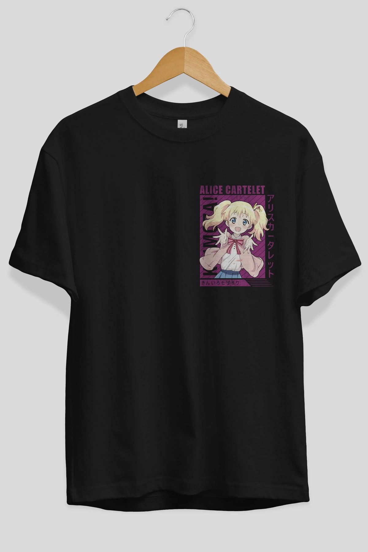 Alice Cartelet 12 Ön Sol Baskılı Oversize t-shirt Erkek Kadın Unisex %100 Pamuk Bisiklet Yaka tişort