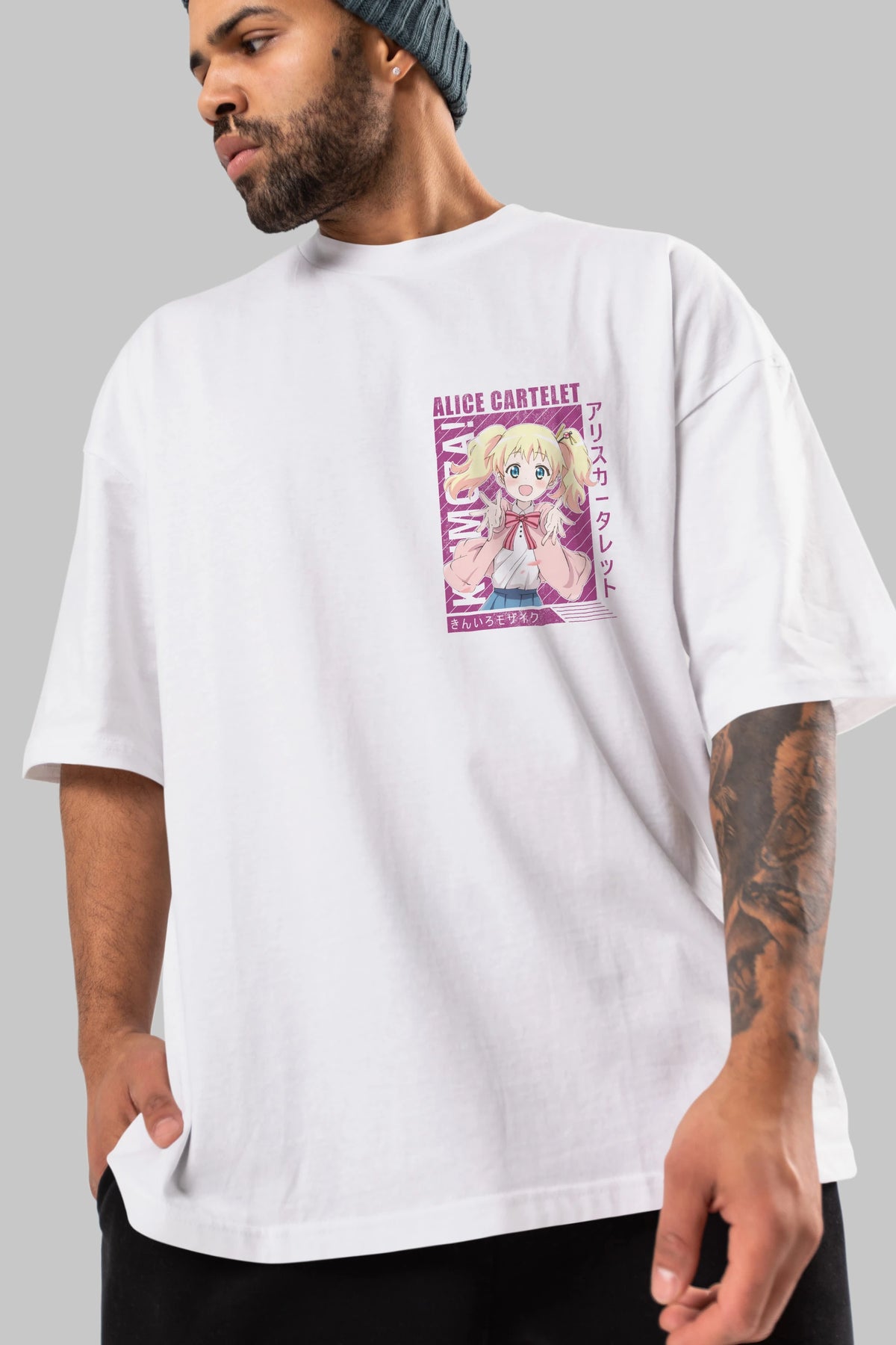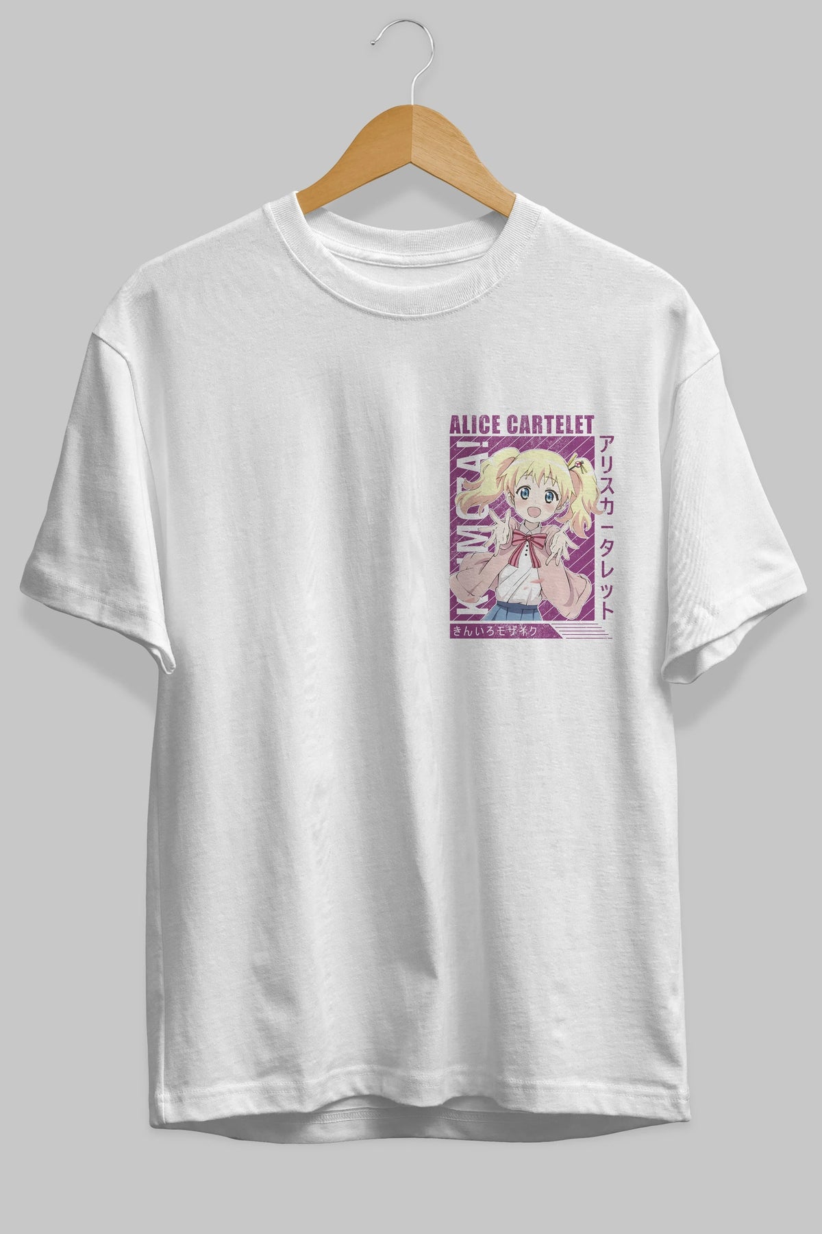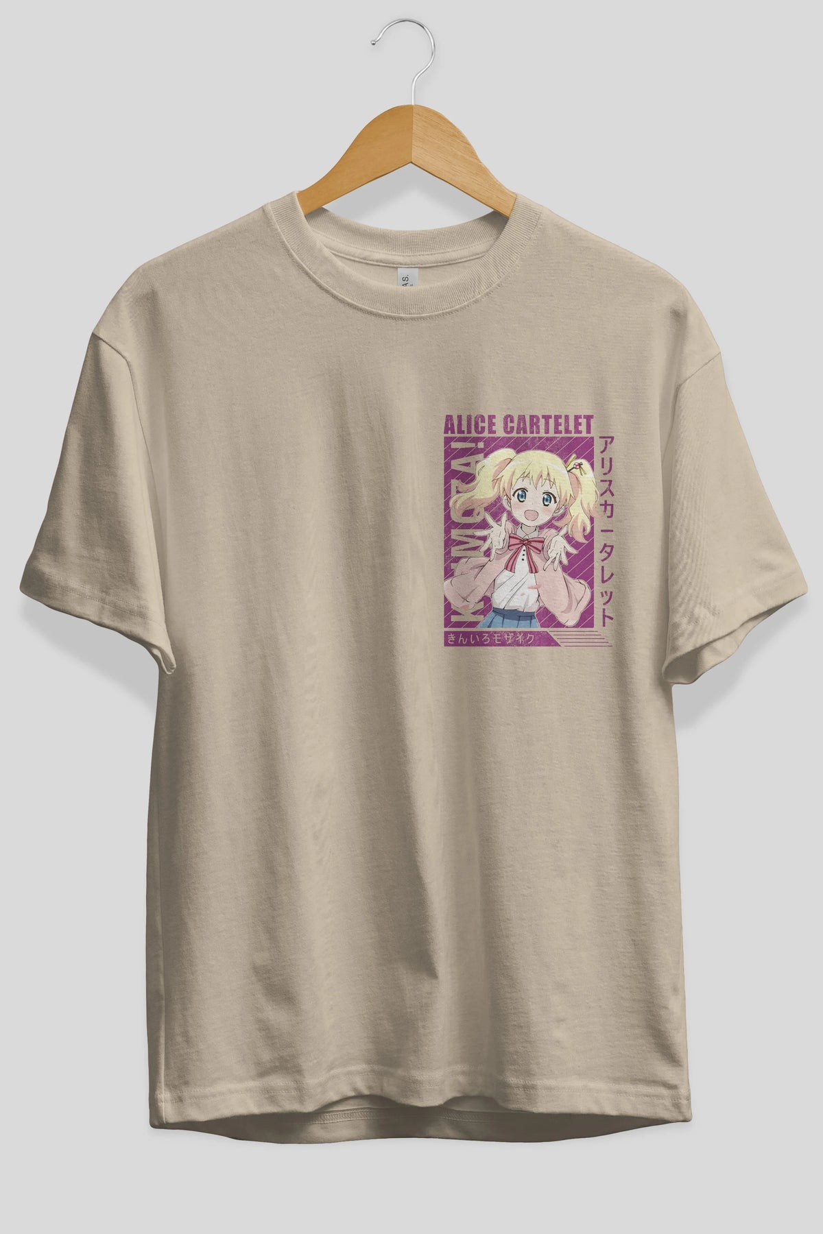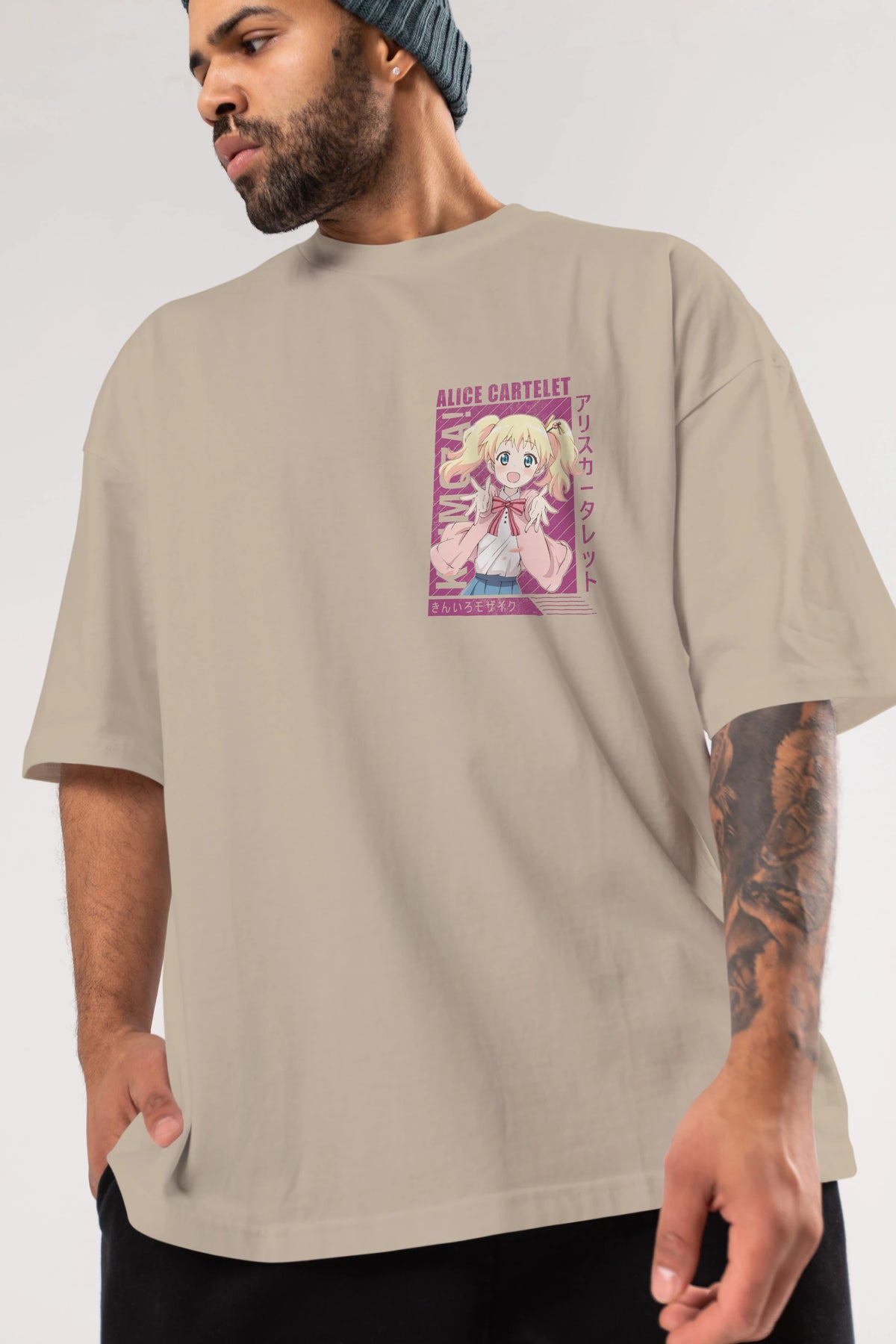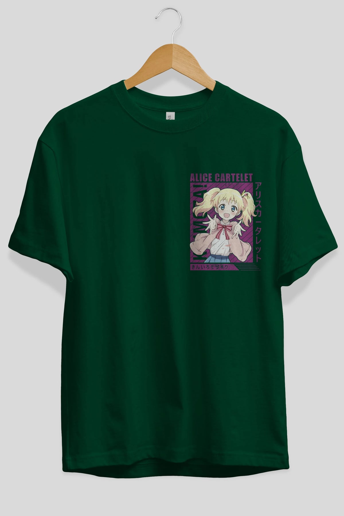 Alice Cartelet 12 Ön Sol Baskılı Oversize t-shirt Erkek Kadın Unisex %100 Pamuk Bisiklet Yaka tişort