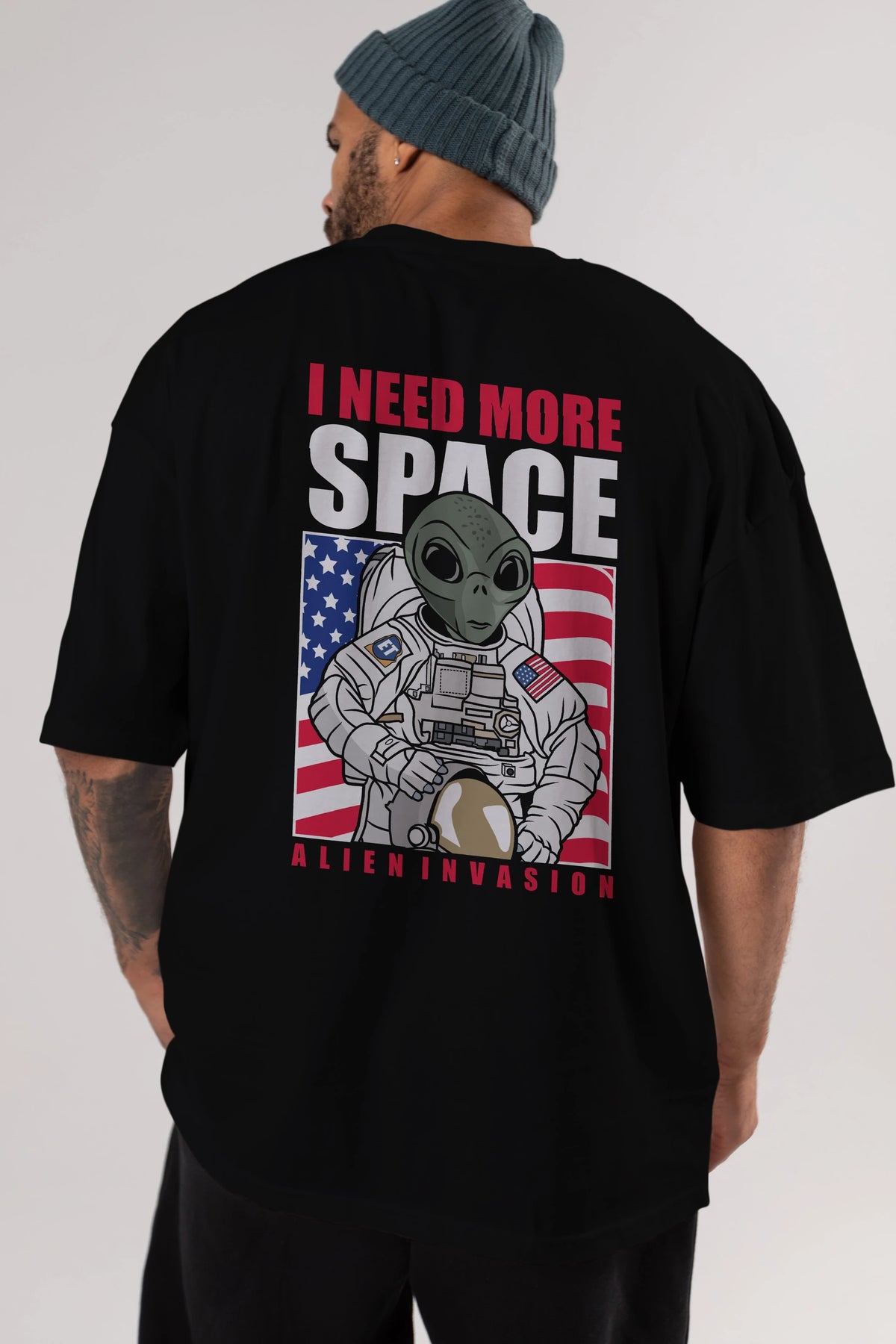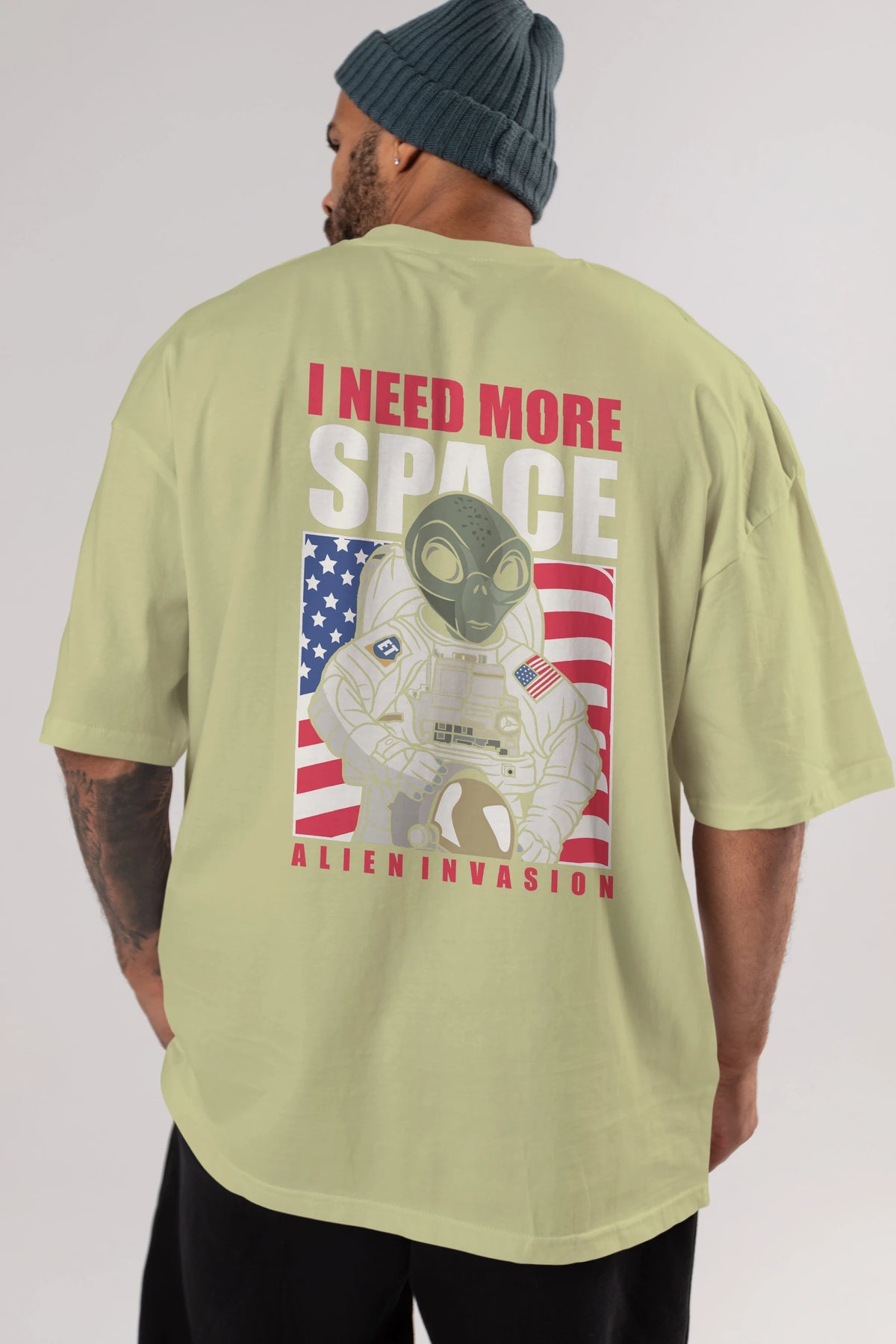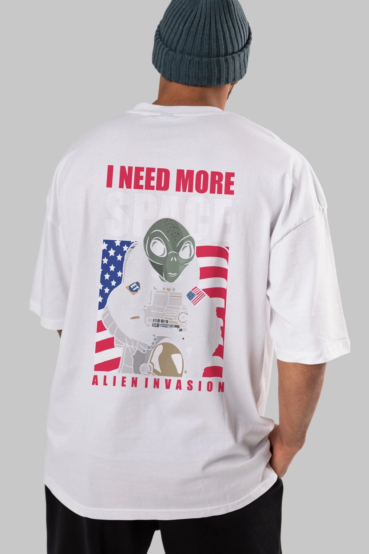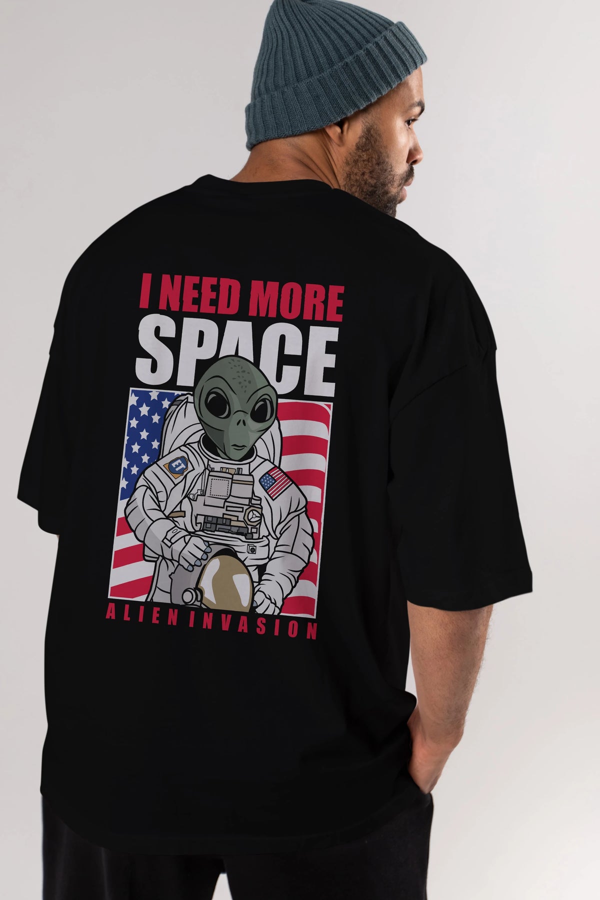 Alien Astronaut Arka Baskılı Oversize t-shirt Erkek Kadın Unisex %100 Pamuk tişort