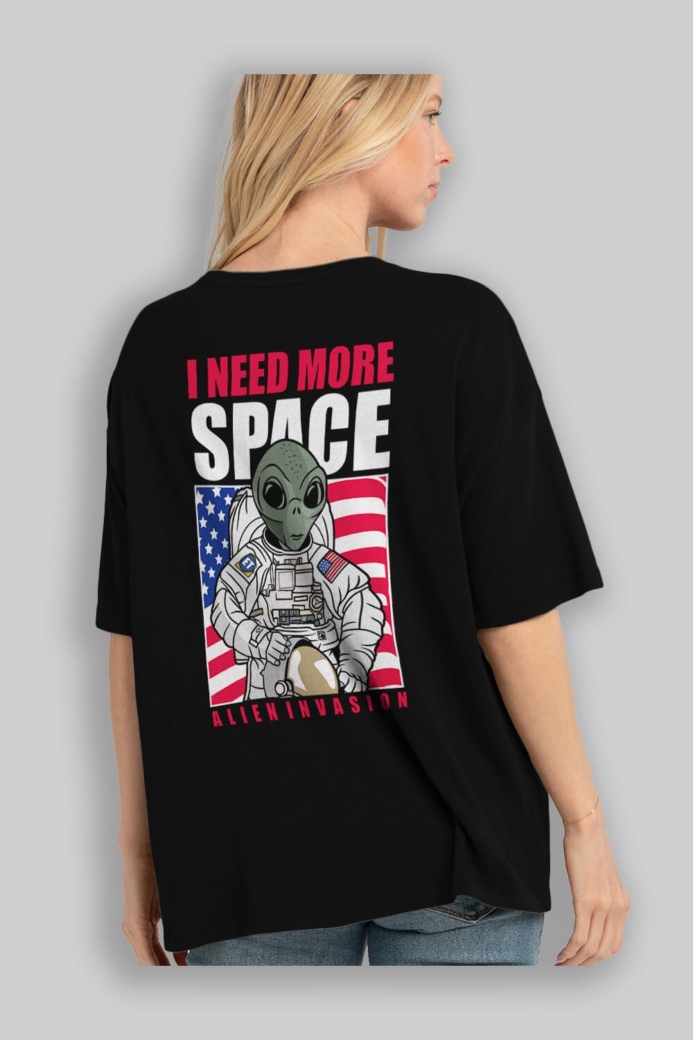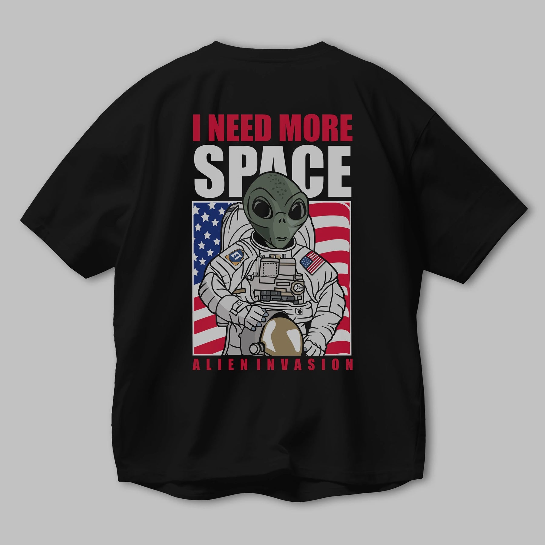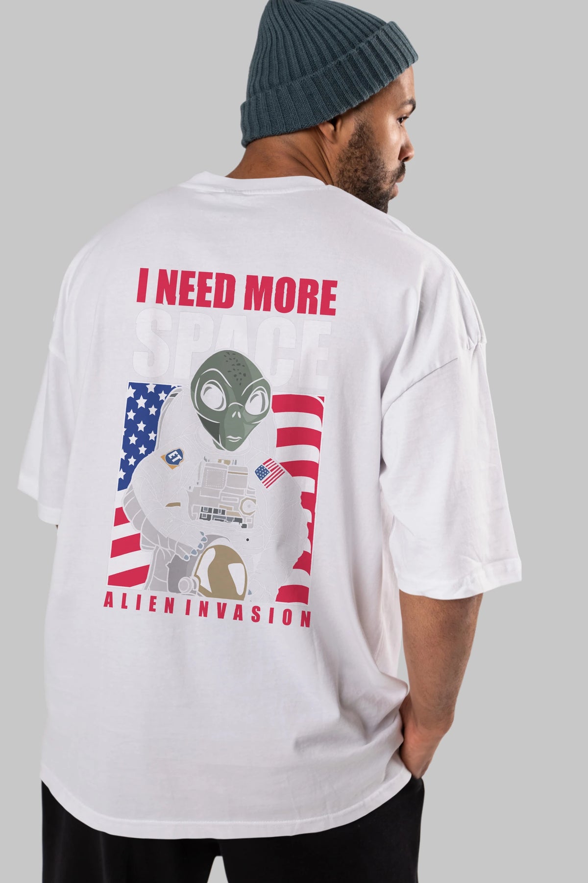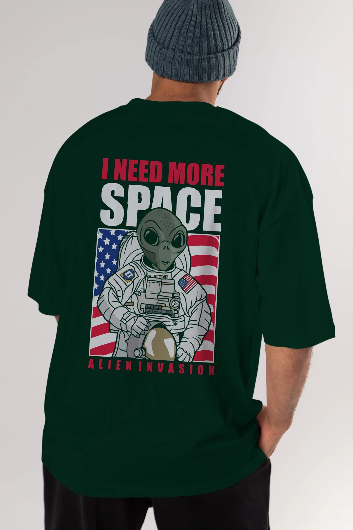 Alien Astronaut Arka Baskılı Oversize t-shirt Erkek Kadın Unisex %100 Pamuk tişort