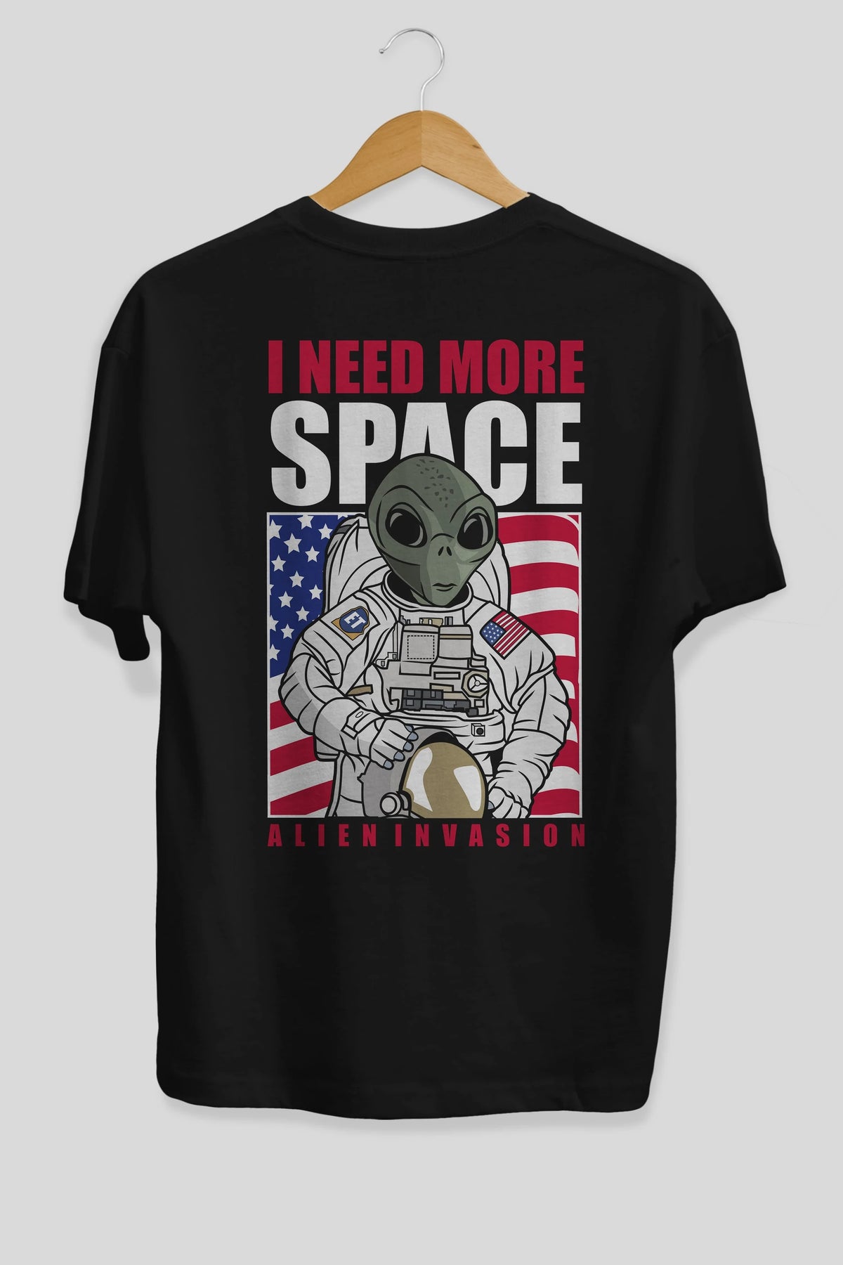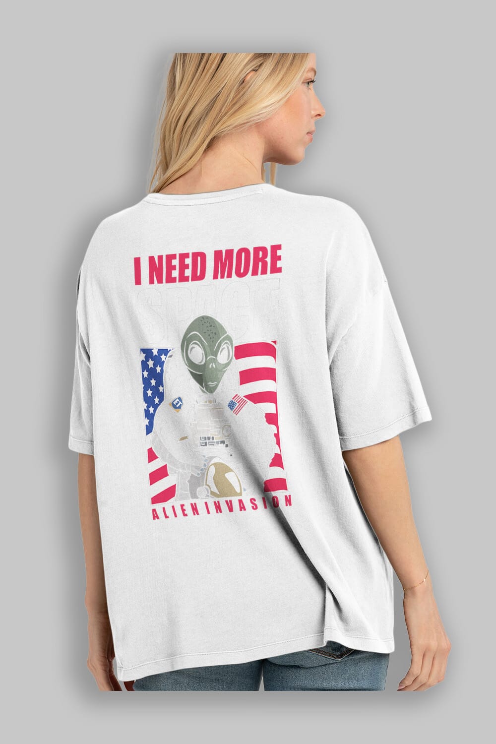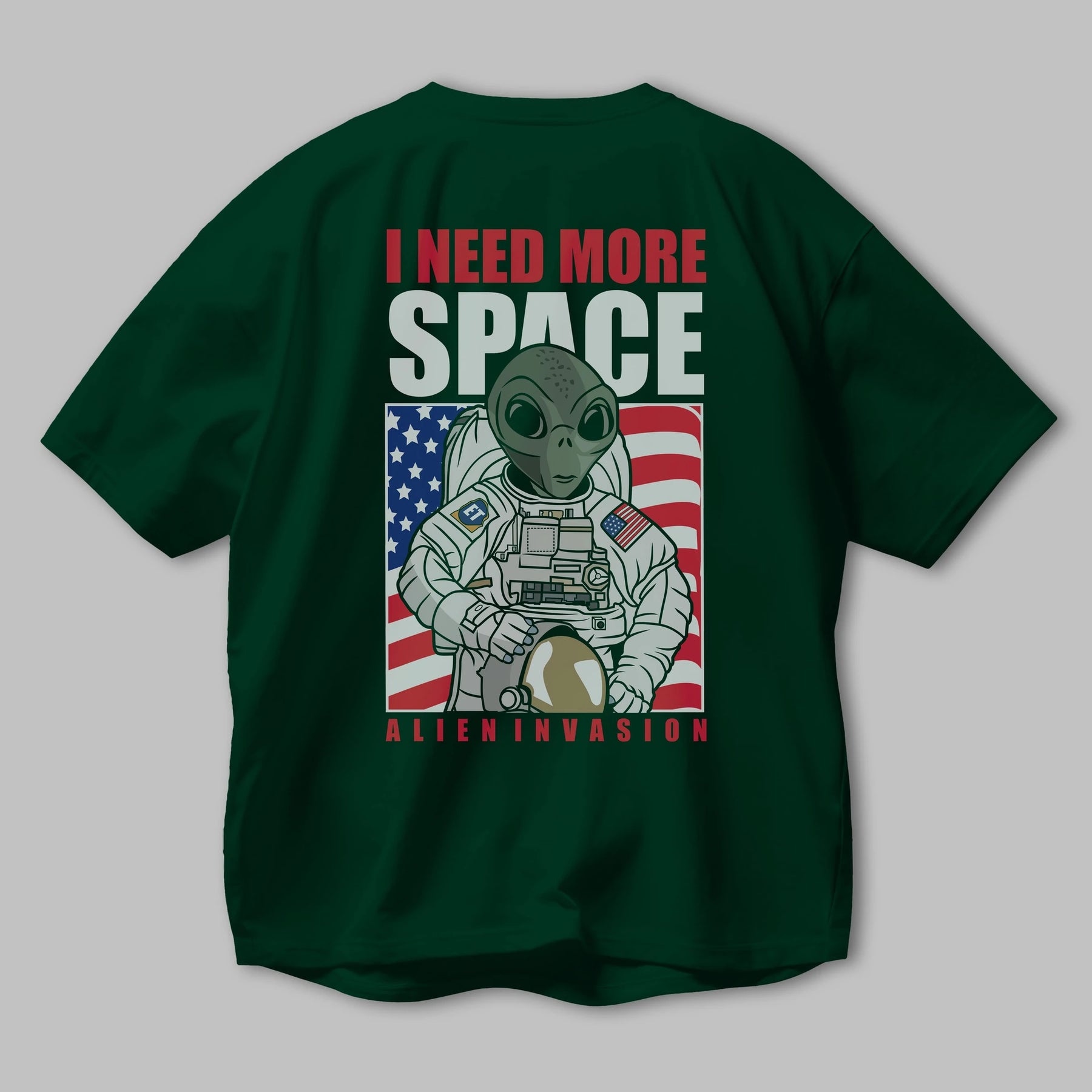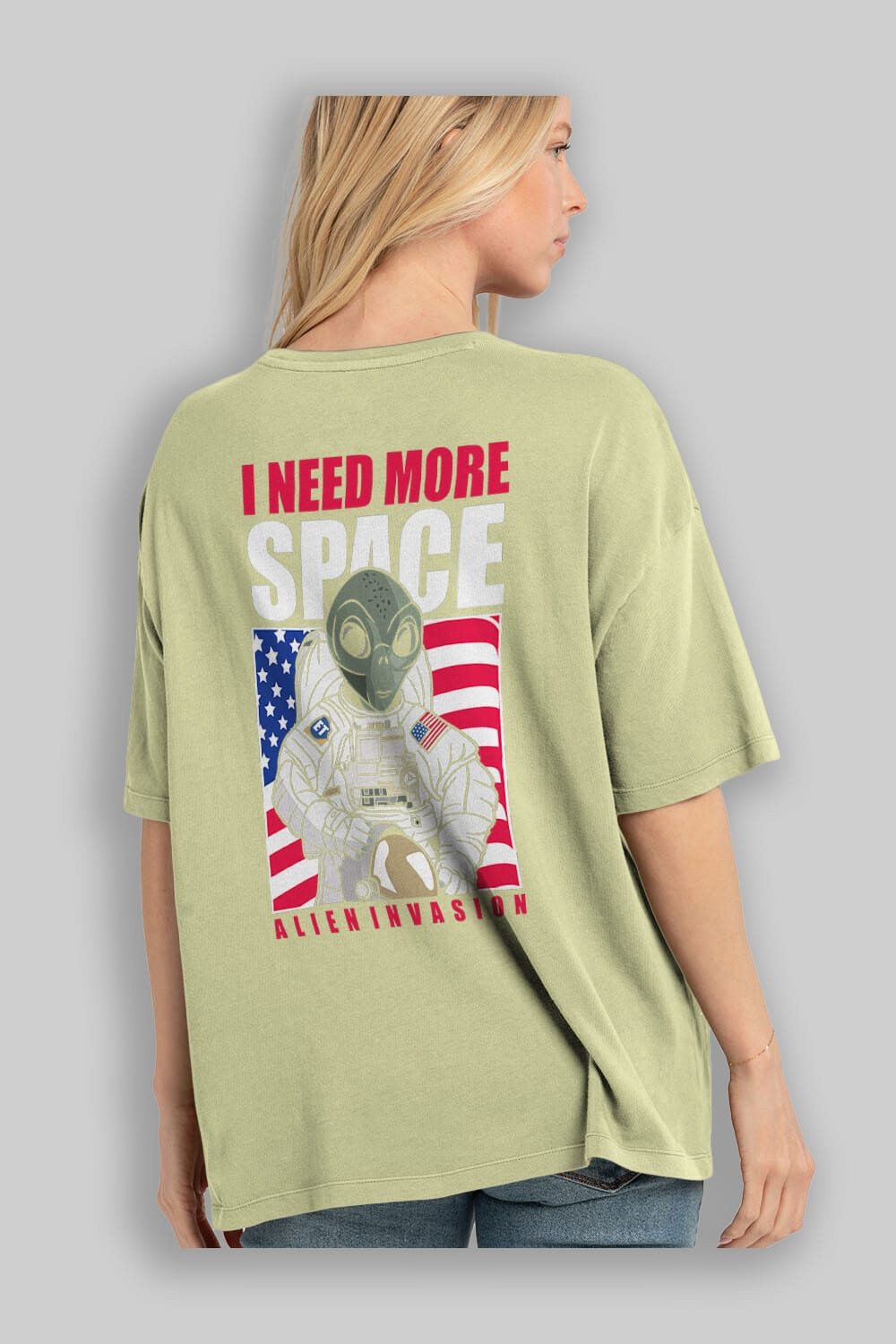 Alien Astronaut Arka Baskılı Oversize t-shirt Erkek Kadın Unisex %100 Pamuk tişort