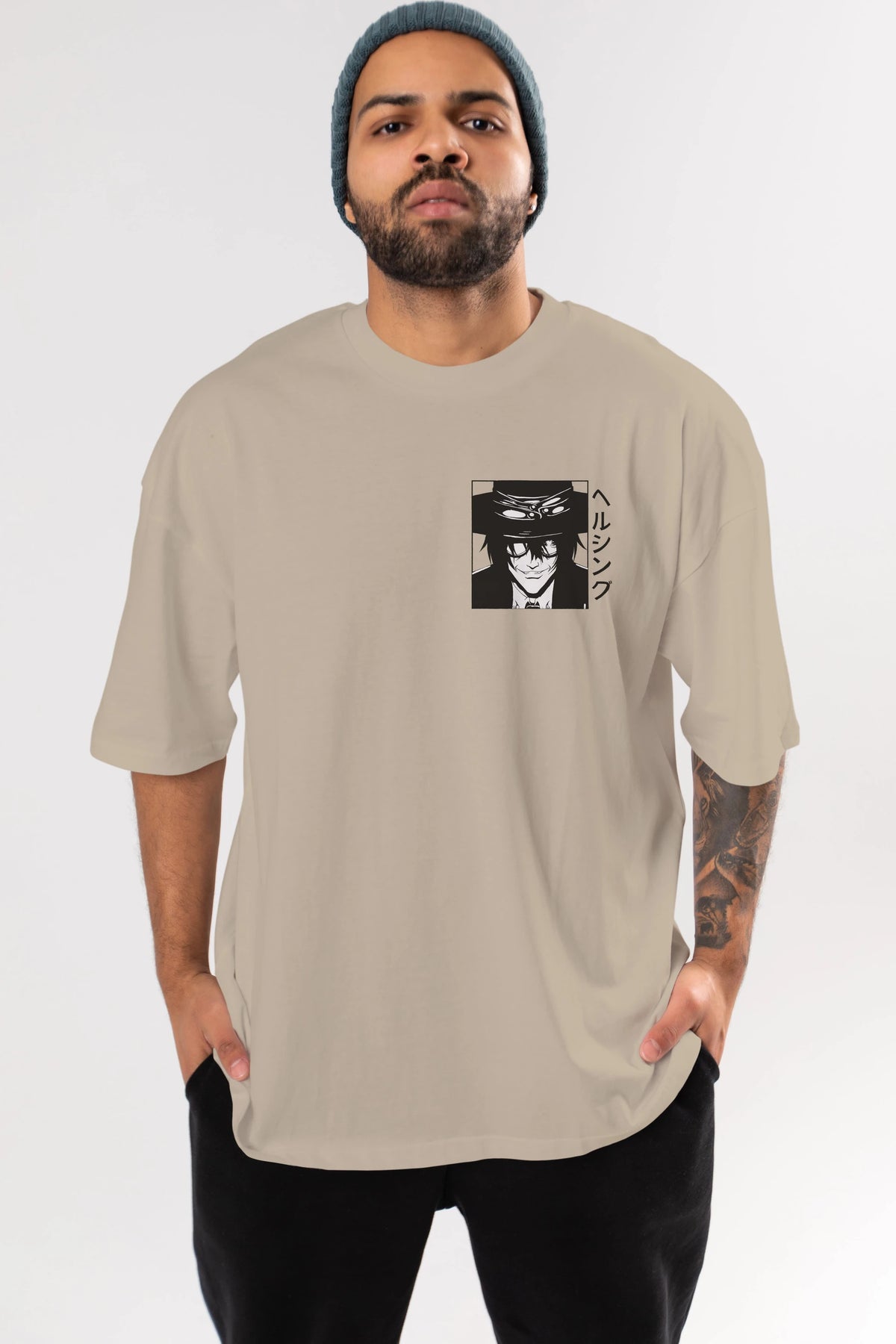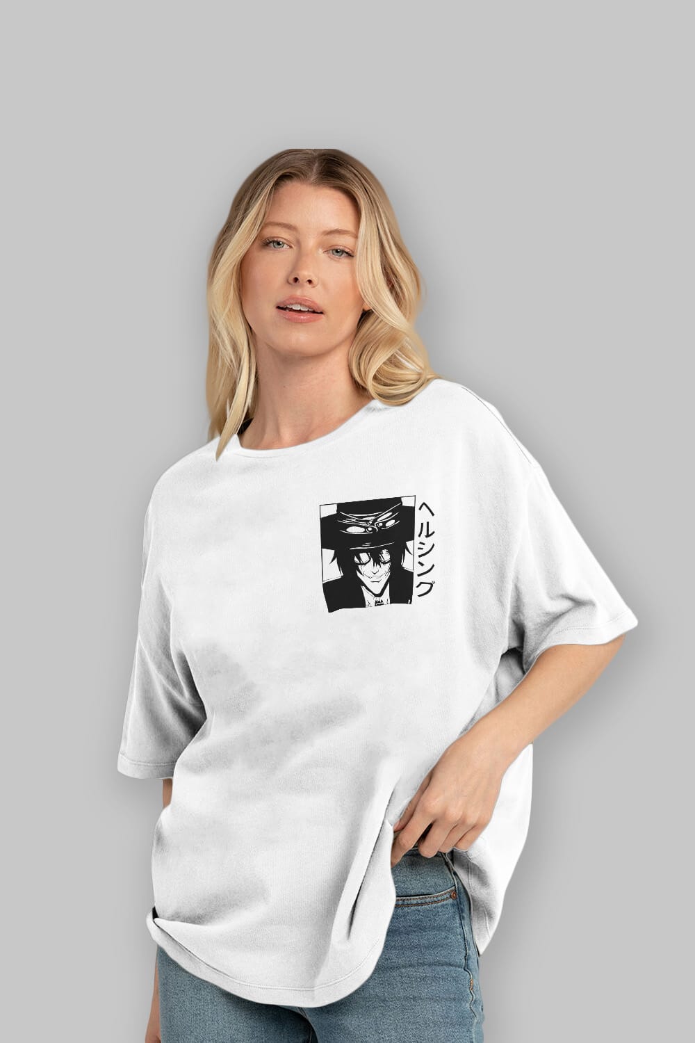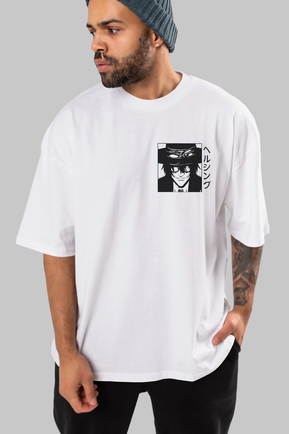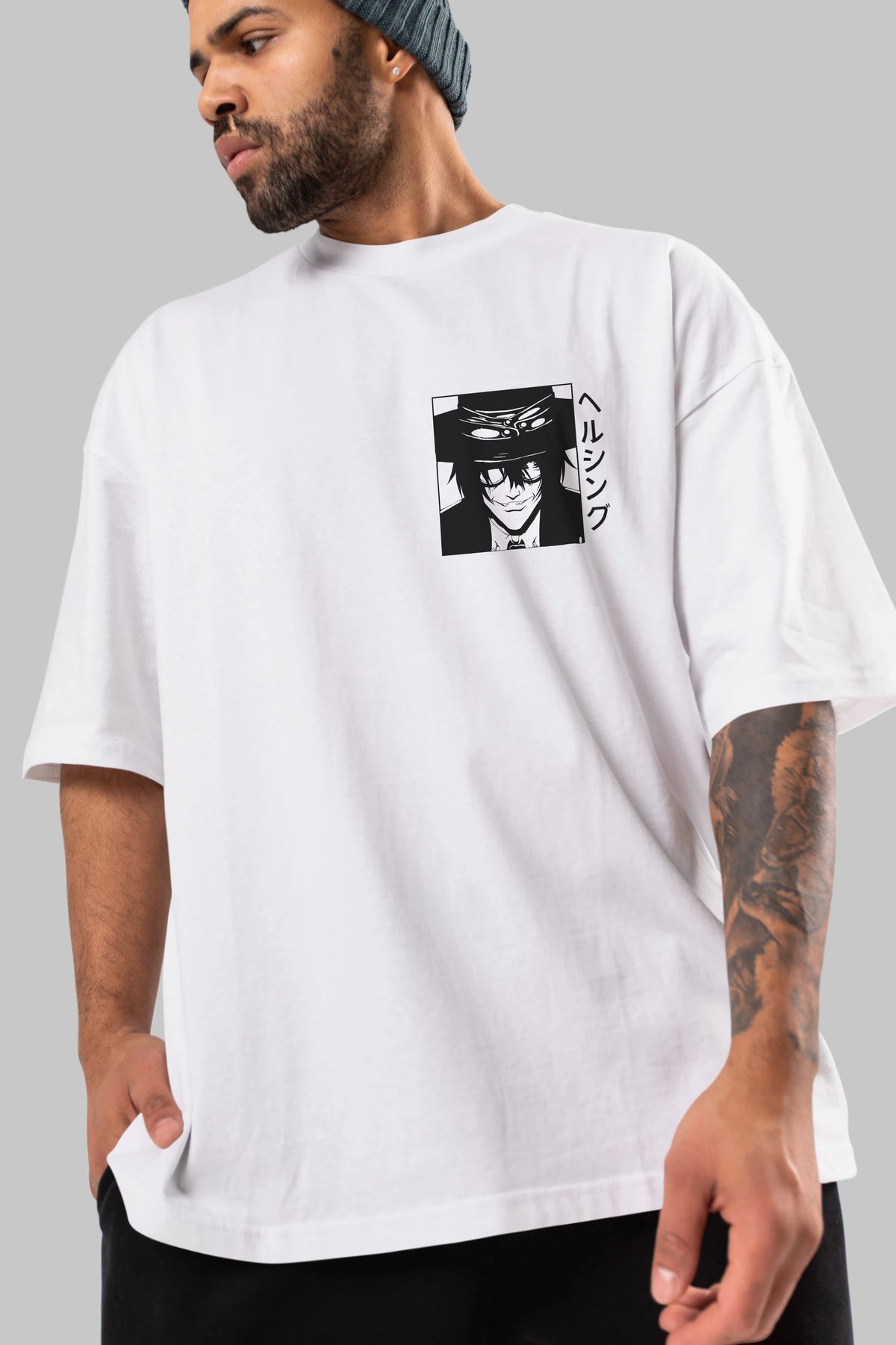 Alucard 1 Ön Sol Baskılı Oversize t-shirt Erkek Kadın Unisex %100 Pamuk Bisiklet Yaka tişort