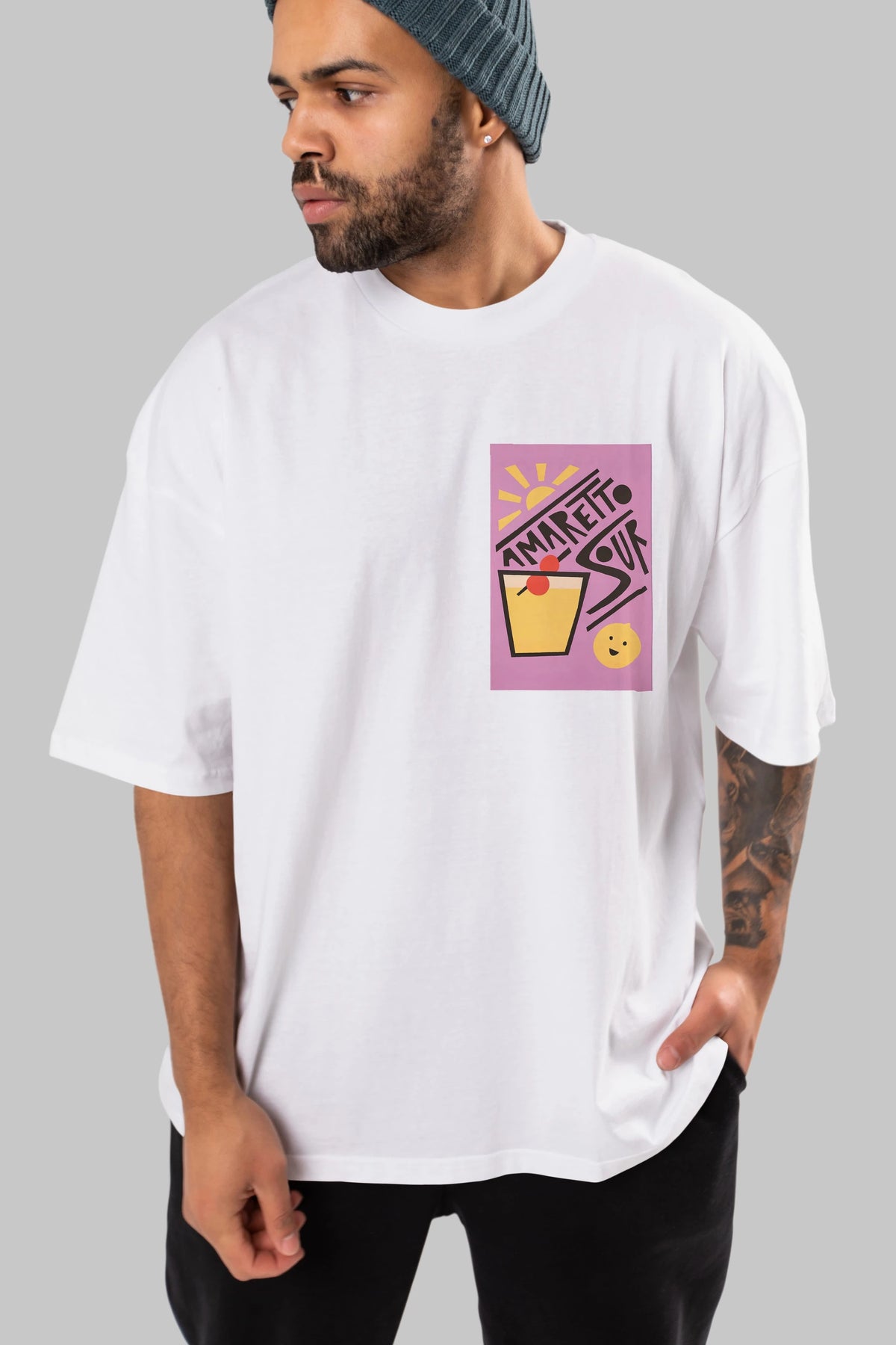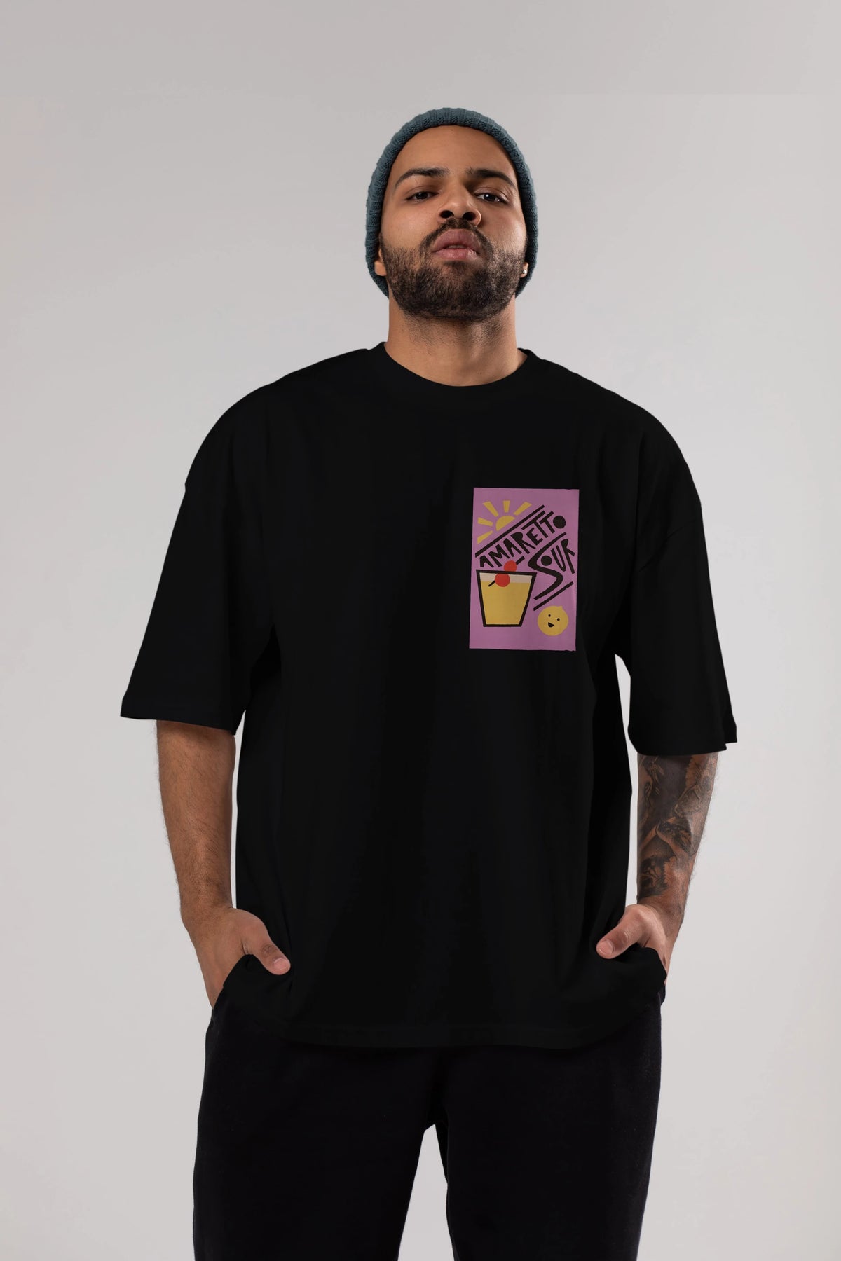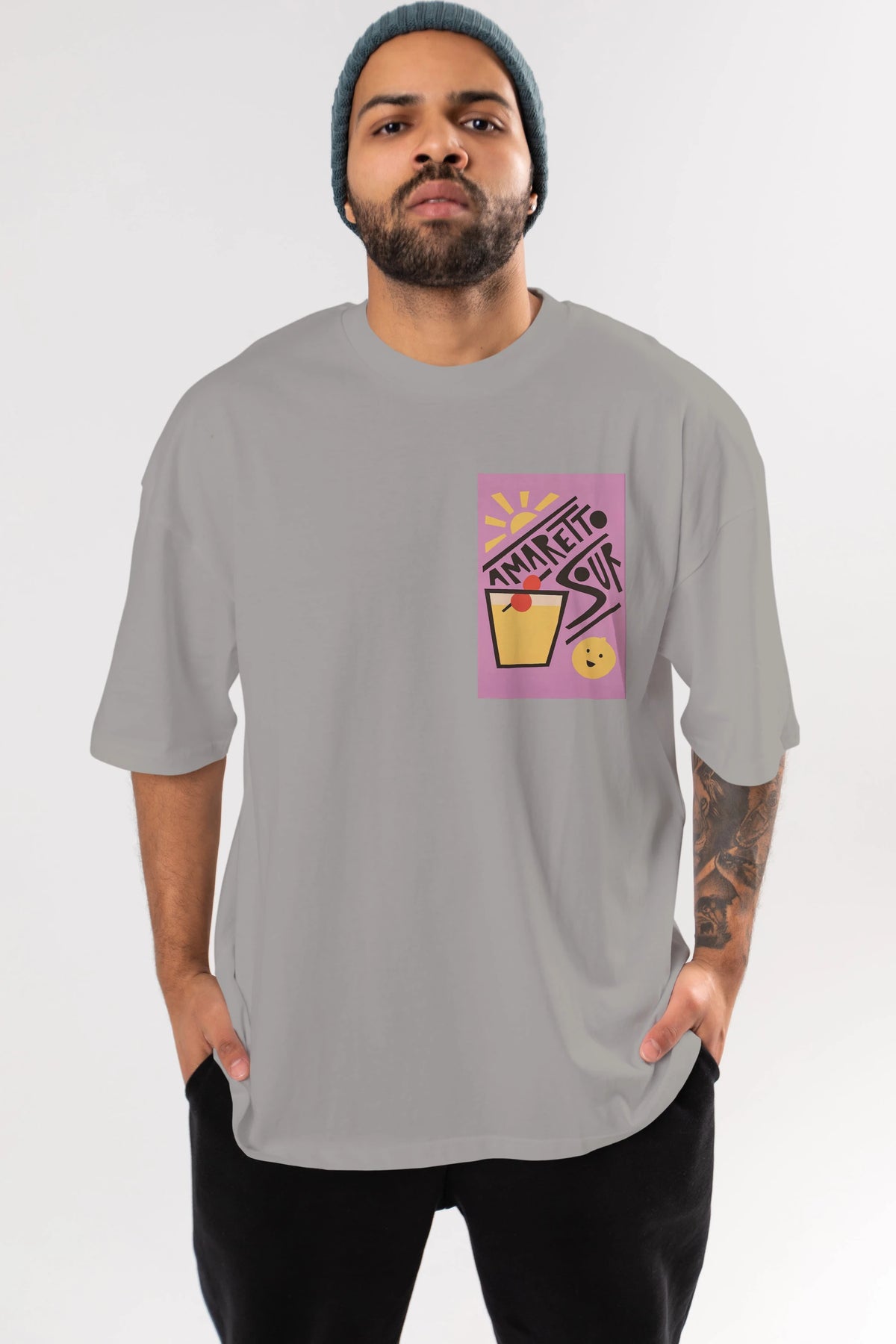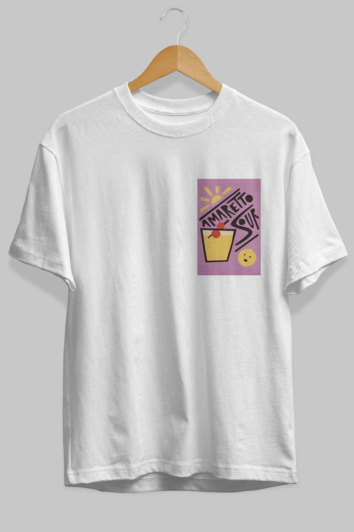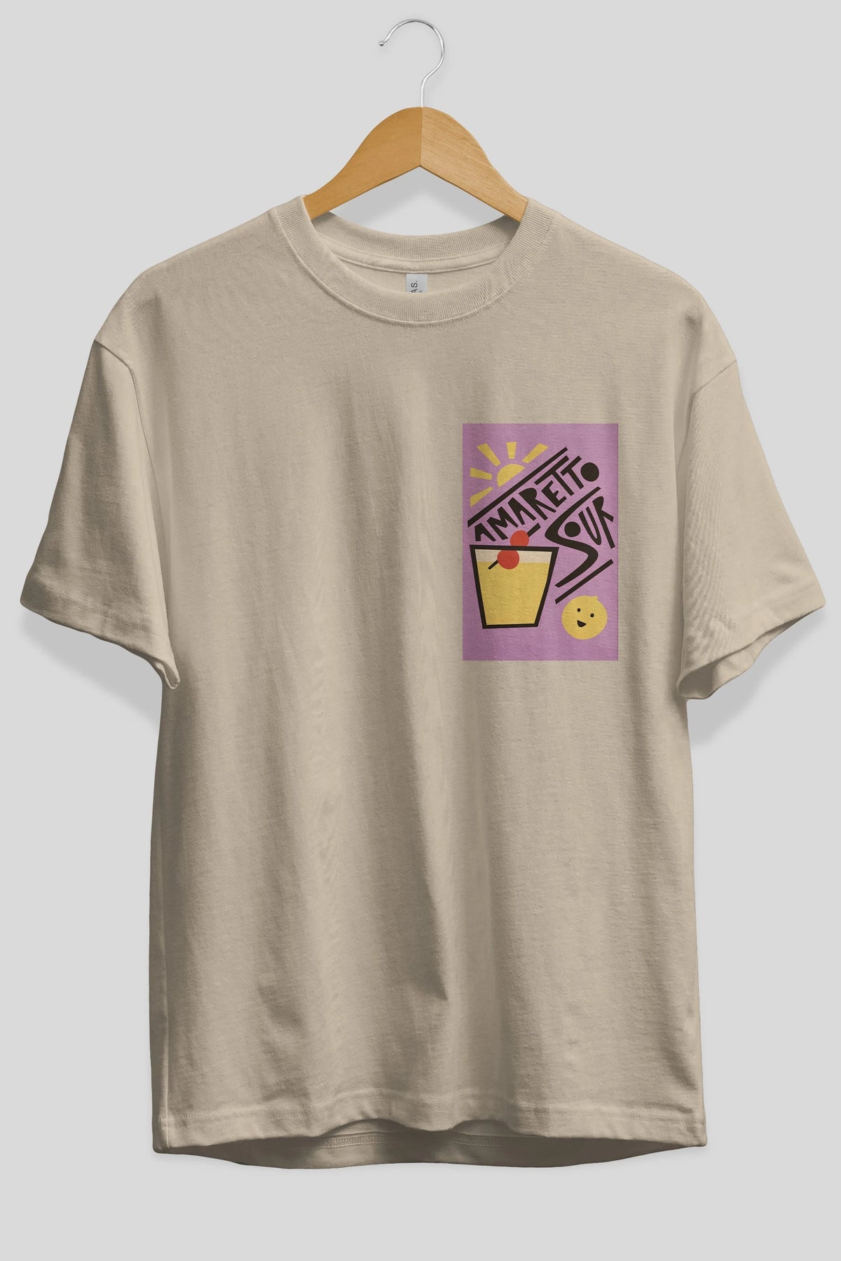 Amaretto Sour Ön Sol Baskılı Oversize t-shirt Erkek Kadın Unisex %100 Pamuk Bisiklet Yaka tişort