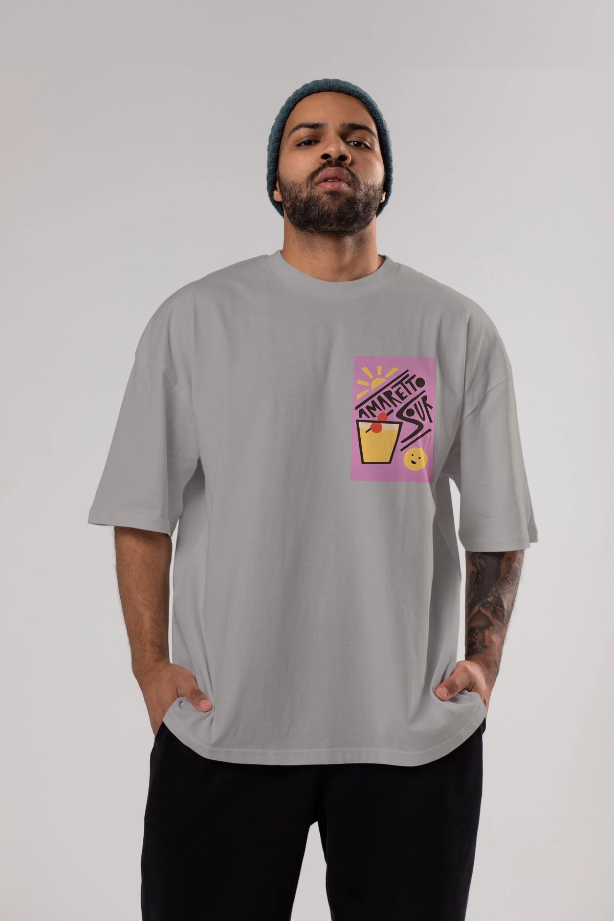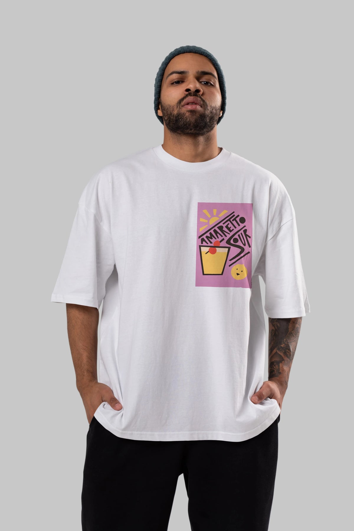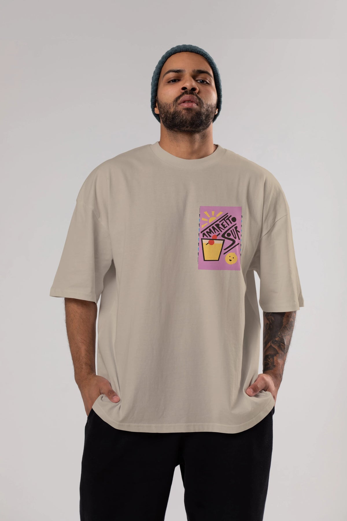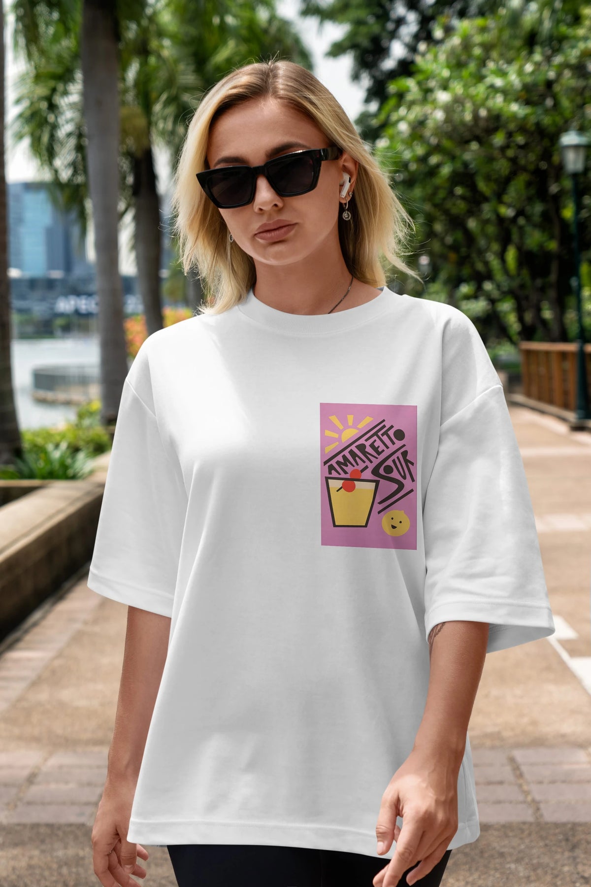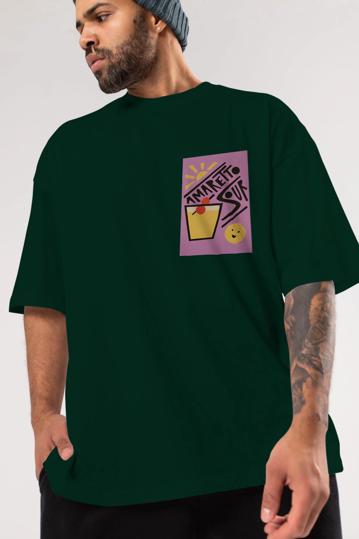 Amaretto Sour Ön Sol Baskılı Oversize t-shirt Erkek Kadın Unisex %100 Pamuk Bisiklet Yaka tişort