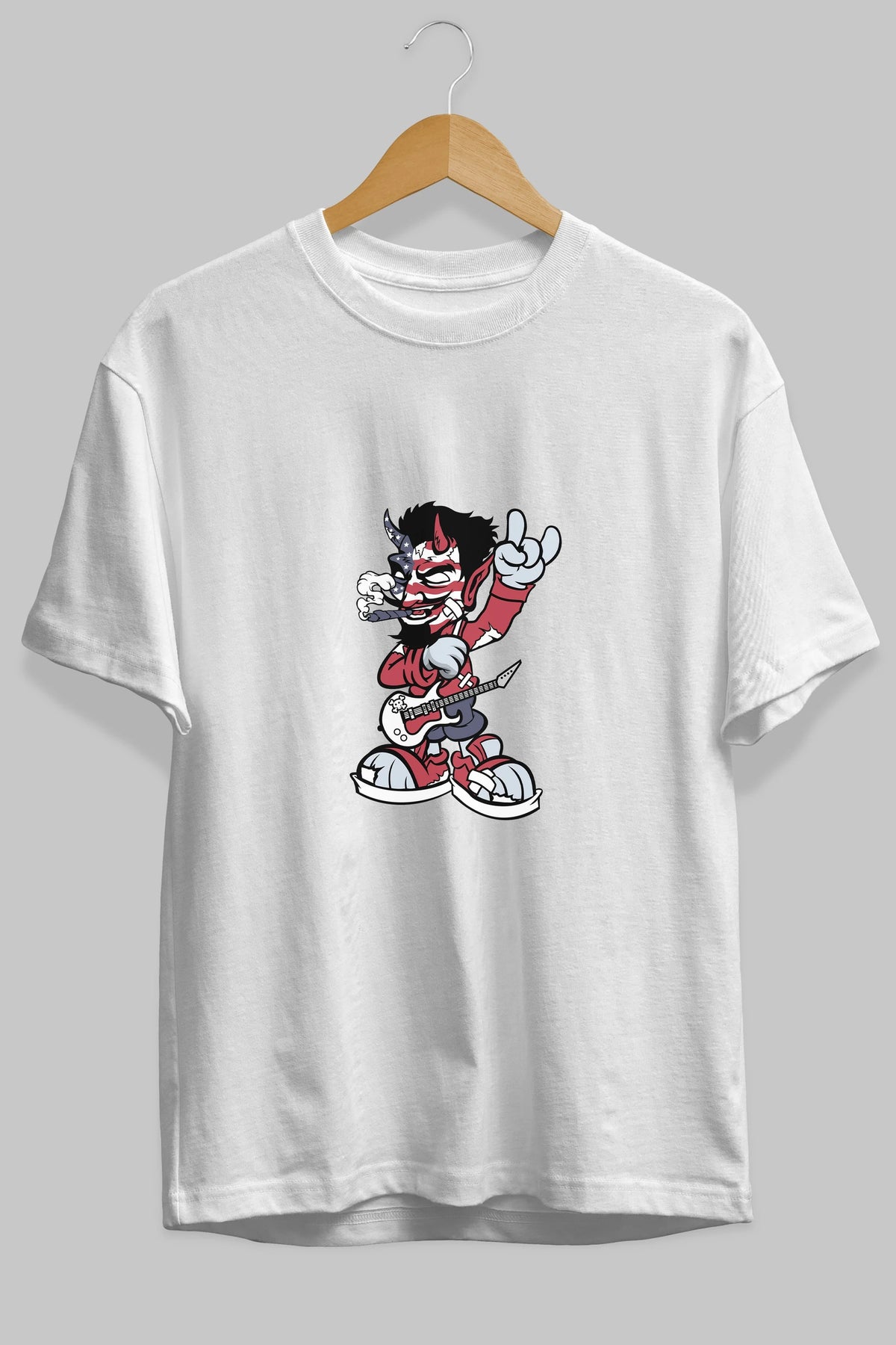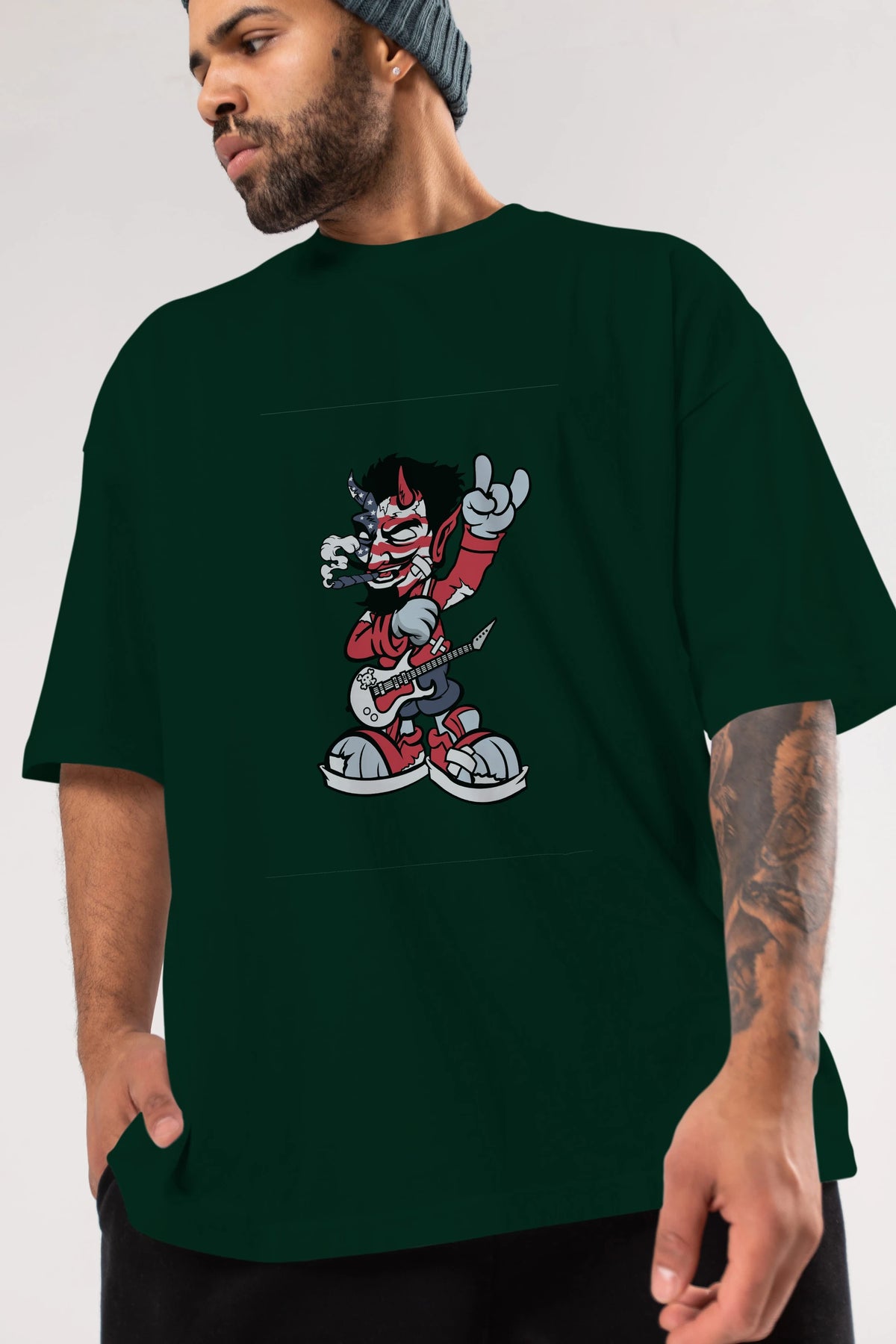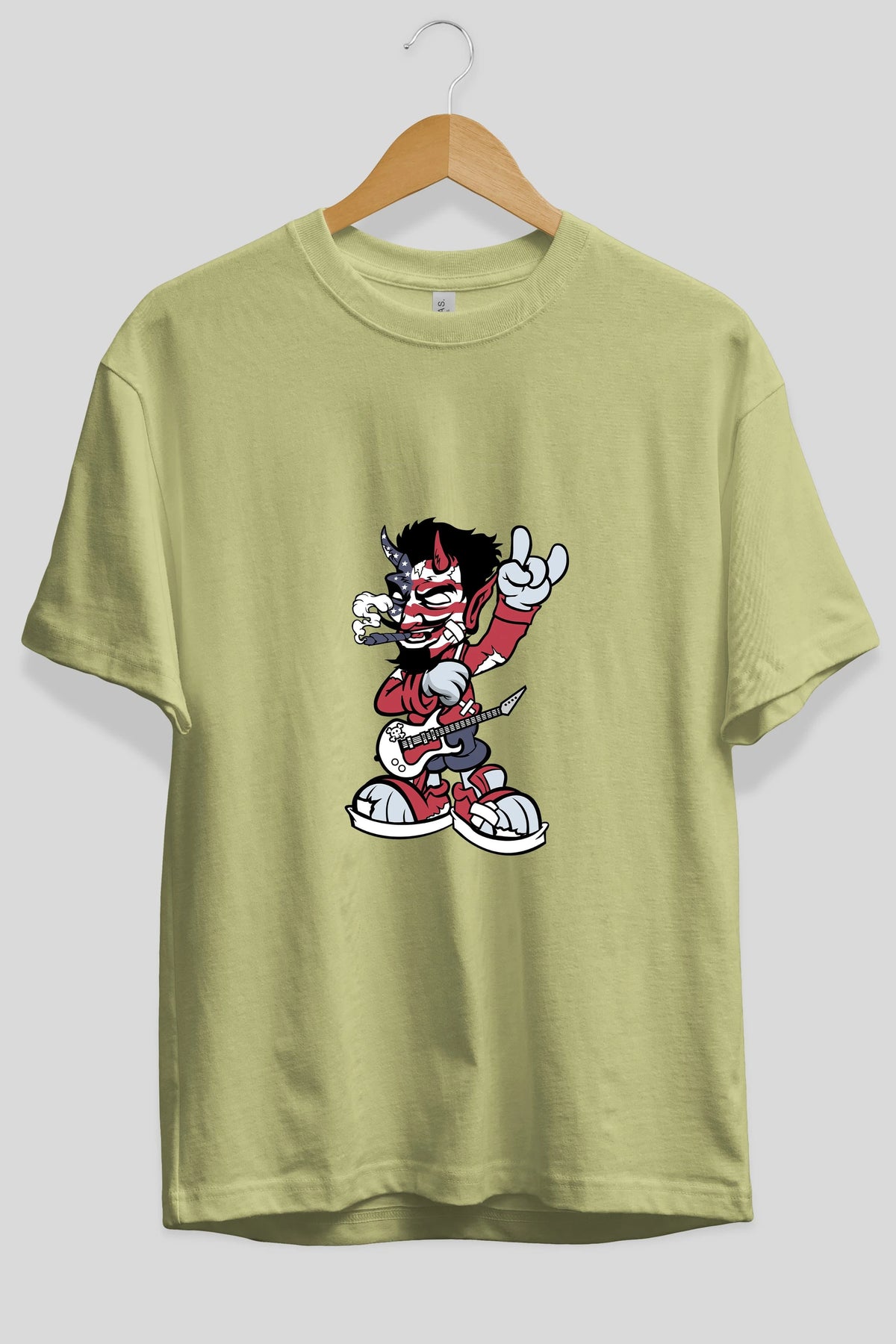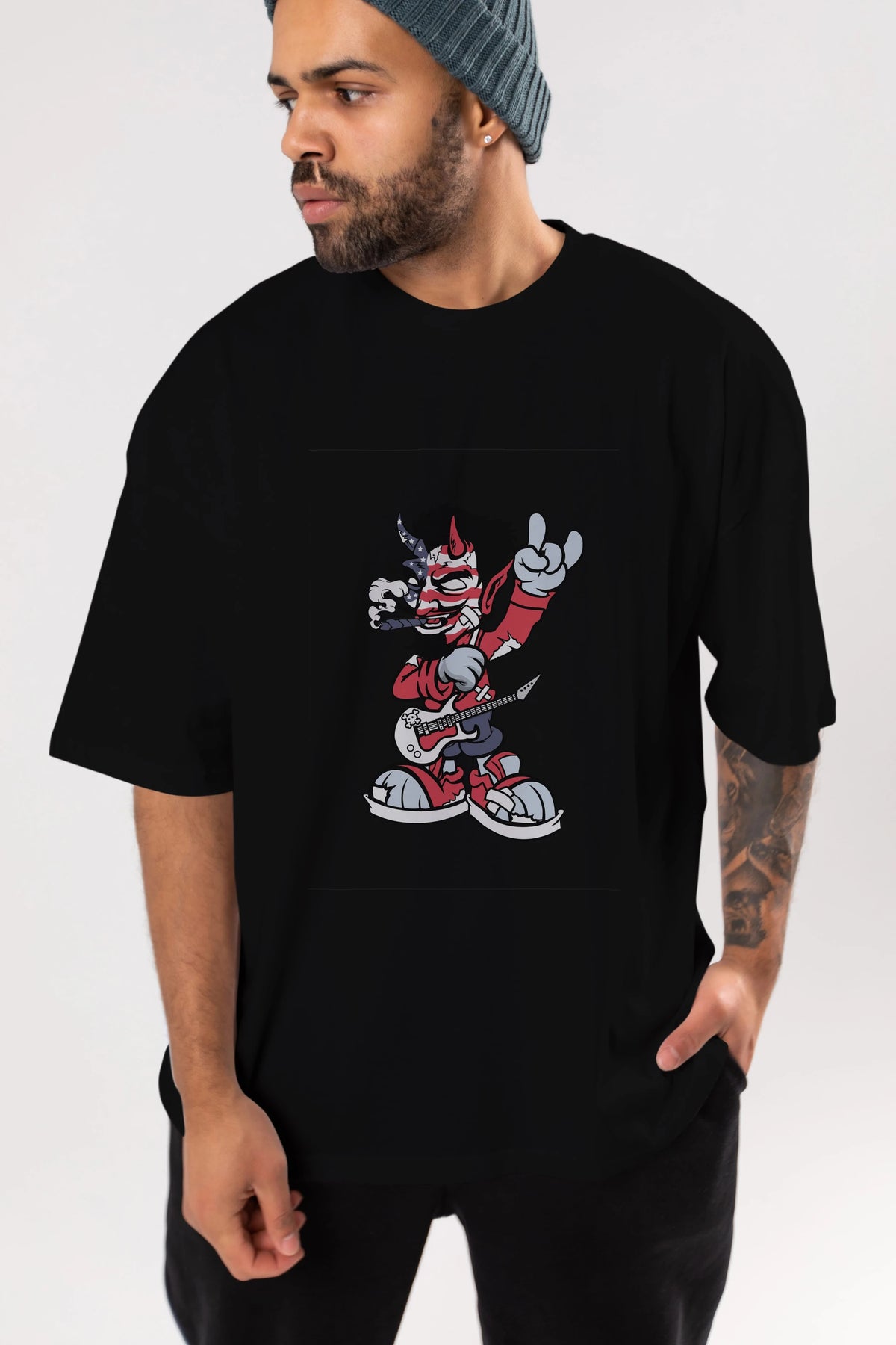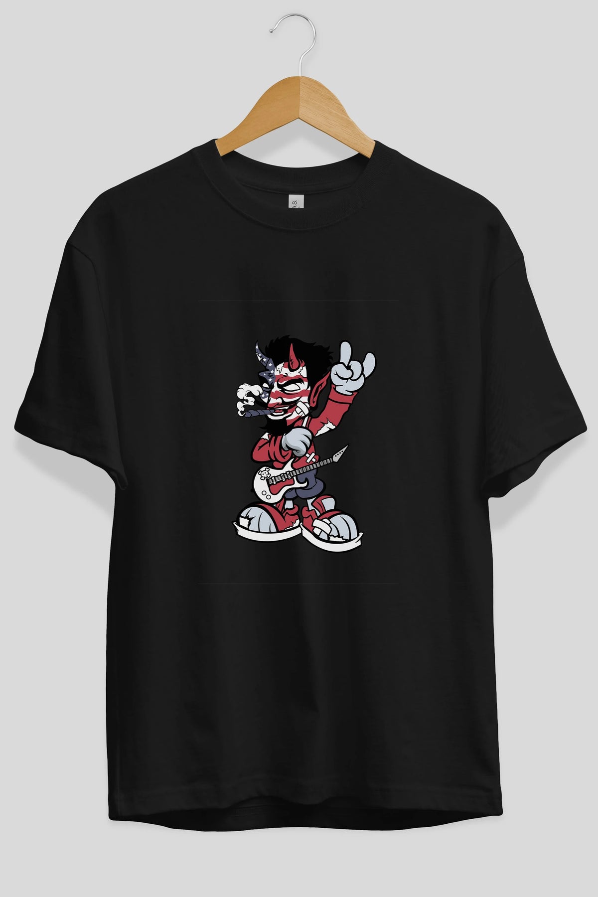 American Devil Rockstar Ön Baskılı Oversize t-shirt Erkek Kadın Unisex %100 Pamuk tişort