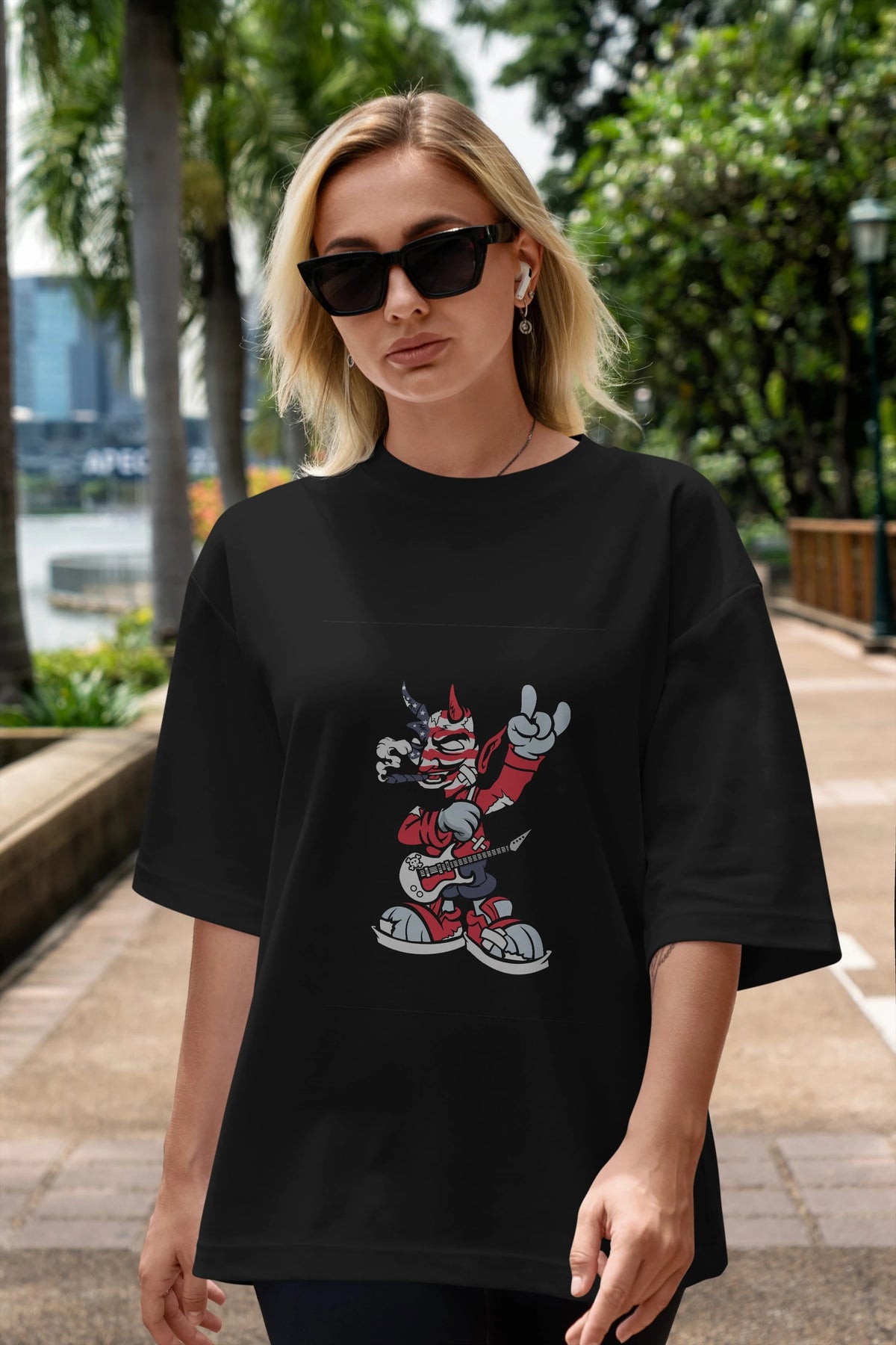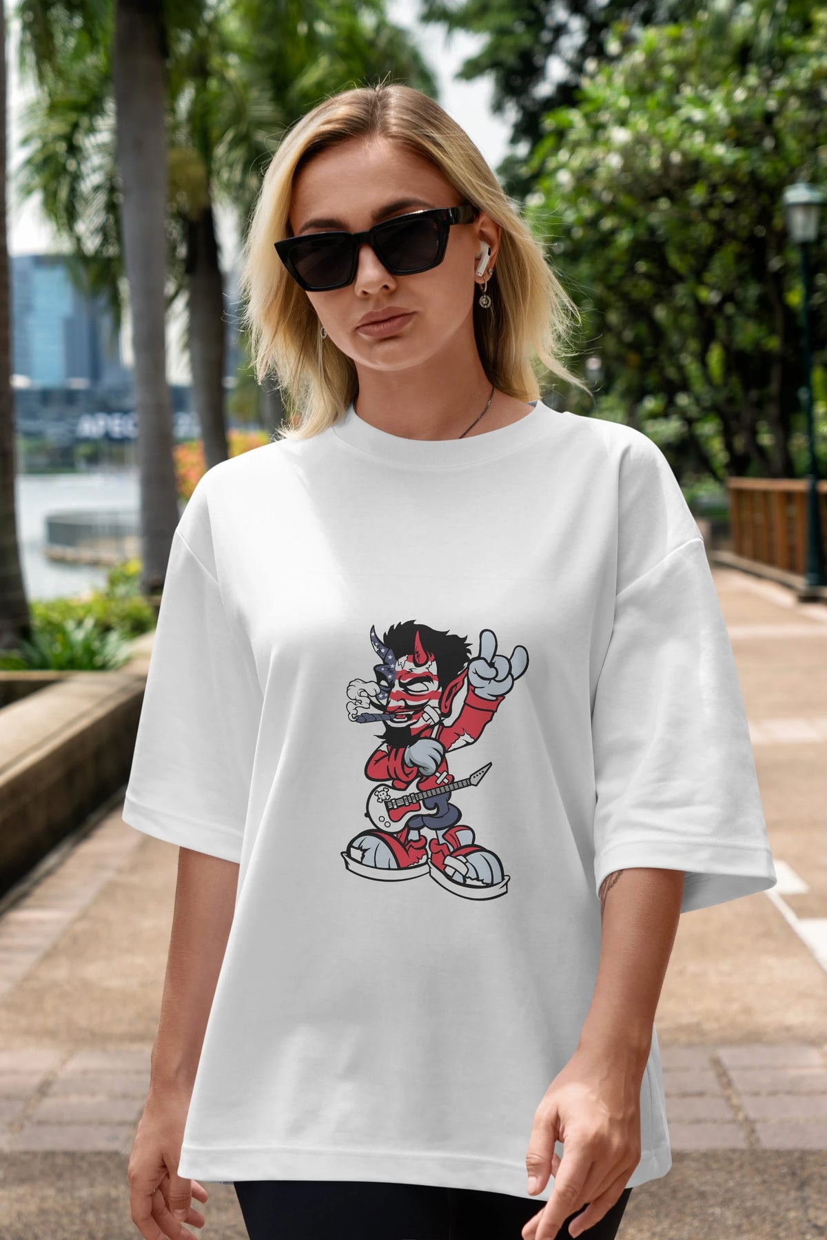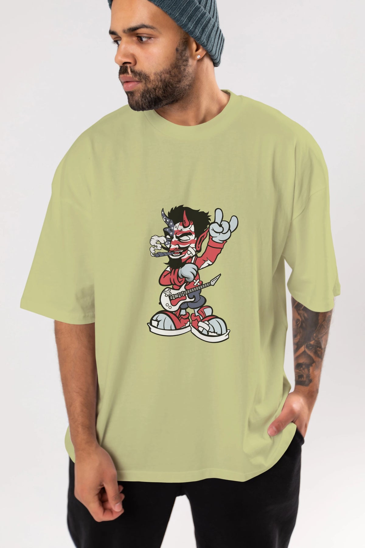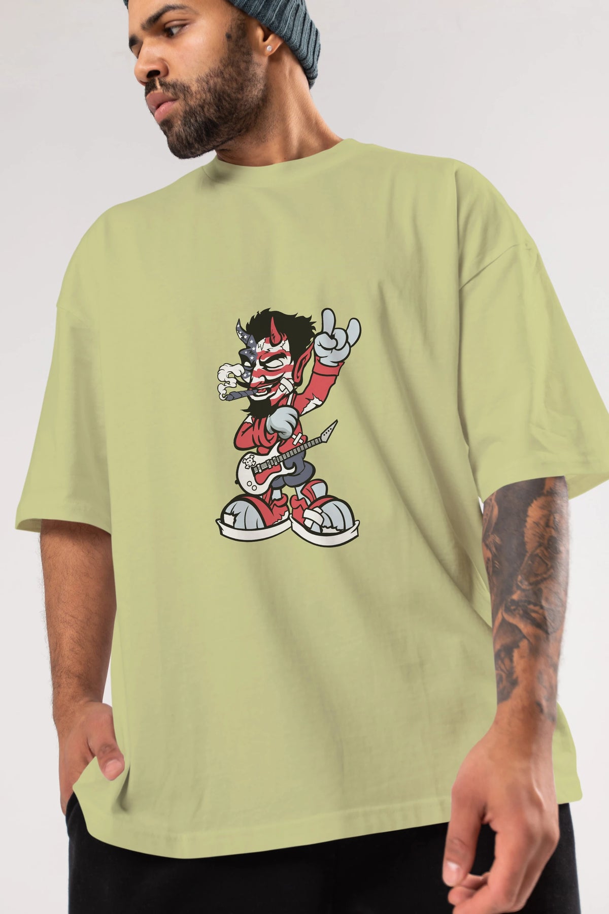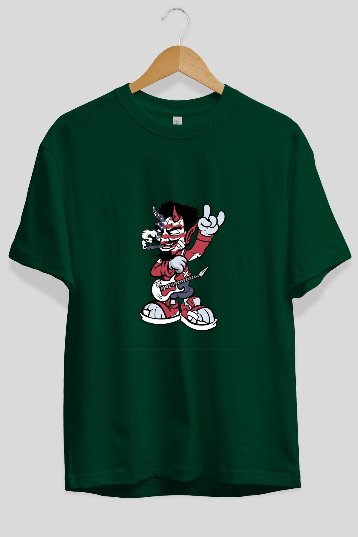 American Devil Rockstar Ön Baskılı Oversize t-shirt Erkek Kadın Unisex %100 Pamuk tişort