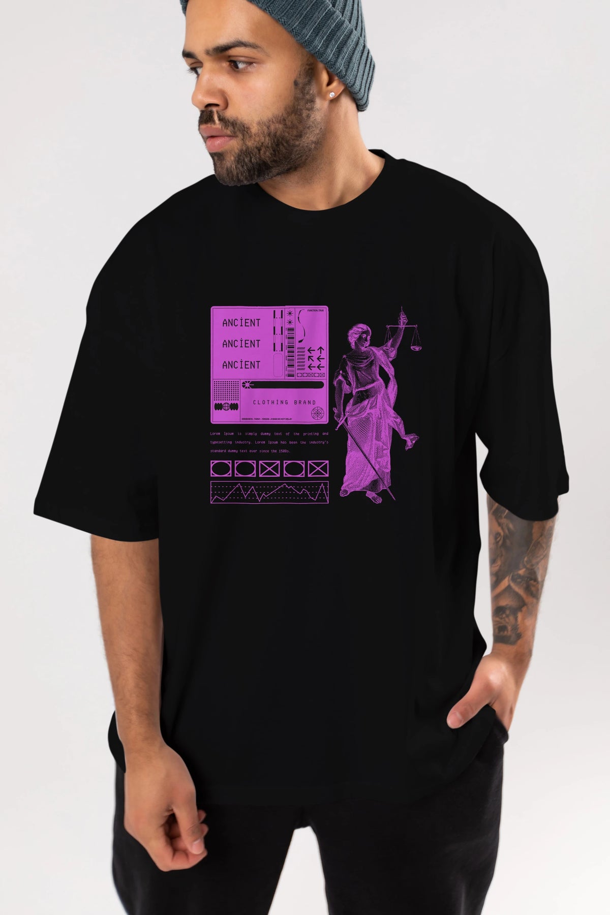 Ancient Streetwear Ön Baskılı Oversize t-shirt Erkek Kadın Unisex