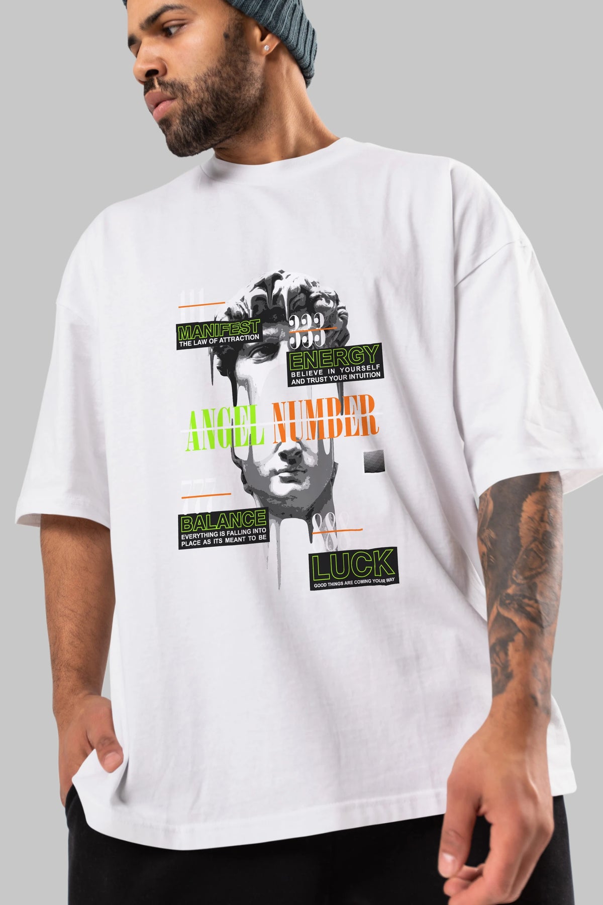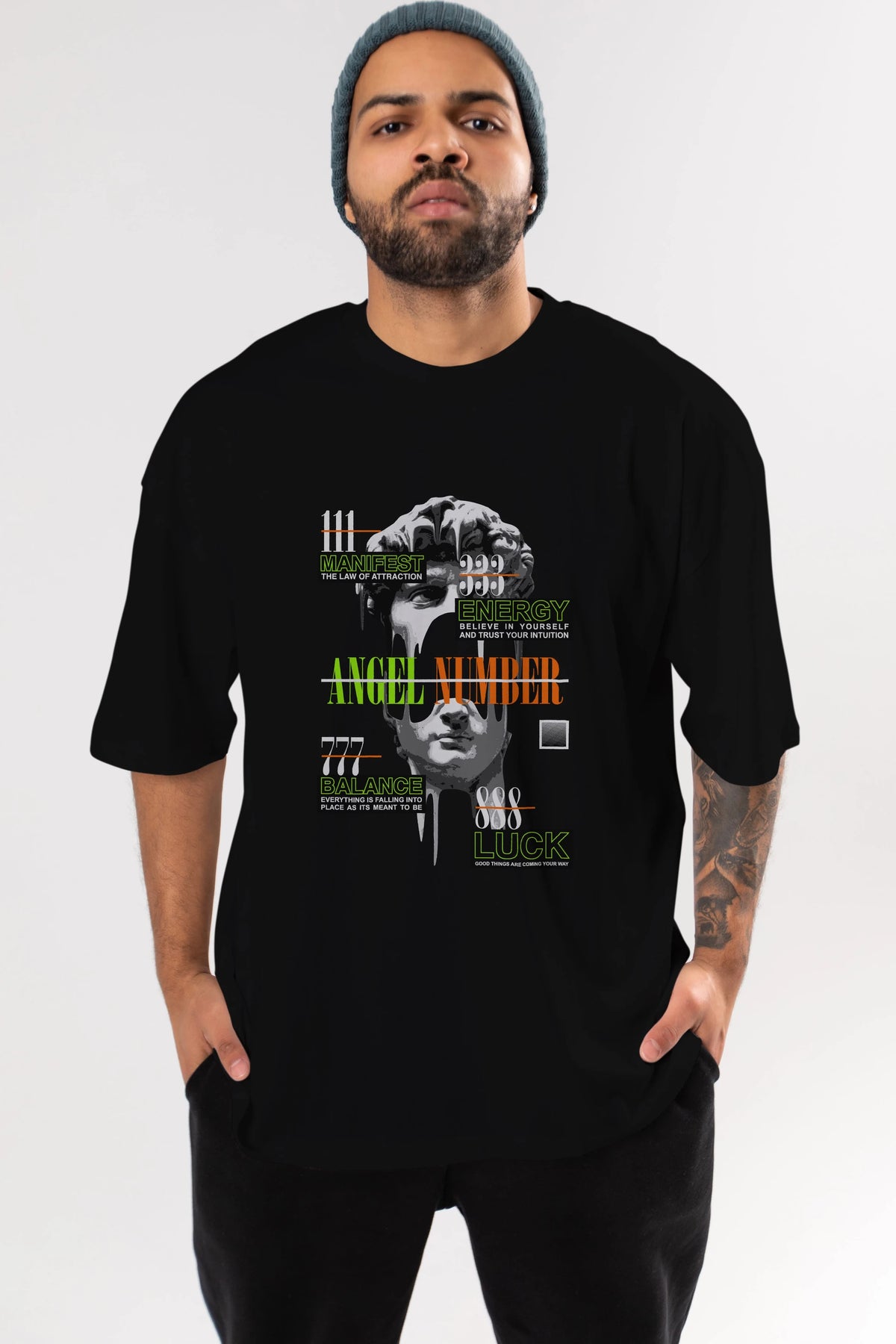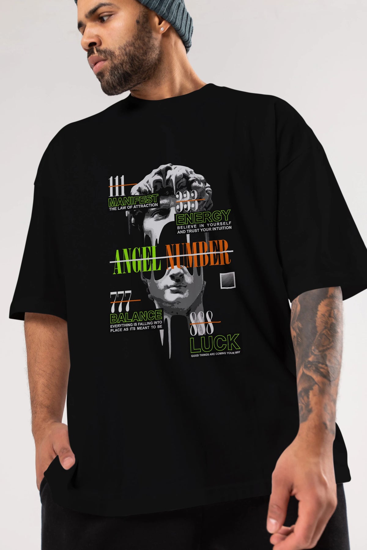 Angel Number Ön Baskılı Oversize t-shirt Erkek Kadın Unisex