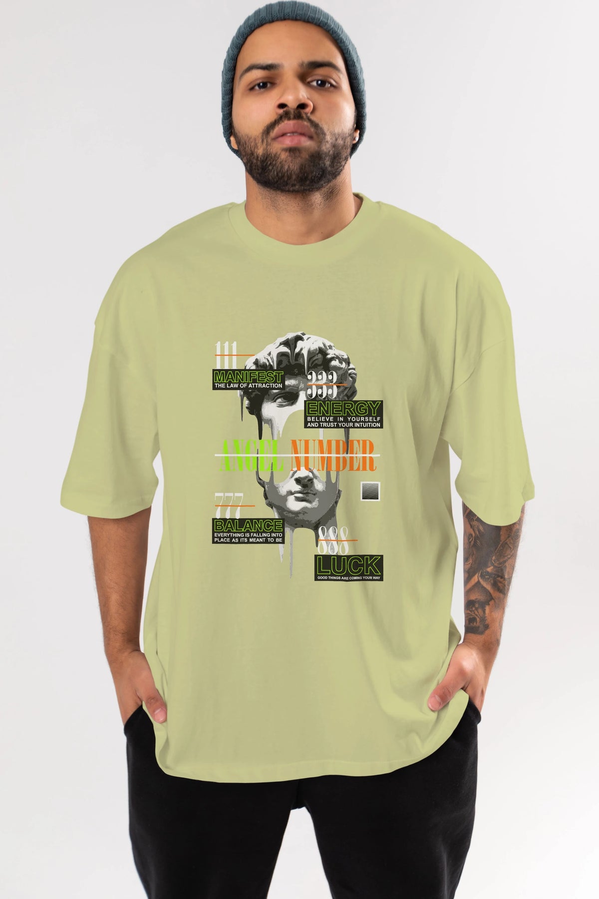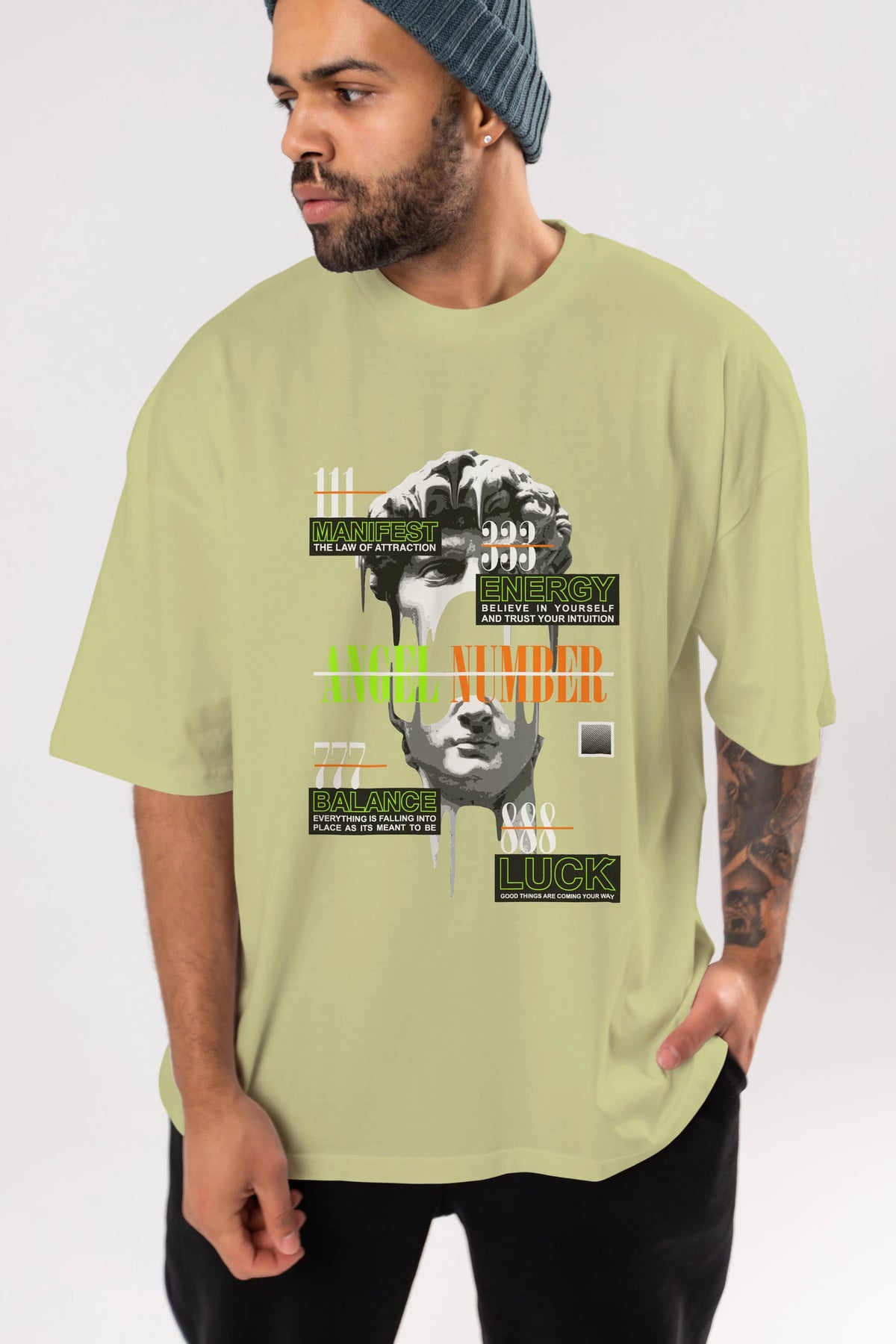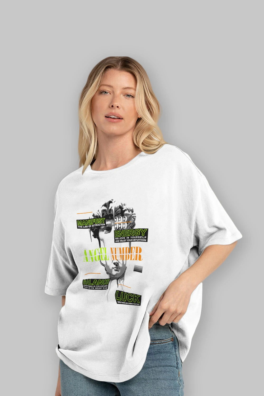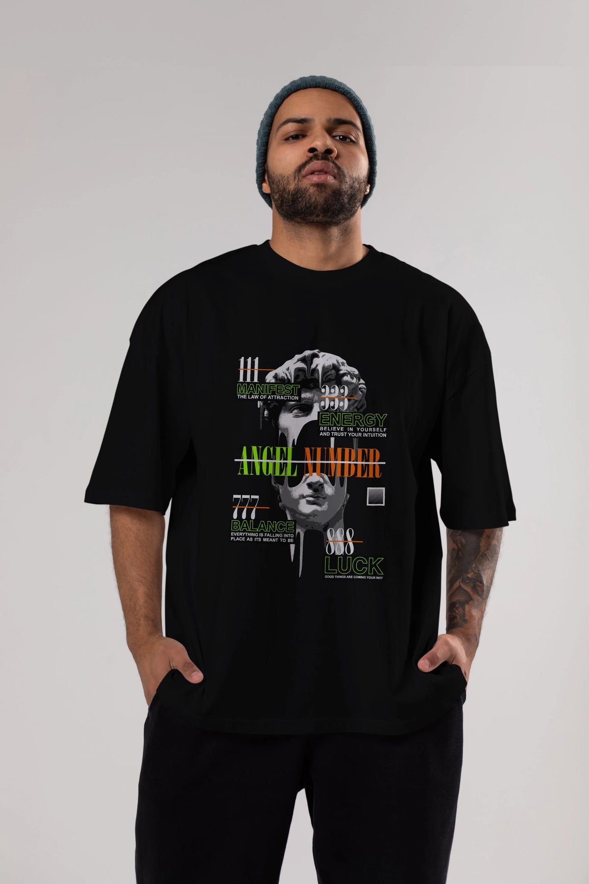 Angel Number Ön Baskılı Oversize t-shirt Erkek Kadın Unisex